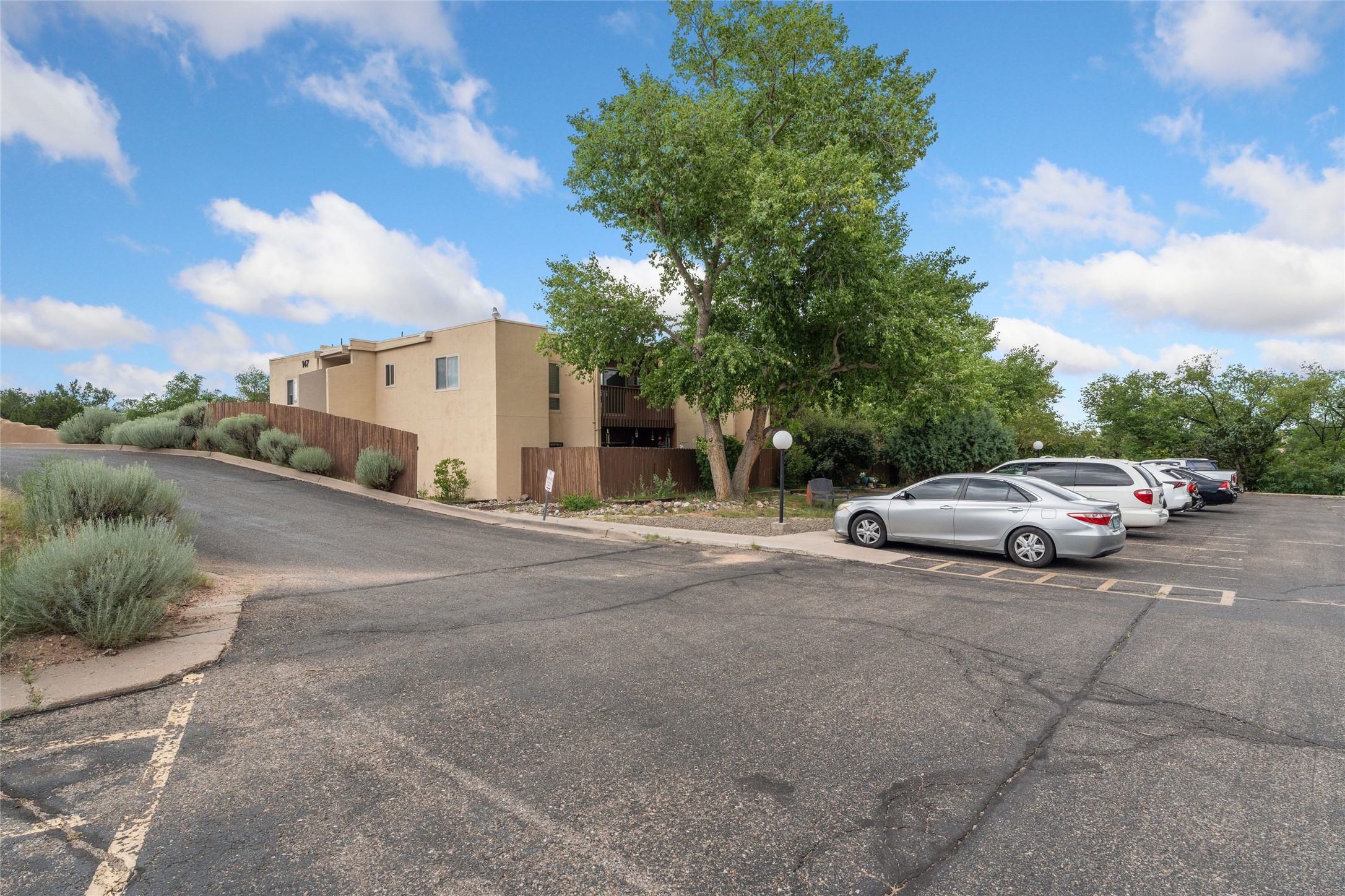 Renovated 2-bedroom, 2-bathroom condo located on the second floor of the Los Arroyos Compound on the shady side of the building. Upon entry, the living and dining areas flow onto an outdoor deck with views of Atalaya, Picacho Peak, and the Sun and Moon Mountains. The modern L-shaped kitchen is appointed with clean, white cabinets and provides ample storage and workspace for cooking. The split bedroom plan ensures privacy and convenience for guests or roommates. Additionally, it includes a large laundry and storage room with a stacked washer and dryer. The Los Arroyos Compound includes access to an array of amenities, including a clubhouse and outdoor space for social gatherings, an indoor pool, exercise room, sauna, and tennis courts. Easy access to 285, I-25 and restaurants, health/wellness facilities and shopping