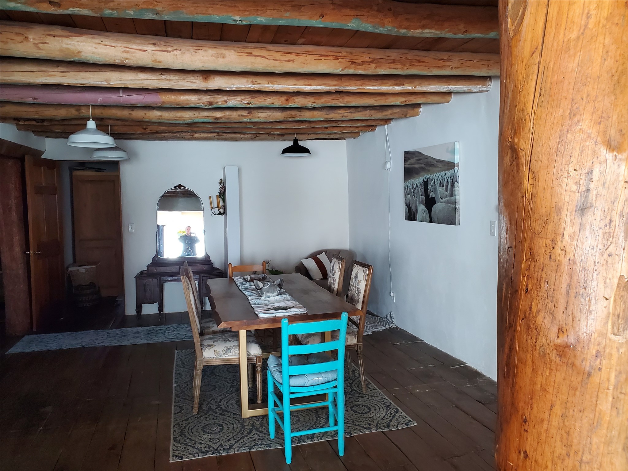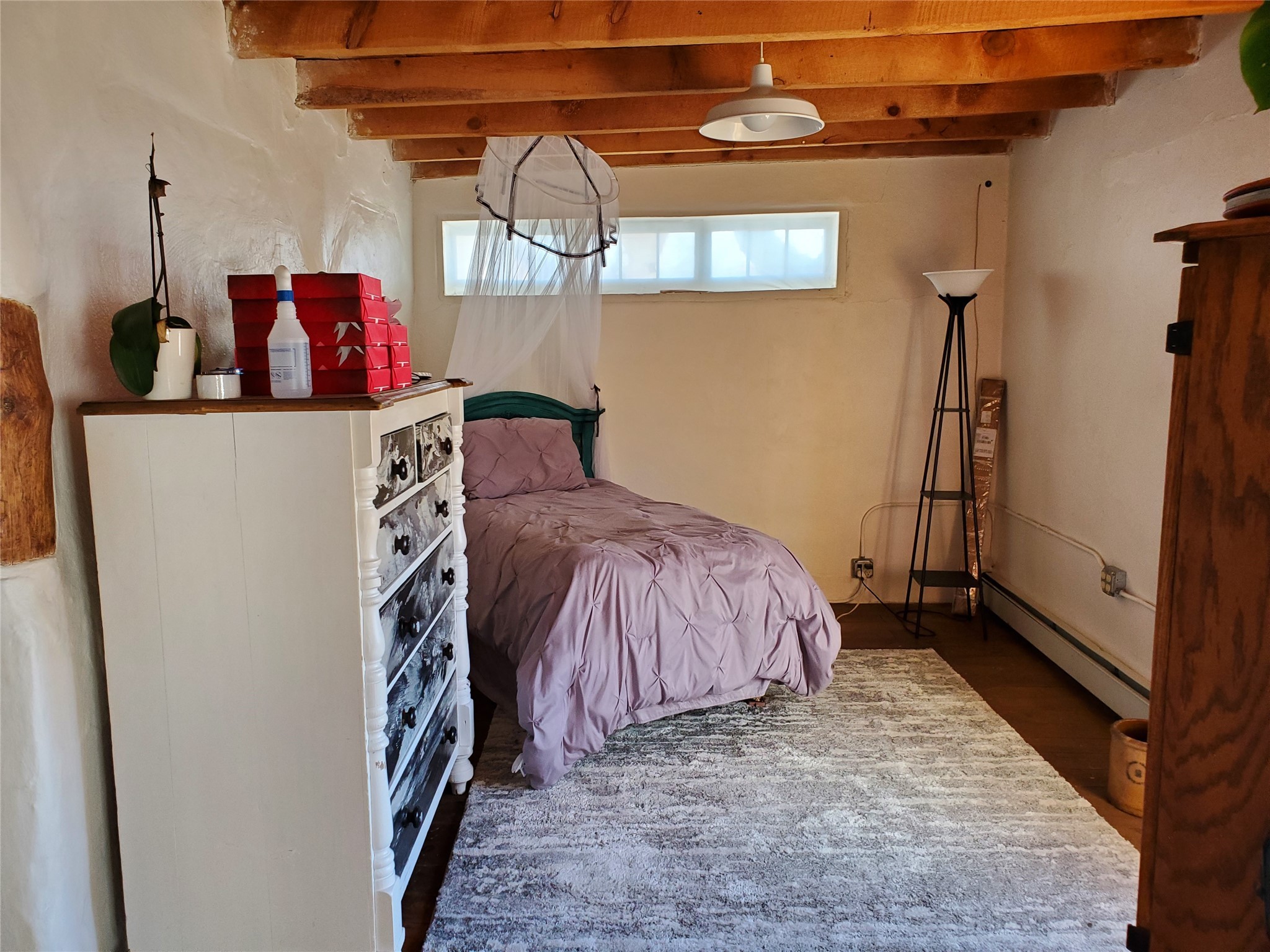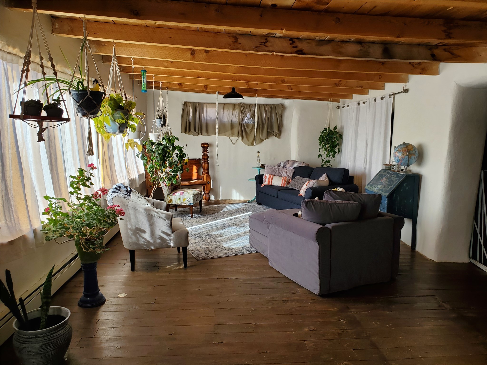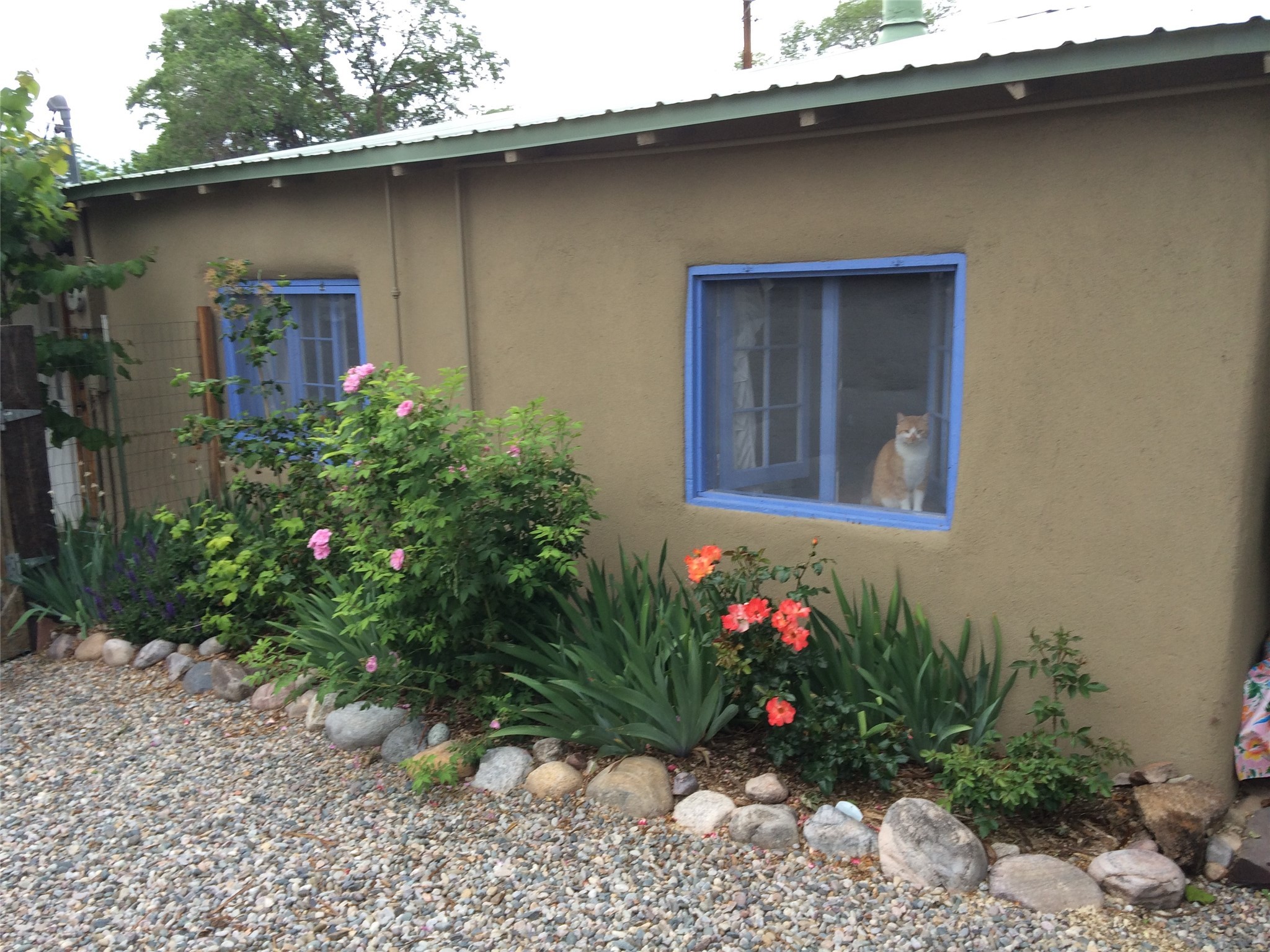 Charming, Historic, Quintessential Northern New Mexico territorial Adobe home with a garden paradise. This 122-year-old home is known as the old Martinez home. It started life as a General Mercantile store. Since then, it has been a few artist galleries, and a ceramic studio. This magical property has the original wood flooring in most of the house. Vigas and arched doorways throughout. Base board heating, a wood stove, and radiant floor heating in the wonderfully updated master bath to keep your toes toasty in the morning. There is so much space to do anything you can dream up, inside this home. The back yard is a gardener's paradise, boasting over 65 different rose bushes, grass, Flower beds, decorative trees and fruit trees. The property has water rights to keep the yard magical. The adobe barn was updated with cement floors, power and radiant floor heating, used to be a ceramics studio and as tons of potential per your liking. The tool shed is large enough to hold your tools and be a small workshop. There is abundant space in the back yard to plant a vegetable garden. The separate portal is tucked into the garden and creates an outdoor sanctuary perfect for gatherings with family and friends or a quiet evening of solitude.