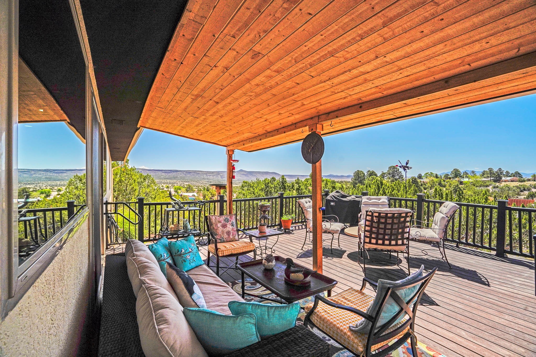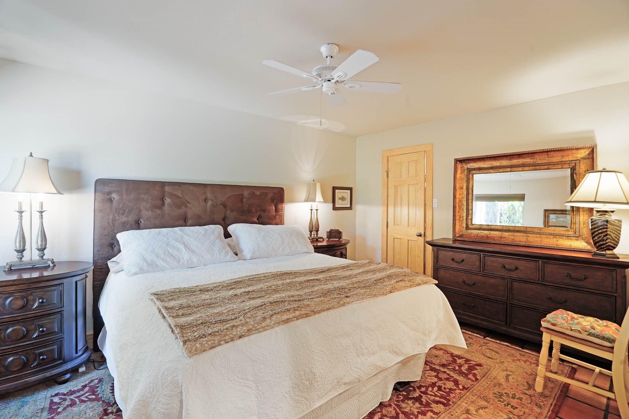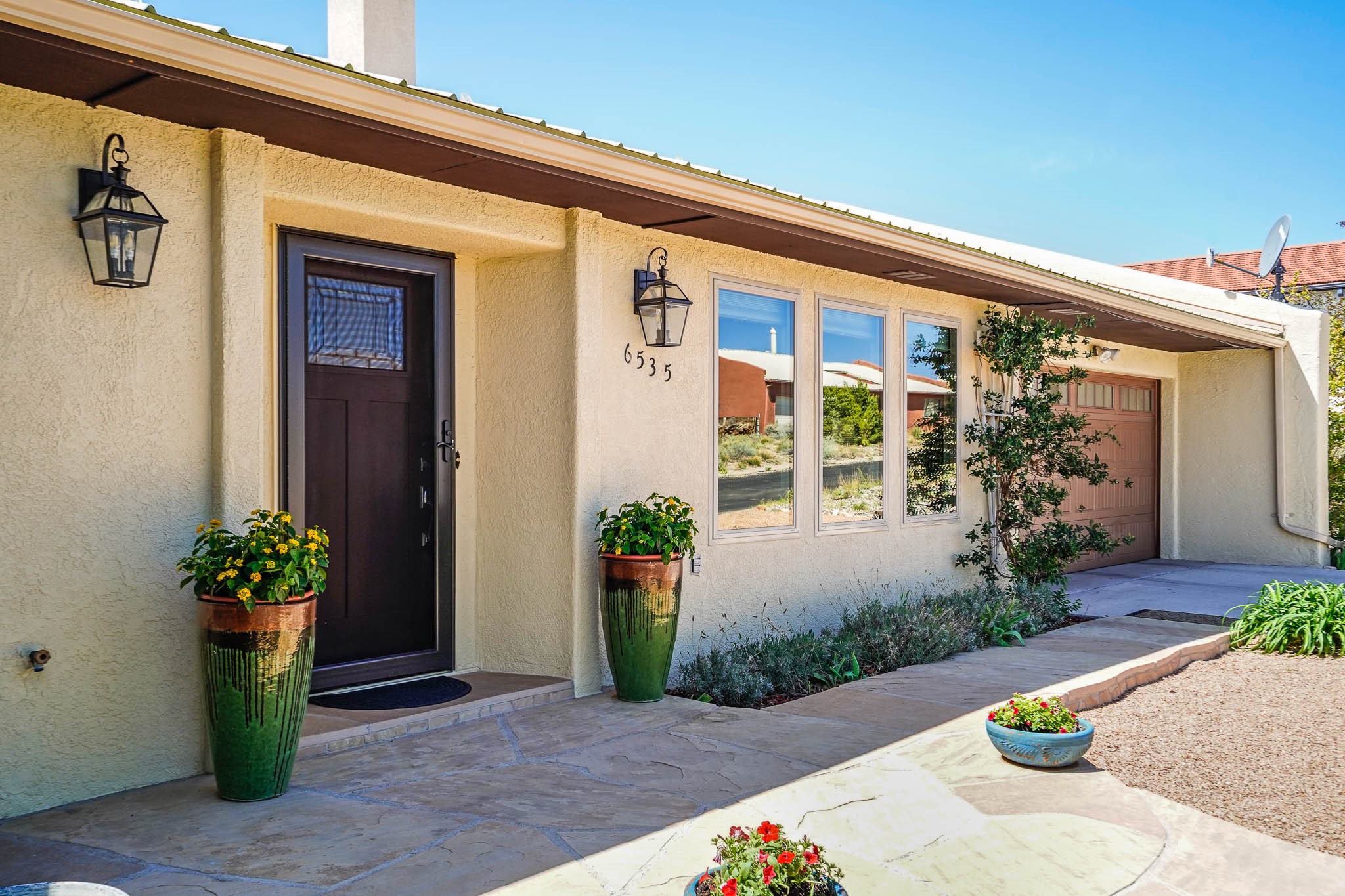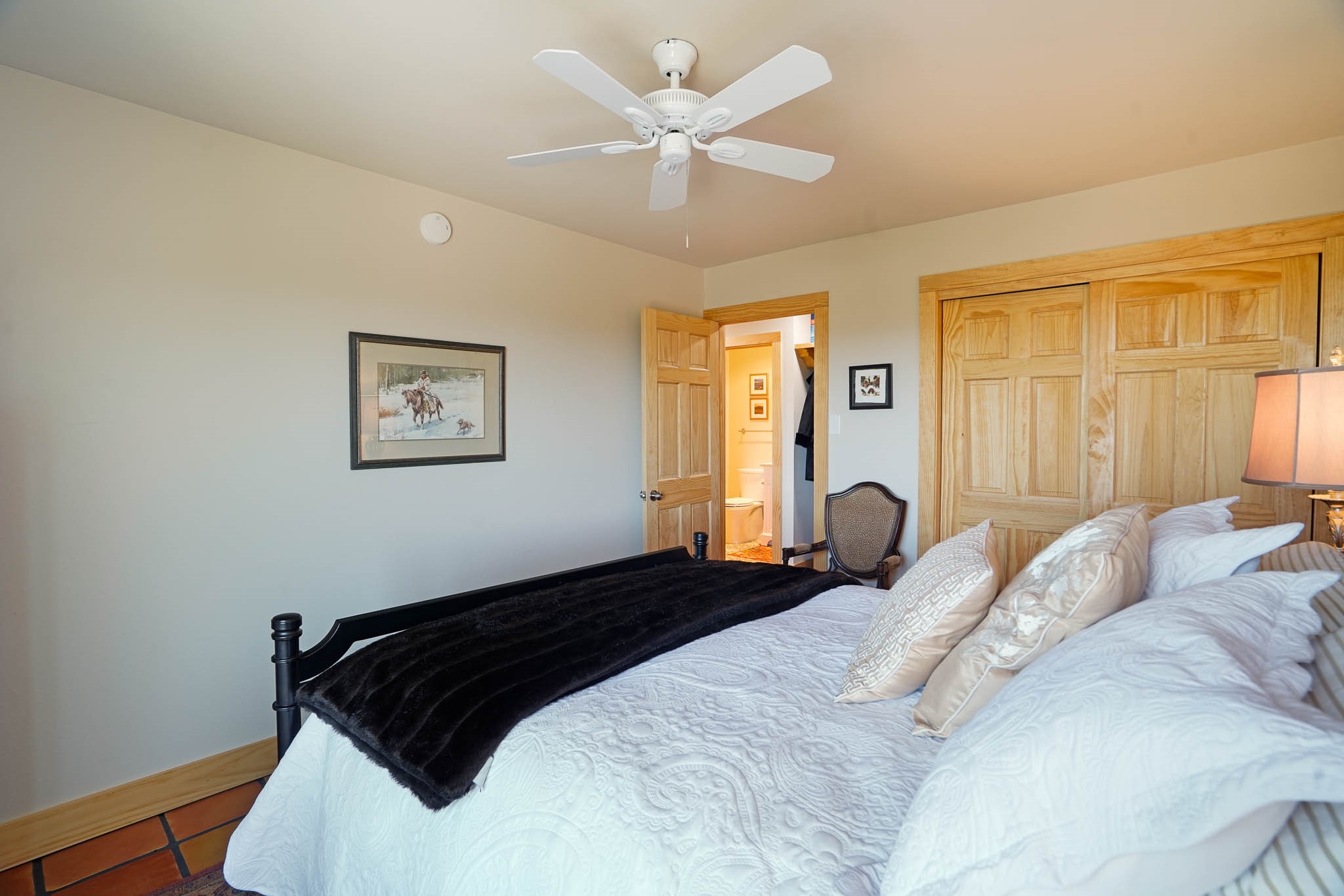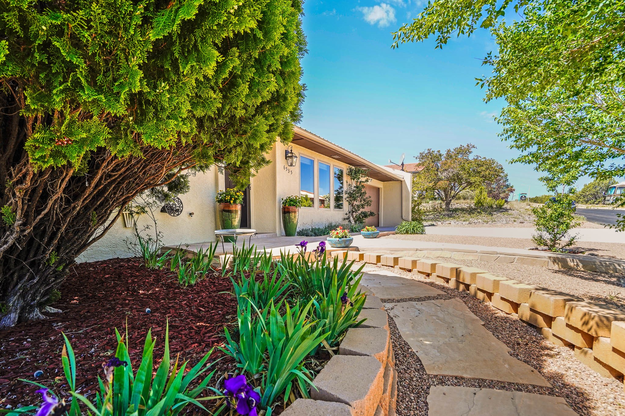 Discover a truly exceptional Cochiti Lake home, fully remodeled in 2023 and thoughtfully enhanced since! Perched on a ridgeline in a peaceful cul-de-sac on a generous .93-acre fenced lot, this property offers unparalleled peace and quiet with breathtaking views toward La Bajada Mesa and Tetilla Peak, especially from the spacious Trex deck off the kitchen. Experience the magic of dark skies, the Milky Way, and vibrant constellations right from your own backyard.Every detail has been addressed: the exterior boasts new paint, a gravel parking pad, updated electrical panel, new driveway, garage door, and a welcoming front door with a screen door. Enjoy enhanced curb appeal with new front porch lights and meticulously refreshed front yard landscaping with flagstone. A 10x20 steel garage/storage building provides ample extra space. All windows and the sliding glass door are new, and a greenhouse adds a touch of charm.Inside, comfort is assured with a new York air-conditioning/heating unit. The interior shines with paneled pine doors and trim throughout, a relocated master entry, and clever shelving by the master bedroom. The acoustic ceilings were removed and the entire house has been freshly painted. Both the master and second bathrooms are updated and remodeled, featuring a new tile floor in the latter and added shelving in the master. The fireplace has been beautifully updated, and new ceiling fans are installed throughout. The complete kitchen remodel features top-end GE appliances, including a gas stove, double oven, French door refrigerator, and stunning quartz countertops. The dining room impresses with deer print wallpaper, while a small office space has been added for productivity. The laundry room is now more functional with an added sink, complemented by a stacked washer/dryer. This home is truly move-in ready and elegantly updated for modern living.