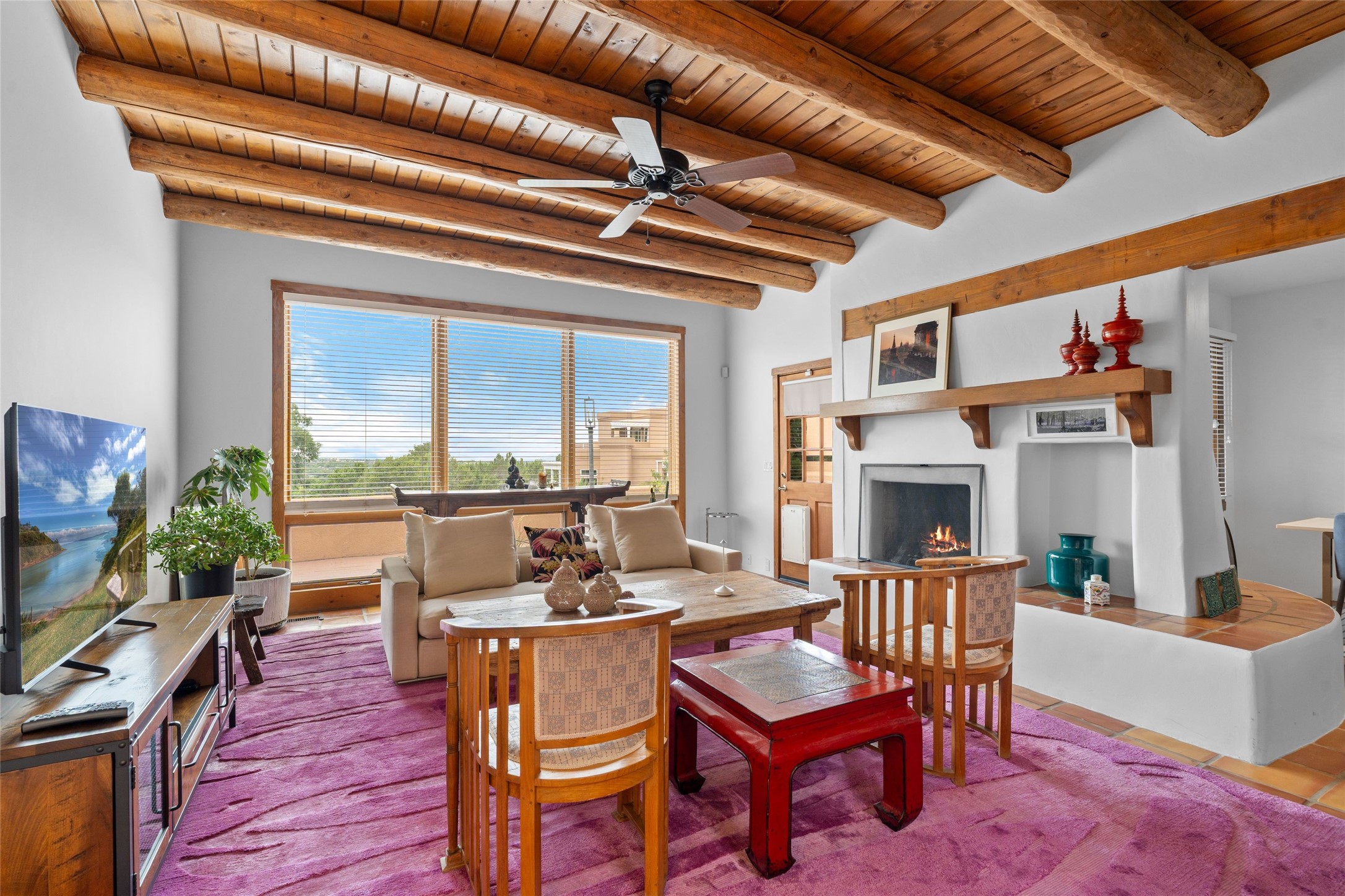 This lovely single-level residence with City lights and Sangre de Cristo views has a large walled-in deck and beautifully landscaped fenced areas offering very pleasant outdoor living. The current owners have made numerous improvements to the home including lighting, resurfacing all interior walls, extensive landscaping all around the home, and rodent exclusion. The kitchen and bathrooms have been remodeled and upgraded. The home is light and bright with a cozy comfortable feeling and conveniently located in the upper Casa Solana neighborhood.