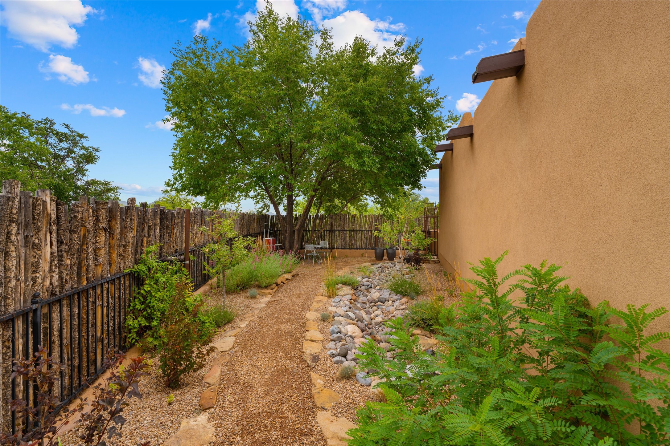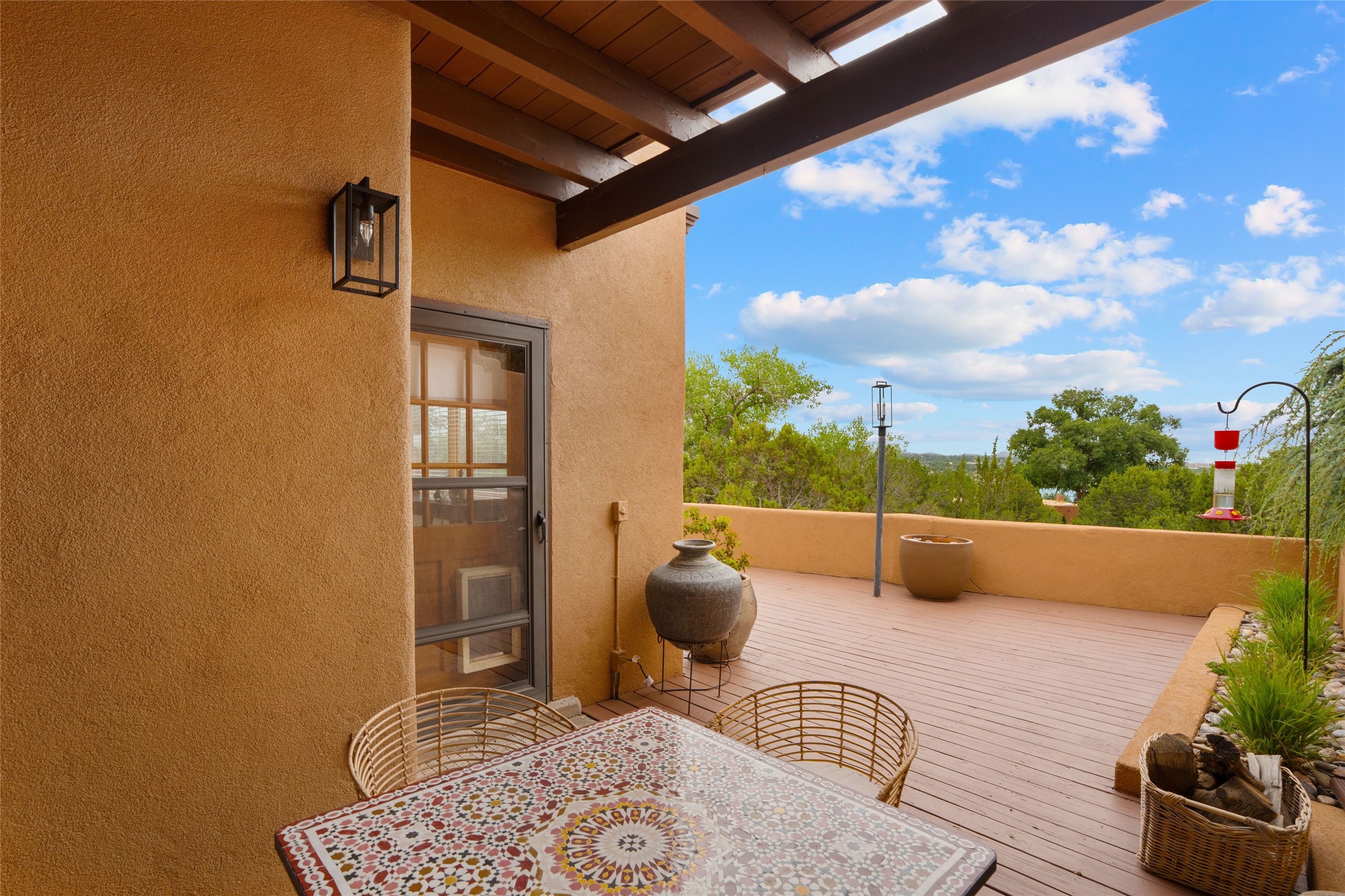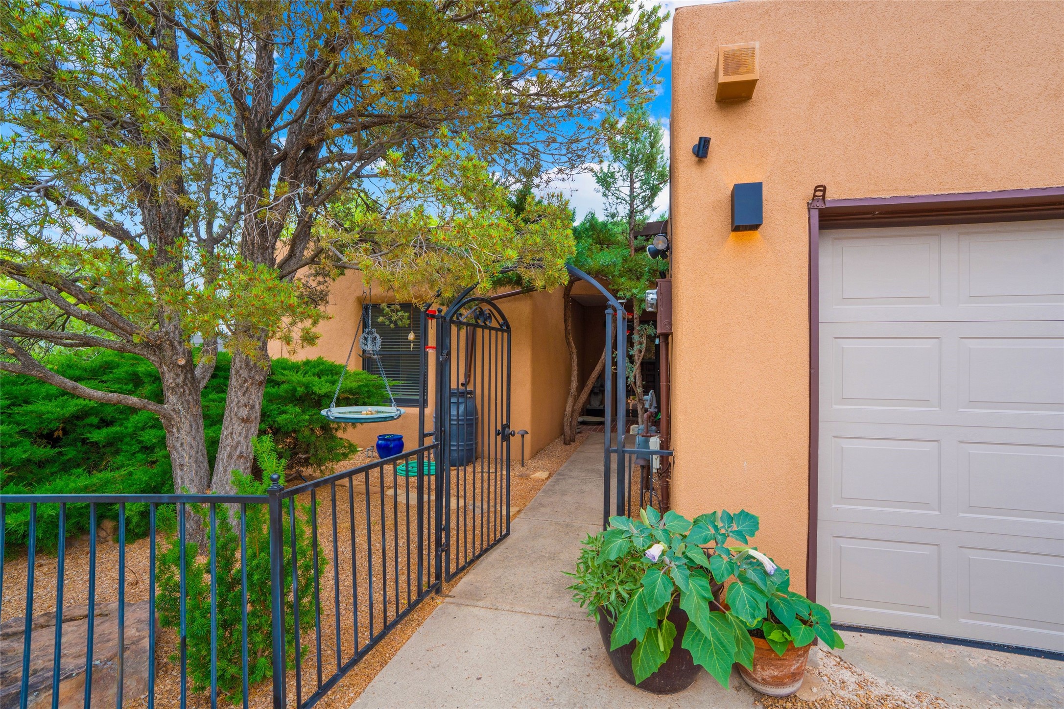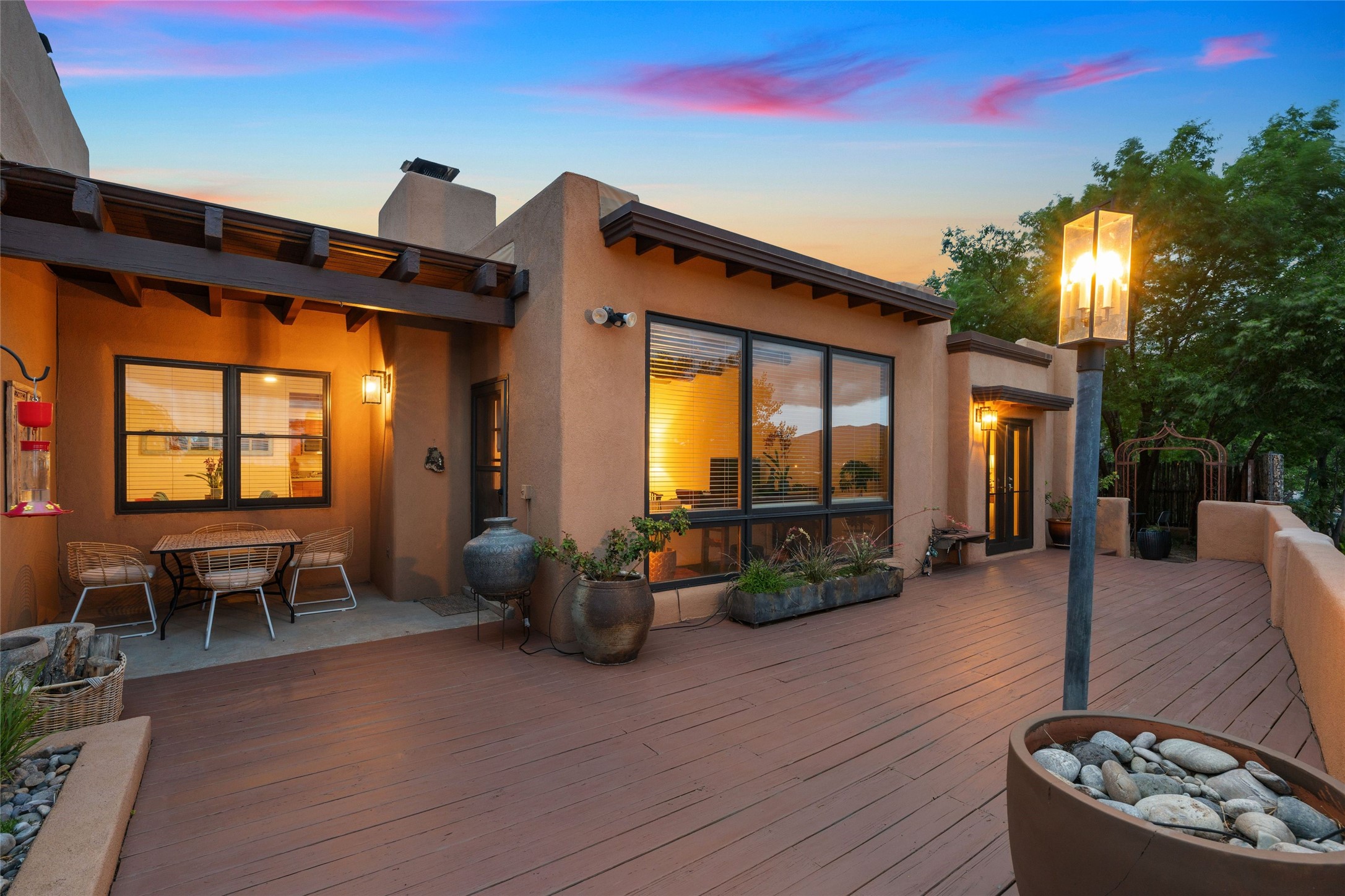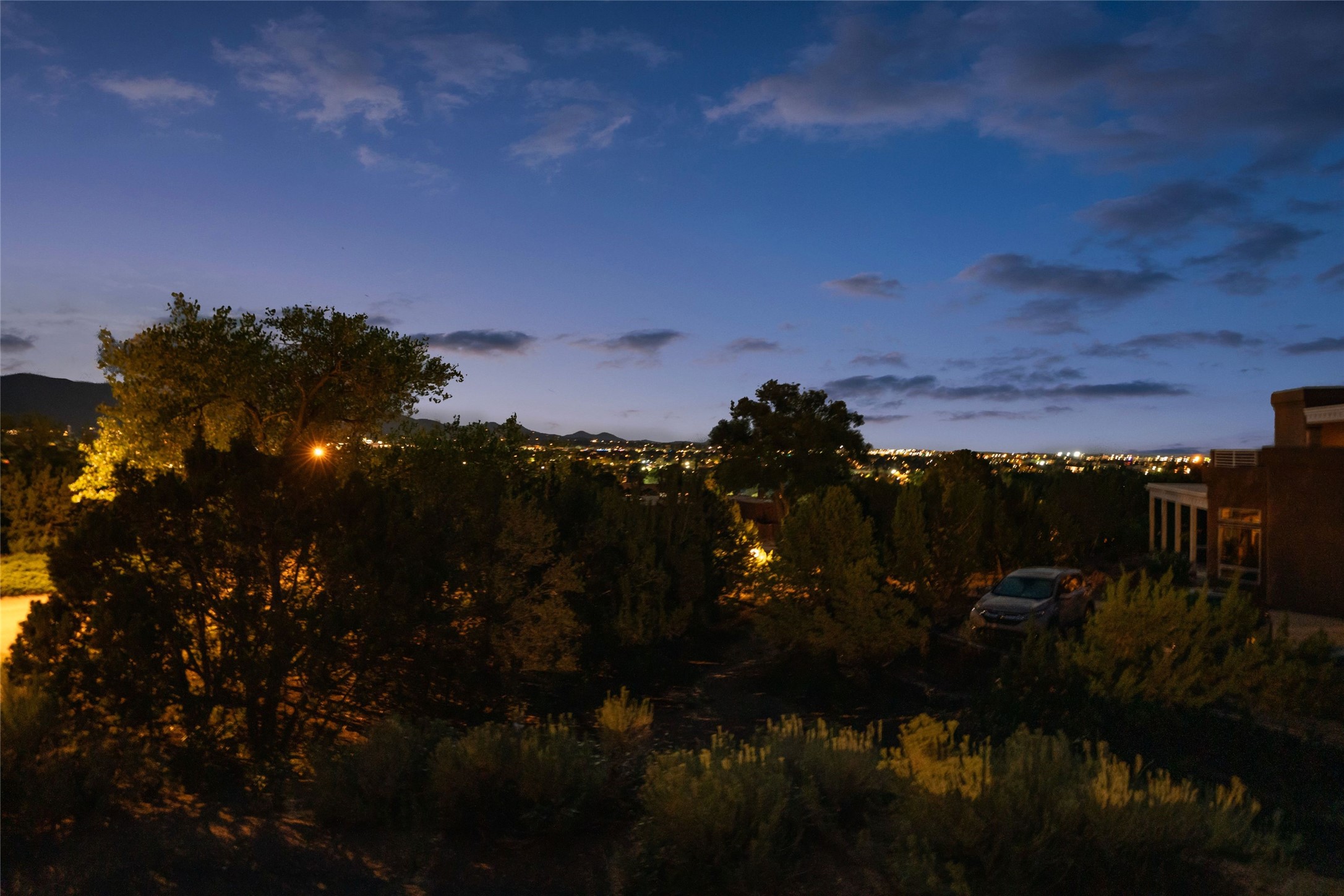 This lovely single-level residence with City lights and Sangre de Cristo views has a large walled-in deck and beautifully landscaped fenced areas offering very pleasant outdoor living. The current owners have made numerous improvements to the home including lighting, resurfacing all interior walls, extensive landscaping all around the home, and rodent exclusion. The kitchen and bathrooms have been remodeled and upgraded. The home is light and bright with a cozy comfortable feeling and conveniently located in the upper Casa Solana neighborhood.