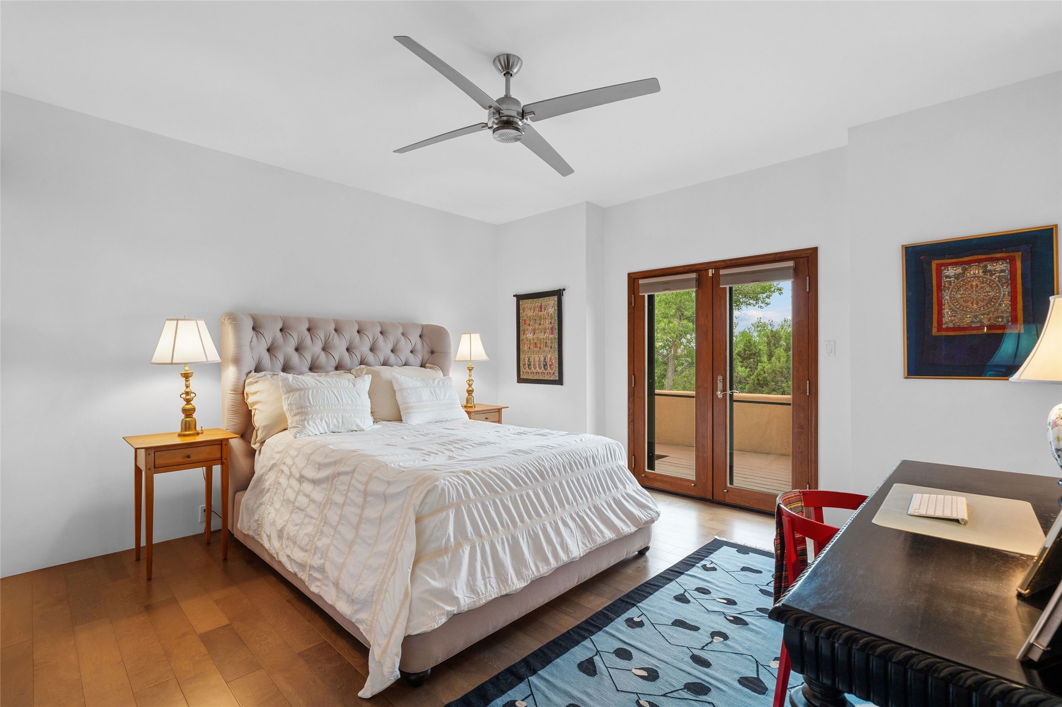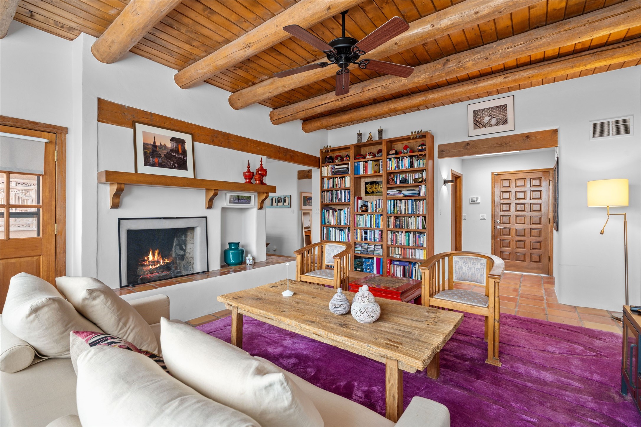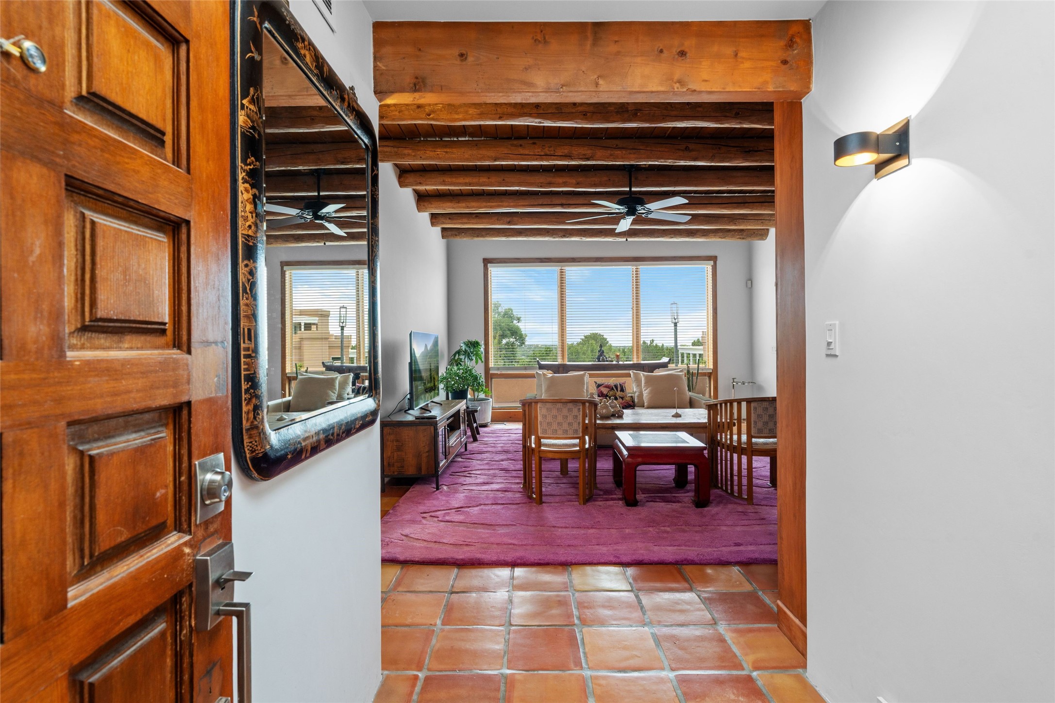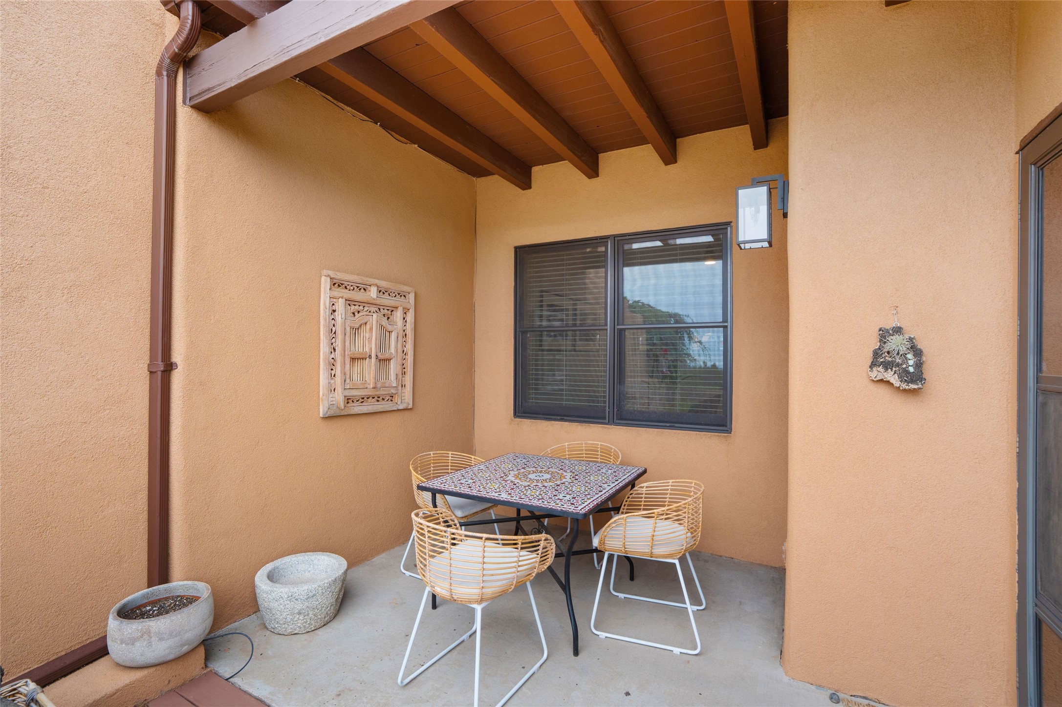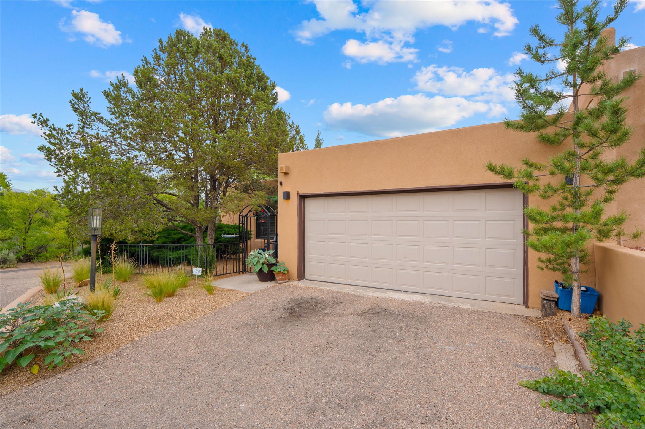This lovely single-level residence with City lights and Sangre de Cristo views has a large walled-in deck and beautifully landscaped fenced areas offering very pleasant outdoor living. The current owners have made numerous improvements to the home including lighting, resurfacing all interior walls, extensive landscaping all around the home, and rodent exclusion. The kitchen and bathrooms have been remodeled and upgraded. The home is light and bright with a cozy comfortable feeling and conveniently located in the upper Casa Solana neighborhood.
