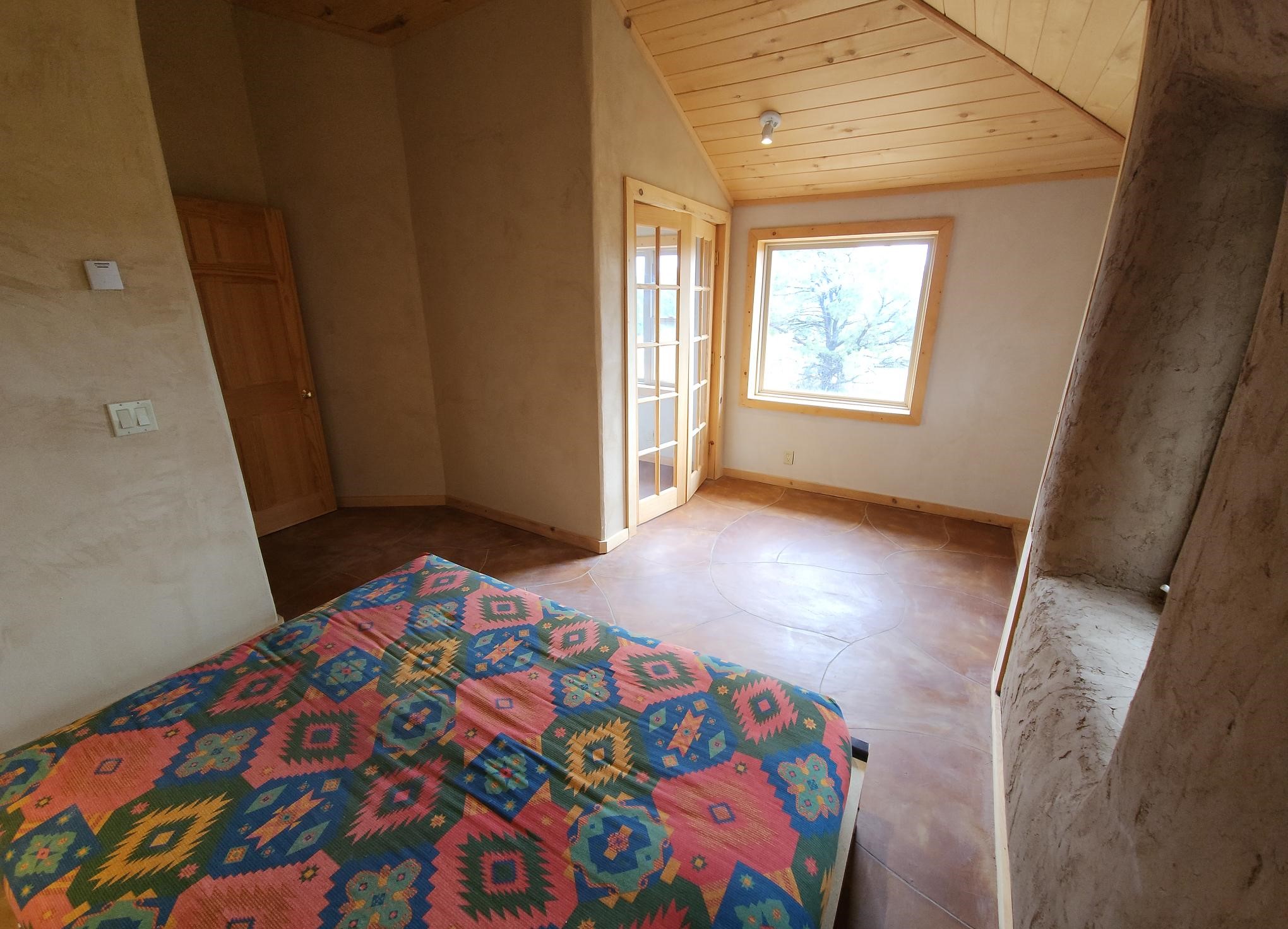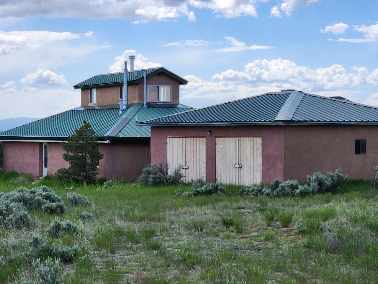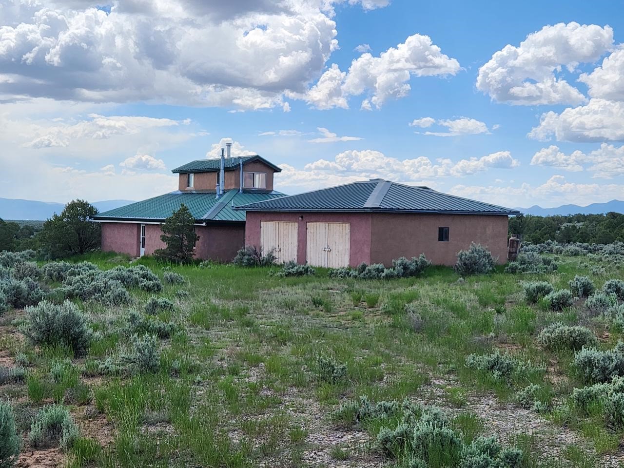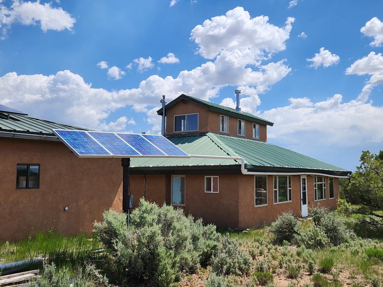 This efficient custom designed solar home will offer room to roam along with inspiring sunrises, sunsets and starry night skies. Enjoy spacious, secluded, off-grid living near Taos, NM. Straw bale/frame/stucco constructed home is on 38.9 acres that borders Carson National Forest in a private gated community. Stunning pinon framed views of the Sangre de Cristo Range extend from Santa Fe to Colorado. The home is cozy and inviting, featuring an open floor plan for ease of movement and views. Stylish earth and artisanal natural plaster walls along with attention to wooden design create an earthy and grounded environment in this passive and active solar-powered home. Green utilities include a self-supplied water catchment/cistern system and an efficient solar energy system. Make this a permanent home, artist's or writer's retreat just enough off the beaten path, yet an easy scenic ride will take you to colorful Taos for entertainment, skiing and great food. Abundant hiking, biking, scenery and wildlife are at your front door awaiting your adventures. Rio Grande del Norte National Monument, Wheeler Peak Wilderness and Carson Nation Forest are only a partial list of nearby public lands to enjoy.