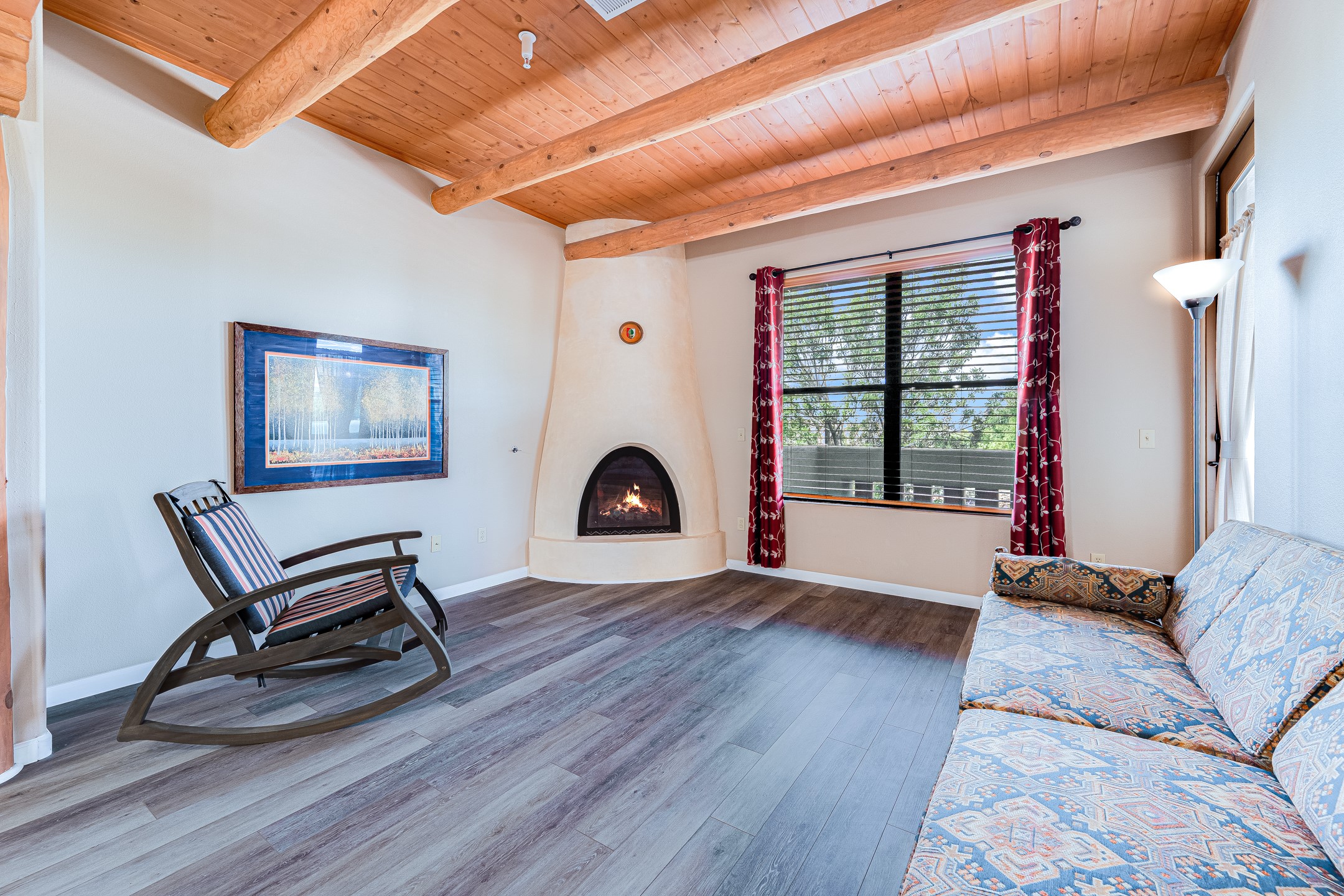 Welcome to Unit 205 at 1405 Vegas Verdes Drive, a beautifully maintained 1-bedroom, 1 1/2-bathroom condo in the desirable Alameda Condominiums. This second-floor turn key unit is being sold fully furnished, making it a perfect move-in-ready residence or investment opportunity. Enjoy an open-concept living space with high ceilings, abundant natural light, and quality finishes throughout. The kitchen features granite countertops and stainless steel appliances, and the private balcony offers a peaceful outdoor retreat. A rare bonus for this unit is its own private large storage unit, providing extra space for seasonal items or gear. The Alameda offers secure, elevator-access buildings, landscaped courtyards, a fitness center, pool, and a clubhouse for residents. Conveniently located near shopping, restaurants, and just minutes to downtown Santa Fe, this furnished unit with storage offers comfort, convenience, and value in one of Santa Fe's most sought-after communities.