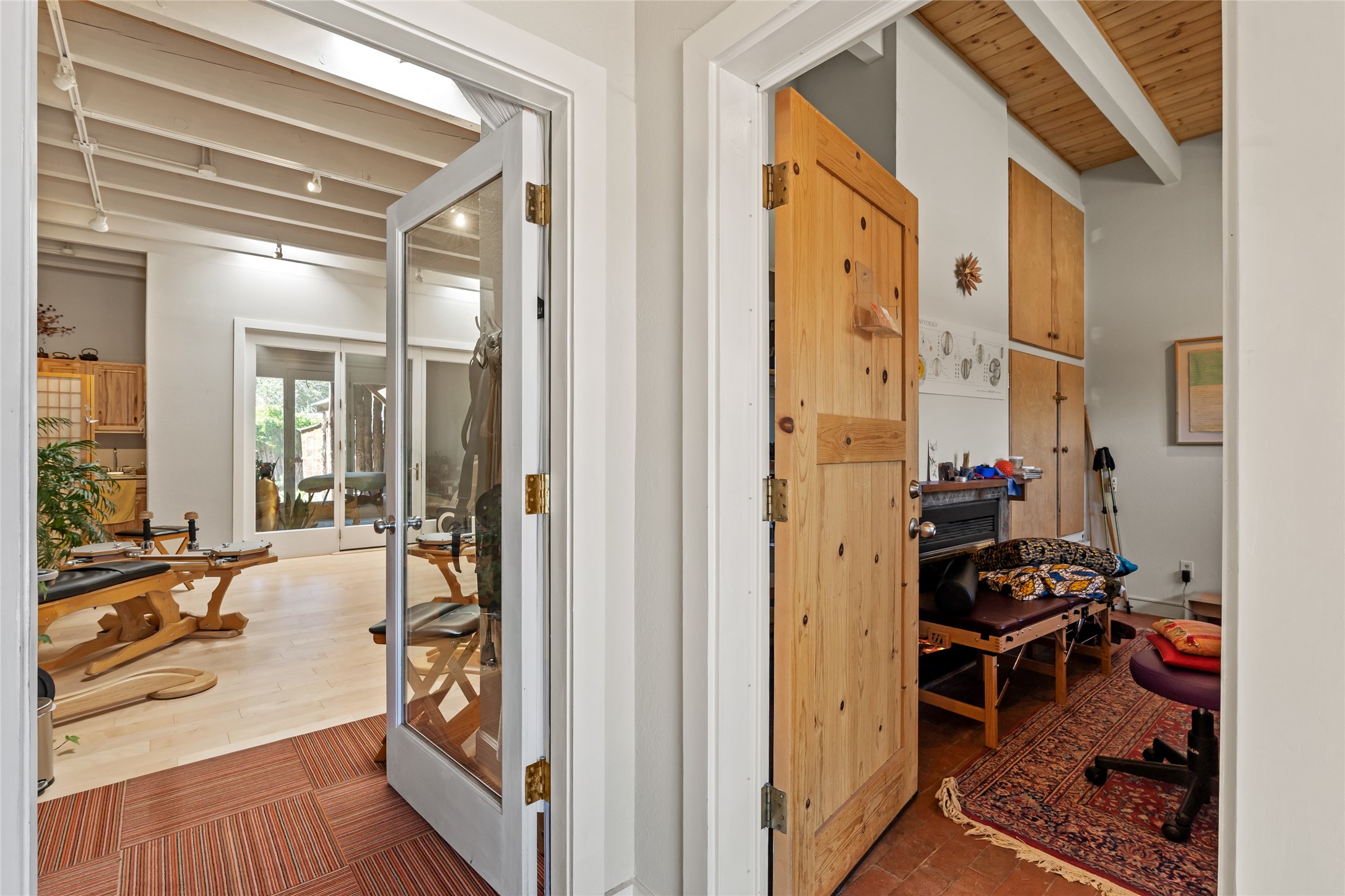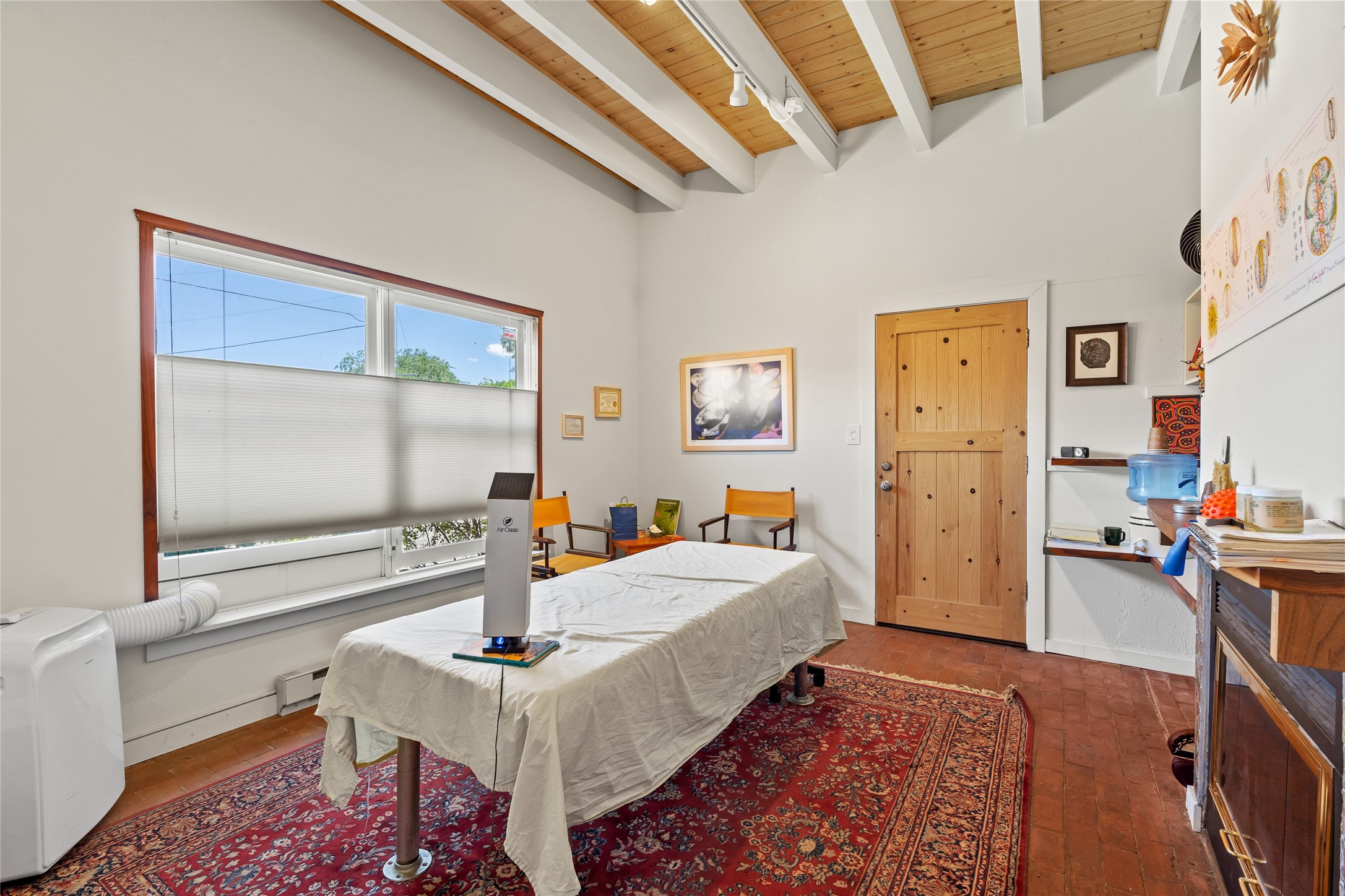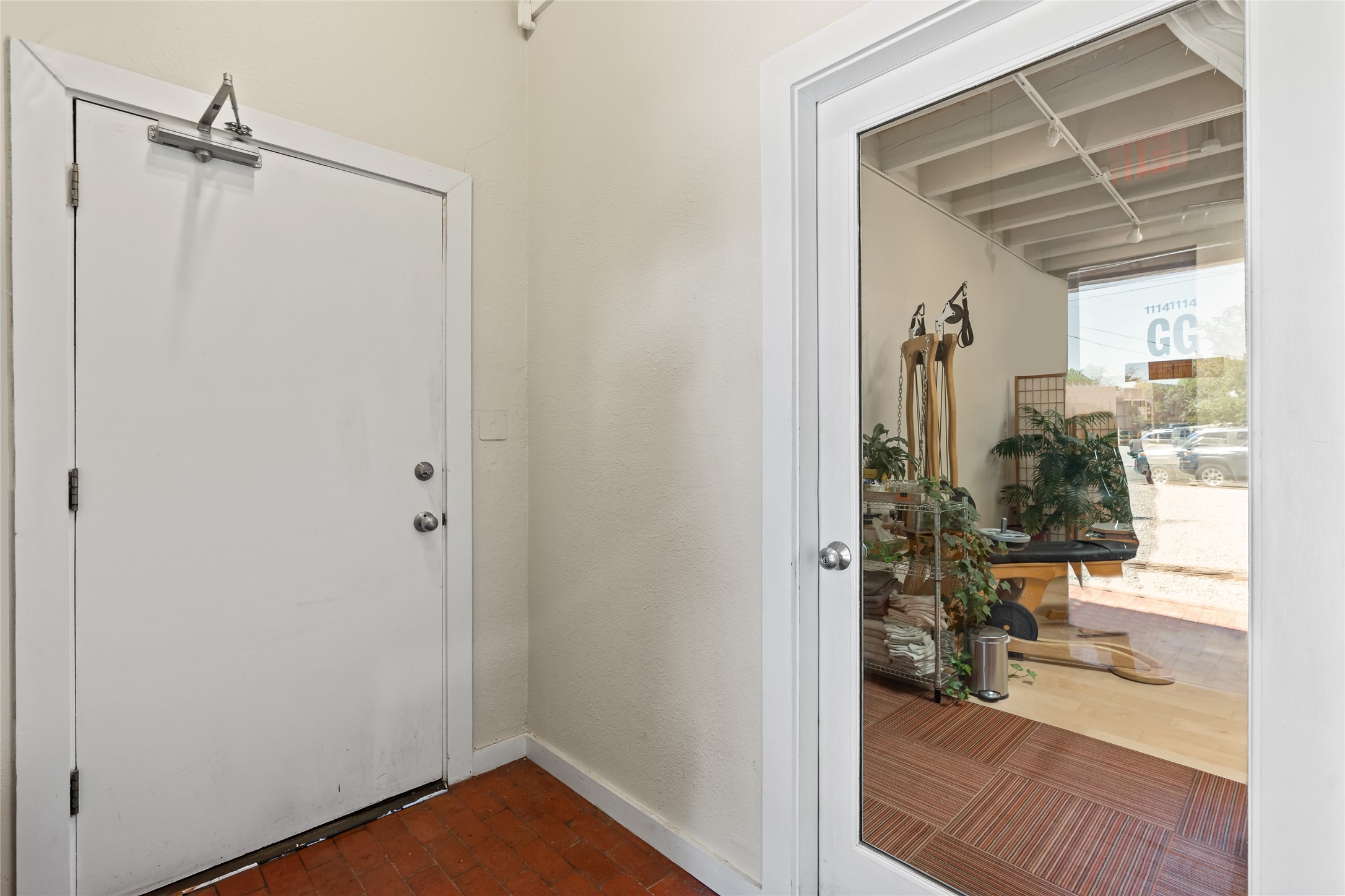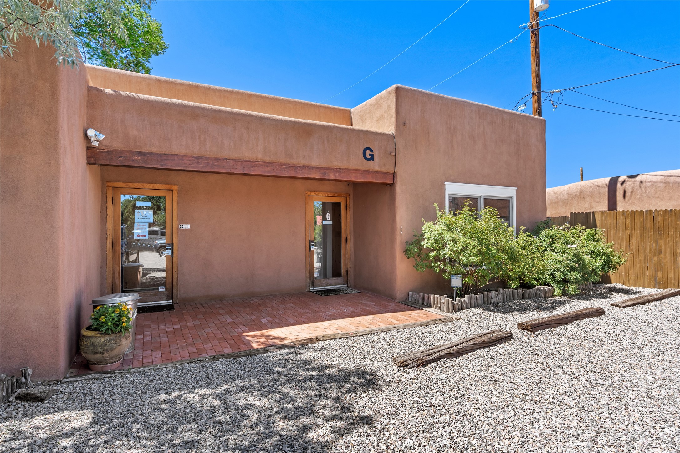 Located directly across from the Tune-Up Caf, this unique corner office condo offers two separate rental units and a private back courtyard--an ideal setup for owner-occupants, investors, or creative professionals. The main space (approx. 600 sq. ft.) features lofty ceilings, brick floors, a kitchenette, storage area, and direct access to a charming courtyard--perfect for client meetings or a quiet outdoor break. The design blends contemporary and industrial elements, echoing the creative spirit of the nearby Railyard District. The front unit (approx. 300 sq. ft.) includes a large window that floods the space with natural light and provides a view of Tune-Up Caf. A cozy fireplace adds character, making it an ideal office or practitioner's suite. Shared restrooms are located in the hallway just steps away. The Hickox Office Condo complex has recently been re-stuccoed and is in excellent condition. Opportunities to own in this well-maintained and rarely available complex are few and far between.