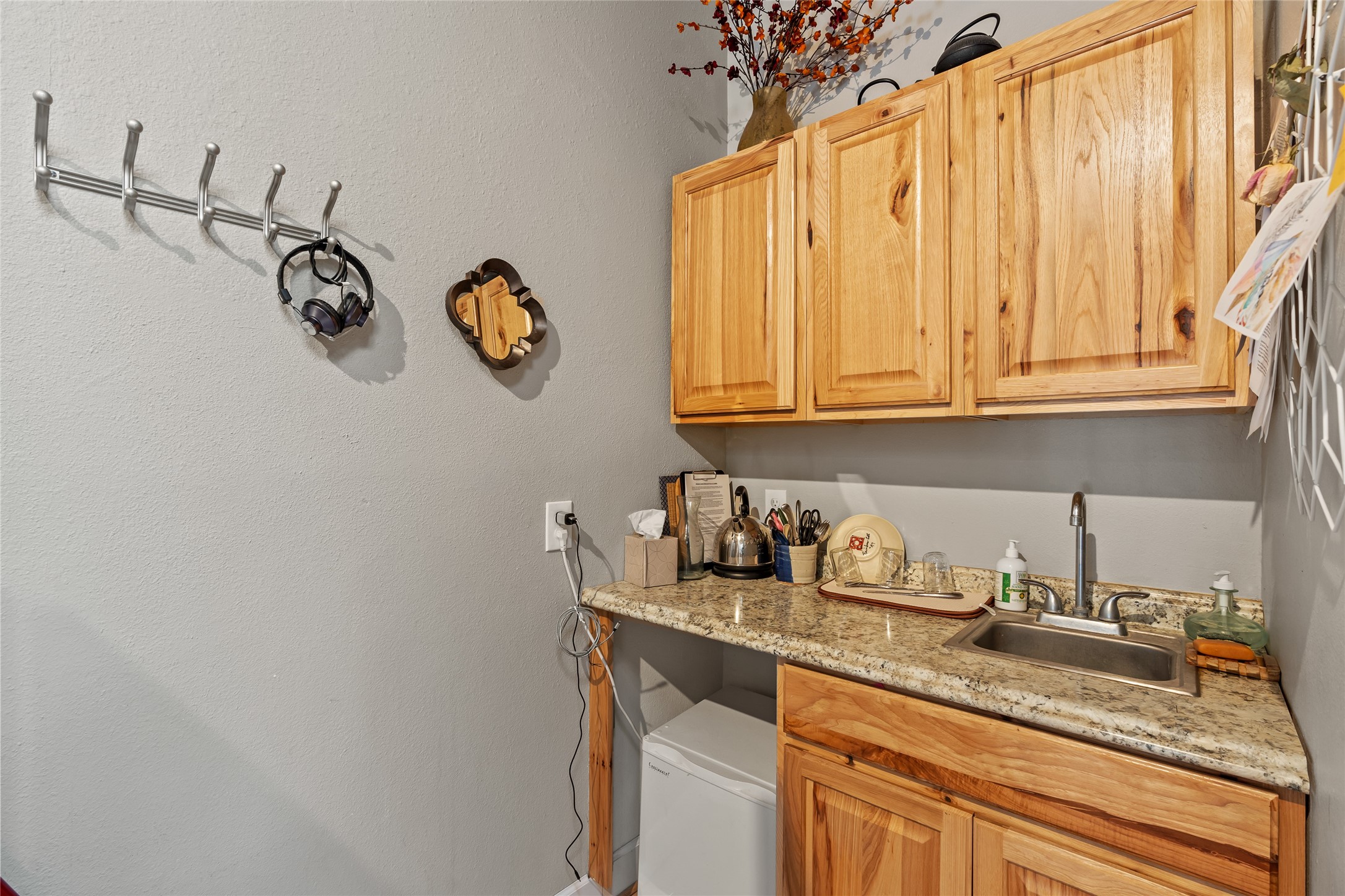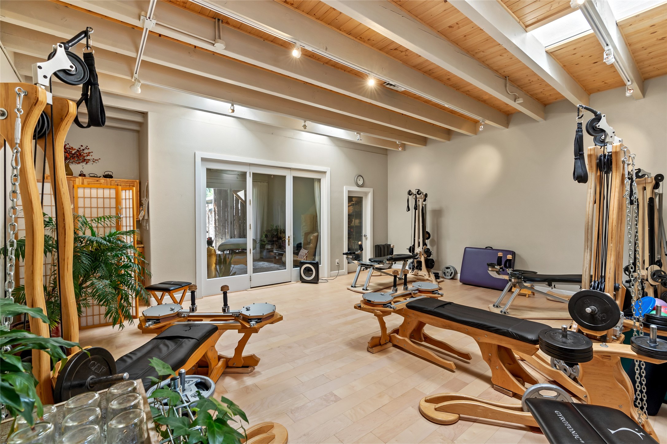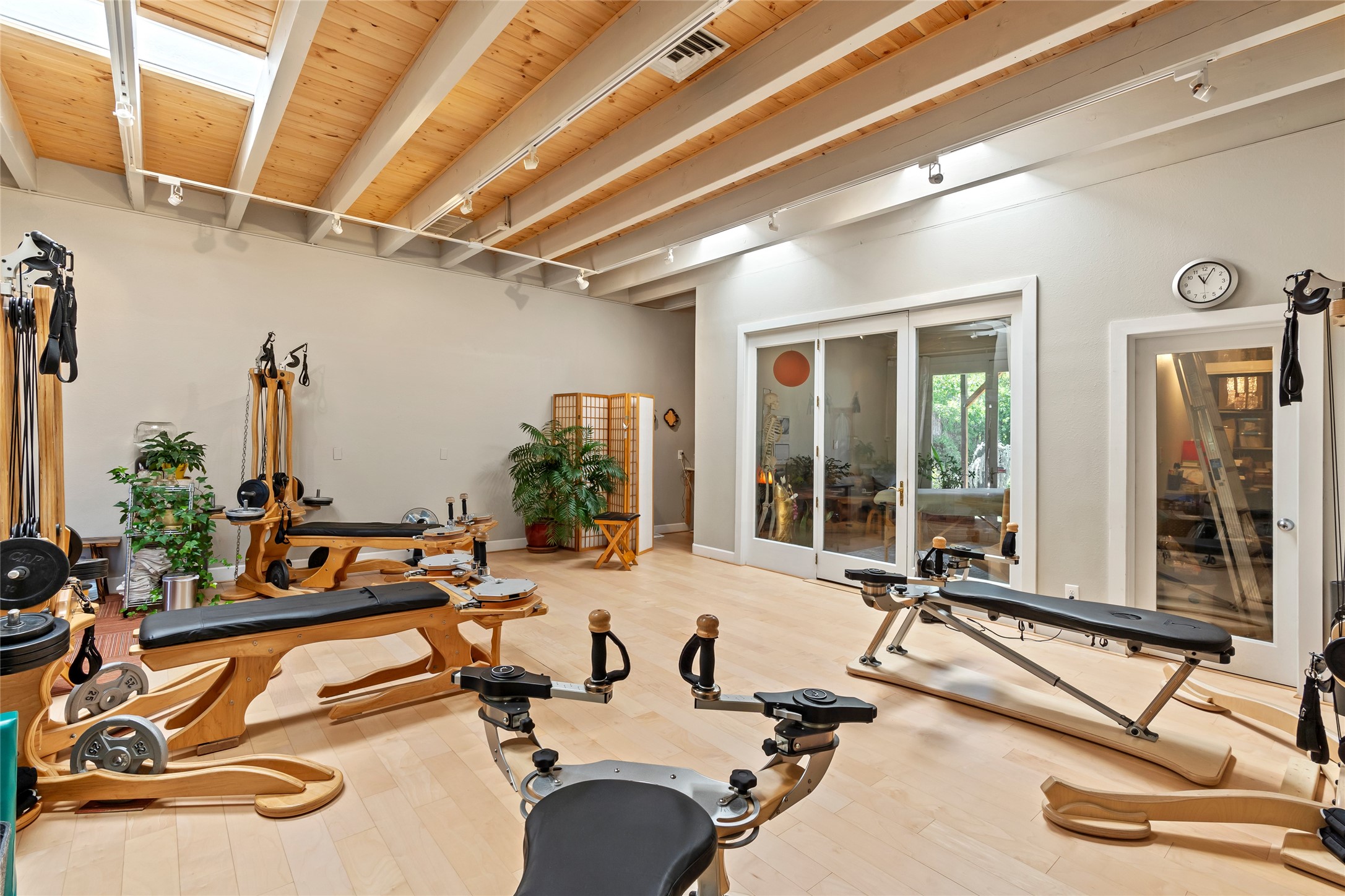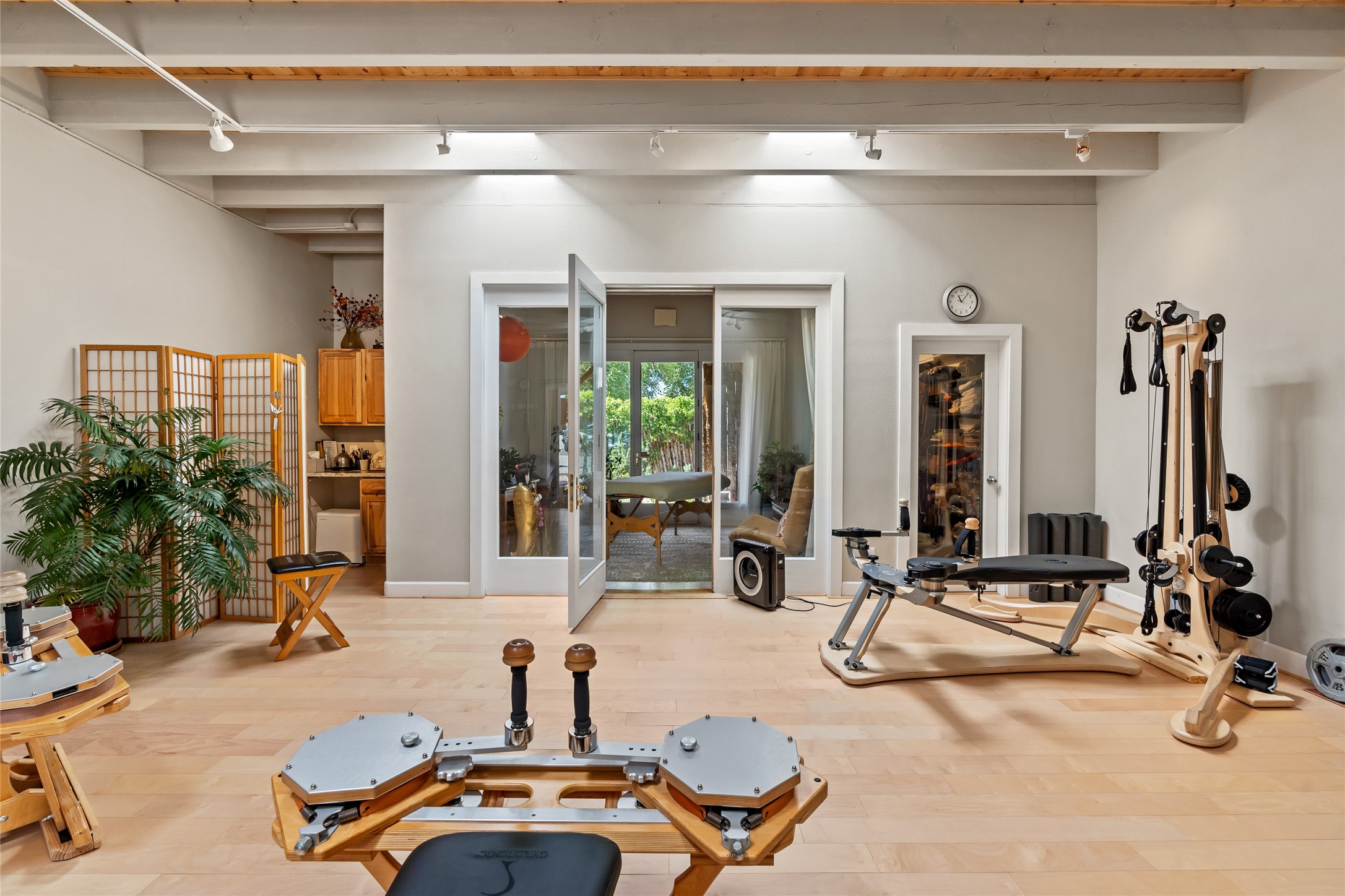 Located directly across from the Tune-Up Caf, this unique corner office condo offers two separate rental units and a private back courtyard--an ideal setup for owner-occupants, investors, or creative professionals. The main space (approx. 600 sq. ft.) features lofty ceilings, brick floors, a kitchenette, storage area, and direct access to a charming courtyard--perfect for client meetings or a quiet outdoor break. The design blends contemporary and industrial elements, echoing the creative spirit of the nearby Railyard District. The front unit (approx. 300 sq. ft.) includes a large window that floods the space with natural light and provides a view of Tune-Up Caf. A cozy fireplace adds character, making it an ideal office or practitioner's suite. Shared restrooms are located in the hallway just steps away. The Hickox Office Condo complex has recently been re-stuccoed and is in excellent condition. Opportunities to own in this well-maintained and rarely available complex are few and far between.