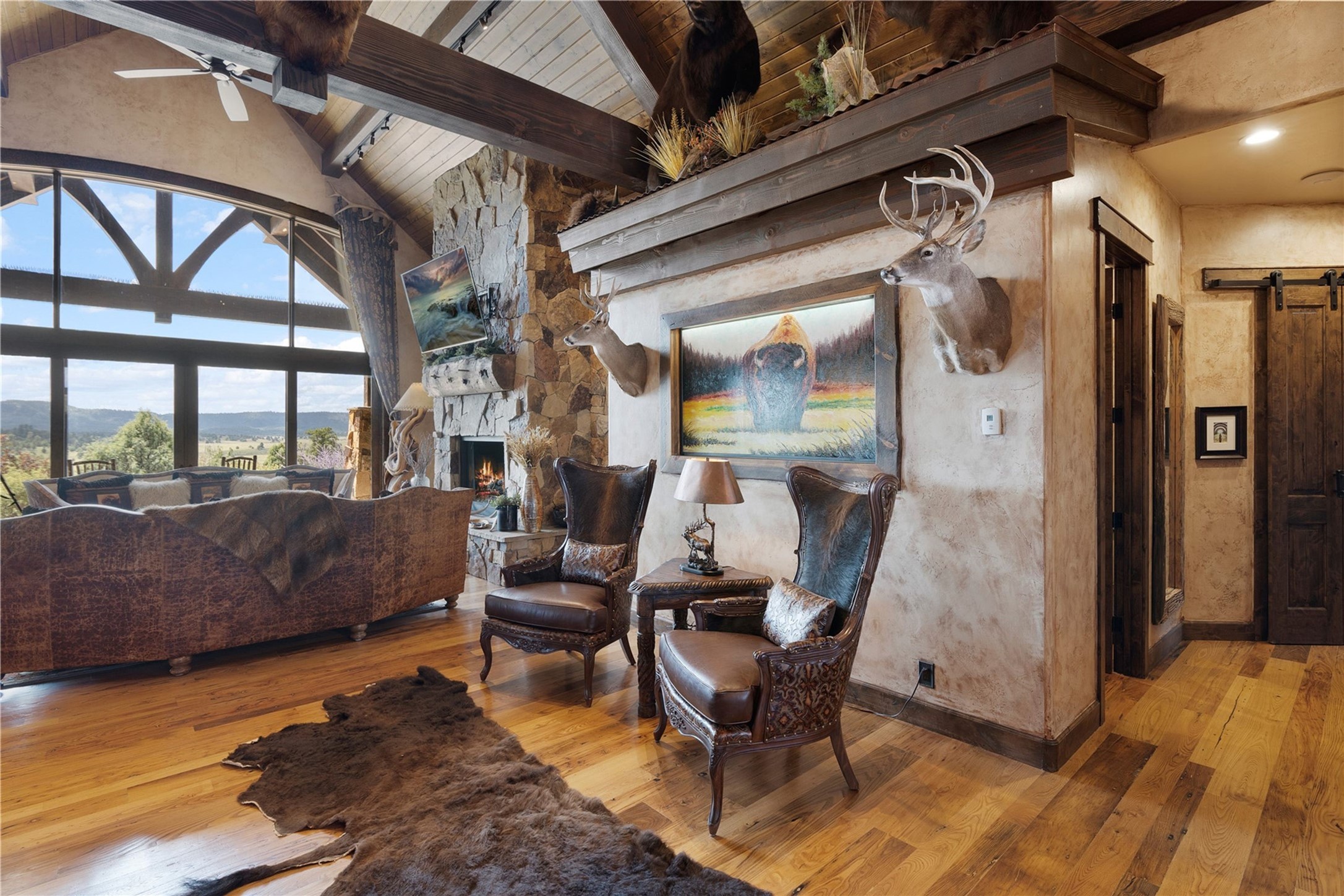 Priced to Sell! Welcome to Palomino Pines Ranch Estate luxury equestrian paradise set in the serene Southern Rockies. Encompassing 400 acres of enclosed, private land at over 8,000 feet, this custom-built estate offers breathtaking 360-degree views and a perfect blend of elegance and craftsmanship.The 3,400-square-foot living space plus garages is a masterpiece, featuring riverbed stone accents, antlered lighting, high wood beams, and chestnut floors. The gourmet kitchen is equipped with custom cabinets, granite countertops, and stainless steel appliances. Spacious living areas include a wine cooler, abundant storage, and outdoor walkways and gazebos that enhance the home's charm. A large, oversized, fully finished heated garage is perfect for your vehicles and side-by-sides. For the passionate/professional equestrian, this estate is an unparalleled dream. Bring your Quarter horses, Palominos, Thoroughbreds, Arabians, Morgans, and even bison to this state-of-the-art facility. The property features a 13,000-square-foot heated domed indoor arena with 9 stalls and caretakers' quarters, ensuring the utmost protection for your animals and safety for riders. Additionally, the estate boasts an Olympic-style outdoor training arena, 7 outdoor stables, a 150' x 350' riding area, and multiple steel-fenced pastures. With 5 RV spots equipped with full hookups, ponds, and water tanks, the estate is as functional and beautiful. This property isn't just for horses--it's also a haven for all your pets. A acre pet hotel, complete with fencing, a large dog house, and a spacious run, ensures every family member, whether two-legged or four-legged, has a luxurious place to call home. Built as a "forever home," no expense was spared in crafting this one-of-a-kind sanctuary. The Estate represents a rare and extraordinary opportunity. It's the life you've always dreamed of. Additional living space of 1000 sq ft in a separate garage. Bonus! 330 acres added to the listing! Now 400 acres!