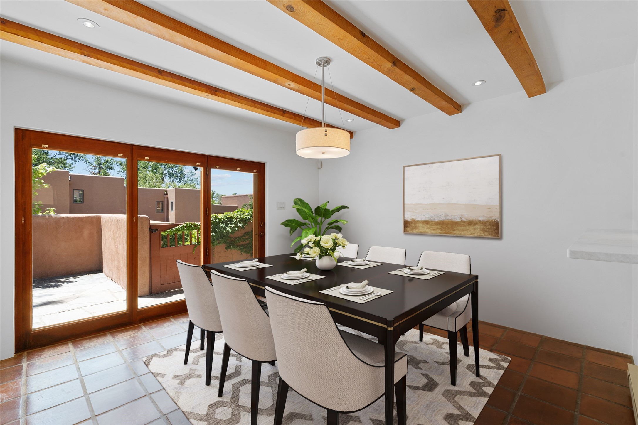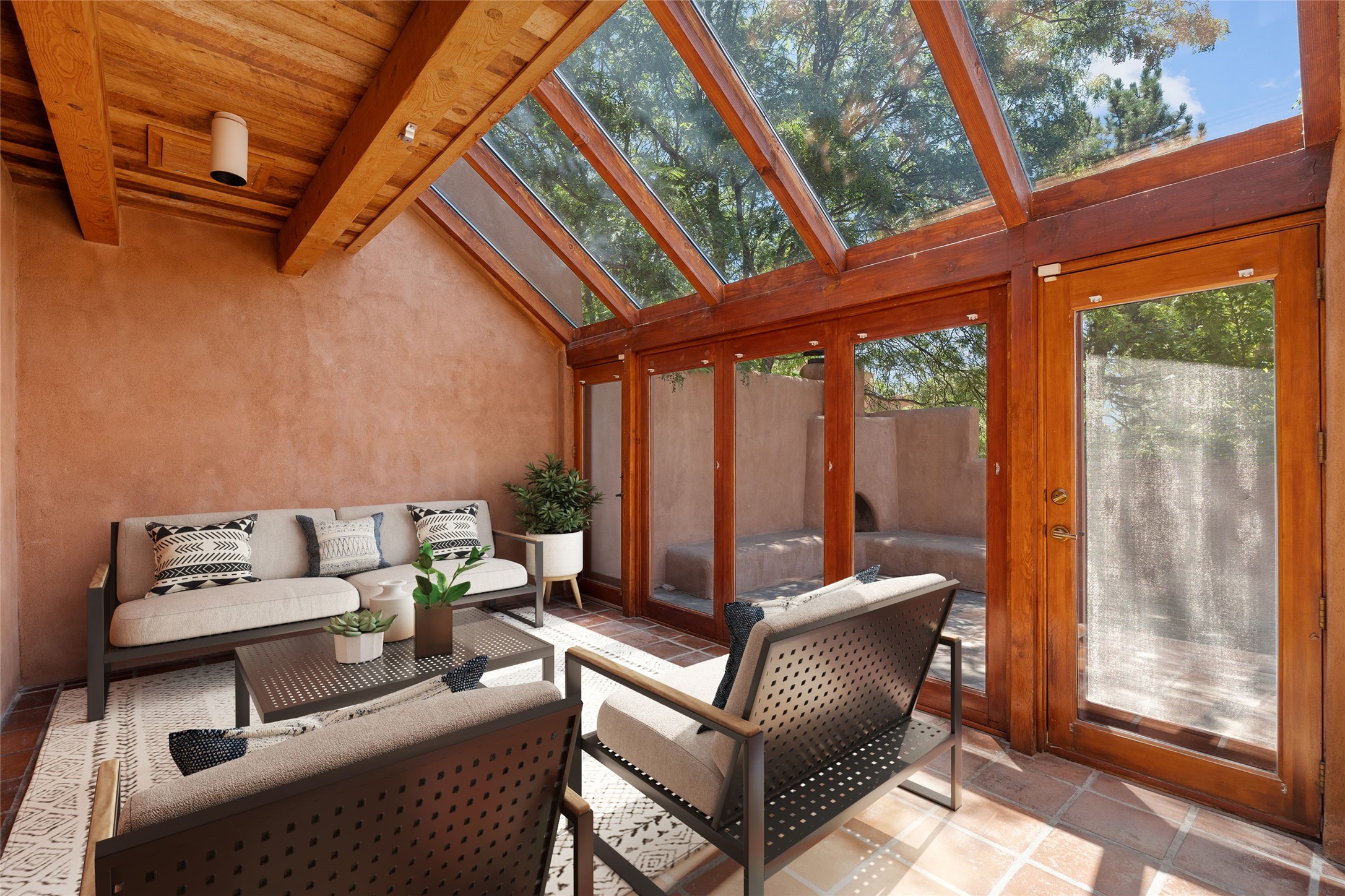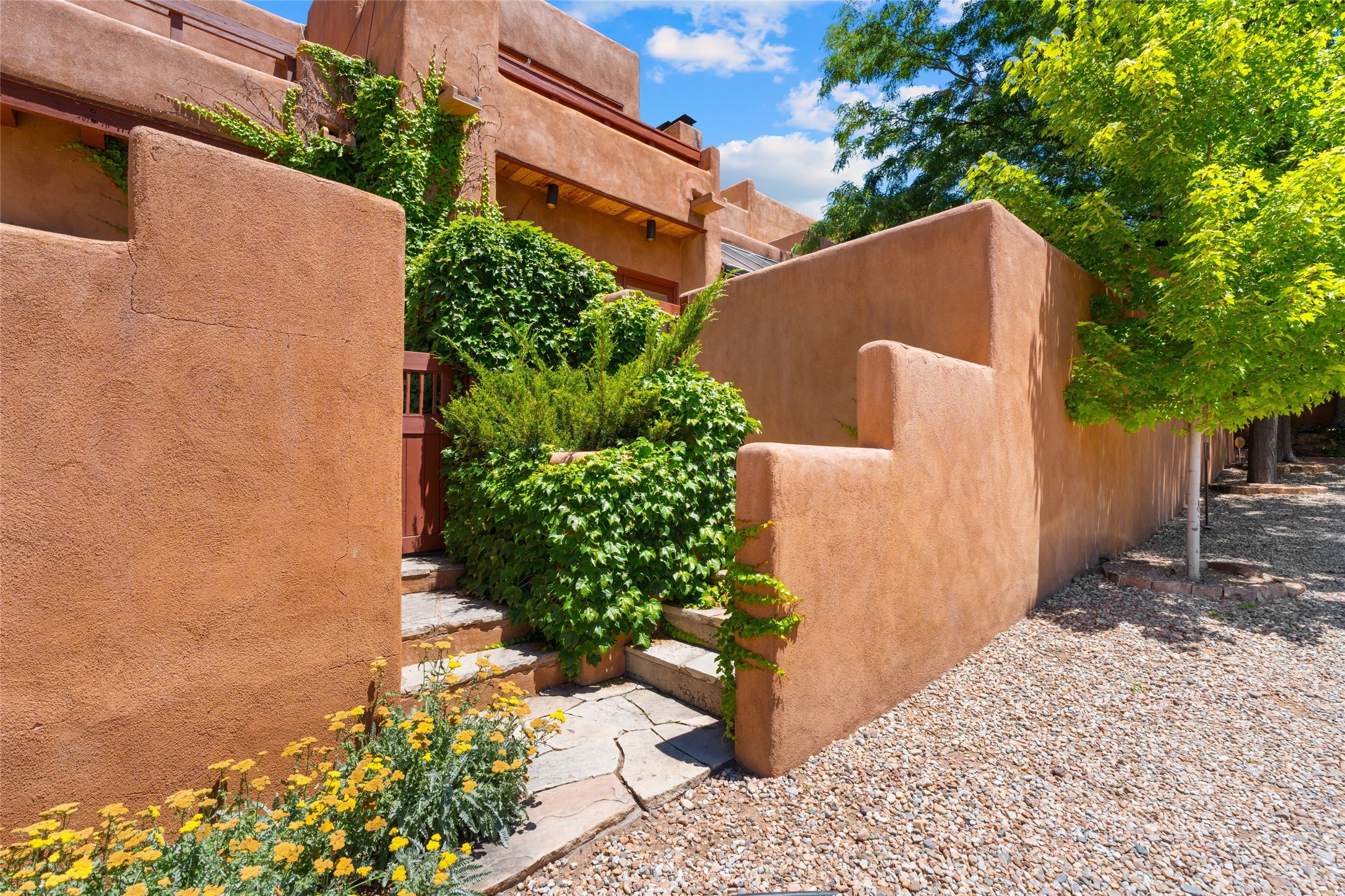 Nestled in the heart of historic Santa Fe just steps from Canyon Road, galleries, restaurants and the historic Plaza, this refined condominium in the highly sought after La Vereda Compound offers a rare blend of traditional charm and modern sophistication. Boasting 2 spacious bedrooms, a large office (perfect for remote work or guest overflow), 2 full bathrooms, and a half bath, this home is thoughtfully designed for comfort, convenience, and style. The updated kitchen features high-end appliances including a gas oven/range, contemporary cabinetry, and premium finishes, making is a delight for home chefs and entertainers alike. The high ceiled living and dining area are warm and inviting, with classic Santa Fe touches throughout. An added bonus to this property is the solarium off the living and dining rooms which provides extra living space as well as passive solar heat. There is a large laundry room and an extra utility/storage room. Upstairs, the primary suite opens to a private balcony with lovely views - an ideal spot for morning coffee or sunset unwinding. Enjoy serene surroundings and beautifully maintained grounds in a quiet community. Whether your seeking a peaceful getaway, a lock-and-leave second residence, or a sophisticated pied-a-terre, this La Vereda gem offers the quintessential Santa Fe lifestyle.