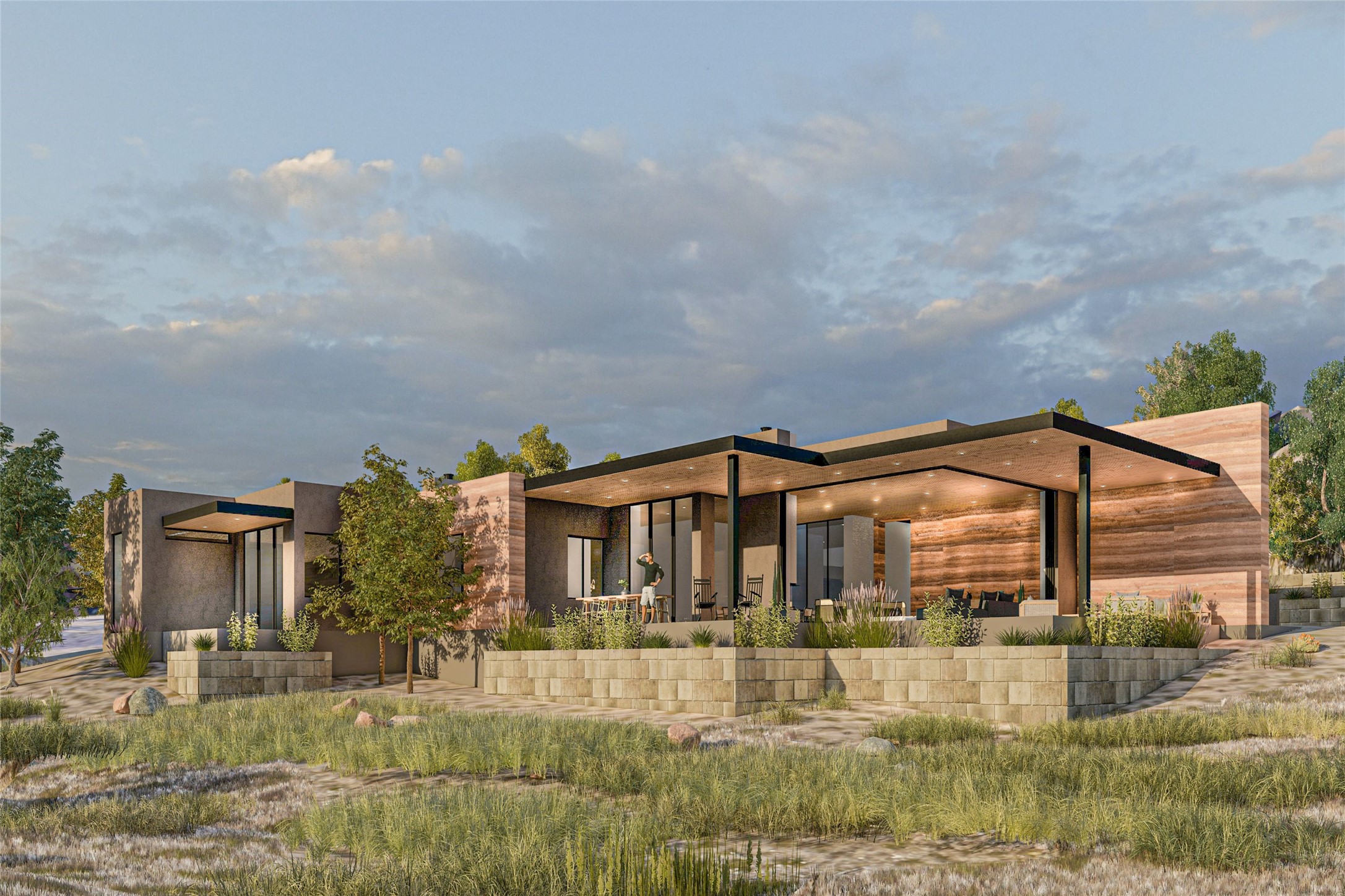 TO BE BUILT. With Las Campanas design approval and a building permit in-hand, groundbreaking can commence within weeks to create this one-of-a kind show place. The award-winning builders Zachary and Sons Homes will bring years of superior construction experience in Santa Fe to the execution of this sophisticated and warm contemporary single-level home. Sited along the fifth hole of the Sunset Golf Course, this coveted Parks Estates location excites with dramatic views of rolling green grass and lake, with a stunning mountain backdrop. New Mexico's own AIA Hunter Tidmore Redman has intentionally complimented the diversity of the landscape to create a masterpiece that will showcase all the principles of modern design and will result in a state-of-the art custom home in one of the most desirable settings in Las Campanas. The smart floor plan with three spacious bedroom suites, a media/flex room, three car garage and open living spaces bring the outdoors inside with walls of glass opening to central gardens and over 1700 square feet of outdoor living under the covered portals. A well-appointed chef's kitchen with an entertainment island will be the heart of the home. The builder will convey the architect's innovations with the use of modern materials like concrete, glass and steel combining seamlessly with traditional wood ceilings and walls complimented by natural stone elements. The buyer will be able to choose custom finishes and the striking result will provide not only an elegant framework for sophisticated living but a retreat that allows for the maximum absorption of the surrounding landscape and dramatic displays of Northern New Mexico light. Come live the dream and all that the gated community of Las Campanas has to offer which includes golf, spa, fitness, swimming, tennis, pickleball, equestrian center, dog park, trail systems, 24 hour security and a grand clubhouse with world class dining.