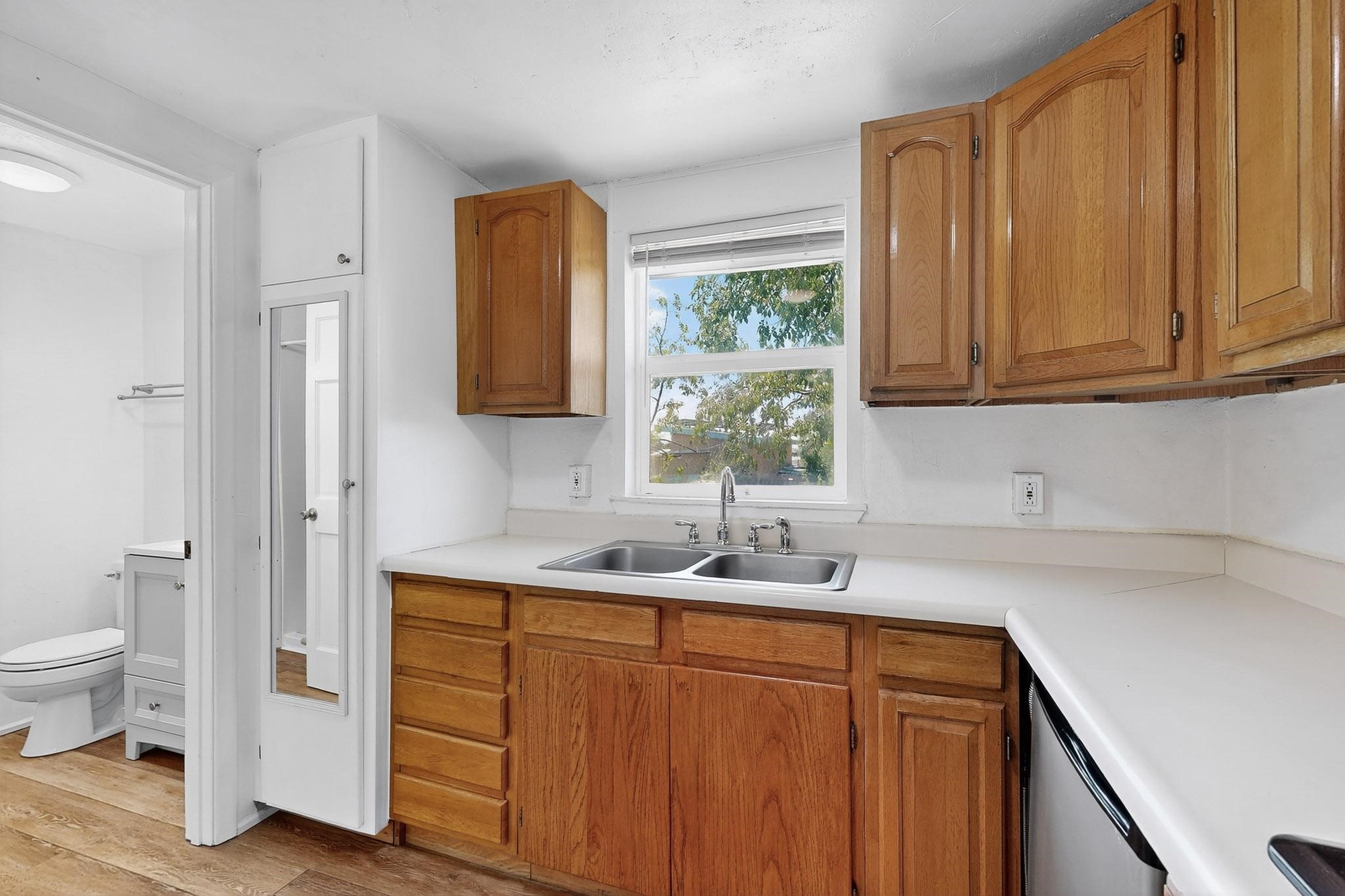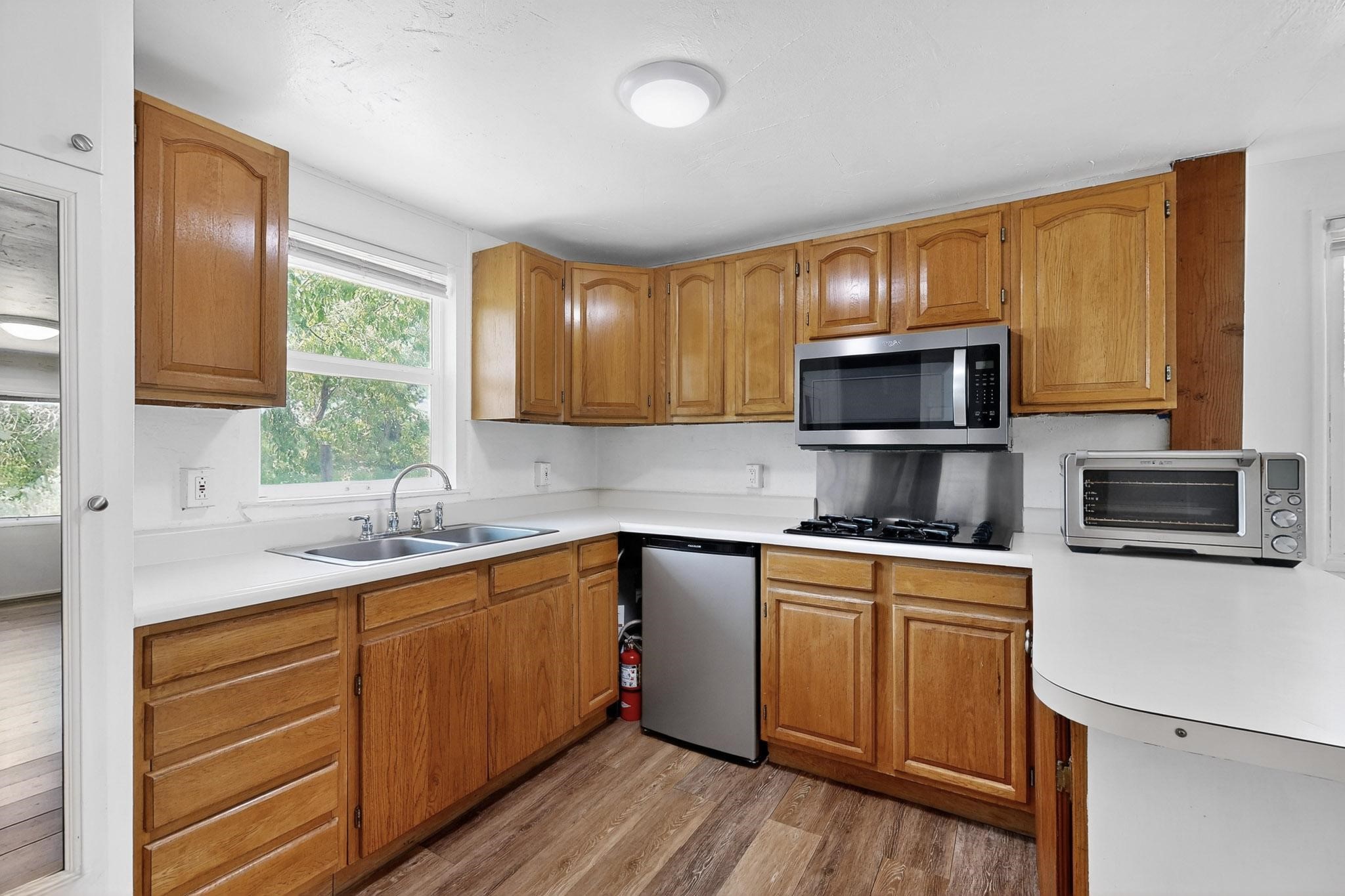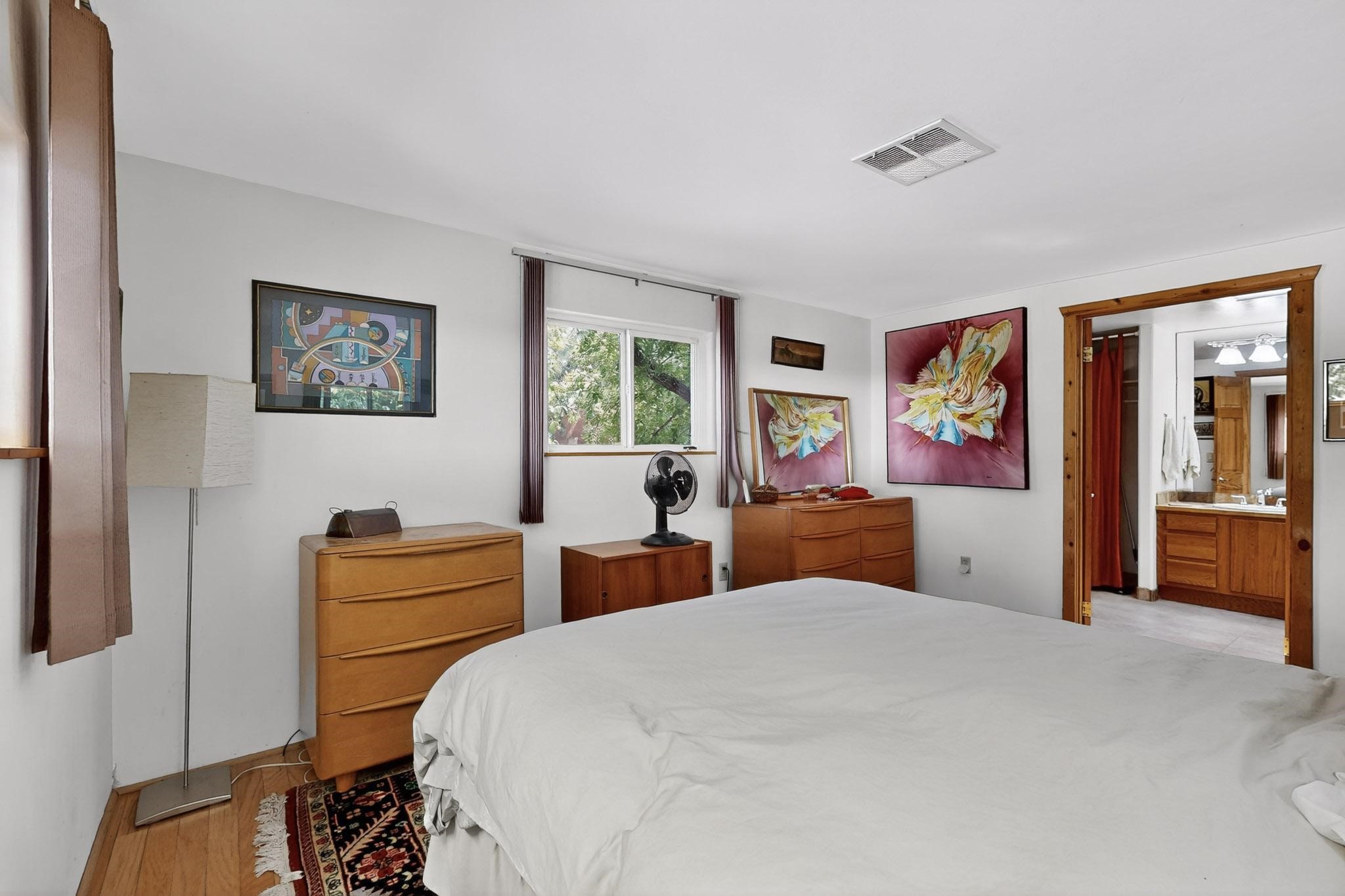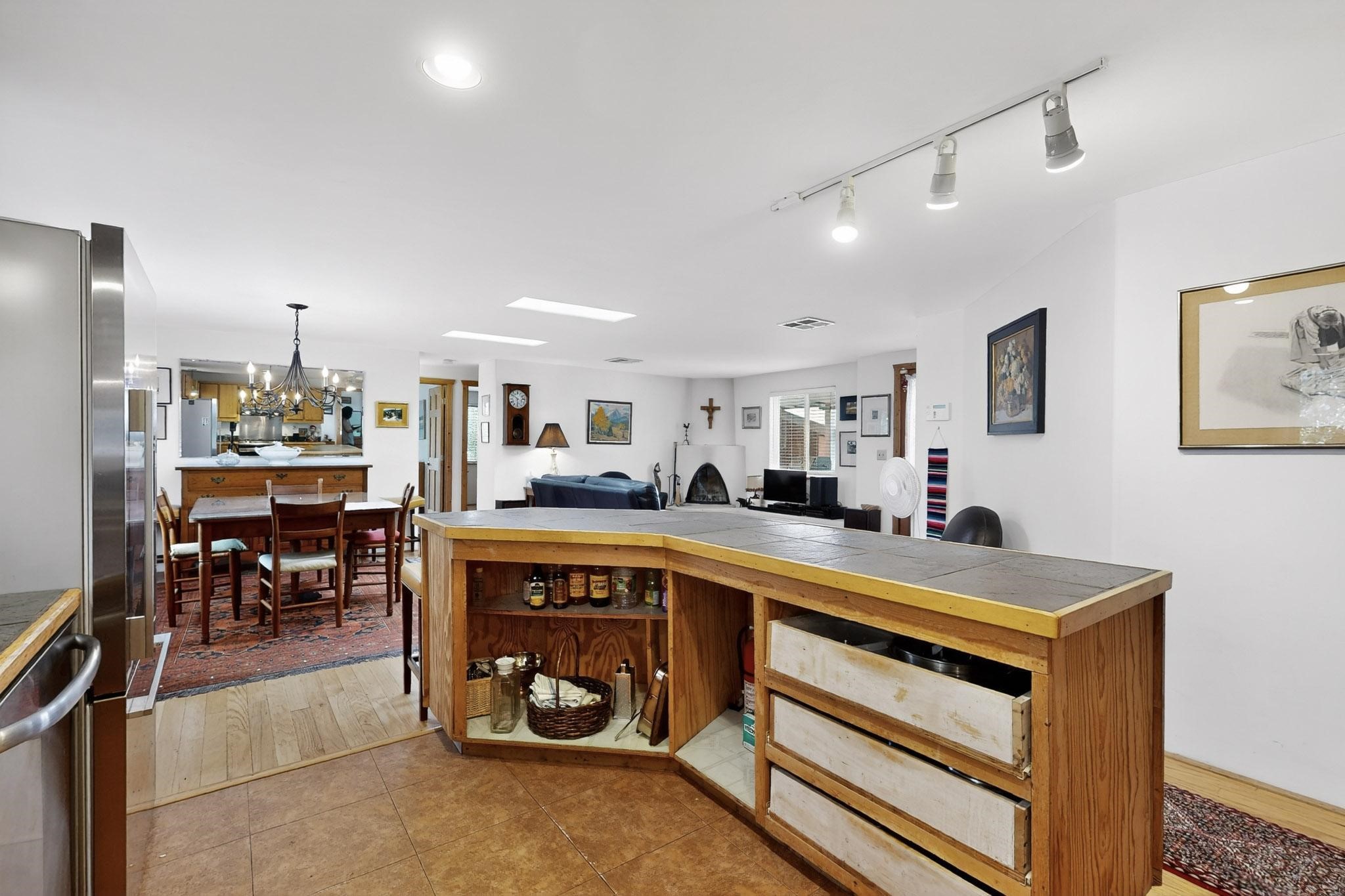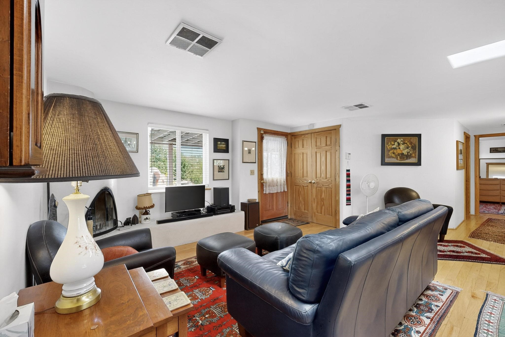 Unique and charming property at the end of Paseo De La Conquistadora on just under a 1/2 acre corner lot. Potentially an ideal ADU (accessory dwelling unit). The property lends itself to multigenerational living with the elderly parents, an offspring and a caregiver living in close proximity but with separate living spaces for privacy. Nestled under mature tree cover this property has three residential dwellings. The site built house is composed of two units. One is a one bedroom with three quarter bath and has its own walled courtyard with flagstone pavers. The smaller unit is an efficiency with a three quarter bath. There is a manufactured home with two bedrooms, two office areas and two baths. It features oak and tile floors and has a nice ambience accented by a kiva fireplace. It also has a 684 square porch running the length of the building. There is a wonderful nicely landscaped side yard that is fenced and very private. The lot has numerous fruit trees, lilacs and tall pines and sits up high above the Santa Fe river and there is a nice view of the Sangres. The Santa Fe river trail is just below the lot. The property has secure access via a remote controlled gate.