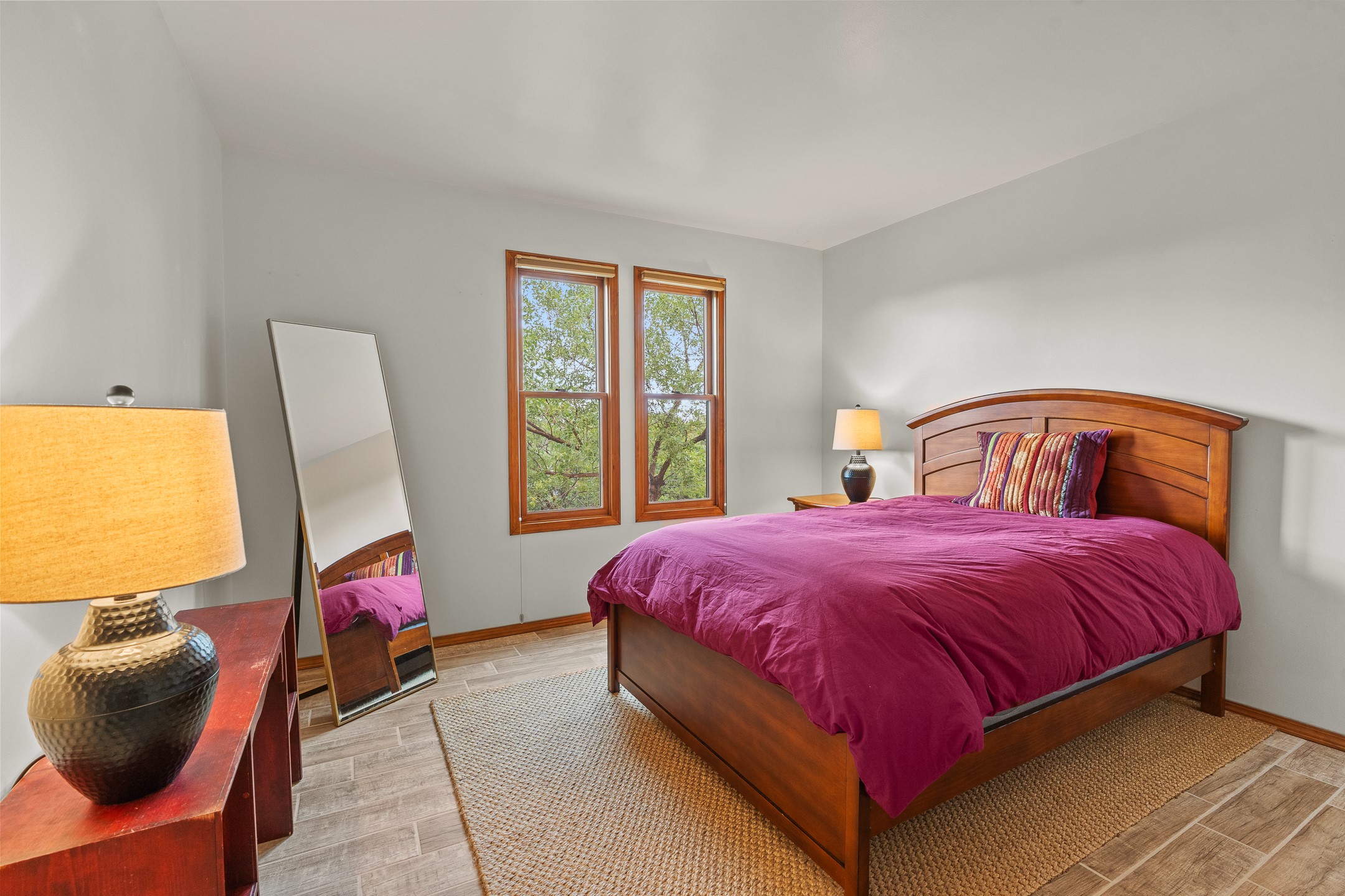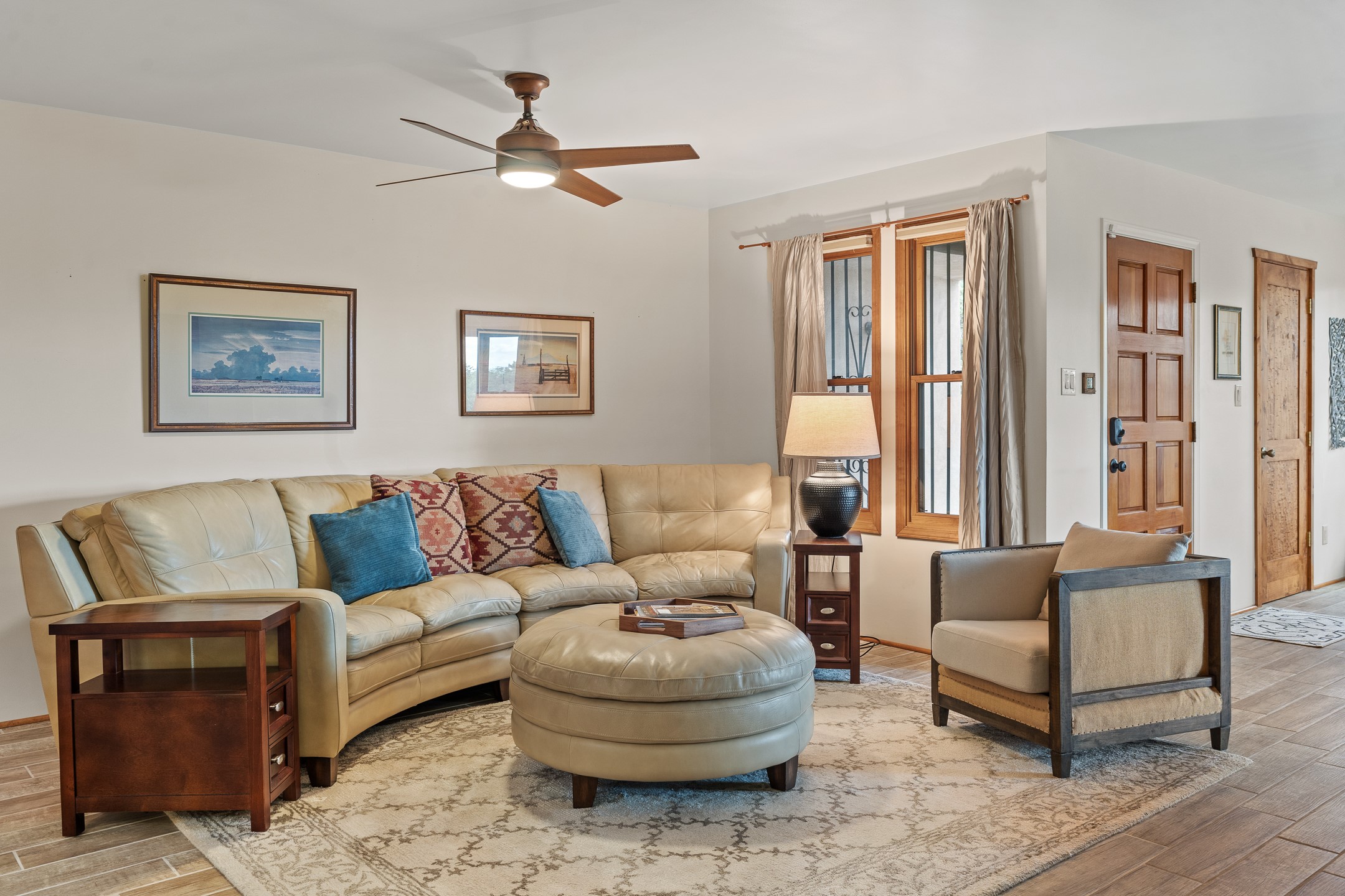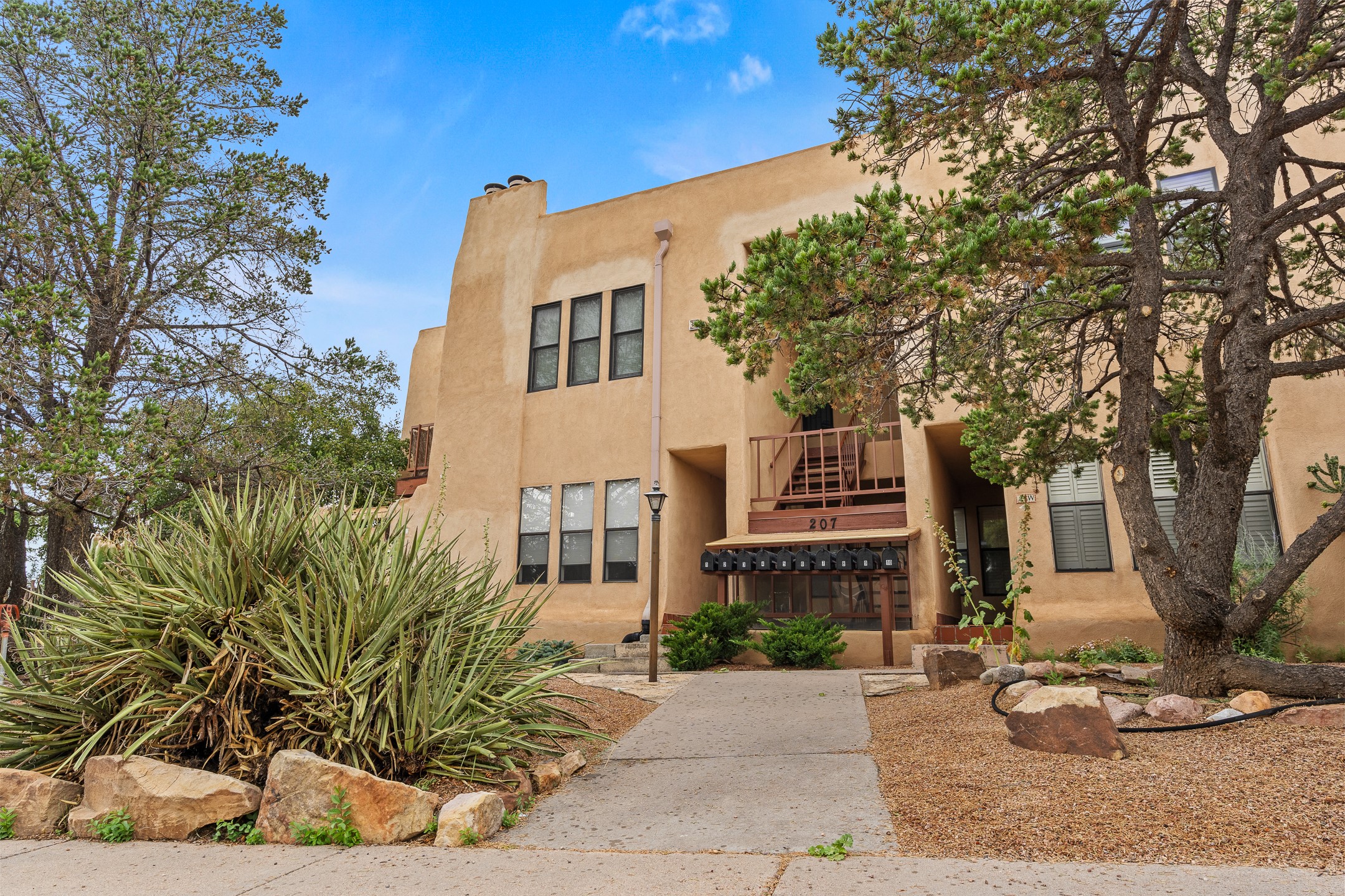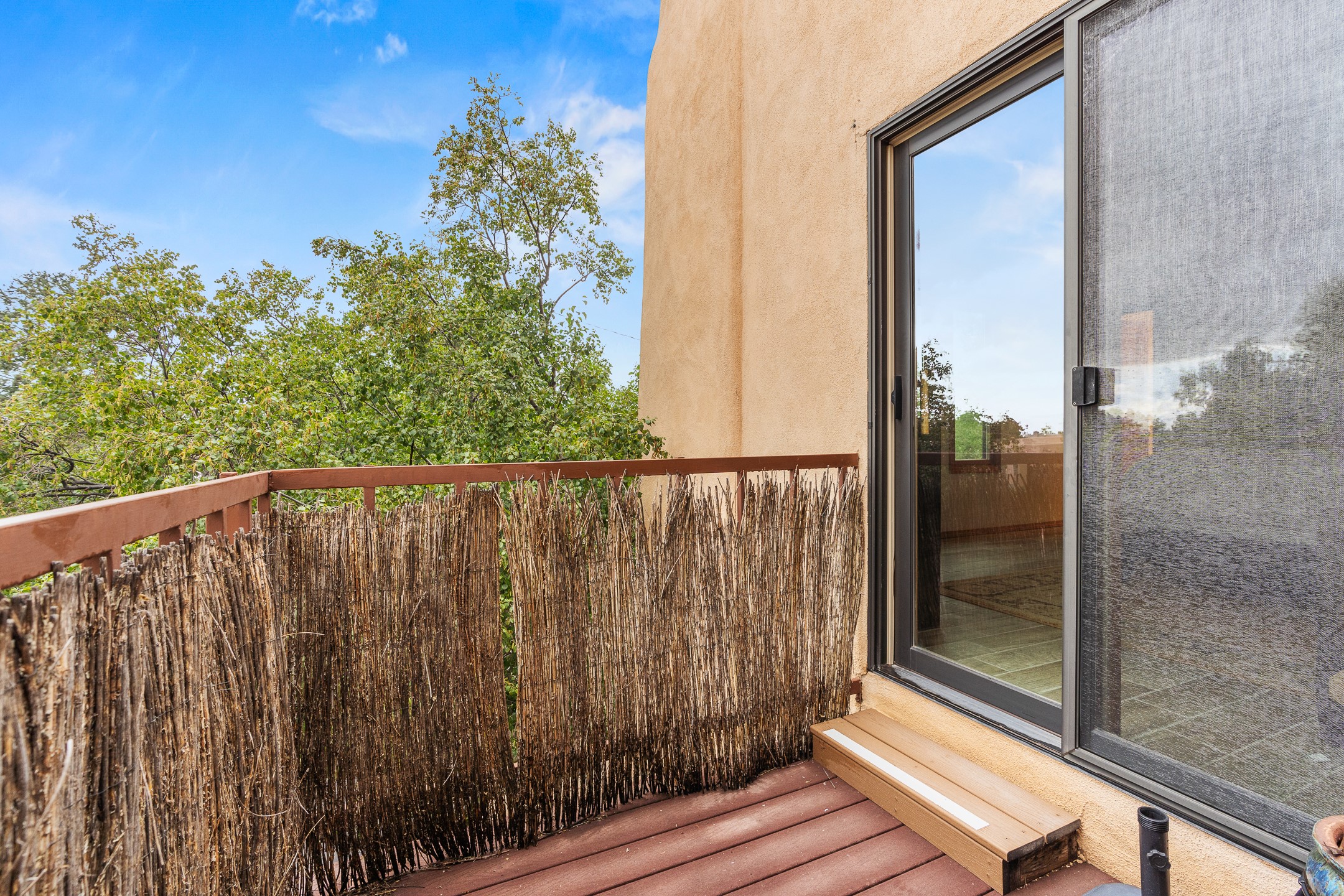 Located in the sought-after South Capital neighborhood, this beautifully updated condo in Los Pueblos is a hidden gem offering both comfort and convenience. Just under 1.5 miles to the Santa Fe Plaza and less than a mile to the Railyard District, enjoy easy access to Whole Foods, Trader Joe's, Natural Grocers, popular restaurants, and local amenities.Spanning 1,472 sqft, this 2-bedroom, 1-bath home (originally a 2-bath and still plumbed for a second bath) features a spacious open-concept layout that seamlessly blends the kitchen, dining, and living areas. A cozy sitting area with a fireplace and sliding glass doors opens to a private balcony, also accessible from the primary bedroom--perfect for relaxing.The home is tiled throughout, offering ease of maintenance and a clean, cohesive look. The tastefully updated kitchen is a standout with granite countertops, a bar-top counter, pantry, and chic lighting fixtures over both the kitchen and dining areas. Newer double-paned windows and a ceiling fan in the living room add comfort and energy efficiency.The large primary suite connects directly to the oversized bathroom, which also serves as the guest bath with a secondary entrance from the hallway. The bathroom includes a walk-in shower and generous space for comfort. The guest bedroom is privately situated down the hall.A former second bathroom has been thoughtfully converted into a large laundry and storage room, complete with a stackable washer and dryer (included) and ample closet space throughout.Additional highlights include:An 8x8 storage unit in the secure underground garage,furniture package available,prime location near Santa Fe's best shopping, dining, and cultural attractions.Whether you're looking for a full-time residence, weekend retreat, or investment opportunity, this stylish condo offers the best of Santa Fe living in an unbeatable location.
