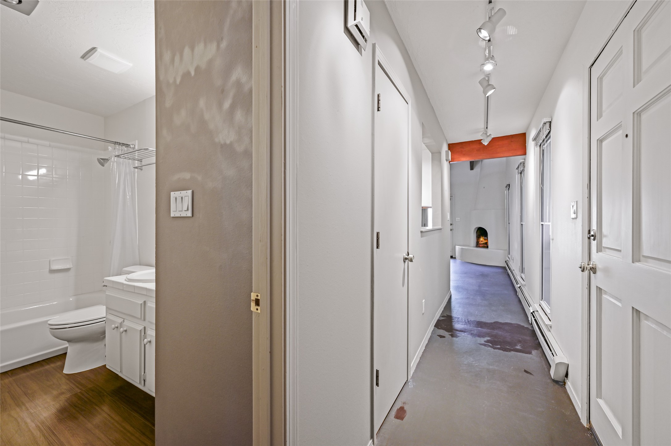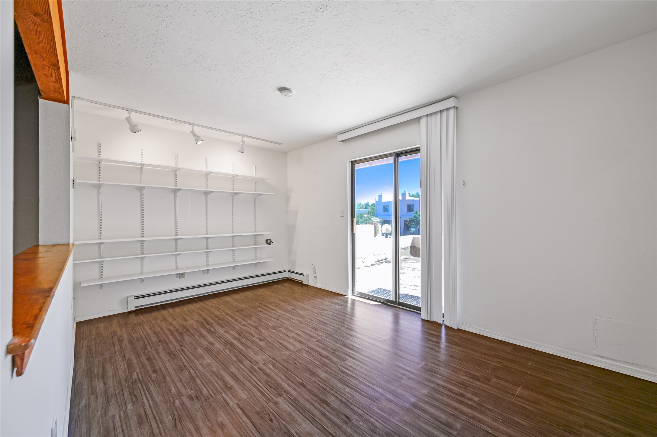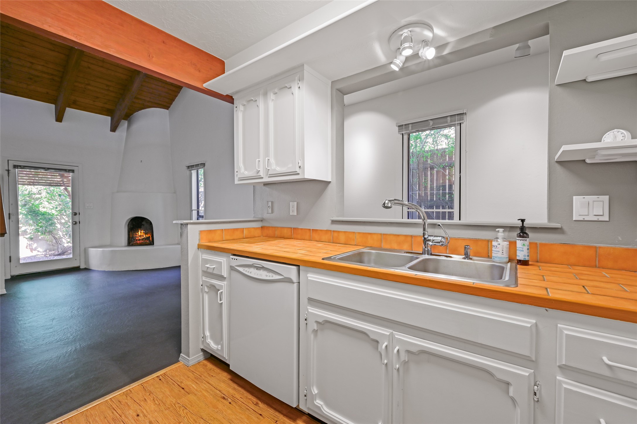 A charming townhome in the Las Americas development, located in the heart of Santa Fe. This inviting open-concept layout flows seamlessly from the living room to the kitchen. The living area features a cozy kiva fireplace, built-in bookshelves, and soaring vaulted ceilings. Upstairs, you'll find a spacious studio with a private balcony offering scenic views, while the primary bedroom is conveniently located on the main level along with a full bath for easy accessibility. The property also includes a fenced backyard with mature landscaping, perfect for relaxing or entertaining. Centrally located, this townhome offers close access to Santa Fe's vibrant shops, restaurants, and beautiful natural spaces. With several nearby trails, it provides the ideal balance of urban living and outdoor adventure.