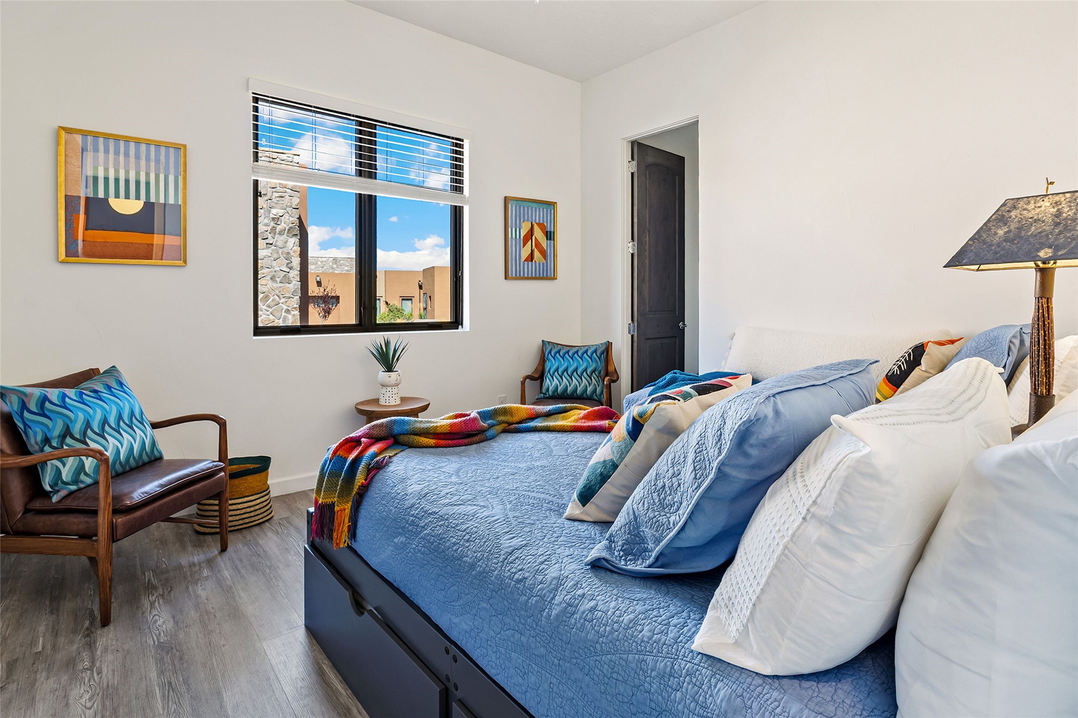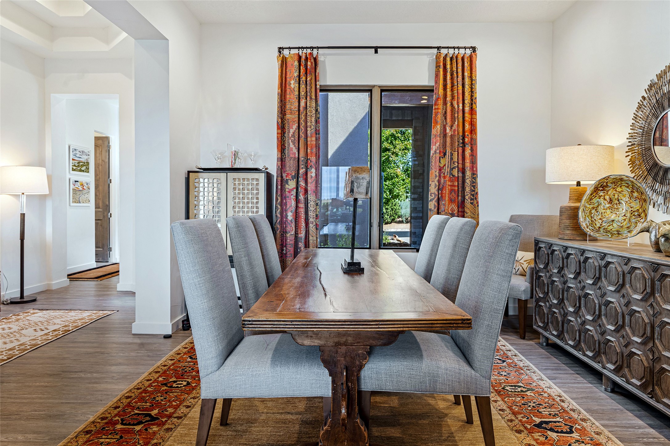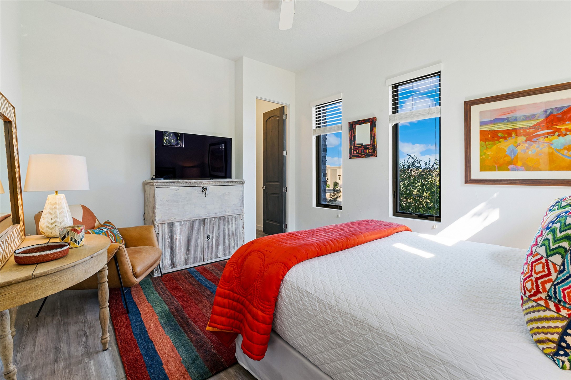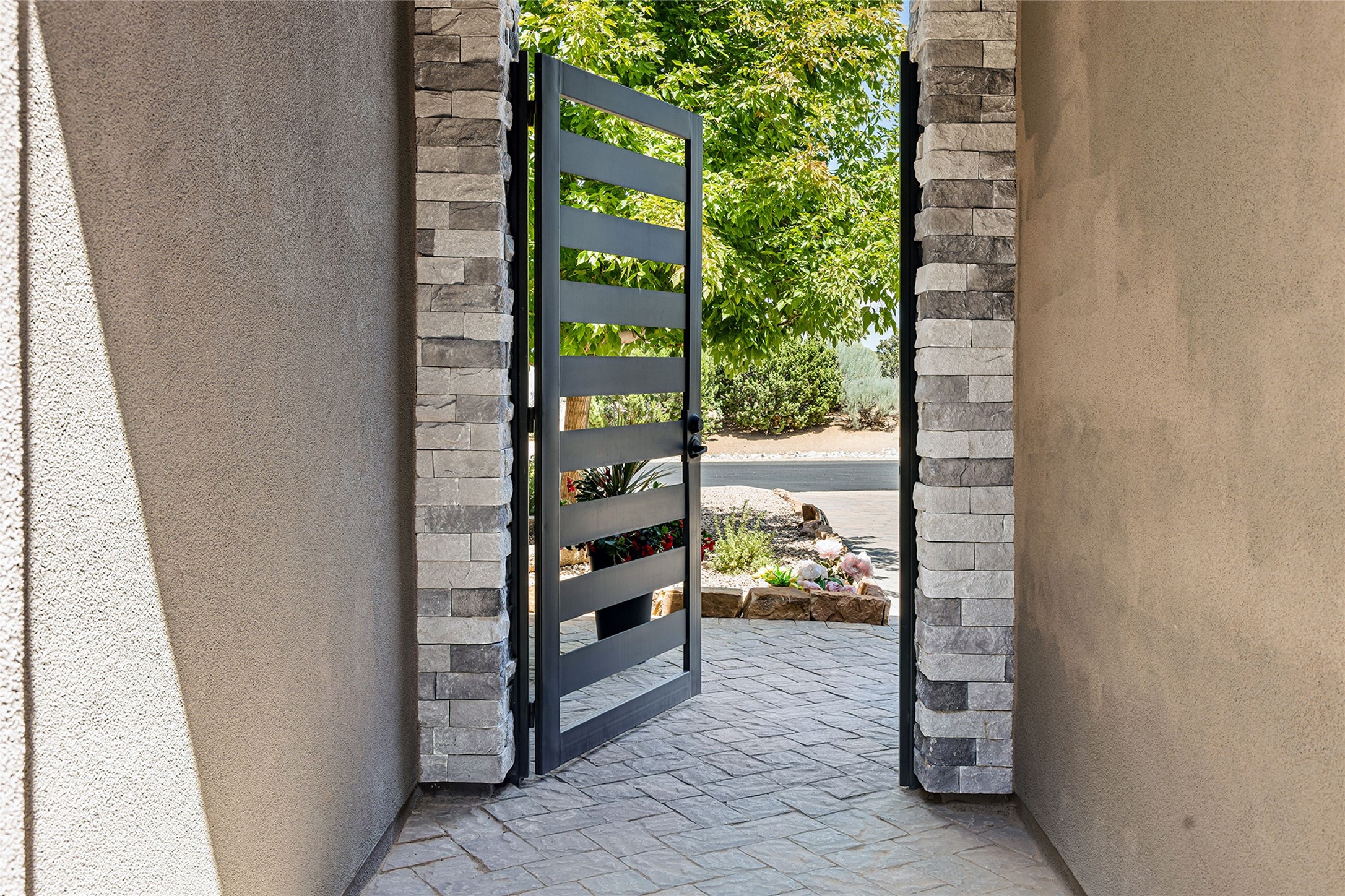 Experience the ultimate Las Campanas lifestyle with stunning golf course views and just a short walk to The Club at Las Campanas! Elevated above it all, this beautifully upgraded and custom-designed Santa Fe retreat offers four bedrooms and four bathrooms in a turnkey package, including all furnishings and artwork. Boasting exceptional golf course and sunset views, this exciting home seamlessly combines contemporary architecture with Santa Fe warmth. Sited on an elevated view lot, the residence welcomes you through a private, gated front courtyard featuring a tranquil fountain. Inside, the spacious, open-concept great room showcases breathtaking golf course views, a gas fireplace with stone accents, and a generous dining area. The newly updated chef's kitchen is a culinary dream, with natural stone countertops, an expansive island, a walk-in pantry, top-of-the-line appliances, and a casual dining space.The luxurious owner's suite offers a curved wall of windows framing the stunning views, along with a renovated en-suite bath featuring dual vanities, a soaking tub, walk-in shower, and a spacious walk-in closet. The separate guest wing provides three additional bedrooms for complete privacy from the main living areas.Step outside to an exceptional outdoor living space, one of the finest in Las Campanas, overlooking dual golf fairways and the newly opened Jemez Putting Course. Entertain effortlessly with a newly installed pizza oven, built-in BBQ grill, covered portal, and enclosed courtyard--perfect for pets and privacy.This defines excellence and offers an incredible and immediate opportunity to start enjoying the Santa Fe lifestyle. The owner's Equity Golf Membership to The Club at Las Campanas is also available for purchase separately.
