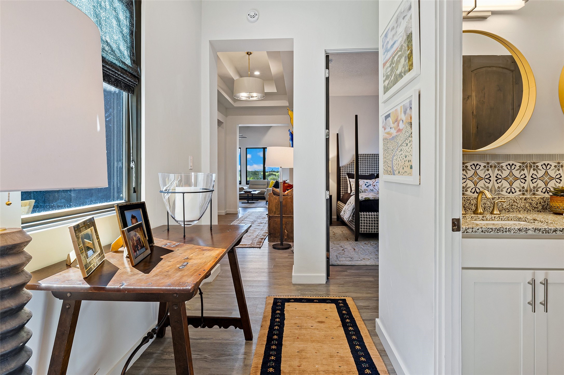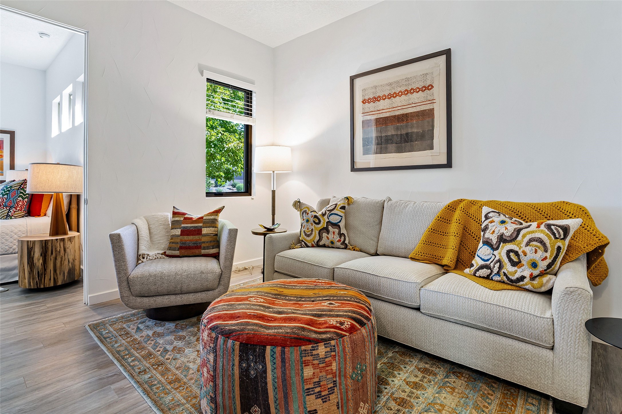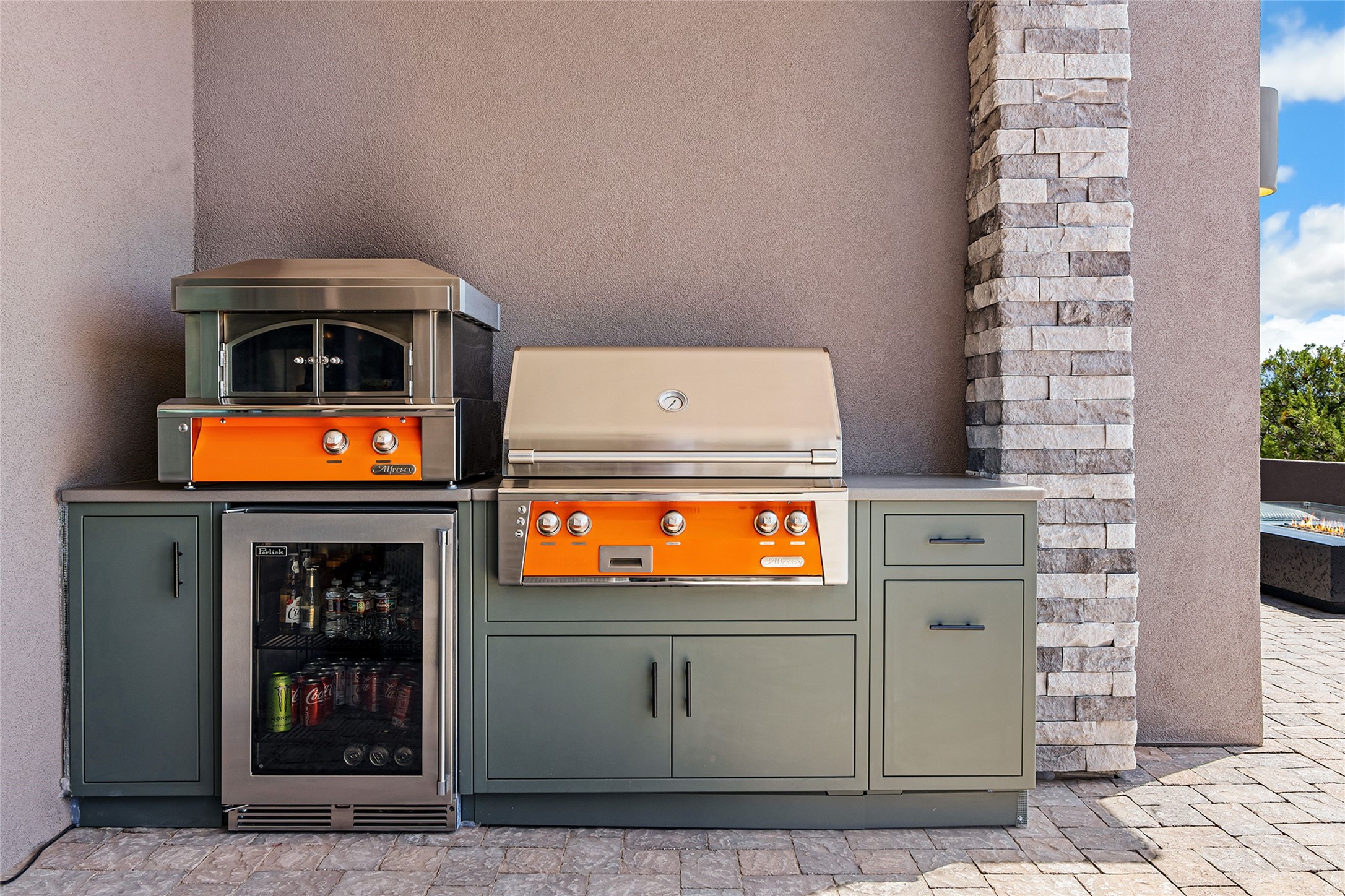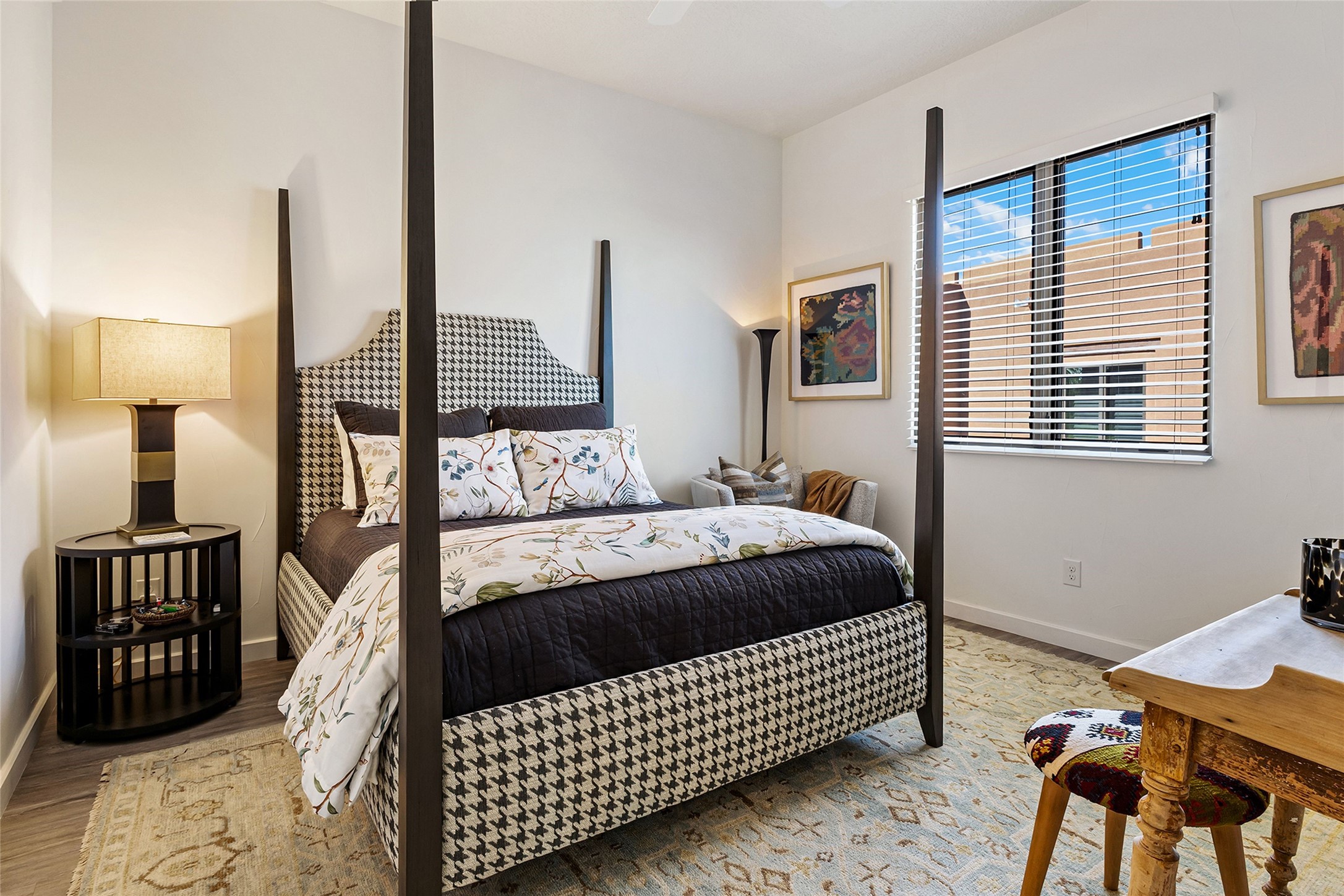 Experience the ultimate Las Campanas lifestyle with stunning golf course views and just a short walk to The Club at Las Campanas! Elevated above it all, this beautifully upgraded and custom-designed Santa Fe retreat offers four bedrooms and four bathrooms in a turnkey package, including all furnishings and artwork. Boasting exceptional golf course and sunset views, this exciting home seamlessly combines contemporary architecture with Santa Fe warmth. Sited on an elevated view lot, the residence welcomes you through a private, gated front courtyard featuring a tranquil fountain. Inside, the spacious, open-concept great room showcases breathtaking golf course views, a gas fireplace with stone accents, and a generous dining area. The newly updated chef's kitchen is a culinary dream, with natural stone countertops, an expansive island, a walk-in pantry, top-of-the-line appliances, and a casual dining space.The luxurious owner's suite offers a curved wall of windows framing the stunning views, along with a renovated en-suite bath featuring dual vanities, a soaking tub, walk-in shower, and a spacious walk-in closet. The separate guest wing provides three additional bedrooms for complete privacy from the main living areas.Step outside to an exceptional outdoor living space, one of the finest in Las Campanas, overlooking dual golf fairways and the newly opened Jemez Putting Course. Entertain effortlessly with a newly installed pizza oven, built-in BBQ grill, covered portal, and enclosed courtyard--perfect for pets and privacy.This defines excellence and offers an incredible and immediate opportunity to start enjoying the Santa Fe lifestyle. The owner's Equity Golf Membership to The Club at Las Campanas is also available for purchase separately.
