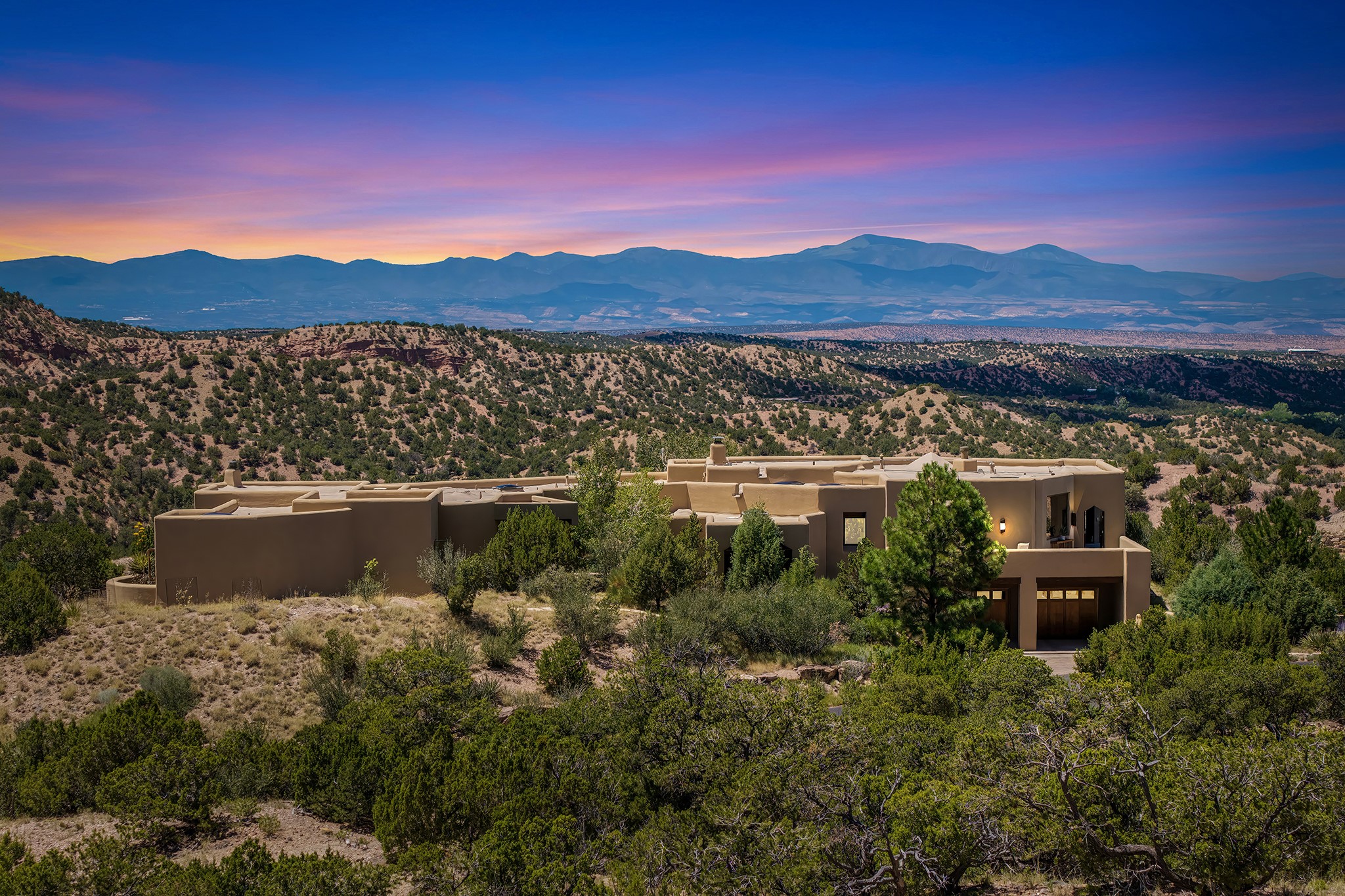 An exceptional Value in Bishop's Lodge Hills & Villas! Perched above the Tesuque hills on 2.38 acres, 9 Lodge Circle offers a rare combination of panoramic mountain views and a unique Southwestern design--all just minutes from the Plaza. Set within the gated community of Bishop's Lodge Hills and Villas, this extraordinary property includes a 4,300 sq. ft. main residence and a versatile 1,500 sq. ft. detached studio, with commanding views of both the Jemez and Sangre de Cristo mountain ranges. The main home is a masterclass in design, showcasing a unique architectural blend of contemporary and Southwestern influences. The central living area features disappearing glass doors that open to a sweeping west-facing portal--perfect for soaking in Santa Fe's golden-hour light. An outdoor cantina with a gas fireplace and built-in grill sets the stage for elegant al fresco entertaining.The chef's kitchen is equally inspired, with a spacious island, cozy banco, butler's pantry, dumbwaiter, and an expansive picture window framing the Sangres. A dramatic dining room with a raised octagonal ceiling and fireplace offers a captivating setting for both intimate and grand gatherings. The primary suite is a private sanctuary, complete with a secluded hot tub for sunset views and stargazing. Two guest suites each offer ensuite baths, while a separate office provides quiet space for work or reflection. The detached 1,500 sq. ft. studio--originally a woodworking shop-- brimming with potential as a creative studio, gym, or guest quarters. As a bonus, ownership includes social membership privileges at the world-renowned Bishop's Lodge Resort. With its new price of $3,395,000, this exceptional property presents a compelling value in one of Santa Fe's most coveted locations--where design, privacy, and inspiration converge.