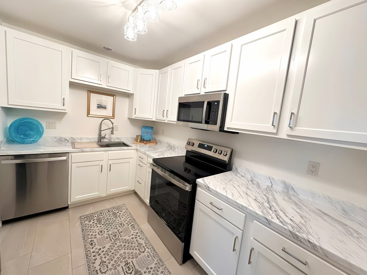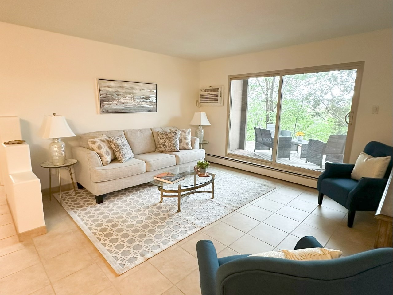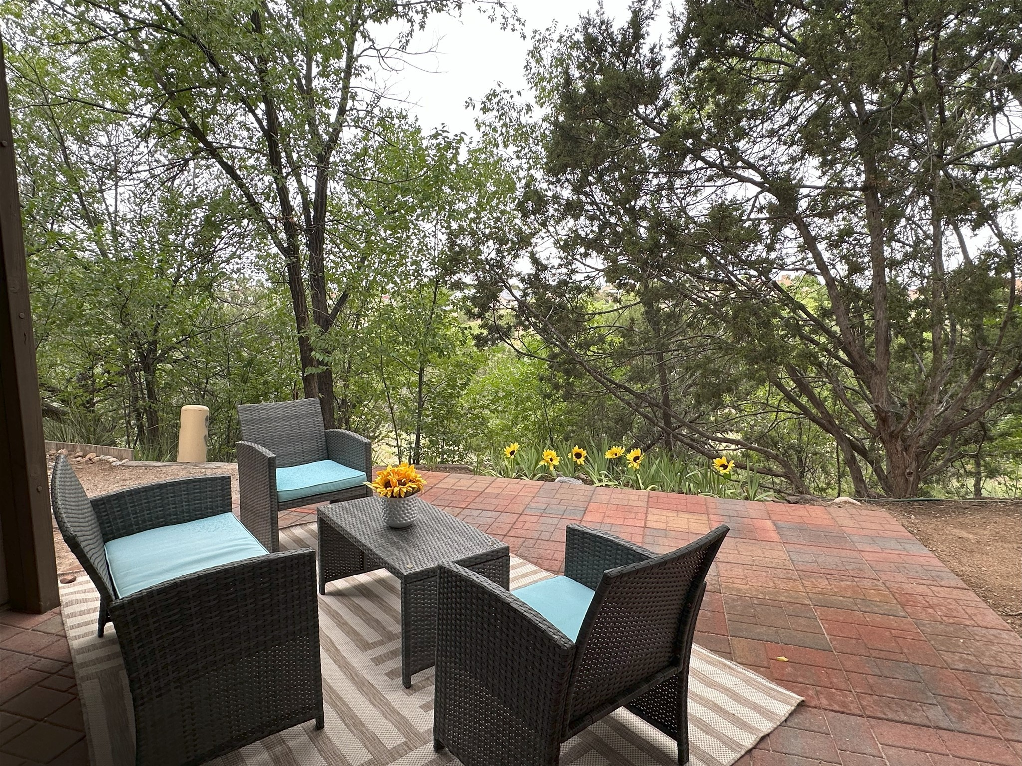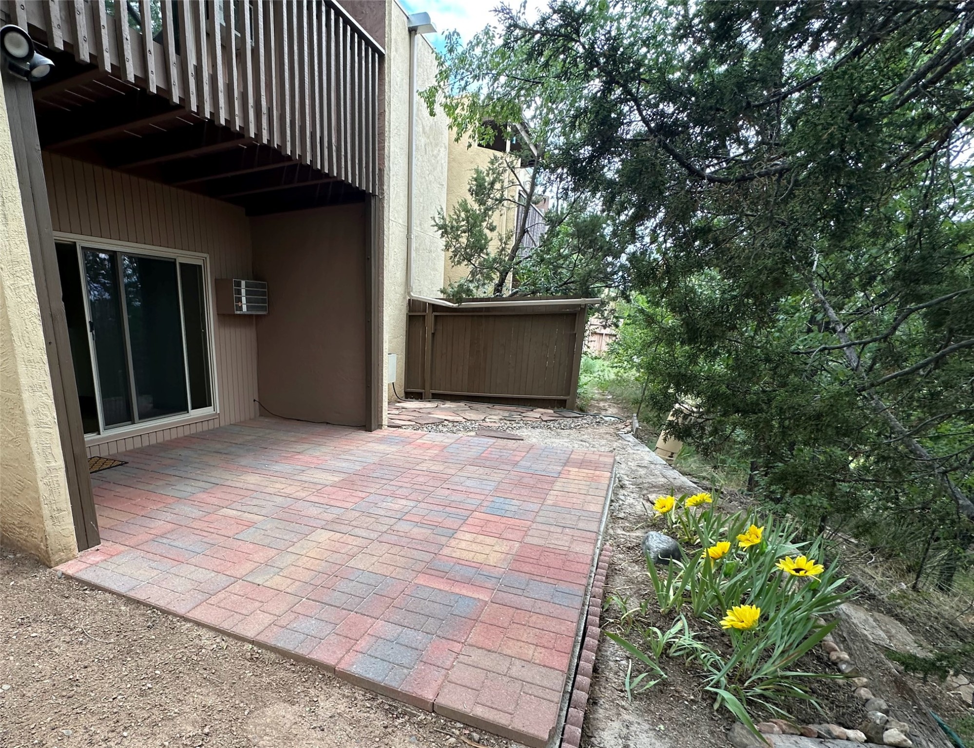 Welcome to desirable Los Arroyos Compound. Comfort and style come together in this beautifully renovated ground-floor condo at 155 Calle Ojo Feliz, Unit H. This move-in ready 2-bedroom, 1-bath condo blends contemporary style with practical functionality, perfect for a busy lifestyle, weekend getaway, or investment property.Thoughtfully updated, the condo features tile flooring throughout, a stylish modern kitchen with all new stainless appliances, semi-custom cabinetry, countertops, a deep workstation sink, and new fixtures. The bathroom has been upgraded with a new vanity, toilet, fixtures, and contemporary lighting. A spacious storage closet with new stack washer and dryer adds convenience.The living room dining room combination creates a bright and airy atmosphere with good separation of bedrooms. New, arroyo-facing, brick patio offers a serene, wilderness-like feel.Enjoy the benefits of a peaceful, centrally located community on approximately 18 acres featuring natural tall grasses and native landscaping, creating a peaceful environment with walking trails. Ideally situated near schools, shopping destinations, medical facilities, and Downtown Santa Fe. Community amenities include: indoor heated year-round pool, sauna, weight room, hospitality room, tennis and basketball courts and walking trails. One Reserved off-street parking space, second cars and guests park in guest parking. Condo fee is $377 per month and includes: baseboard hot water heat, water, sewer, refuse, maintenance and insurance on the buildings and grounds.