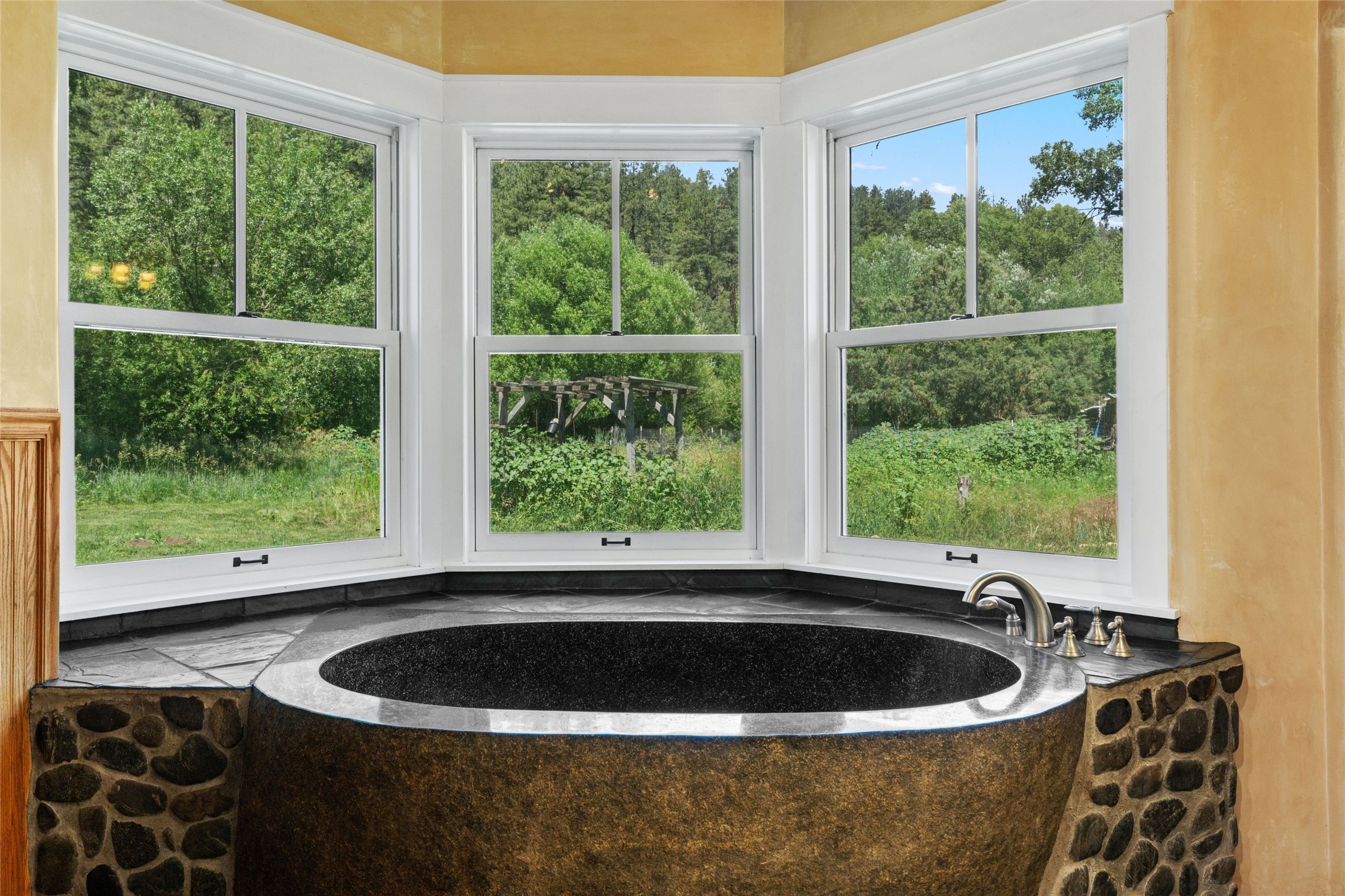 Rio de Vega is a remarkable 74.54-acre legacy estate offering unmatched natural beauty, abundant water, and exceptional infrastructure just minutes from Las Vegas, NM and the United World College. Known to the family as "The Playground," this property blends comfort, creativity, and Northern New Mexico wilderness in a way that is truly rare.The custom 4,200 sq. ft. main residence--originally a barn kit--was transformed into a warm, refined home by designer Pedro Marquez, featuring pine siding, alder doors, and thoughtful architectural detail throughout. A 2,000 sq. ft. guesthouse provides additional space and privacy with its own 500-gallon propane tank and independent septic system. A third septic and 220 electric are already installed, creating a ready site for a future home or structure. The 2,610 sq. ft. drive-through barn is a standout feature, built atop teak-floored storage containers and framed with canyon-harvested red fir. Additional outbuildings include a rebuilt, powered chicken house and multiple storage structures.Water is one of the property's greatest assets, with nearly half a mile of Gallinas River frontage, three ponds (including spring-fed and bentonite-sealed), and a water table only 6 feet deep. Jersey barriers along the riverbank help protect the property during high-water events. High-speed internet, a Cummins generator, and year-round access support easy, reliable living.The land is alive with incredible wildlife, including elk, deer, turkey, and other native species that frequent the property daily. Rio de Vega also comes with existing elk tags, and per the seller, landowners apply annually to the New Mexico Department of Game & Fish for E-Plus Landowner Permits--a process the current owner has never had difficulty obtaining.With its scenic landscape, strong infrastructure, abundant water, and exceptional recreational potential, Rio de Vega is a rare opportunity to own a truly special Northern New Mexico estate.