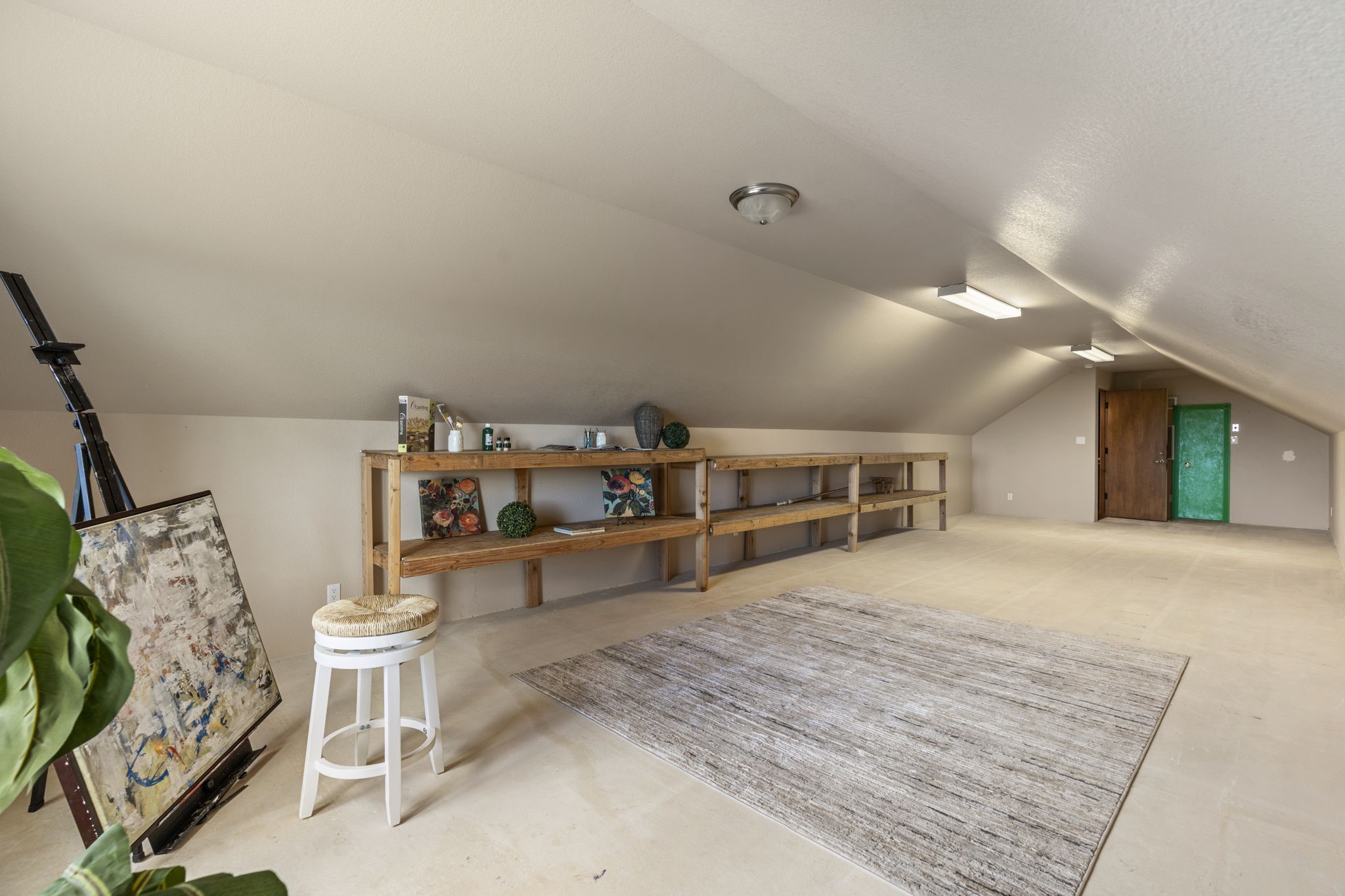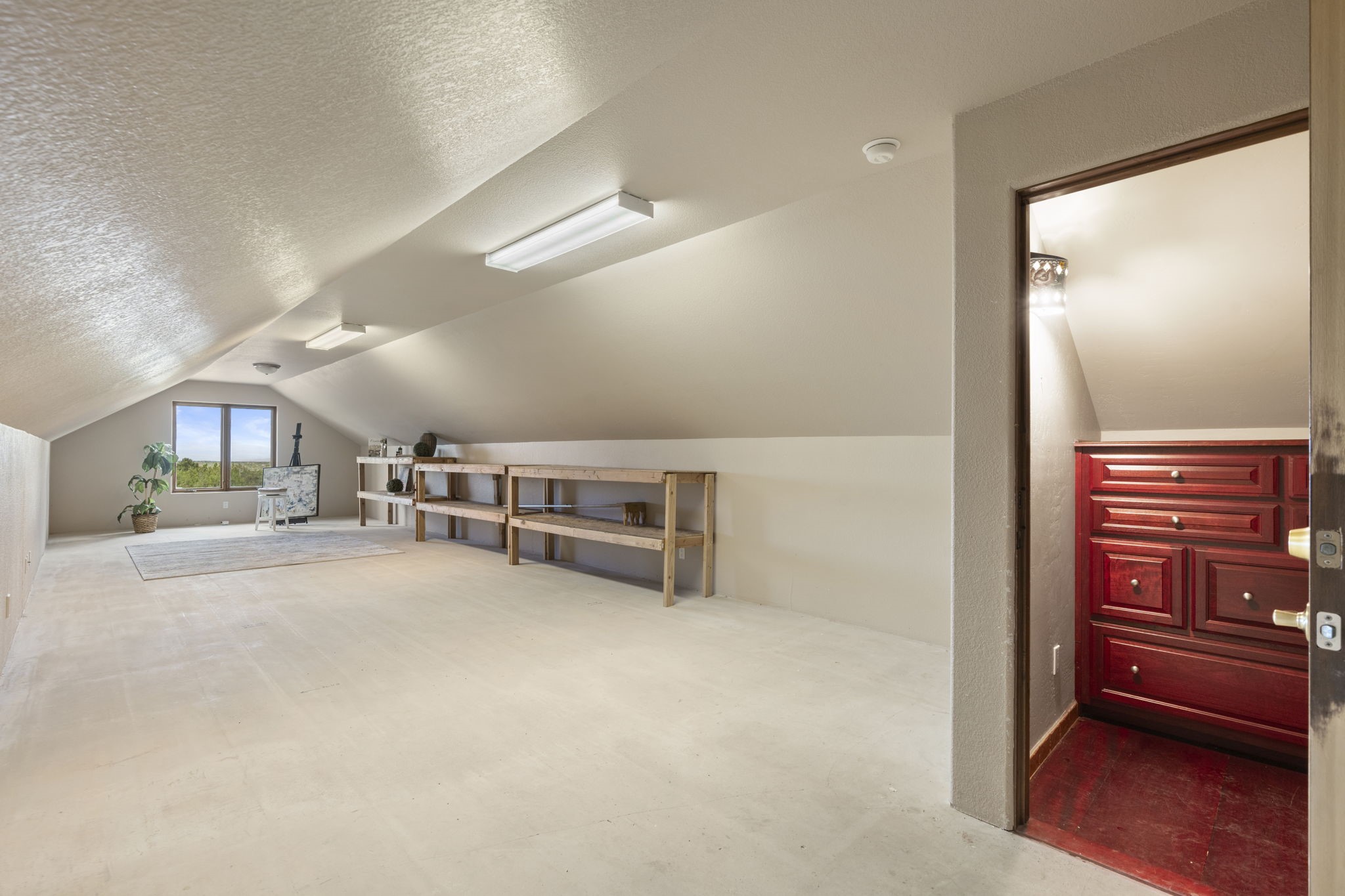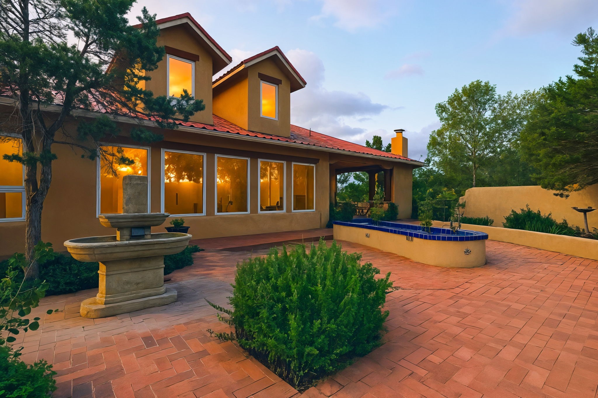 Artistic Mountain Home set on 10.14 private acres in San Pedro Creek, this distinctive 4 bedroom, 4 bath home is a true work of art- blending traditional Northern New Mexican design with creative, custom craftsmanship throughout. Built to inspire, the residence features expansive open-concept living with polished concrete floors, a dual-sided fireplace connecting the living and library areas, and large windows that frame panoramic views of ridges and endless skies. The kitchen is warm and welcoming, with artisanal cabinetry, handcrafted tile, and a layout that encourages gathering and creativity. The home features two separate bathrooms and walk-in closets within the primary bedroom making this space truly one of a kind! As you walk through, you'll be surrounded by beauty from thehand-painted murals, handmade tiles, and natural materials create a rich, organic feel throughout- tied with sleek modern touches in the tankless, wall-hung toilets and the zero entry showers. The office and a separate library offer quiet spaces for work or reading, while the light-filled attic studio is ideal for artists, writers, or anyone seeking a peaceful retreat above the trees. Outdoor living is just as intentional as the interior with all rooms having their own entrance to the exterior- leading to multiple patios and seating areas including an outdoor fireplace and a separate firepit, perfect for stargazing, storytelling, and cool desert evenings. A charming potting shed supports gardening and outdoor projects. The land offers room to roam, with space for gardens, or simply quiet observation of the surrounding wildlife and native flora. Schedule your private showing today!