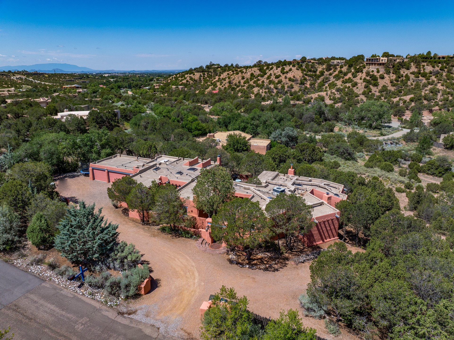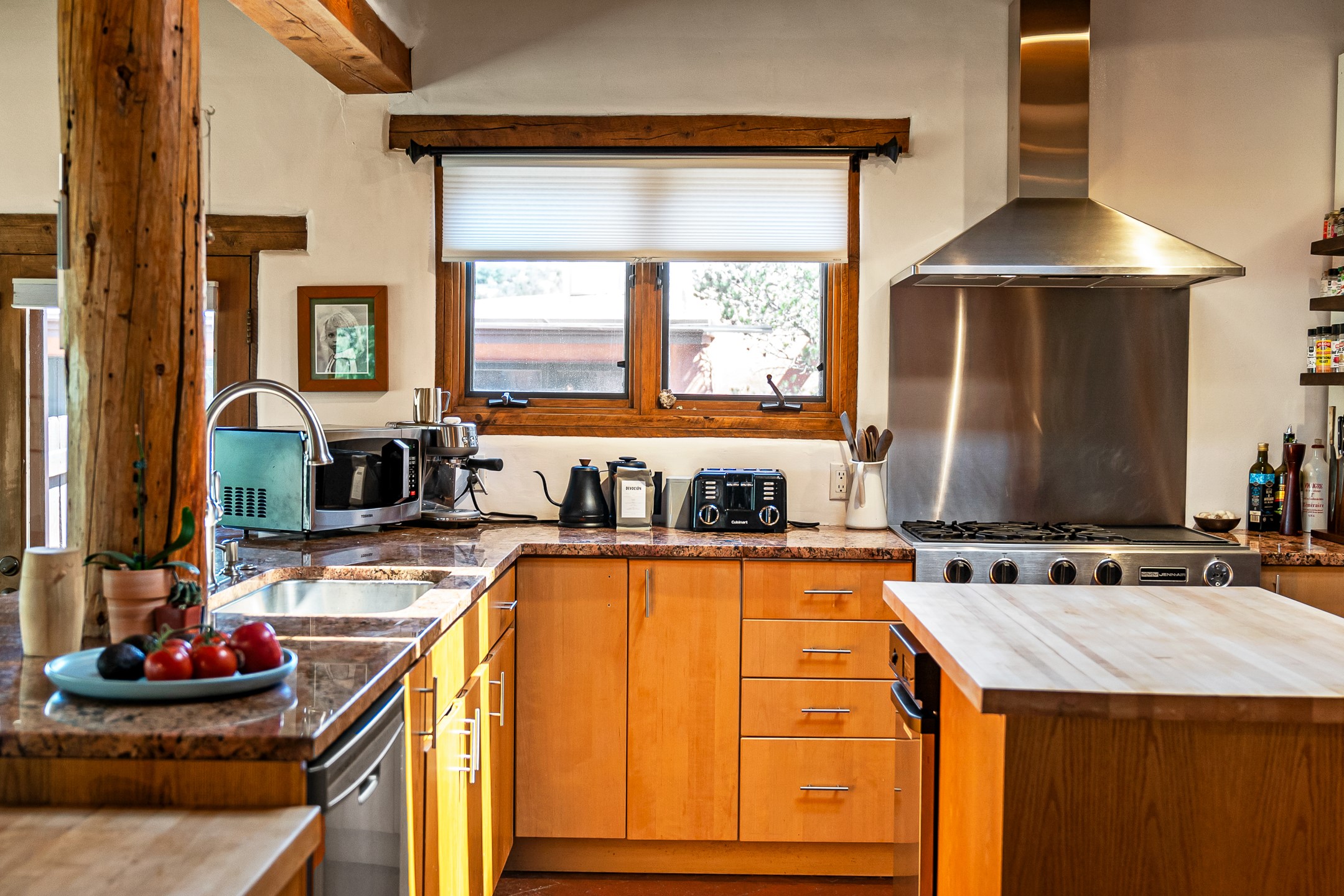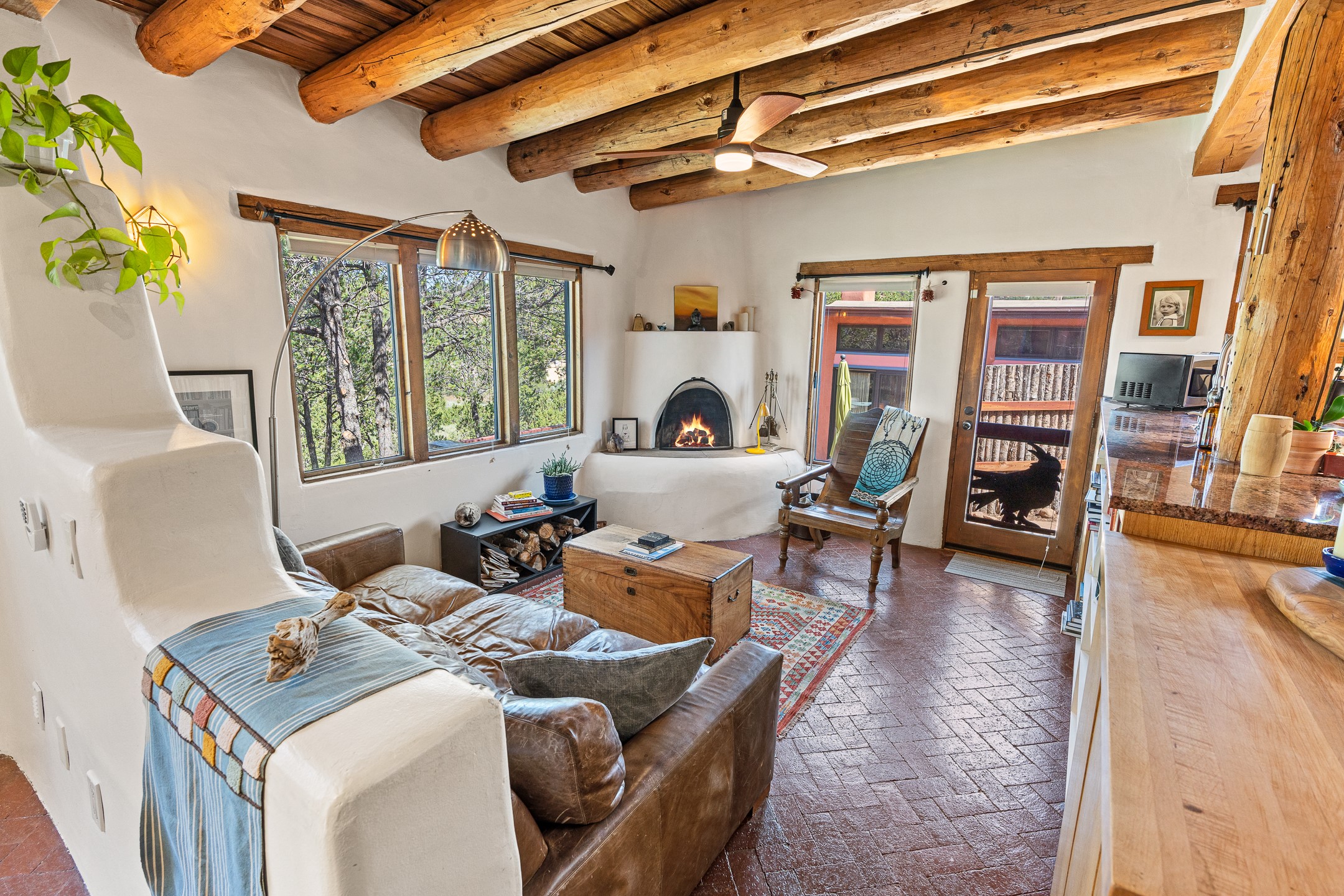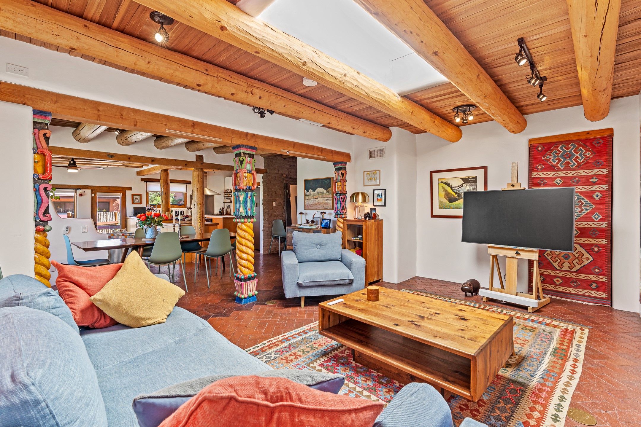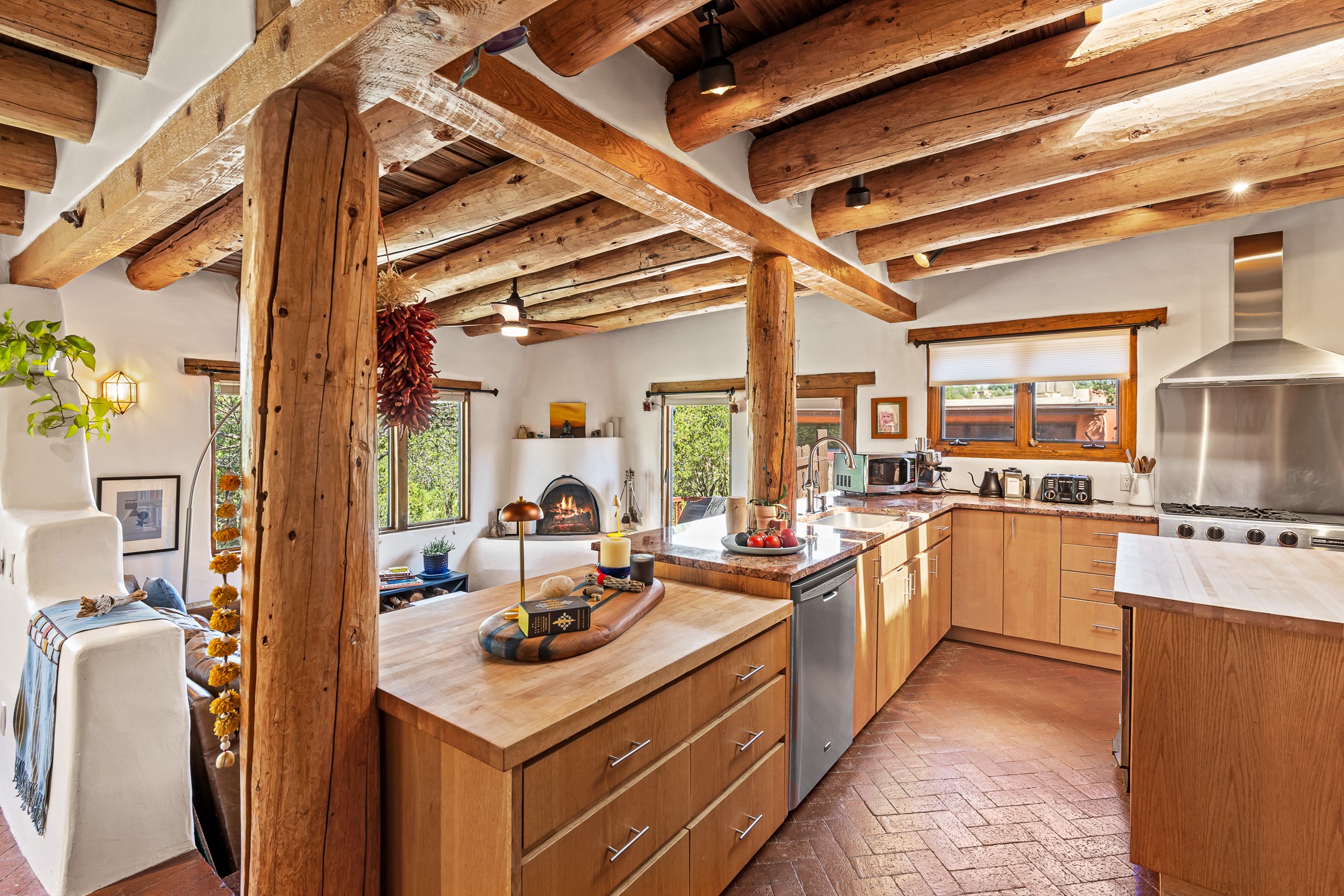 A truly rare opportunity in the heart of Santa Fe, this 3,896 sq. ft. home on 1.2 acres offers exceptional flexibility and timeless Southwestern style. Designed with versatility in mind, the property can live as one four-bedroom residence or as two fully independent 2-bedroom, 2-bath homes. Whether you're seeking a multi-generational retreat, a live/rent investment, or the ease of a duplex, the options are abundant. Vigas, Saltillo tile, and effortless indoor-outdoor living bring warmth and authenticity throughout. Though distinct in character, both living spaces reflect the region's soulful charm. Privately sited with a 2-car garage and minutes from the Plaza, Canyon Road, and the Railyard District, this is a rare chance to live, share, or invest in one extraordinary property.