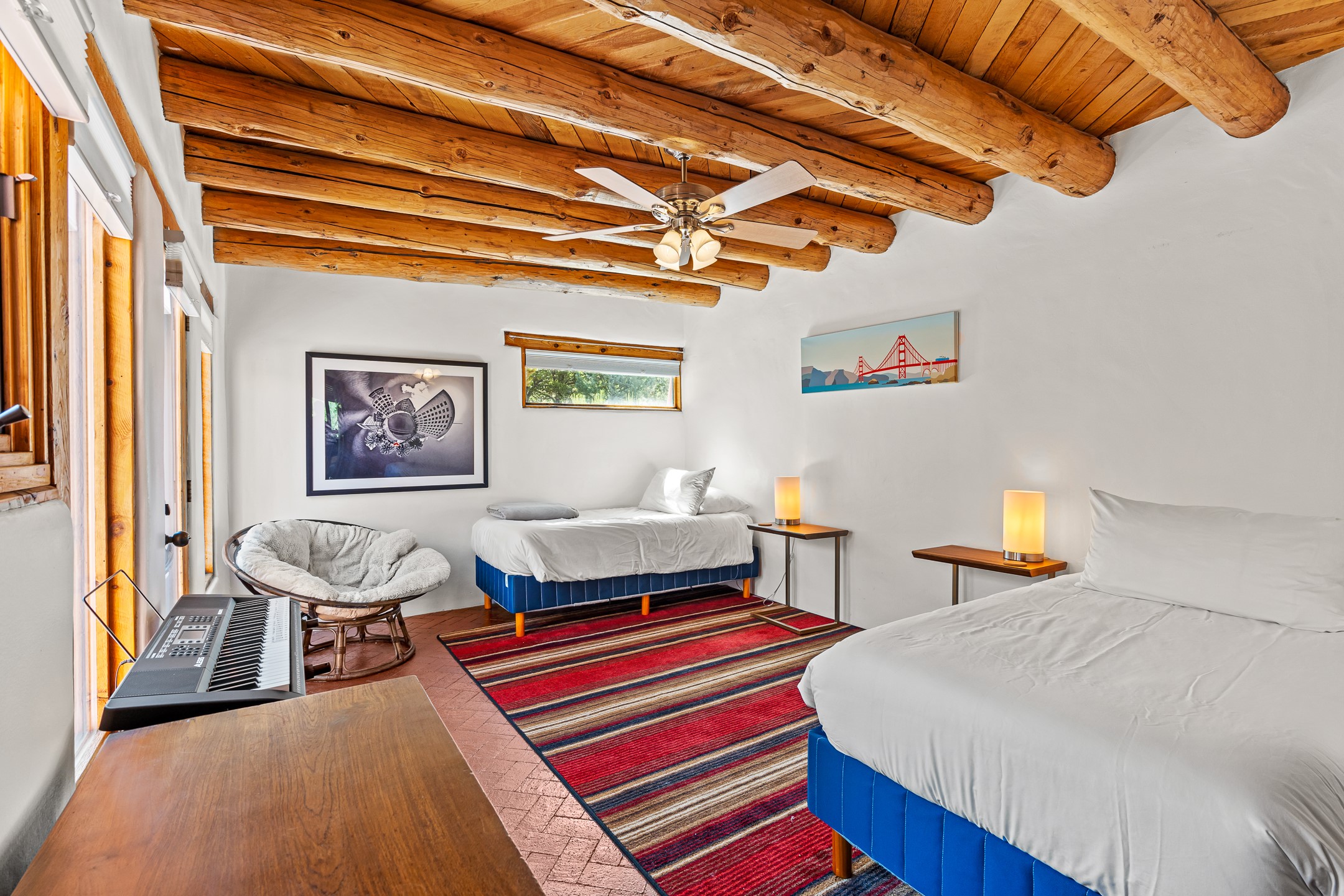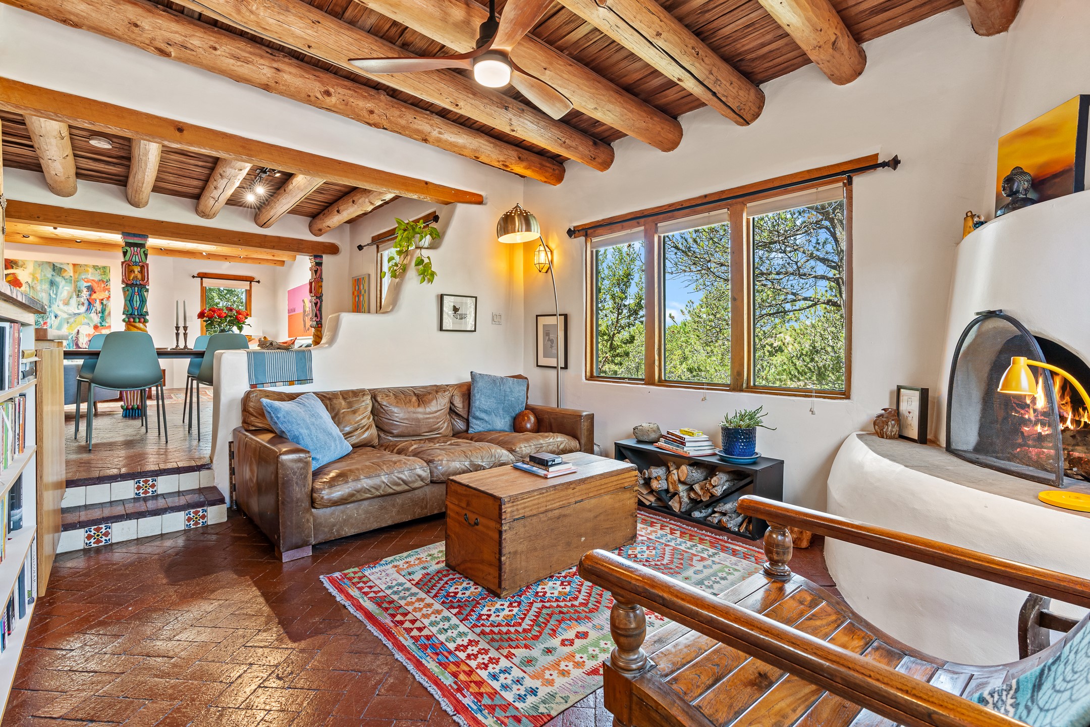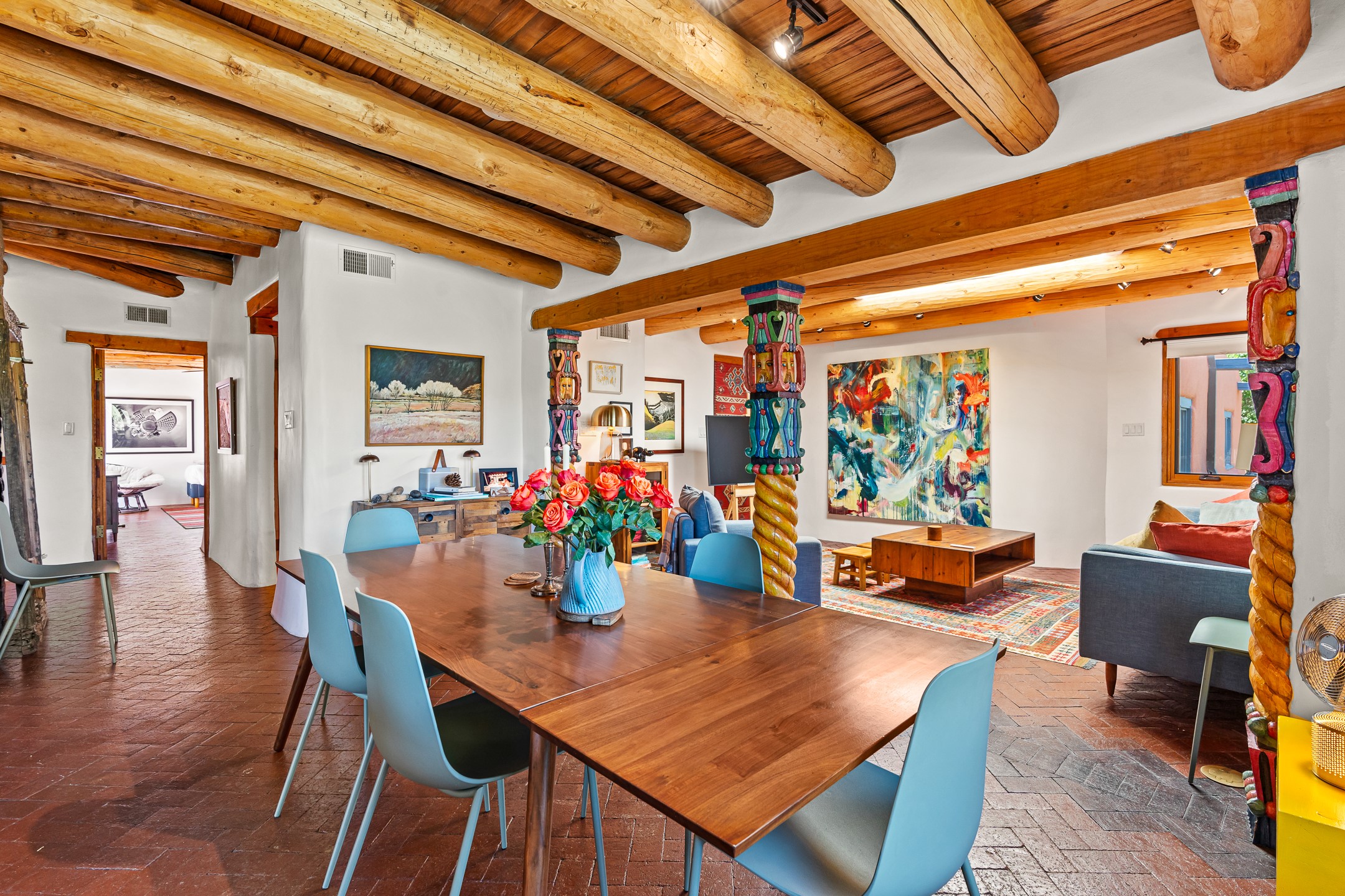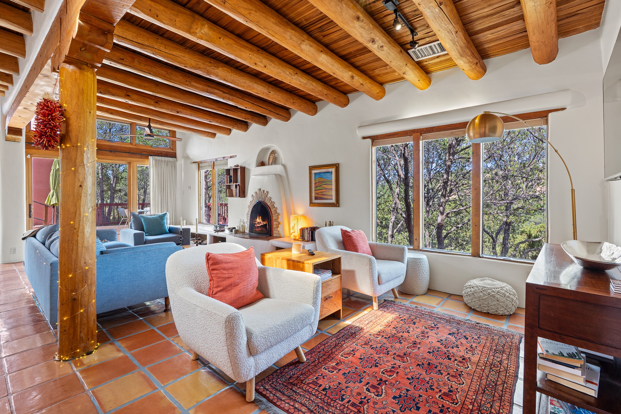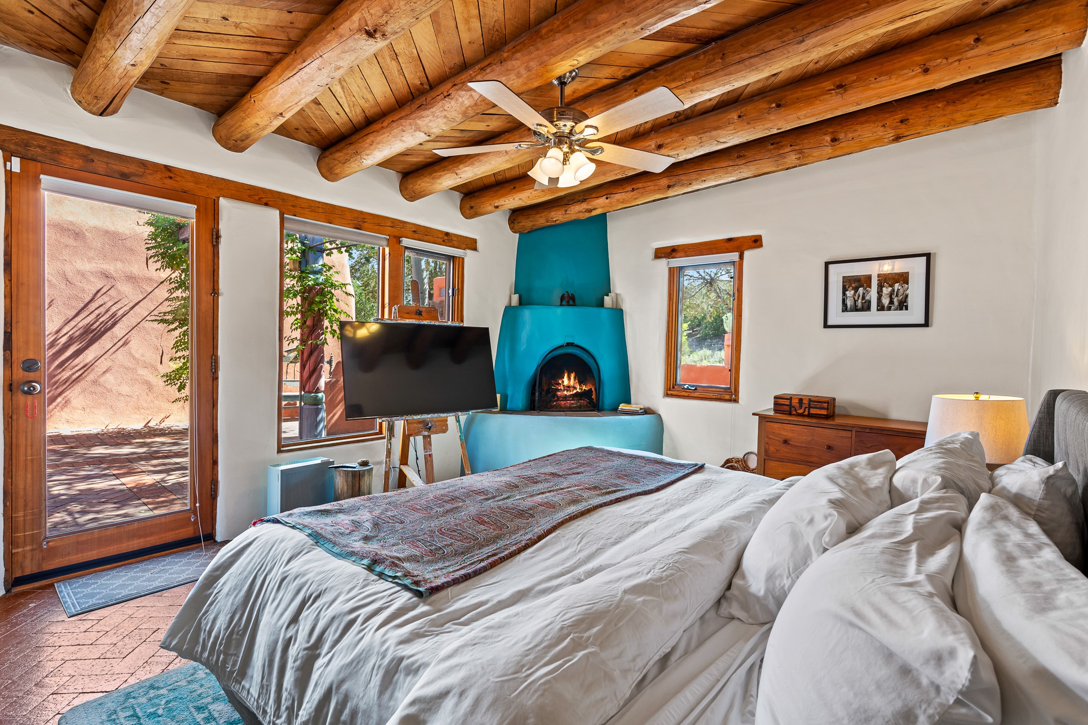 A truly rare opportunity in the heart of Santa Fe, this 3,896 sq. ft. home on 1.2 acres offers exceptional flexibility and timeless Southwestern style. Designed with versatility in mind, the property can live as one four-bedroom residence or as two fully independent 2-bedroom, 2-bath homes. Whether you're seeking a multi-generational retreat, a live/rent investment, or the ease of a duplex, the options are abundant. Vigas, Saltillo tile, and effortless indoor-outdoor living bring warmth and authenticity throughout. Though distinct in character, both living spaces reflect the region's soulful charm. Privately sited with a 2-car garage and minutes from the Plaza, Canyon Road, and the Railyard District, this is a rare chance to live, share, or invest in one extraordinary property.