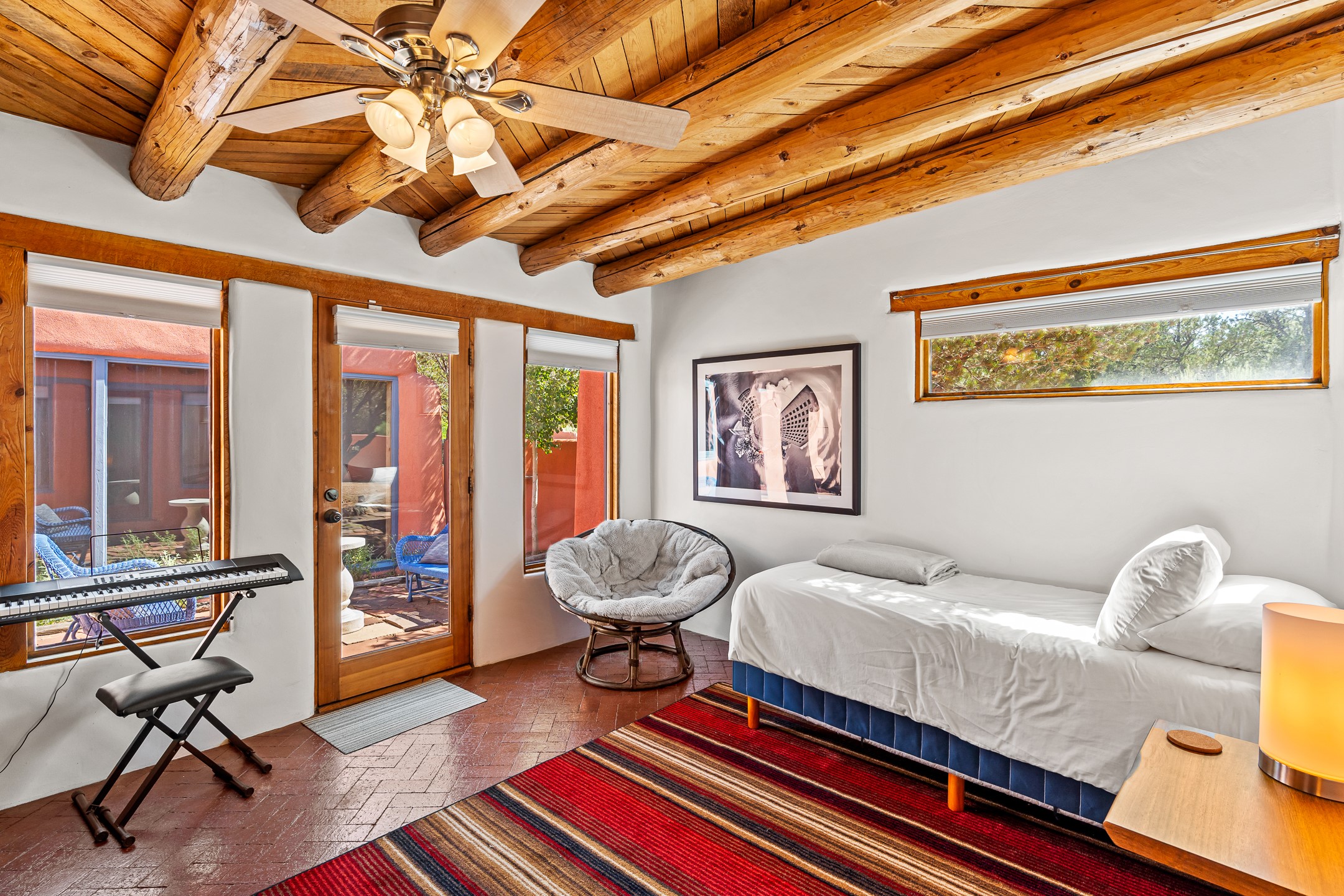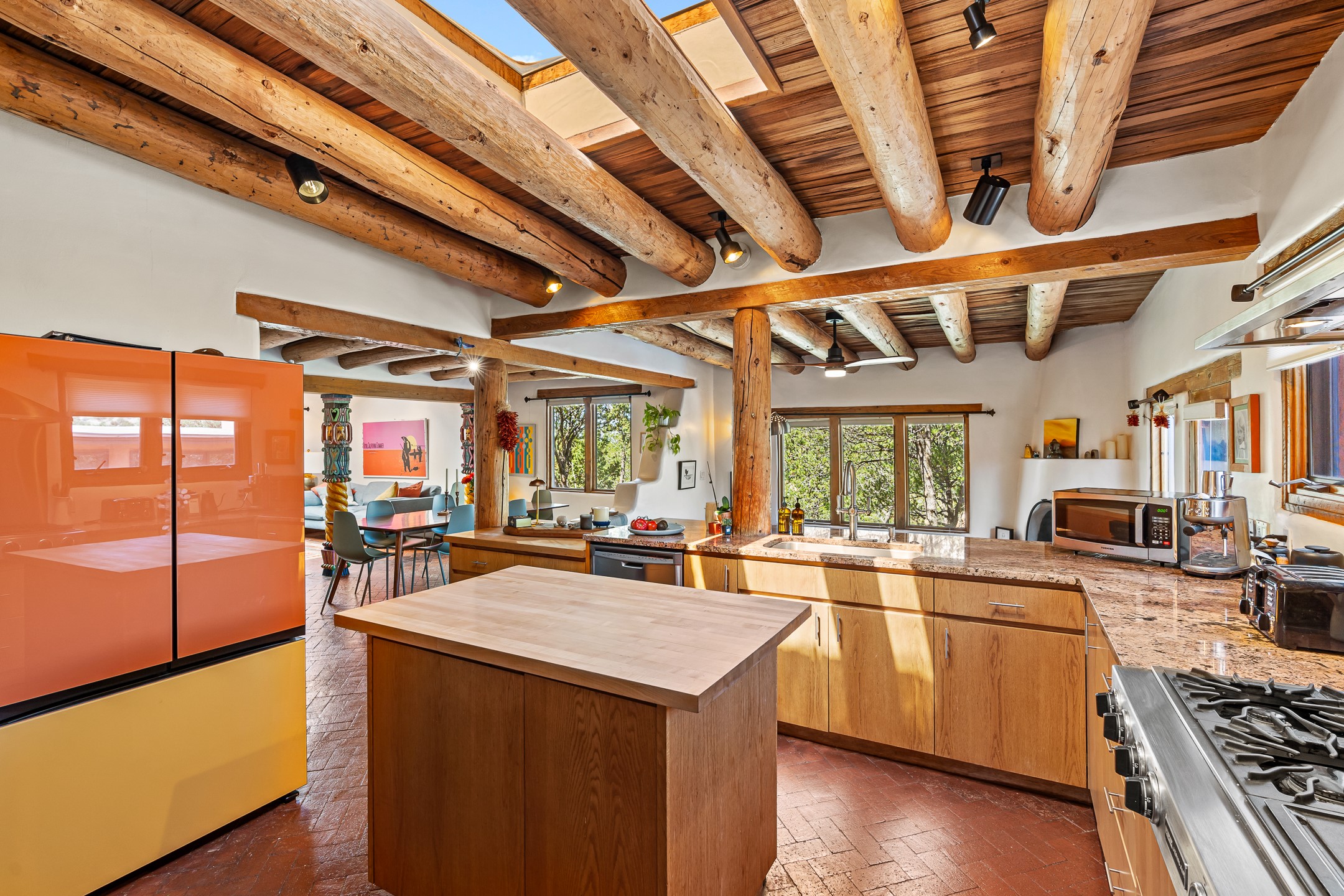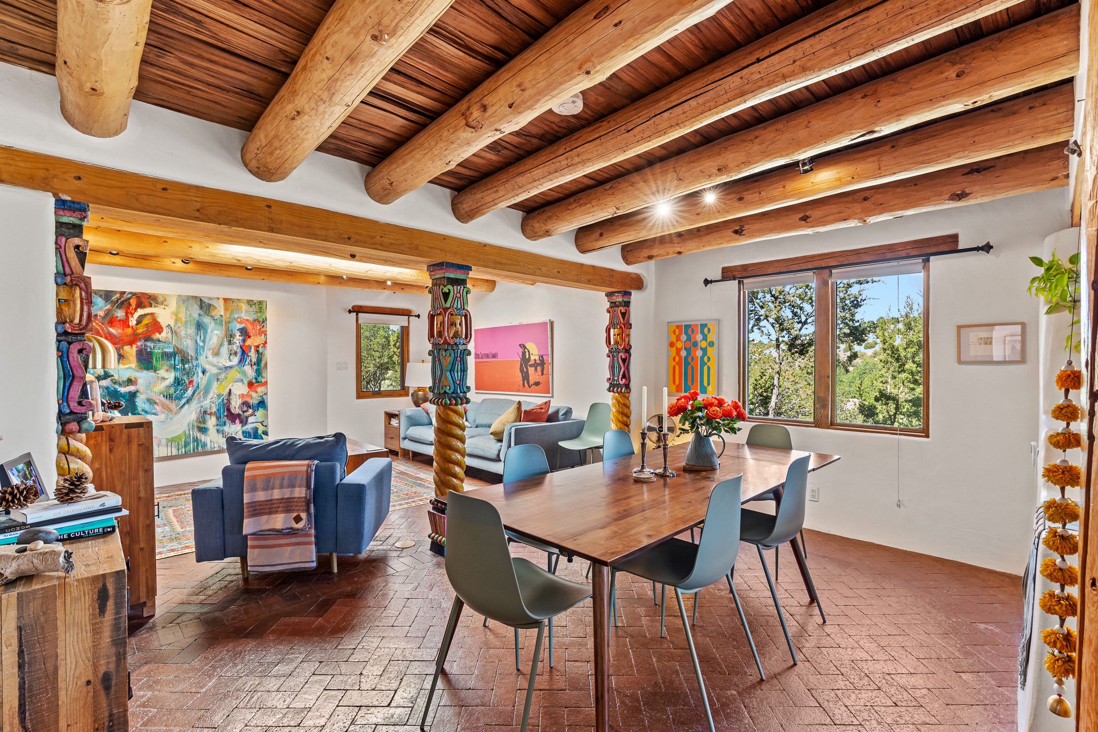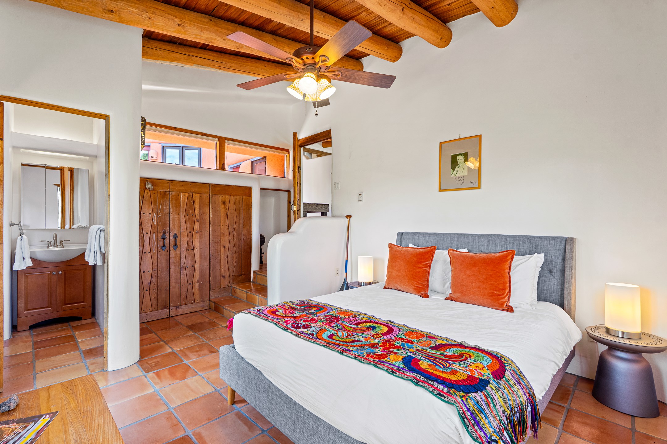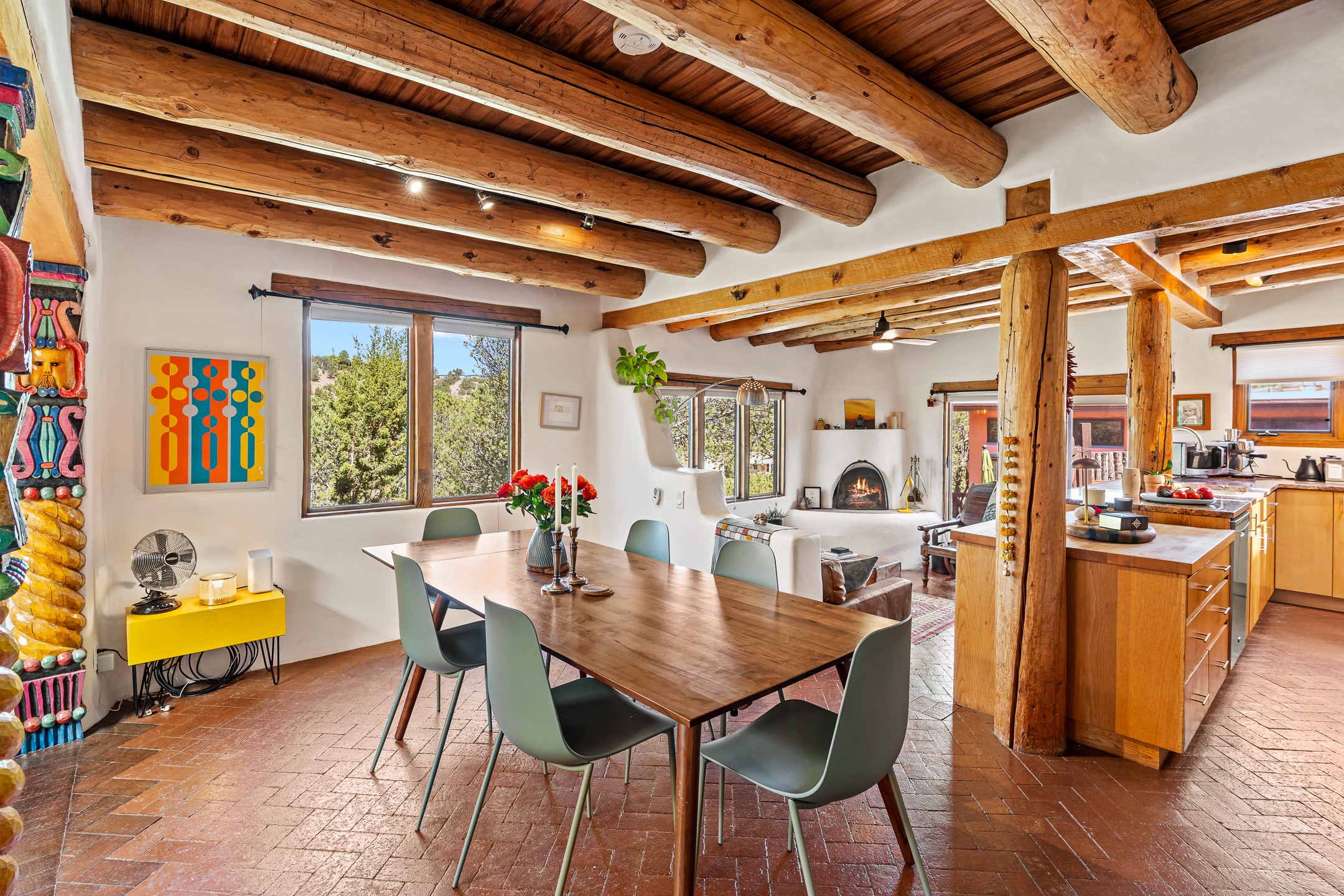 A truly rare opportunity in the heart of Santa Fe, this 3,896 sq. ft. home on 1.2 acres offers exceptional flexibility and timeless Southwestern style. Designed with versatility in mind, the property can live as one four-bedroom residence or as two fully independent 2-bedroom, 2-bath homes. Whether you're seeking a multi-generational retreat, a live/rent investment, or the ease of a duplex, the options are abundant. Vigas, Saltillo tile, and effortless indoor-outdoor living bring warmth and authenticity throughout. Though distinct in character, both living spaces reflect the region's soulful charm. Privately sited with a 2-car garage and minutes from the Plaza, Canyon Road, and the Railyard District, this is a rare chance to live, share, or invest in one extraordinary property.