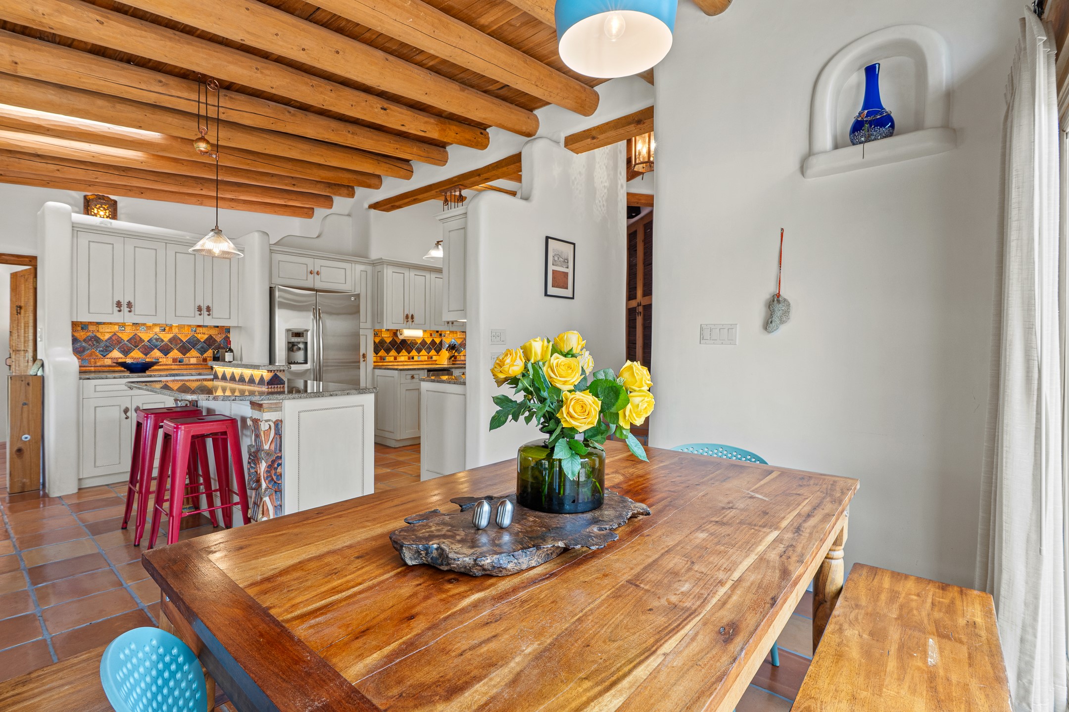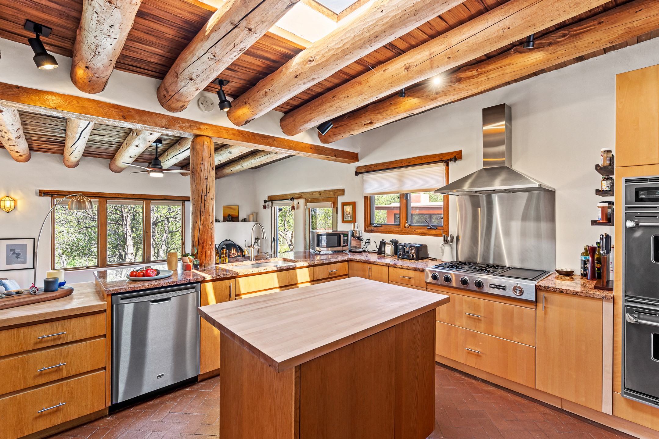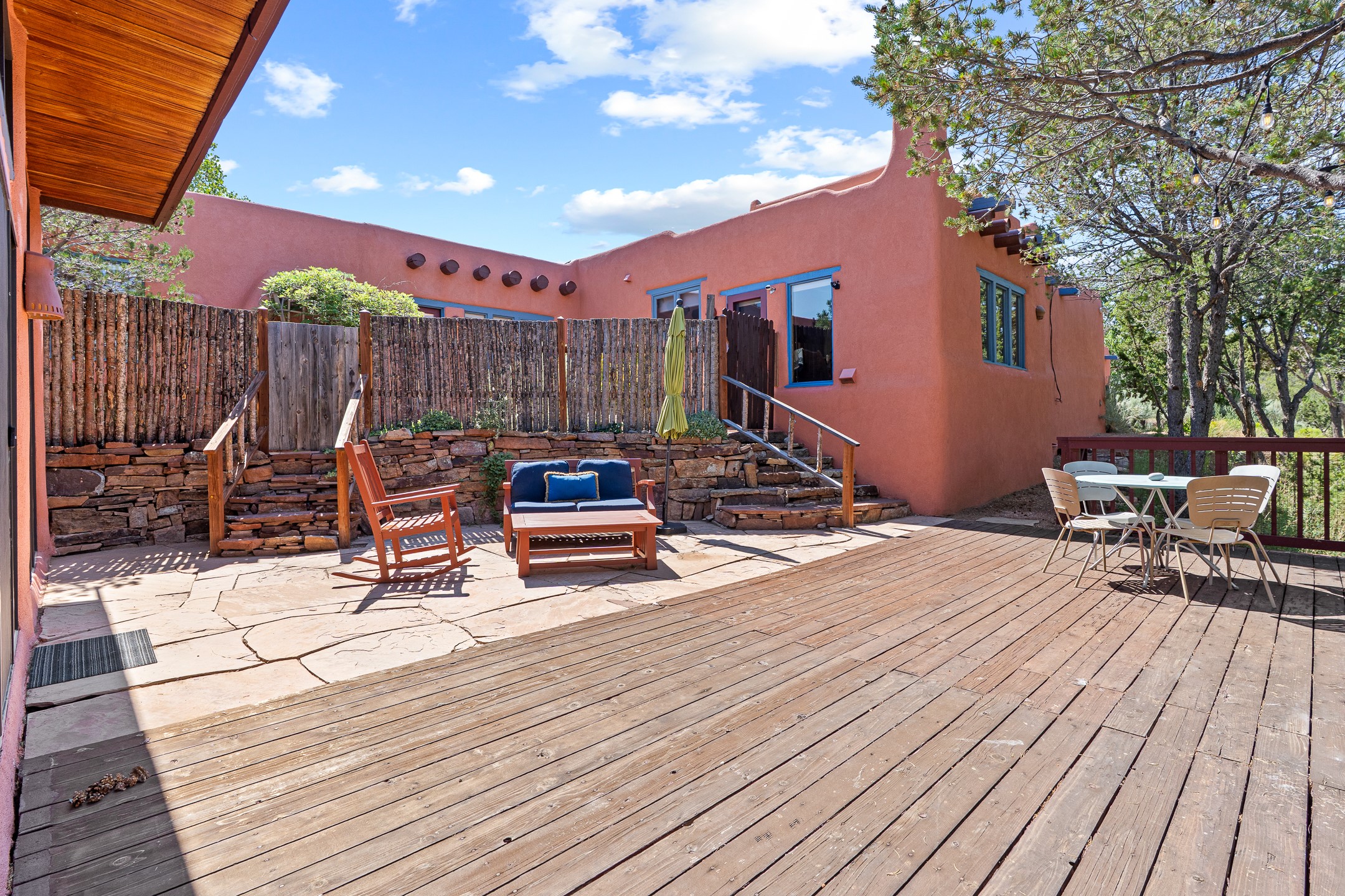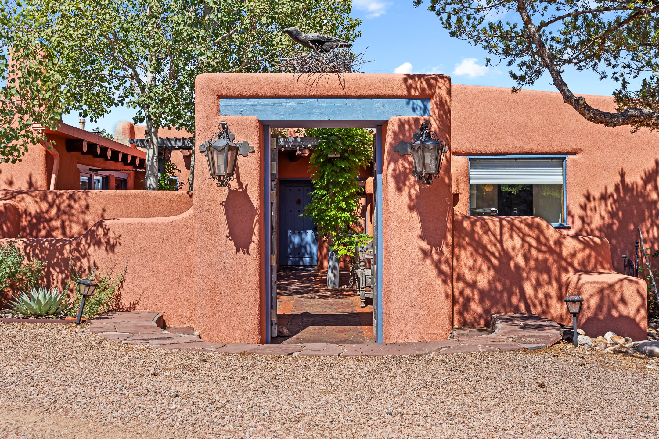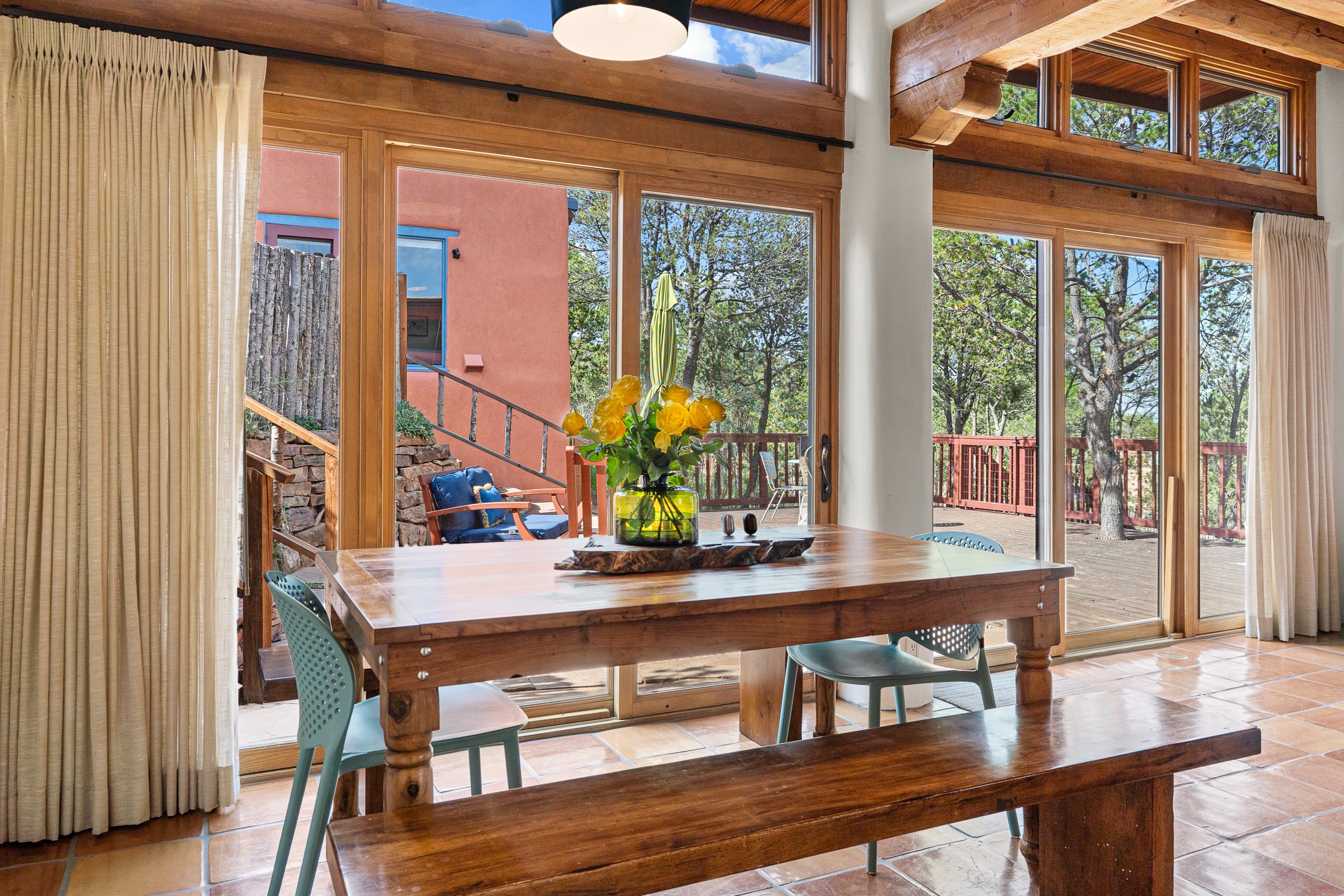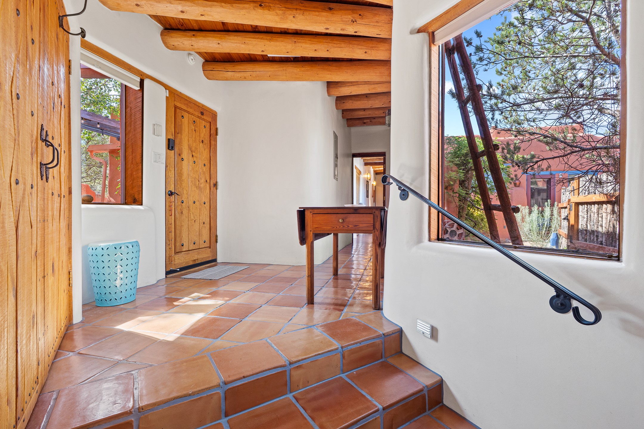 A truly rare opportunity in the heart of Santa Fe, this 3,896 sq. ft. home on 1.2 acres offers exceptional flexibility and timeless Southwestern style. Designed with versatility in mind, the property can live as one four-bedroom residence or as two fully independent 2-bedroom, 2-bath homes. Whether you're seeking a multi-generational retreat, a live/rent investment, or the ease of a duplex, the options are abundant. Vigas, Saltillo tile, and effortless indoor-outdoor living bring warmth and authenticity throughout. Though distinct in character, both living spaces reflect the region's soulful charm. Privately sited with a 2-car garage and minutes from the Plaza, Canyon Road, and the Railyard District, this is a rare chance to live, share, or invest in one extraordinary property.