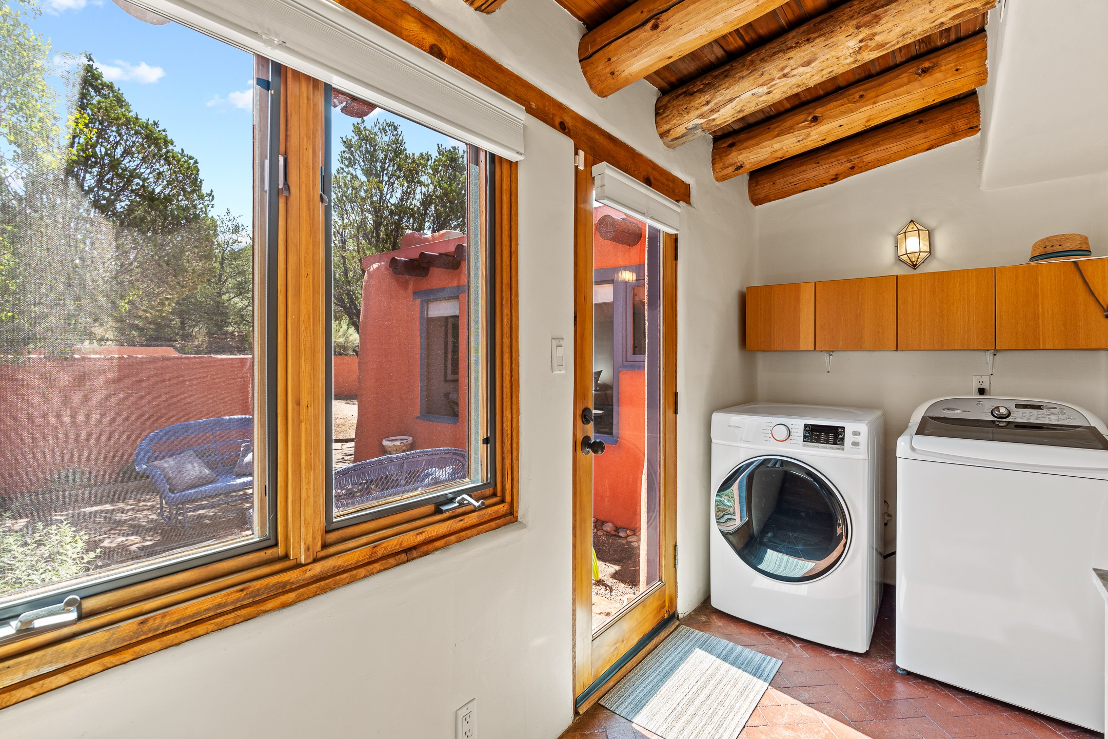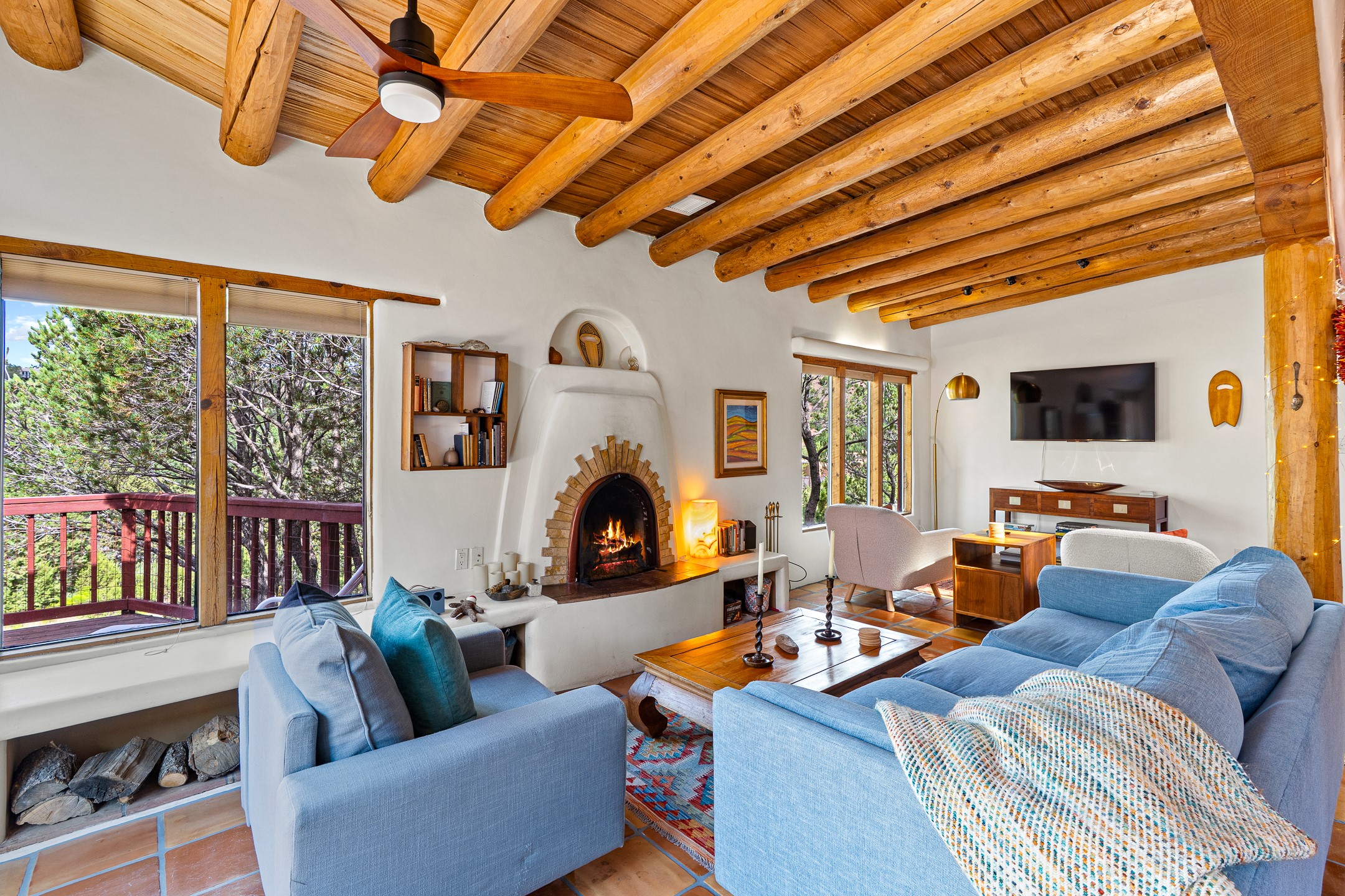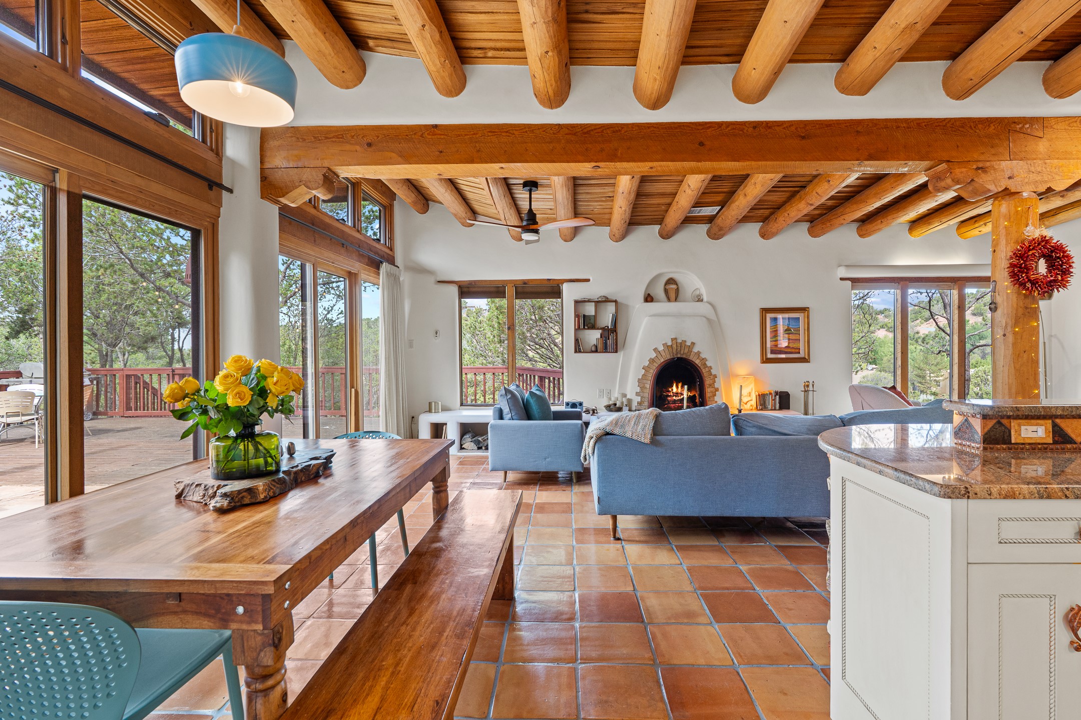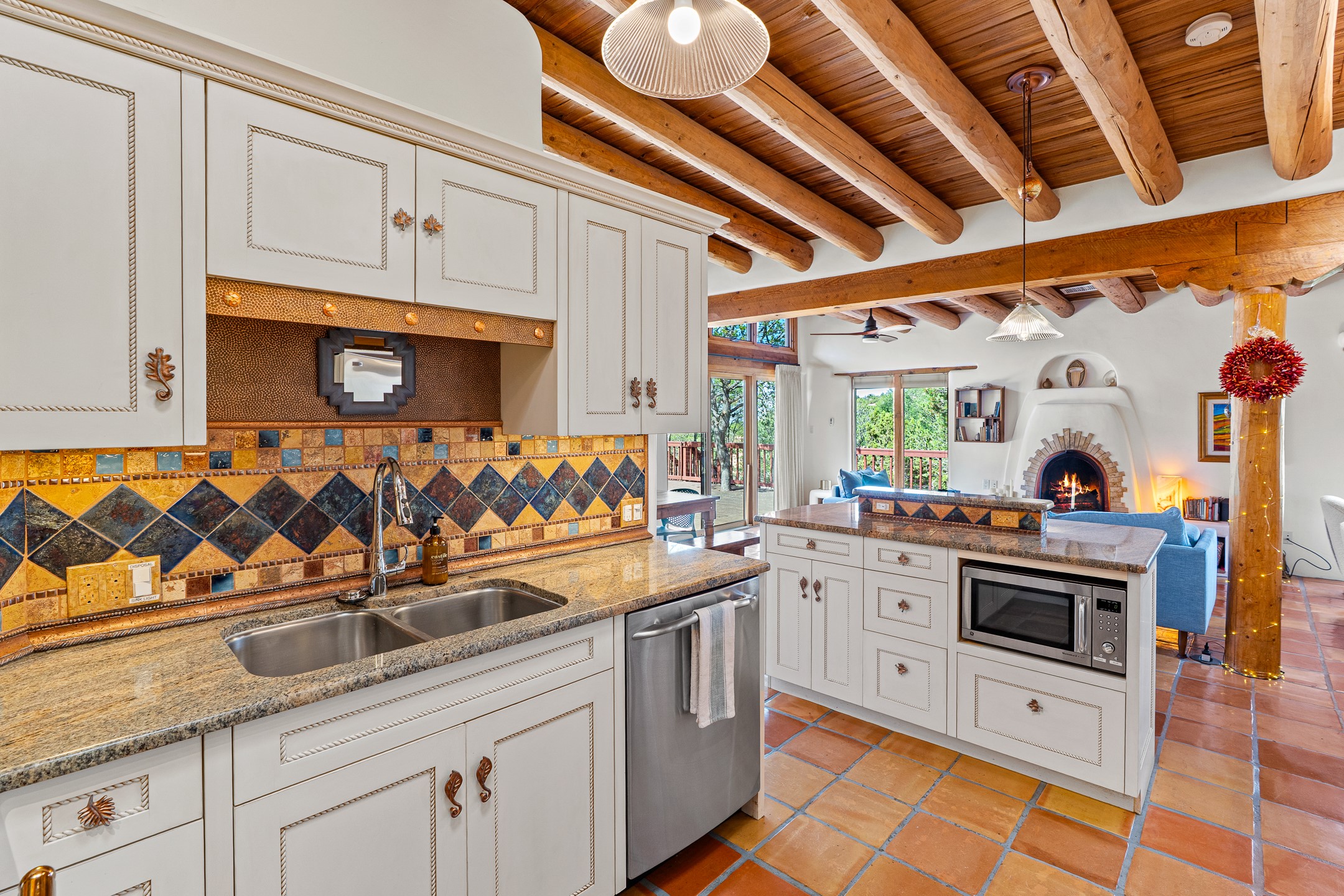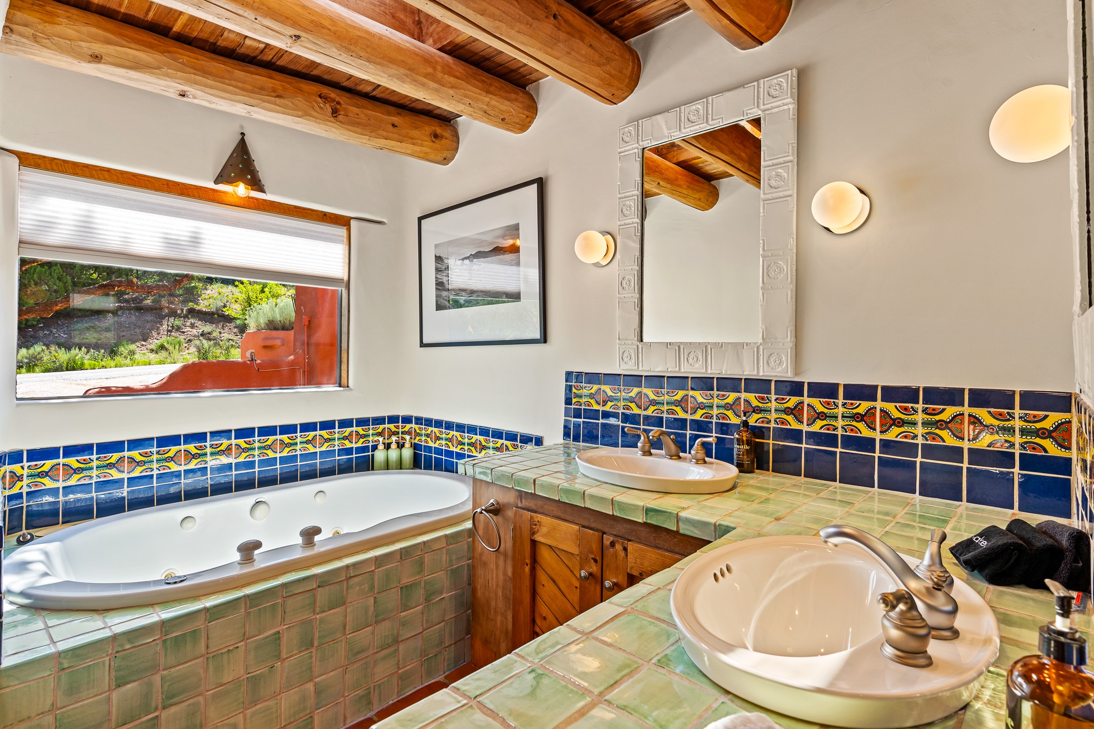 A truly rare opportunity in the heart of Santa Fe, this 3,896 sq. ft. home on 1.2 acres offers exceptional flexibility and timeless Southwestern style. Designed with versatility in mind, the property can live as one four-bedroom residence or as two fully independent 2-bedroom, 2-bath homes. Whether you're seeking a multi-generational retreat, a live/rent investment, or the ease of a duplex, the options are abundant. Vigas, Saltillo tile, and effortless indoor-outdoor living bring warmth and authenticity throughout. Though distinct in character, both living spaces reflect the region's soulful charm. Privately sited with a 2-car garage and minutes from the Plaza, Canyon Road, and the Railyard District, this is a rare chance to live, share, or invest in one extraordinary property.