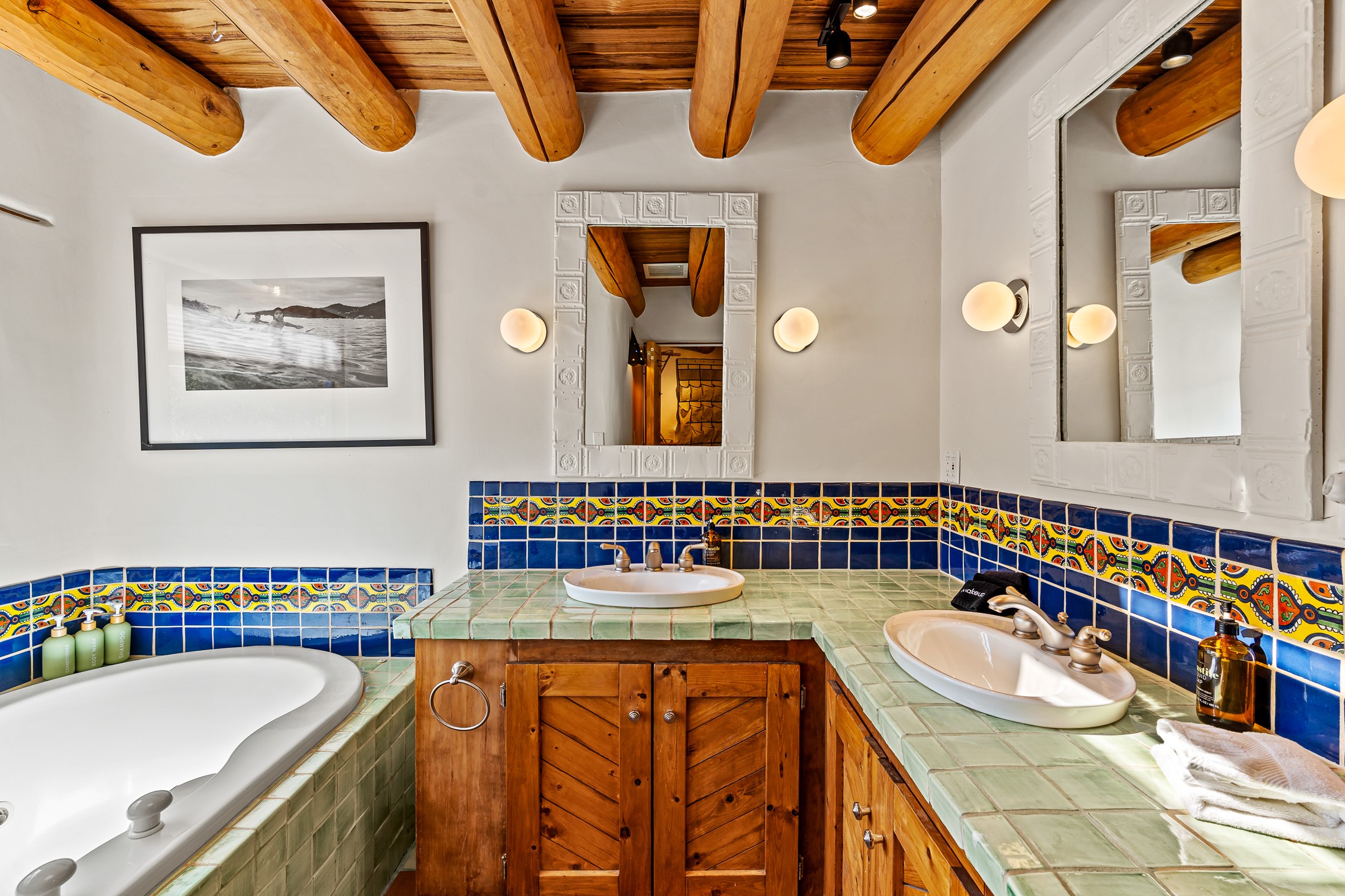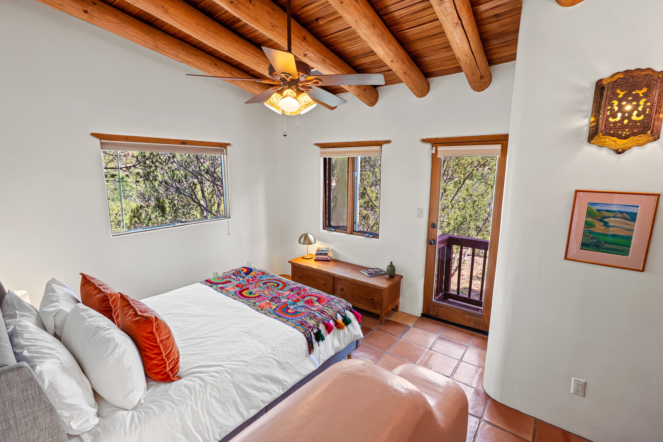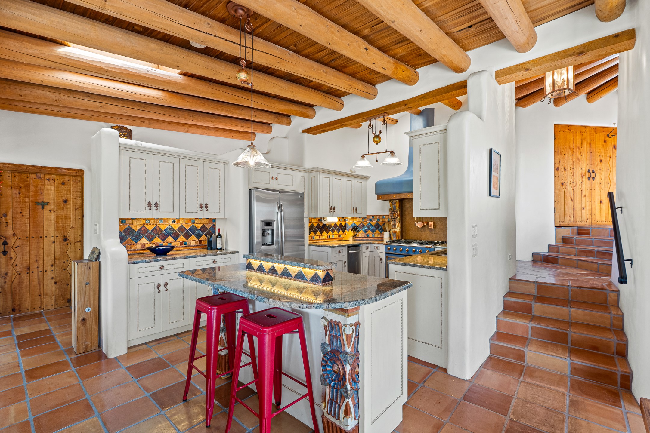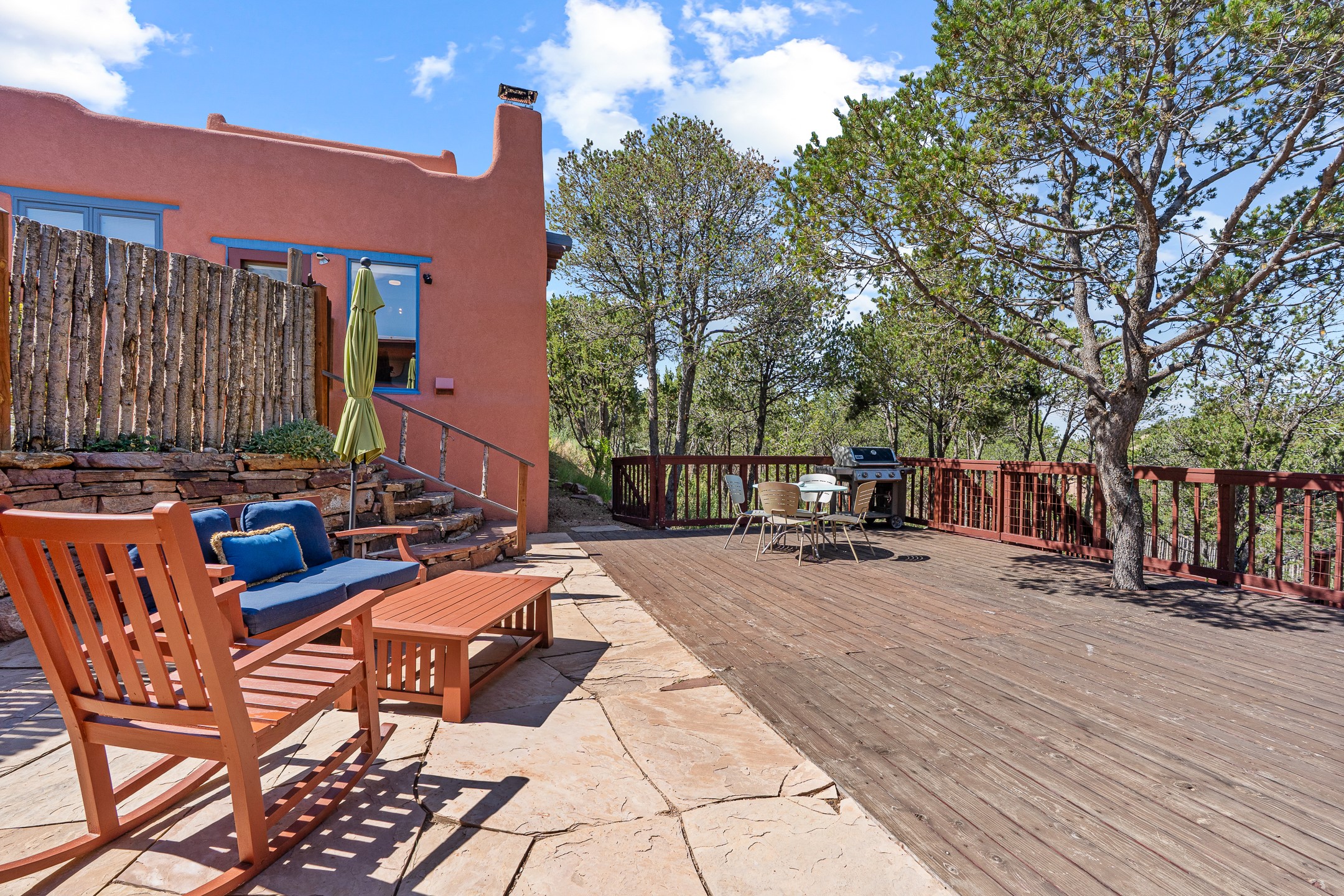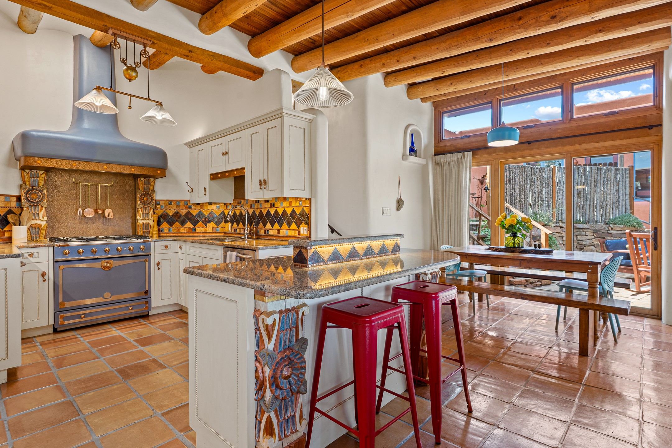 A truly rare opportunity in the heart of Santa Fe, this 3,896 sq. ft. home on 1.2 acres offers exceptional flexibility and timeless Southwestern style. Designed with versatility in mind, the property can live as one four-bedroom residence or as two fully independent 2-bedroom, 2-bath homes. Whether you're seeking a multi-generational retreat, a live/rent investment, or the ease of a duplex, the options are abundant. Vigas, Saltillo tile, and effortless indoor-outdoor living bring warmth and authenticity throughout. Though distinct in character, both living spaces reflect the region's soulful charm. Privately sited with a 2-car garage and minutes from the Plaza, Canyon Road, and the Railyard District, this is a rare chance to live, share, or invest in one extraordinary property.
