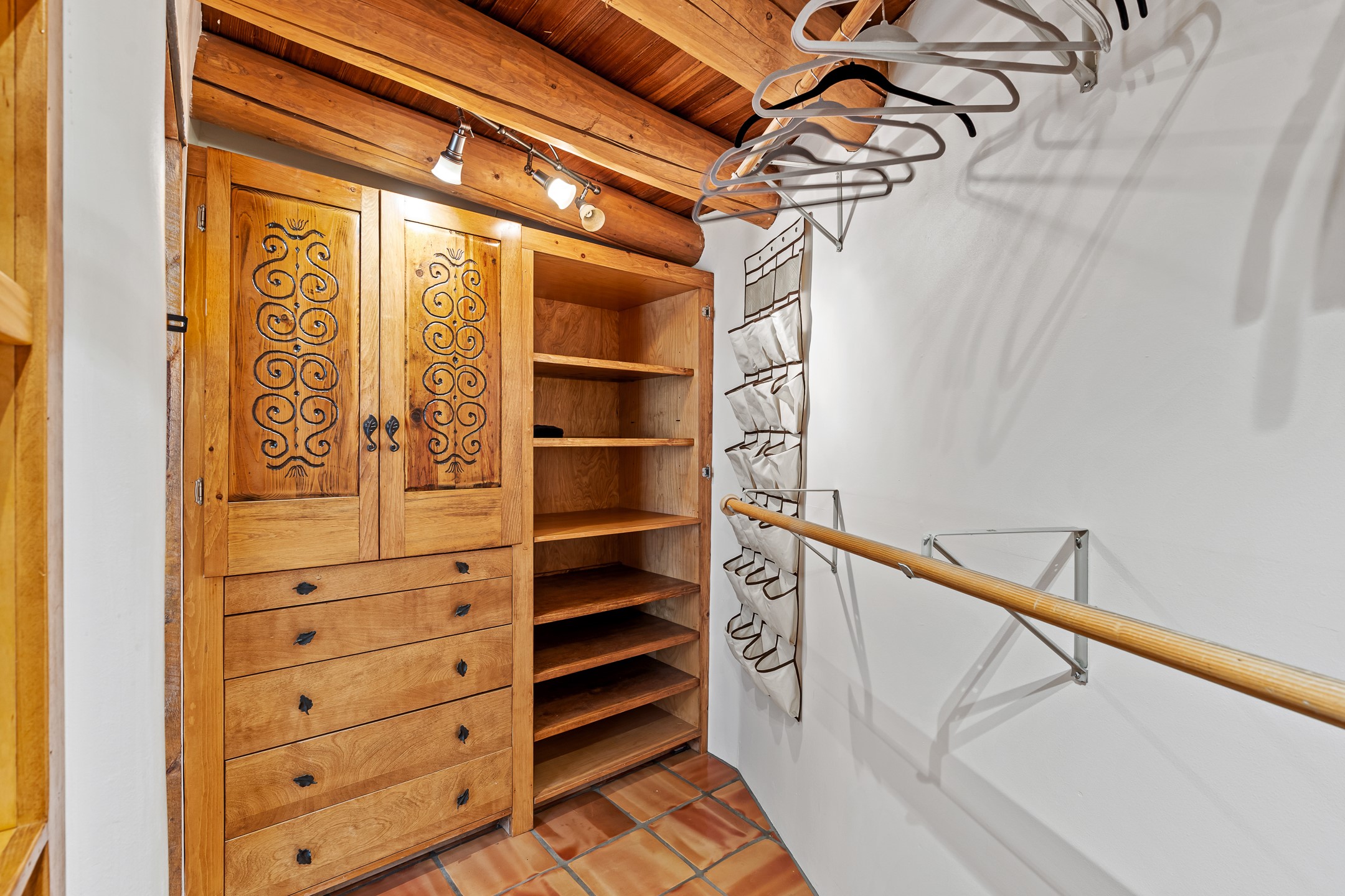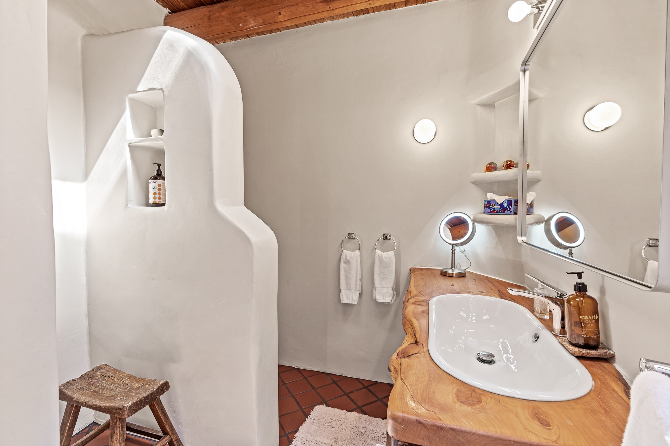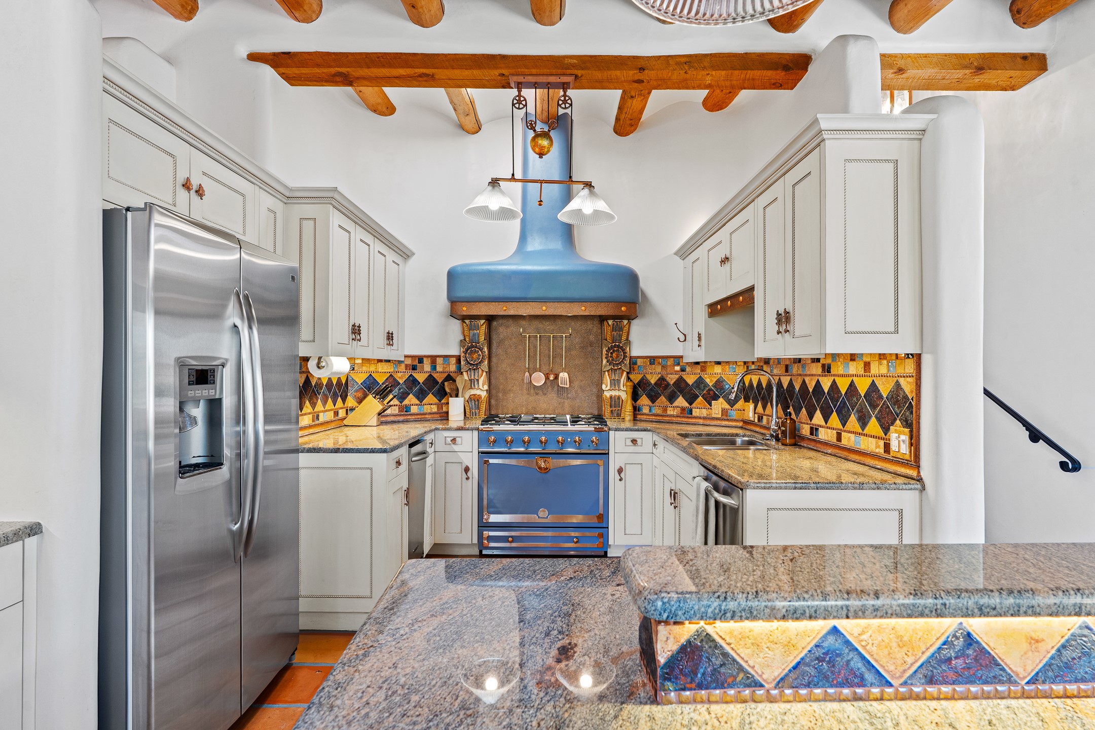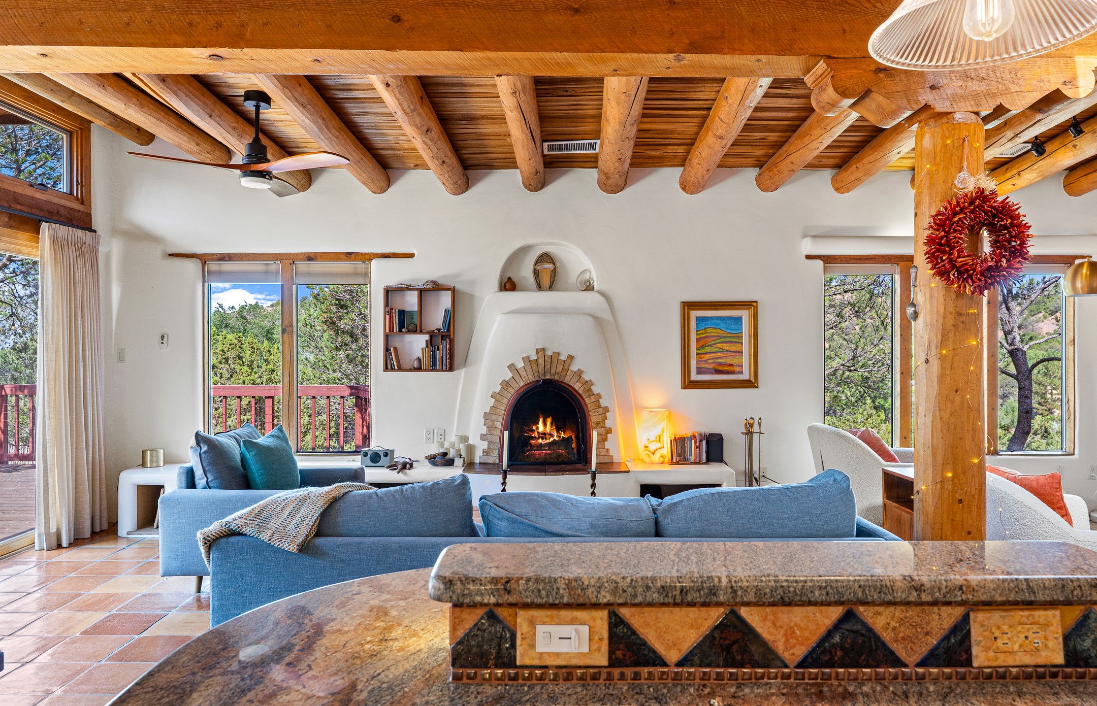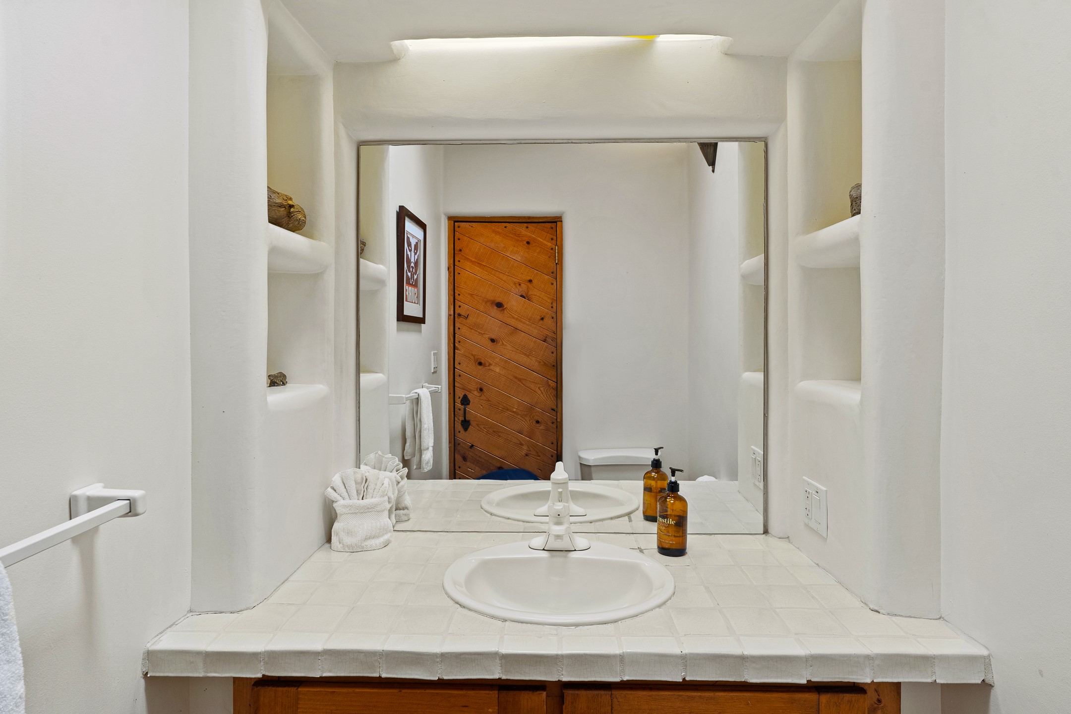 A truly rare opportunity in the heart of Santa Fe, this 3,896 sq. ft. home on 1.2 acres offers exceptional flexibility and timeless Southwestern style. Designed with versatility in mind, the property can live as one four-bedroom residence or as two fully independent 2-bedroom, 2-bath homes. Whether you're seeking a multi-generational retreat, a live/rent investment, or the ease of a duplex, the options are abundant. Vigas, Saltillo tile, and effortless indoor-outdoor living bring warmth and authenticity throughout. Though distinct in character, both living spaces reflect the region's soulful charm. Privately sited with a 2-car garage and minutes from the Plaza, Canyon Road, and the Railyard District, this is a rare chance to live, share, or invest in one extraordinary property.