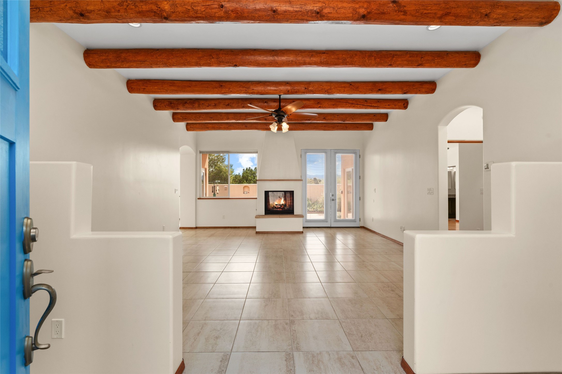 Kachina Ridge 3-bedroom, 2-bathroom residence, crafted by Master Green Builder Arch Sproul, showcases numerous custom upgrades and green features, making it an eco-friendly choice for the modern homeowner. Wide doorways, nichos, and porcelain tile and hardwood hickory floors throughout. The solid knotty pine doors add a touch of rustic charm, while the enlarged living room with log vigas and a gas fireplace with a flagstone hearth, invites you to unwind in style. The bright, east-facing kitchen is appointed with a center island, solid maple cabinets finished in natural tones, Silestone quartz countertops and Energy Star Appliances. The primary suite includes a walk-in closet and en-suite bath with soaking tub and walk-in shower. The two guest bedrooms offer versatile options, whether you need a studio, office, or additional space for visitors. Plus, a bonus room awaits your creativity--perfect for exercise or artistic endeavors. Step outside to the expansive back portal featuring a tongue and groove ceiling, where you can enjoy al fresco dining. The front and backyard gardens are thoughtfully designed with low-water perennials and buried irrigation lines. Enlarged, fully finished garage with 10-foot ceiling and overhead storage. Equipped with 30 photovoltaic panels installed by Positive Energy, you can enjoy lower energy costs while reducing your carbon footprint. The Kachina Ridge Subdivision homes are located adjacent to a greenbelt with no through streets. Convenient city location close to shopping, restaurants and the Santa Fe Plaza.