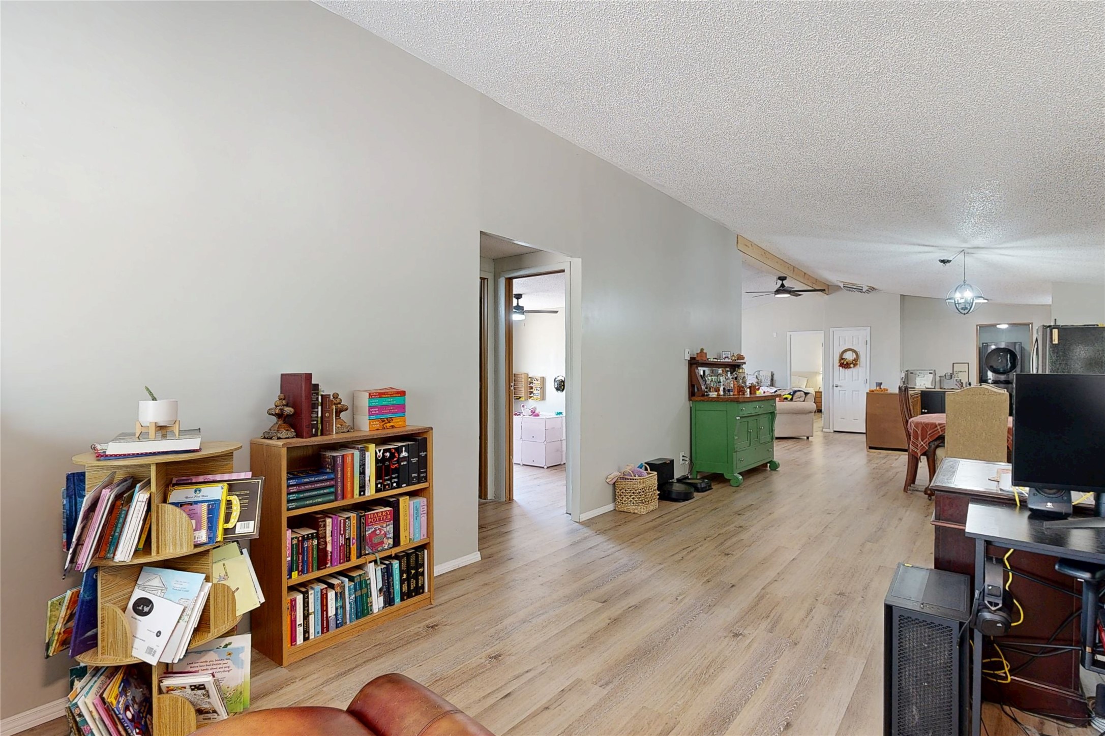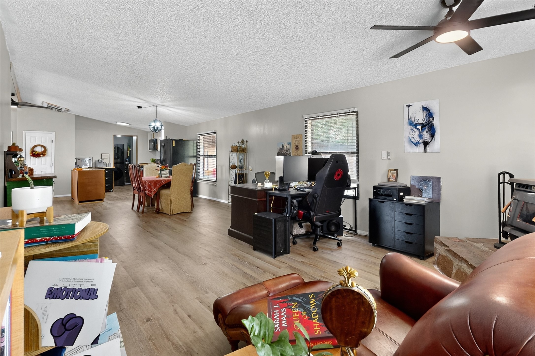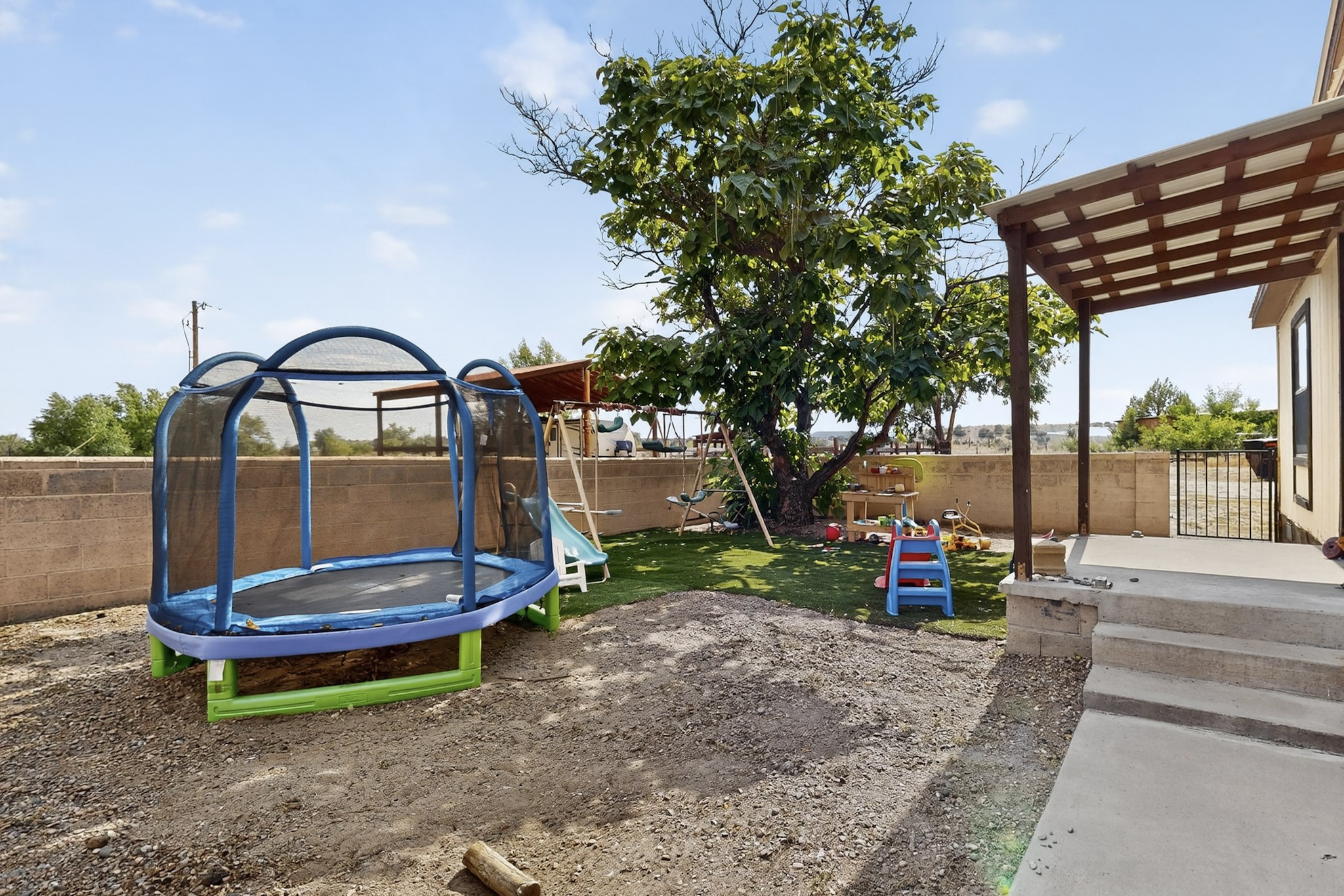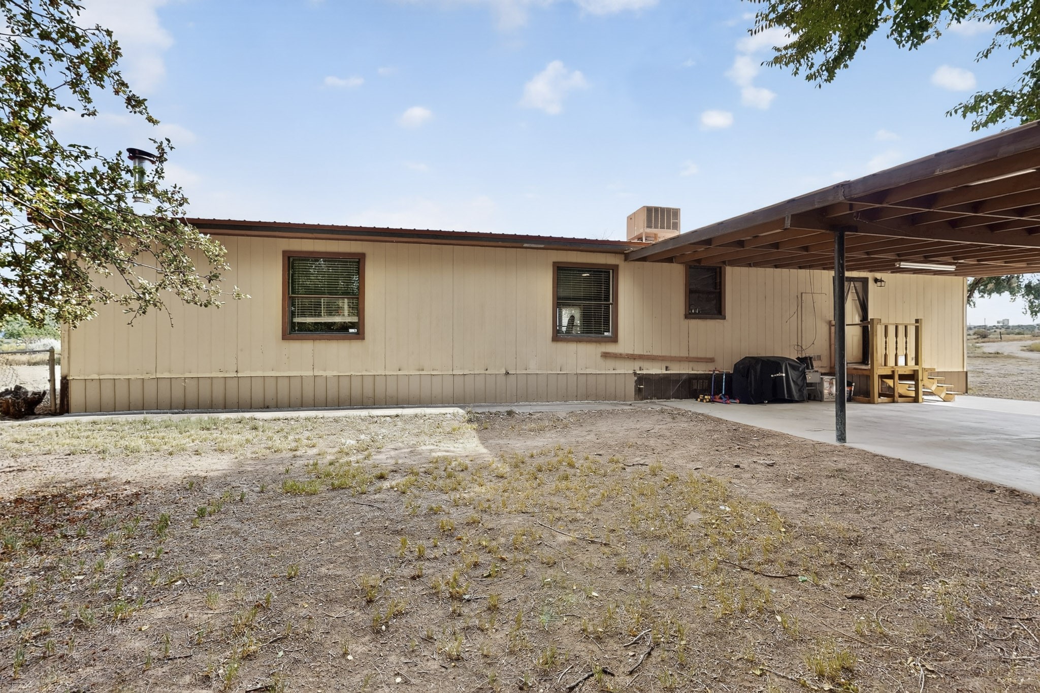 A drive down a private drive will take you to a home that not only offers privacy but offers much more. The home appears to be set in the middle of the lot, on the south side there appears to be a corral and a stable. This lot makes Horse back riding something that could be done daily, down at least two dirt roads. On the north side of the house is a two car carport that is accessed from the laundry room. On the east side is vacant land that could be used for many things, the current owners made a zip line for the kids. The west side of the lot offers a large two car garage. Headed back to the front of the house, the north side, is a small enclosed courtyard, currently filled with kids play equipment but could easily be landscaped as a courtyard. The entrance from this front door opens to a home with a large open concept floor plan. A walk through the formal living room, takes you to the kitchen, with the nice cabinets, and butcher block counter tops. Throughout the house one will be walking on vinyl, wood like, plank flooring, that interlock together, providing an easy floor to maintain. From the kitchen , there is a dining room, and family room. On this same side of the home, to the right are two bedrooms and a bath. Headed back to the kitchen, passed a door, is the laundry room, and an exit door that leads to the carport. From the kitchen to the living room, a quick turn to the right is the entrance to the owner suite, complete with a full garden tub, and separate shower. In short, this house offers all directions of varied opportunities. This house is move in ready and filled with everything a person would want in a home