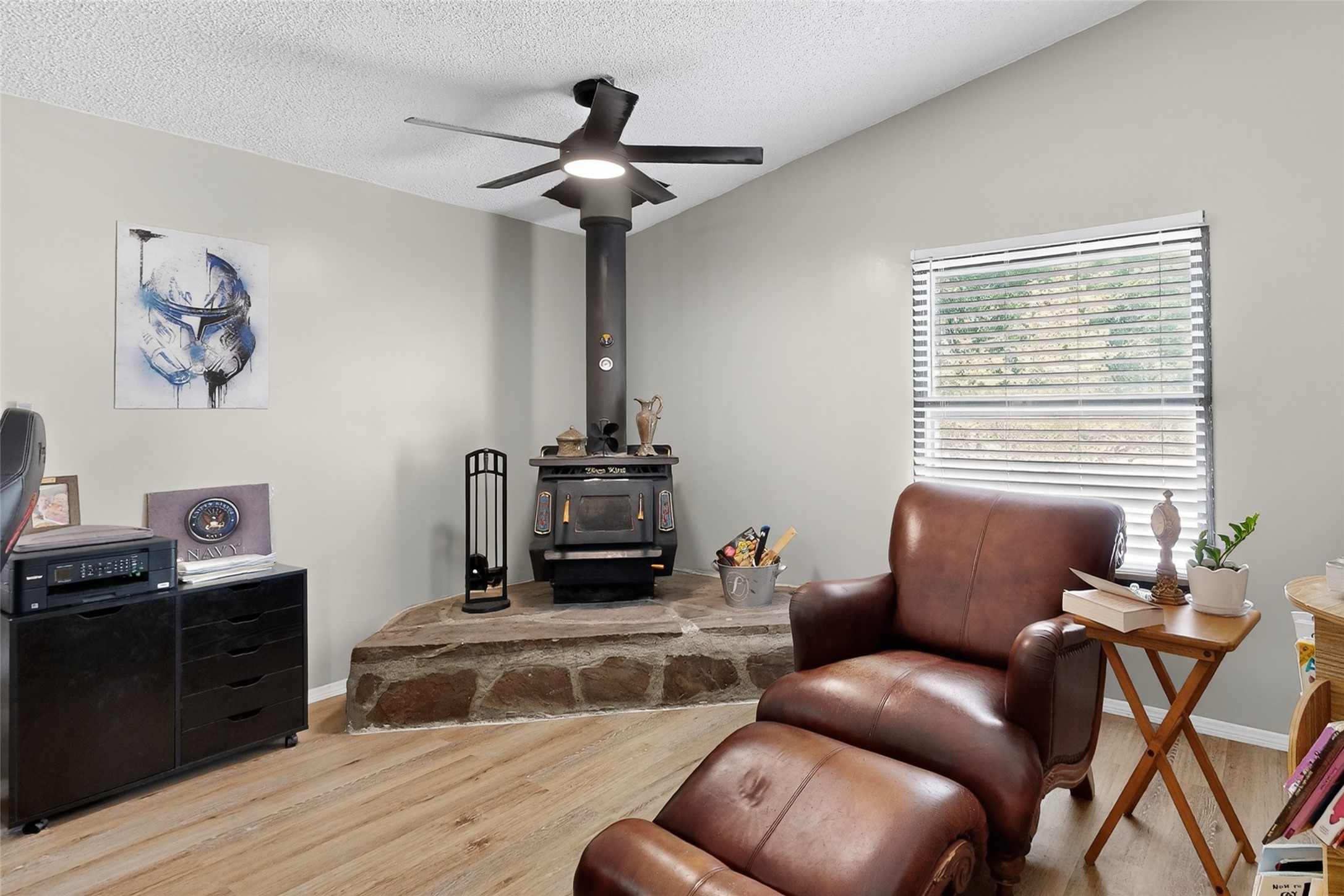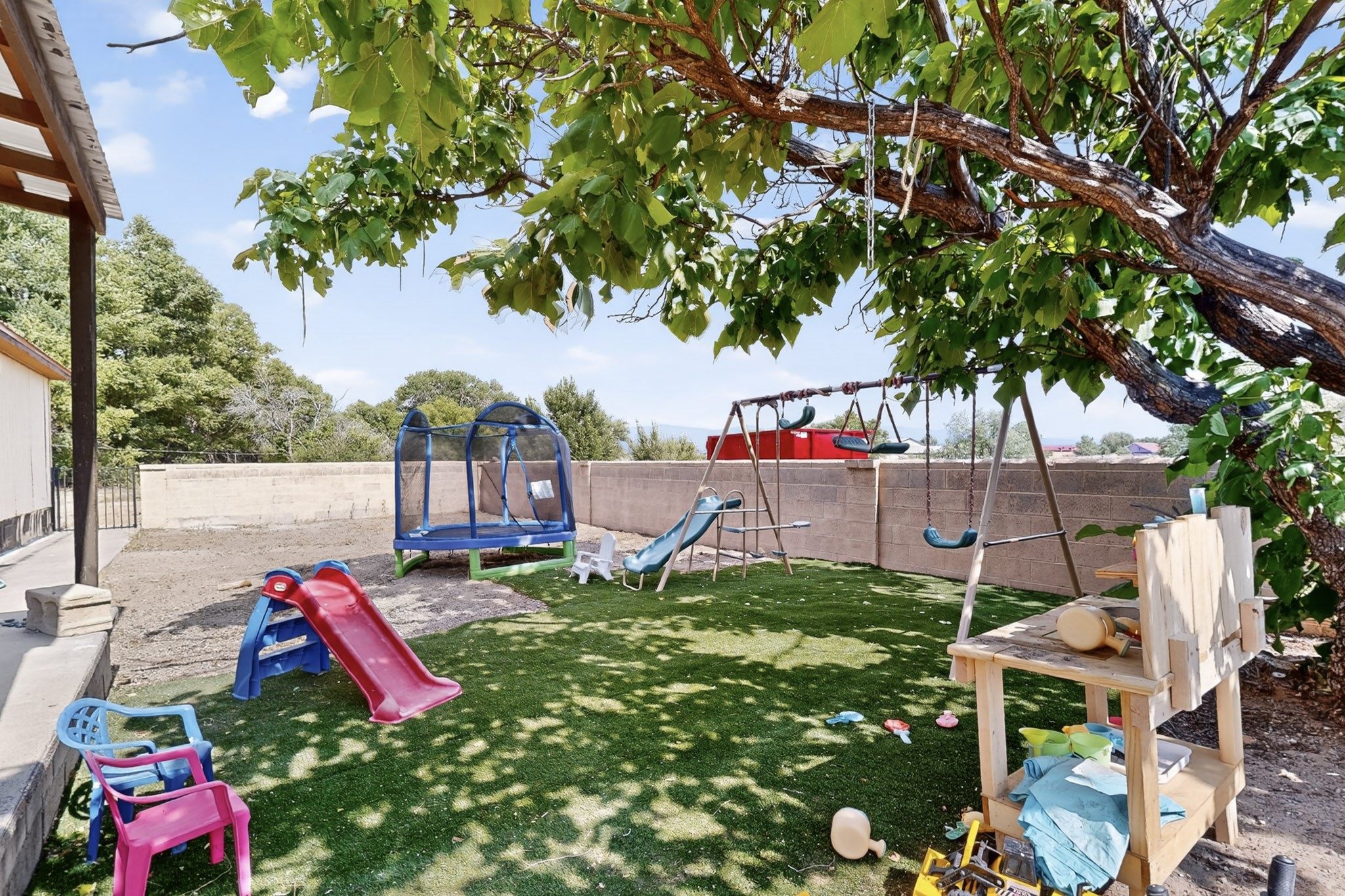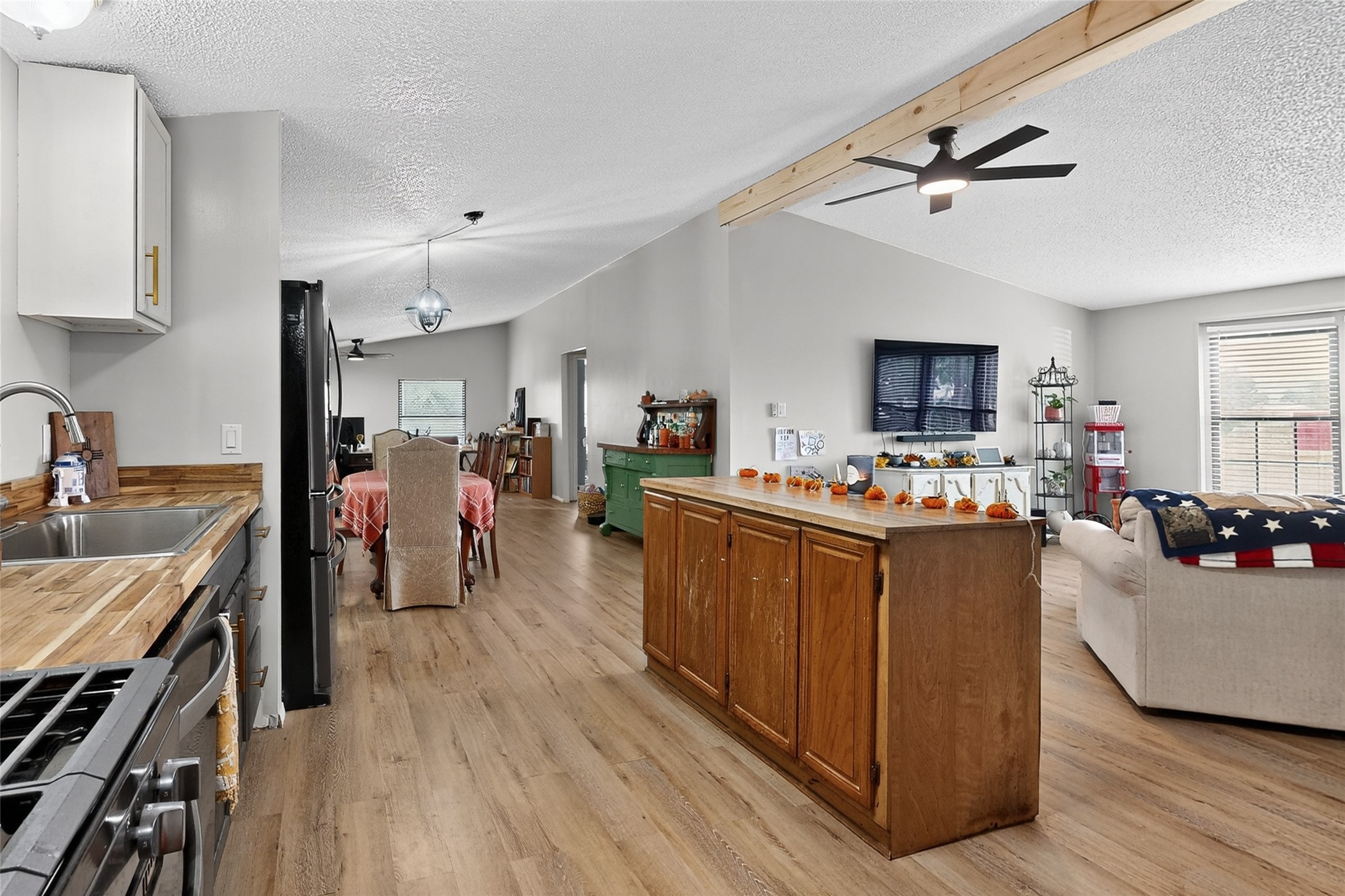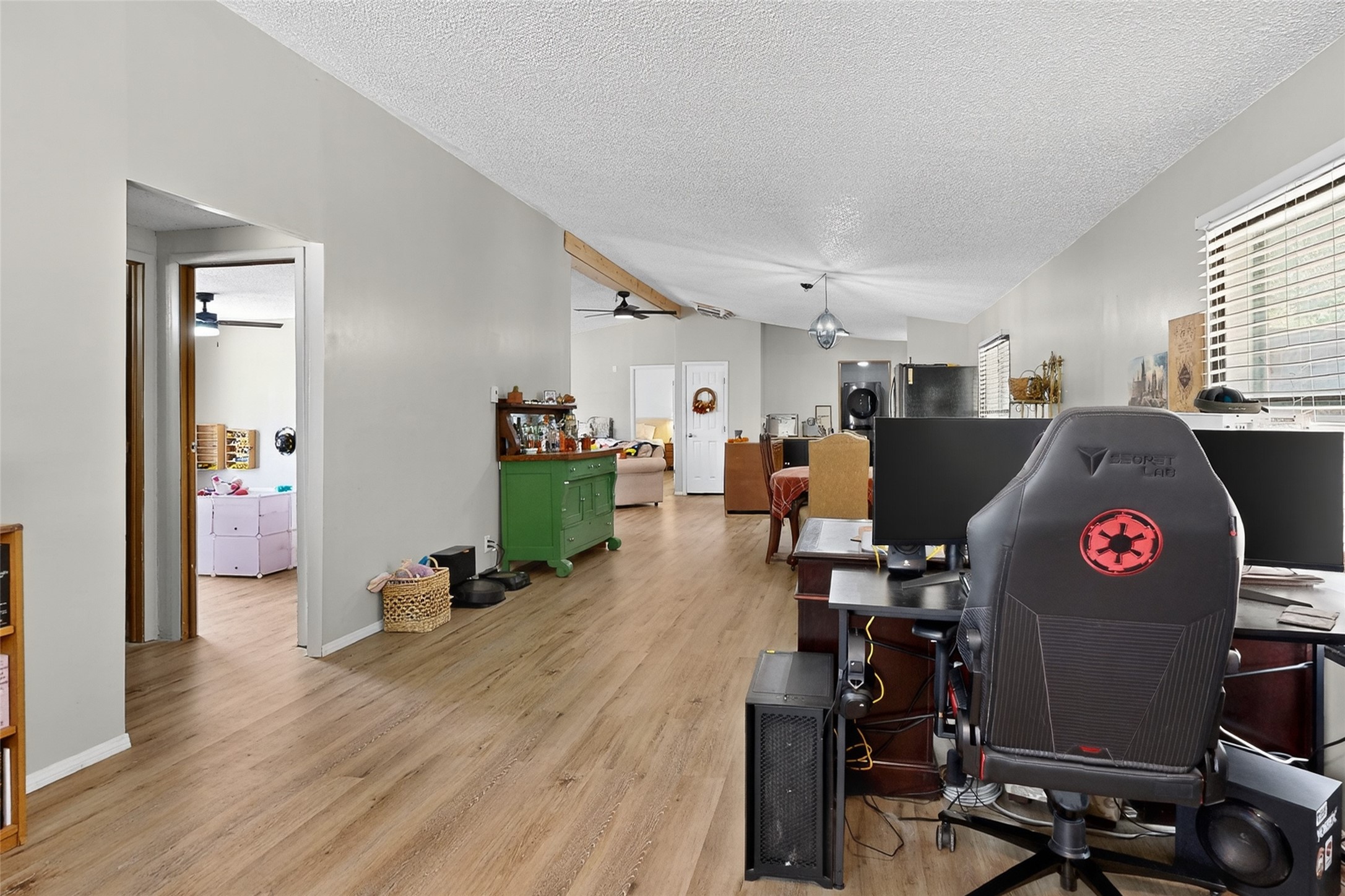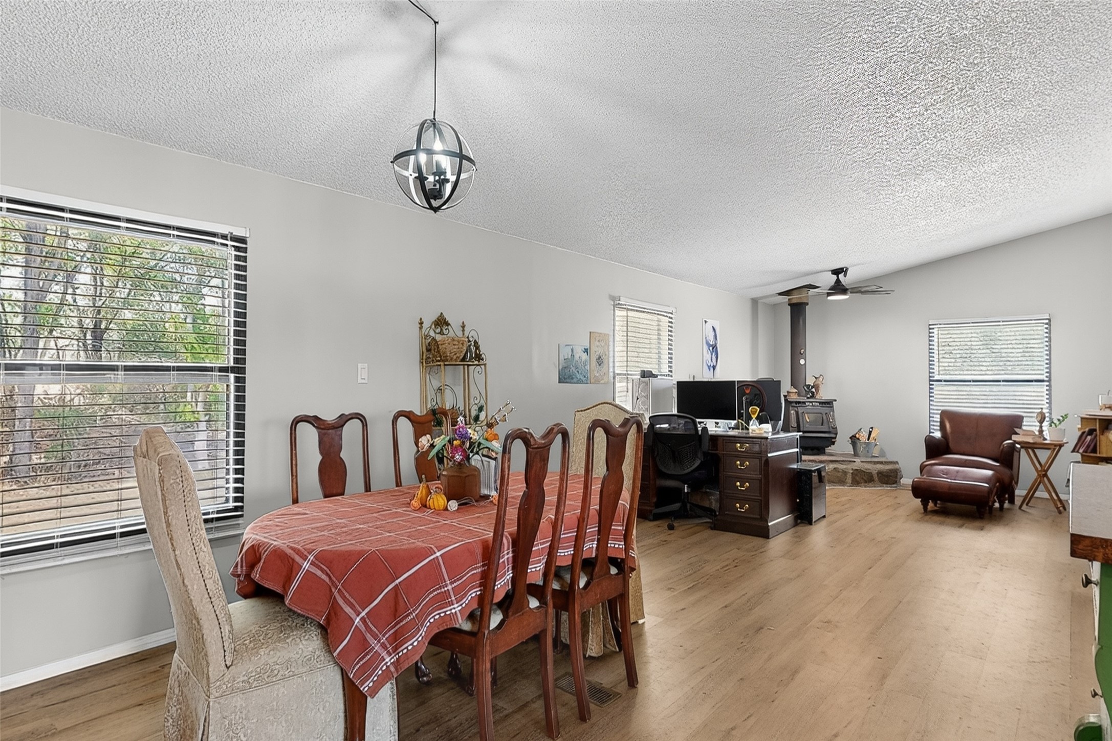 A drive down a private drive will take you to a home that not only offers privacy but offers much more. The home appears to be set in the middle of the lot, on the south side there appears to be a corral and a stable. This lot makes Horse back riding something that could be done daily, down at least two dirt roads. On the north side of the house is a two car carport that is accessed from the laundry room. On the east side is vacant land that could be used for many things, the current owners made a zip line for the kids. The west side of the lot offers a large two car garage. Headed back to the front of the house, the north side, is a small enclosed courtyard, currently filled with kids play equipment but could easily be landscaped as a courtyard. The entrance from this front door opens to a home with a large open concept floor plan. A walk through the formal living room, takes you to the kitchen, with the nice cabinets, and butcher block counter tops. Throughout the house one will be walking on vinyl, wood like, plank flooring, that interlock together, providing an easy floor to maintain. From the kitchen , there is a dining room, and family room. On this same side of the home, to the right are two bedrooms and a bath. Headed back to the kitchen, passed a door, is the laundry room, and an exit door that leads to the carport. From the kitchen to the living room, a quick turn to the right is the entrance to the owner suite, complete with a full garden tub, and separate shower. In short, this house offers all directions of varied opportunities. This house is move in ready and filled with everything a person would want in a home