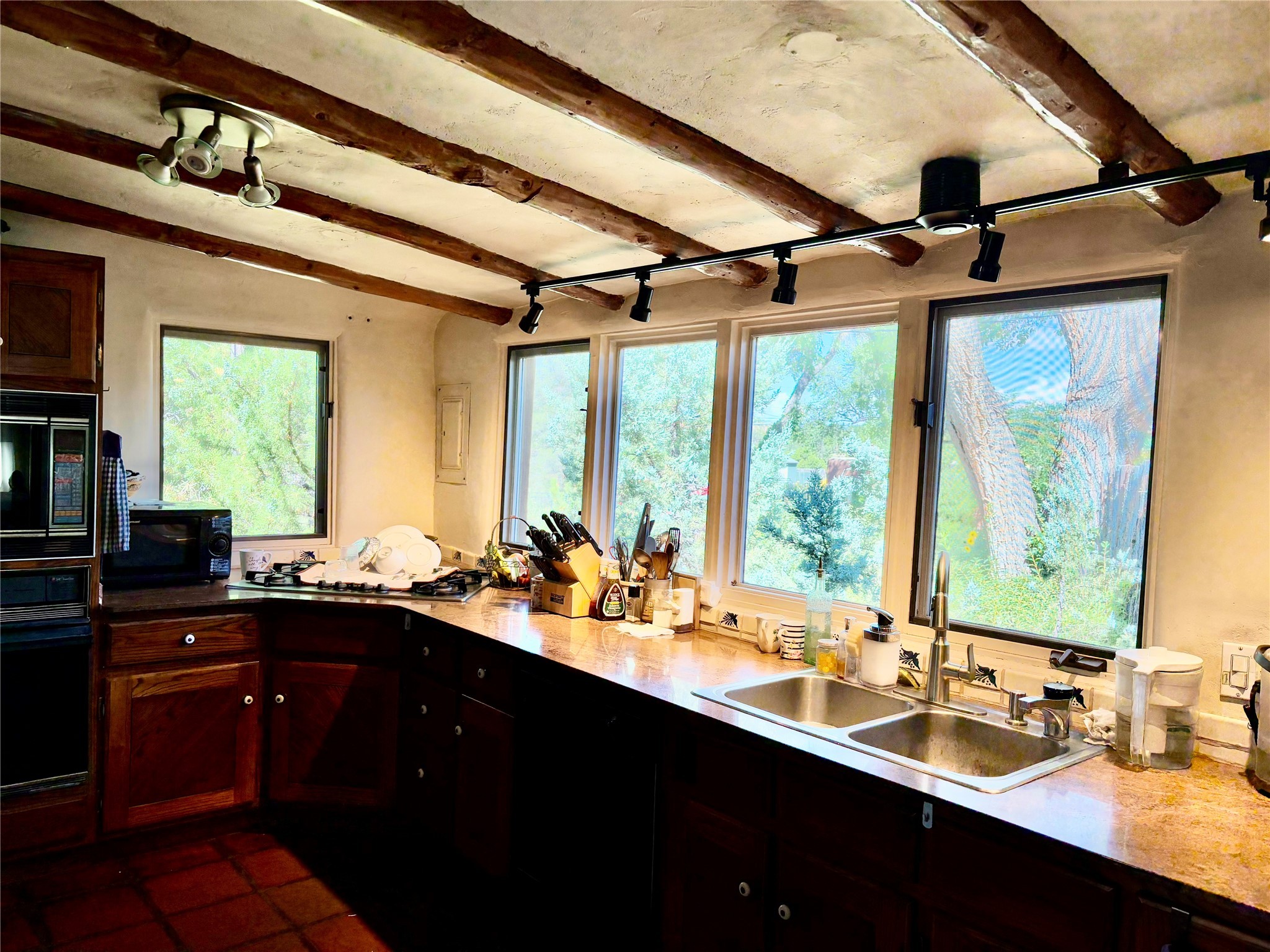 *** WEBSITE: oldcompoundsantafe.com *** What's your dream? A historic Santa Fe compound, nestled on about two semi-rural acres, with an adjoining 0.41 acre lot. Less than 3 miles from the Santa Fe Plaza, the 100+ year old adobe residence and five casitas surround a green central oasis and a small swimming pool. + Imagine the possibilities: retreat, extended family, intentional community, workshops, therapy & health, retirement, or something not yet imagined. +Reserved development rights on 2/3 acre and the vacant lot expand the possibilities. +The current owners discovered the compound in 1969, bought it in 2006, and have been restoring, planting, and loving it ever since. They are ready to offer the compound to new owners, whatever their new dreams may be. + 6 units in 4 buildings, with 8 bedrooms, 8 baths, 9 fireplaces. (Note: Fires in fireplaces are photoshopped in. Buyer should verify fireplaces' functionality.) + Total heated space = 6215 sq. ft. + Each unit has private outdoor garden space. + Extensive remodeling: kitchens and baths, oak and brick floors, new Pella windows, TPO roof, and more. + Landscaping with hundreds of native trees, bushes, vines, and flowers; rock walls and fences. + 12' x 28' Barn with roll up garage door.