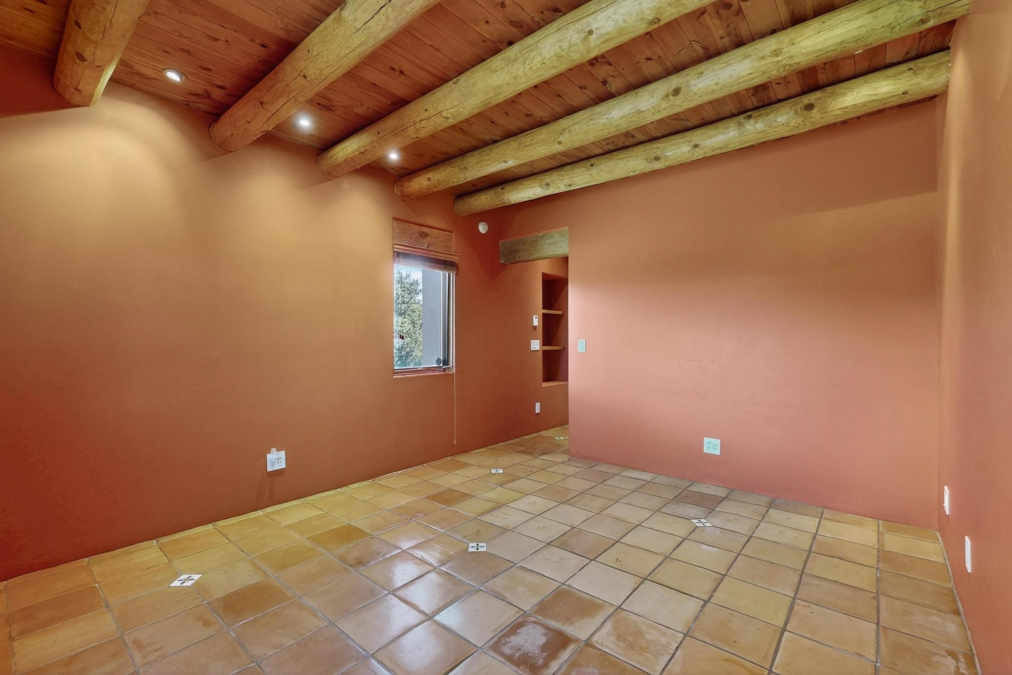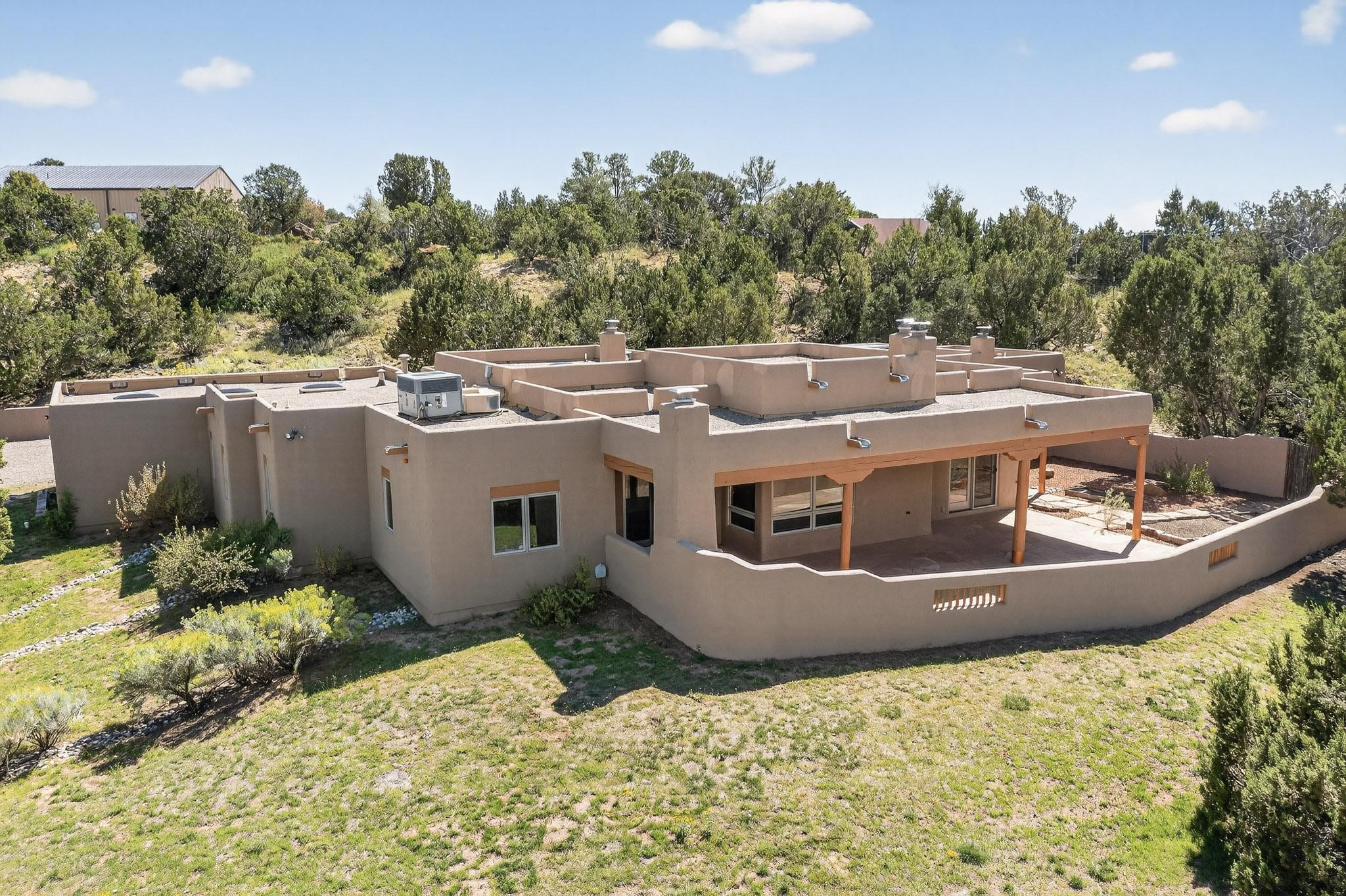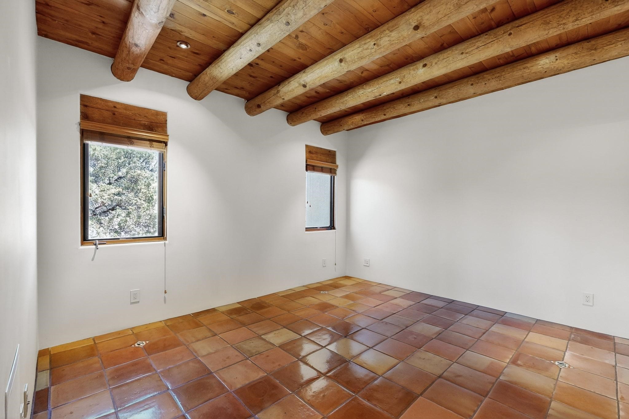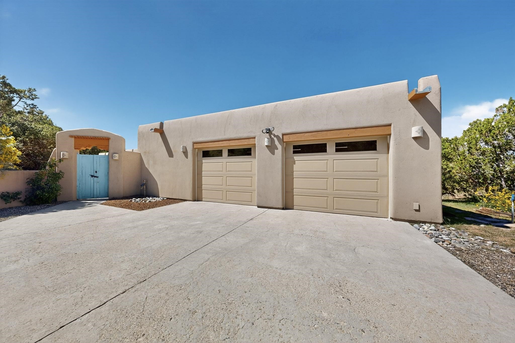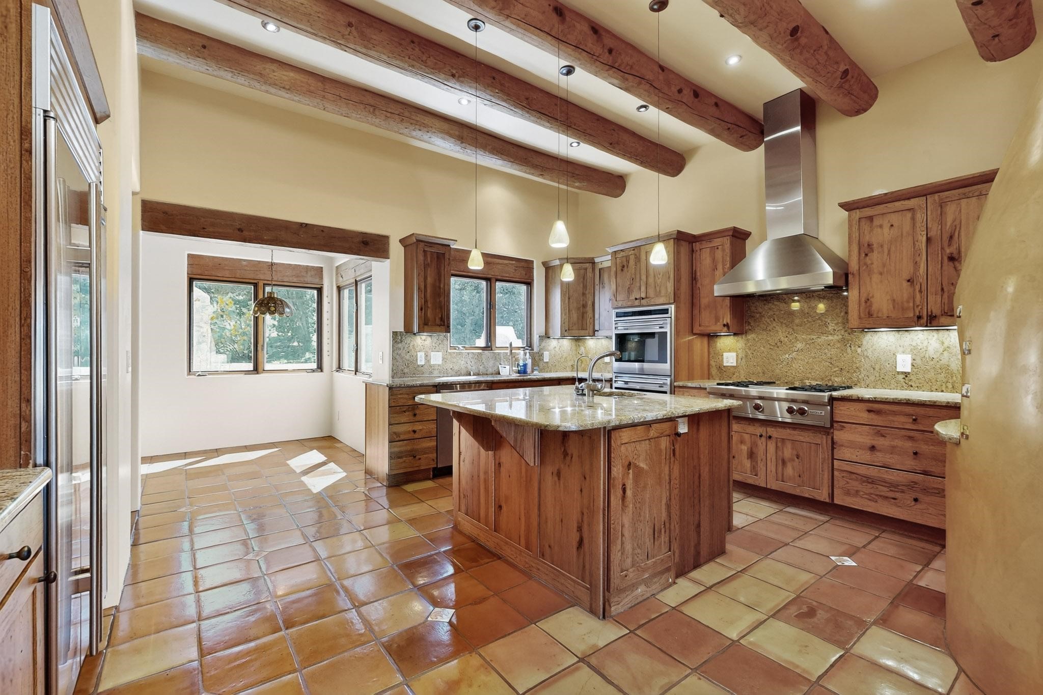 A rare offering in coveted Belicia Estates, custom designed and built this grand Santa Fe pueblo home delights the eye. From gleaming Saltillo tile floors to high viga ceilings, featuring lighted nichos, corbelled beams, 3 traditional kiva fireplaces, a pizza kiva in the kitchen plus an outside kiva for entertainment on the portal. Open plan, split bedroom floorpan creates a separate owners suite with 2 separate bathrooms, a large walk in closet and a separate study/office. There is a grand living room plus family/play room plus formal dining off the kitchen leading out to a wonderfully private walled outside entertainment area with foothill mountain views from the portal. There is a fun chefs kitchen with sunny breakfast nook and large island. There is a separate 2 bedroom and bath guest suite, and convenient laundry room which leads to the spacious 3 car garage. Positioned at the end of a paved cul de sac on 4.3acres close to the gated entry it is within easy reach to 2 local shopping centers, the Galisteo preserve and only minutes into historic Santa Fe. A must see:)