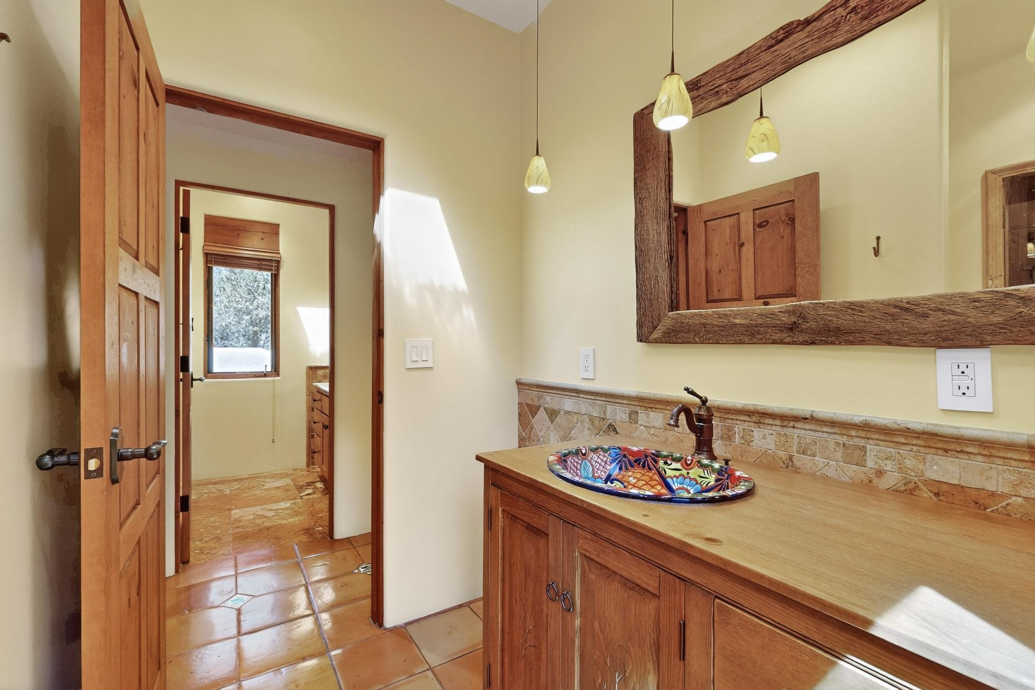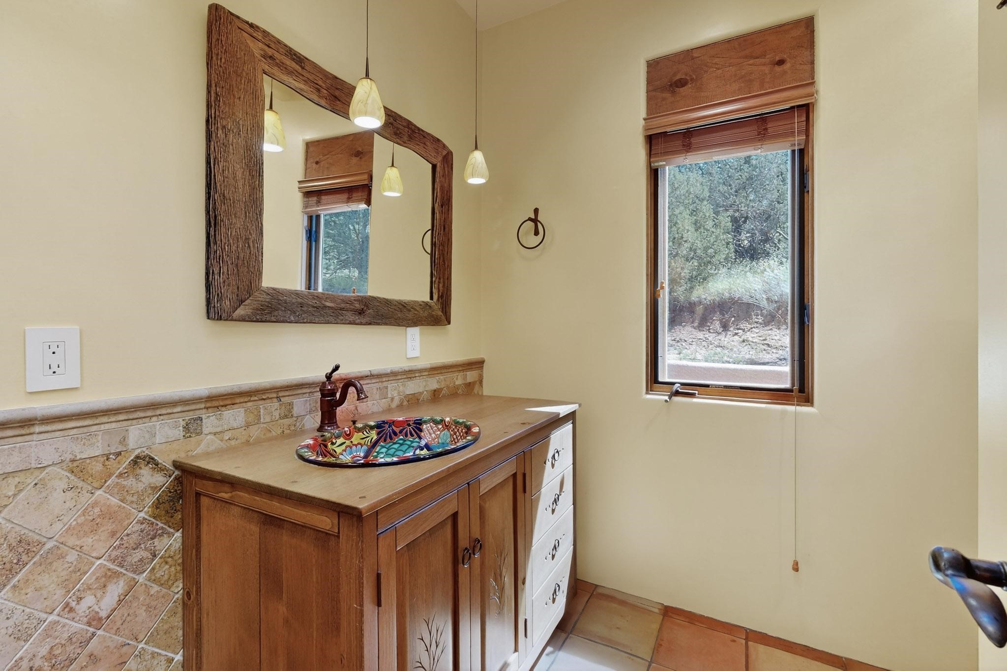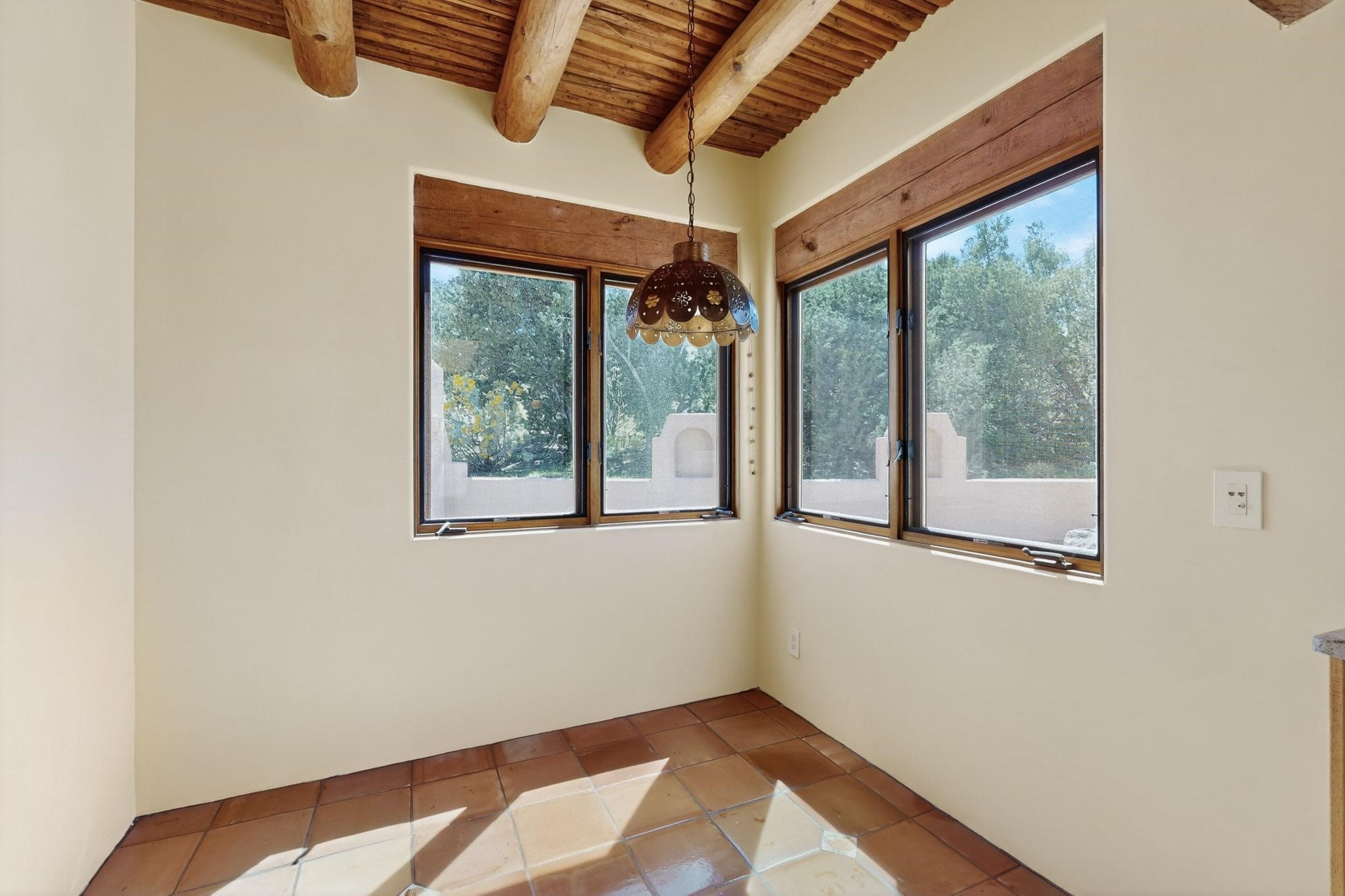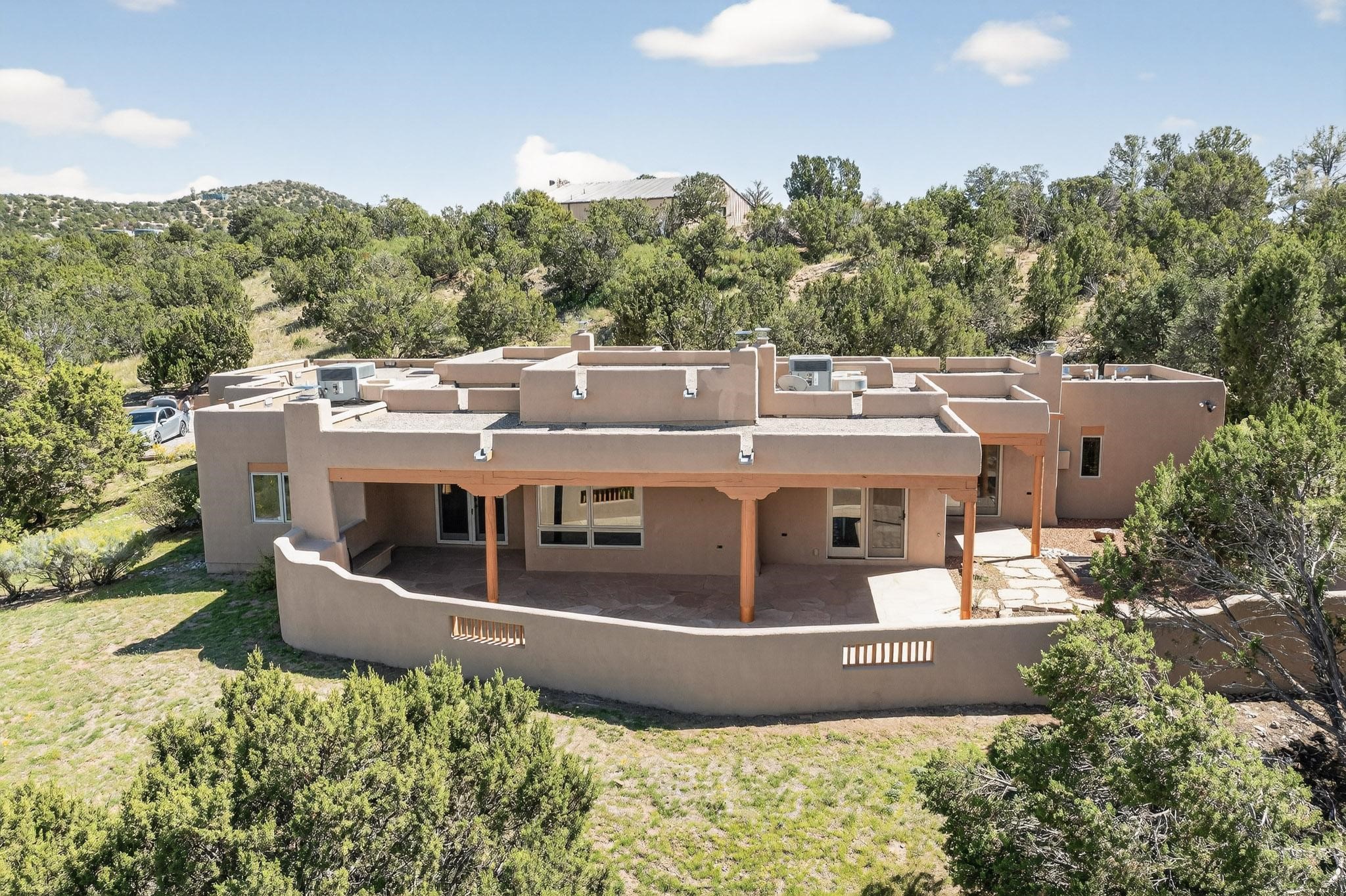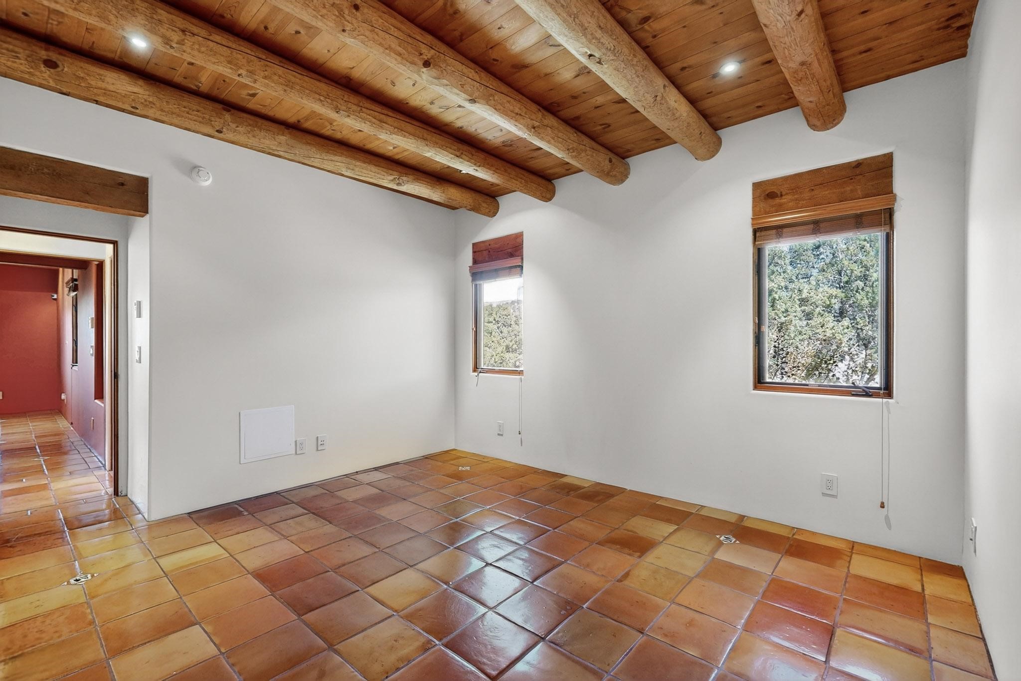 A rare offering in coveted Belicia Estates, custom designed and built this grand Santa Fe pueblo home delights the eye. From gleaming Saltillo tile floors to high viga ceilings, featuring lighted nichos, corbelled beams, 3 traditional kiva fireplaces, a pizza kiva in the kitchen plus an outside kiva for entertainment on the portal. Open plan, split bedroom floorpan creates a separate owners suite with 2 separate bathrooms, a large walk in closet and a separate study/office. There is a grand living room plus family/play room plus formal dining off the kitchen leading out to a wonderfully private walled outside entertainment area with foothill mountain views from the portal. There is a fun chefs kitchen with sunny breakfast nook and large island. There is a separate 2 bedroom and bath guest suite, and convenient laundry room which leads to the spacious 3 car garage. Positioned at the end of a paved cul de sac on 4.3acres close to the gated entry it is within easy reach to 2 local shopping centers, the Galisteo preserve and only minutes into historic Santa Fe. A must see:)