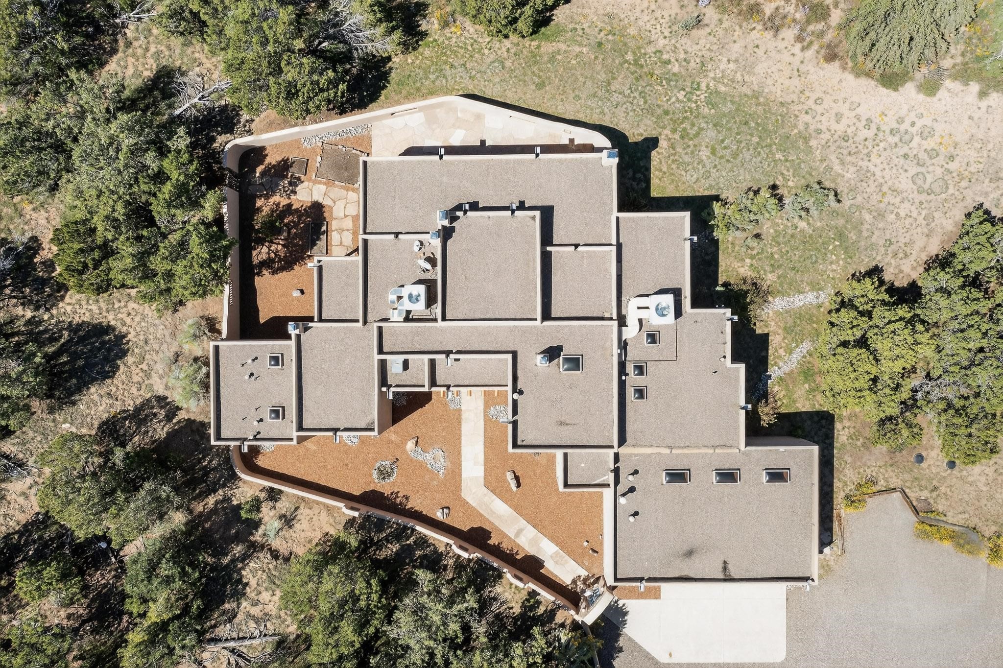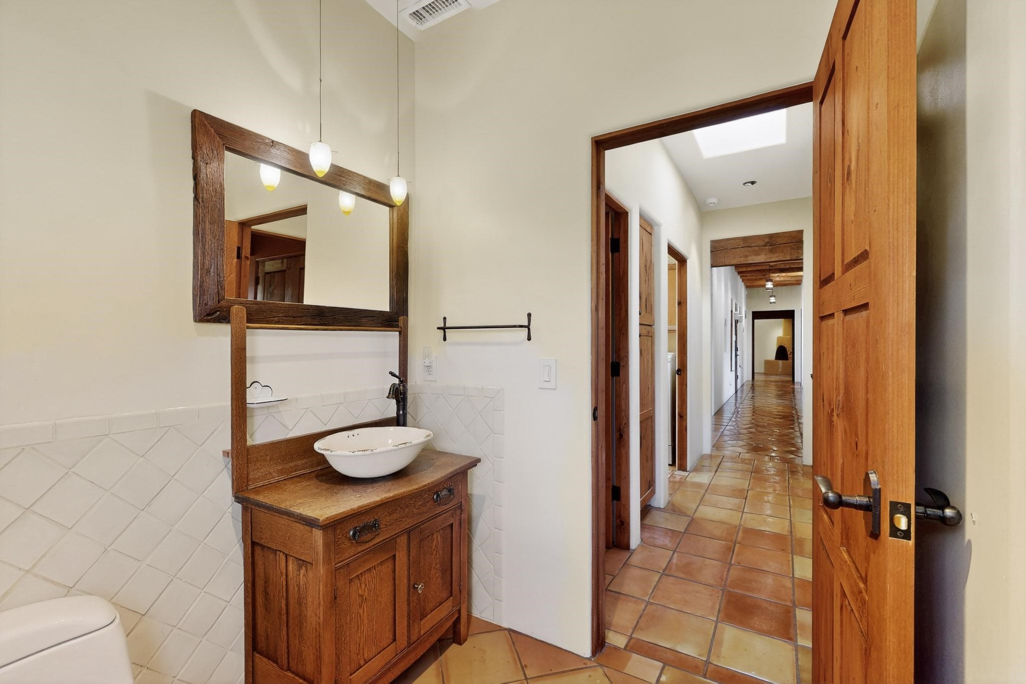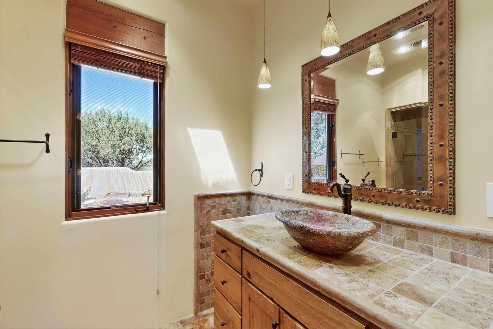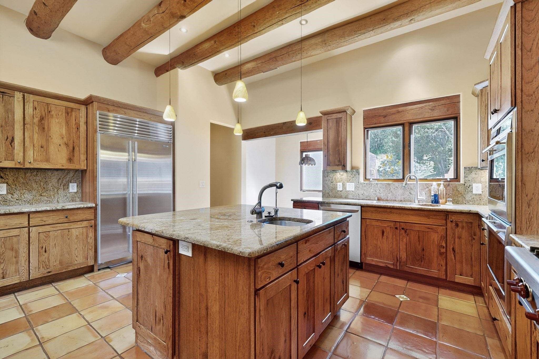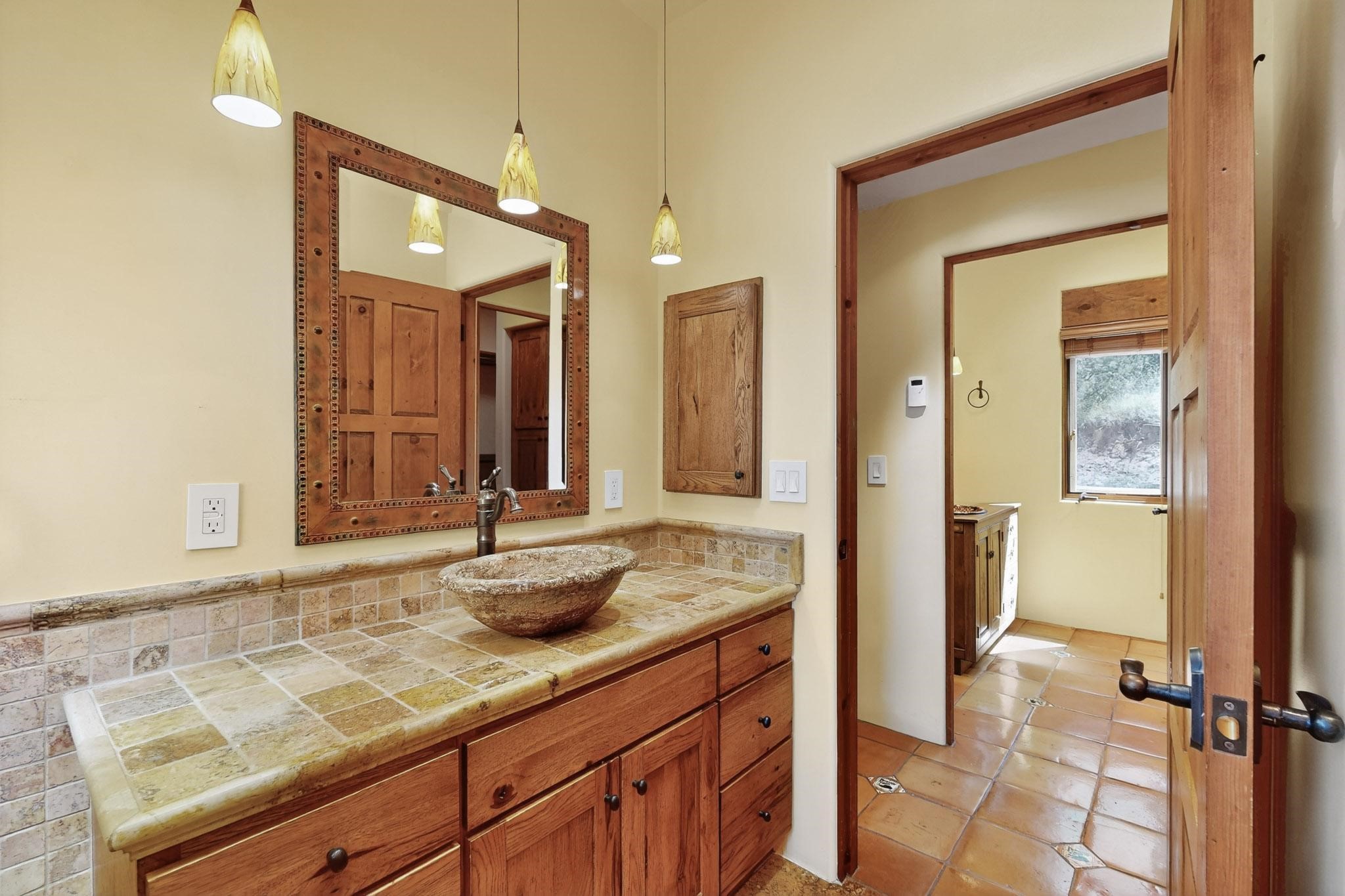 A rare offering in coveted Belicia Estates, custom designed and built this grand Santa Fe pueblo home delights the eye. From gleaming Saltillo tile floors to high viga ceilings, featuring lighted nichos, corbelled beams, 3 traditional kiva fireplaces, a pizza kiva in the kitchen plus an outside kiva for entertainment on the portal. Open plan, split bedroom floorpan creates a separate owners suite with 2 separate bathrooms, a large walk in closet and a separate study/office. There is a grand living room plus family/play room plus formal dining off the kitchen leading out to a wonderfully private walled outside entertainment area with foothill mountain views from the portal. There is a fun chefs kitchen with sunny breakfast nook and large island. There is a separate 2 bedroom and bath guest suite, and convenient laundry room which leads to the spacious 3 car garage. Positioned at the end of a paved cul de sac on 4.3acres close to the gated entry it is within easy reach to 2 local shopping centers, the Galisteo preserve and only minutes into historic Santa Fe. A must see:)