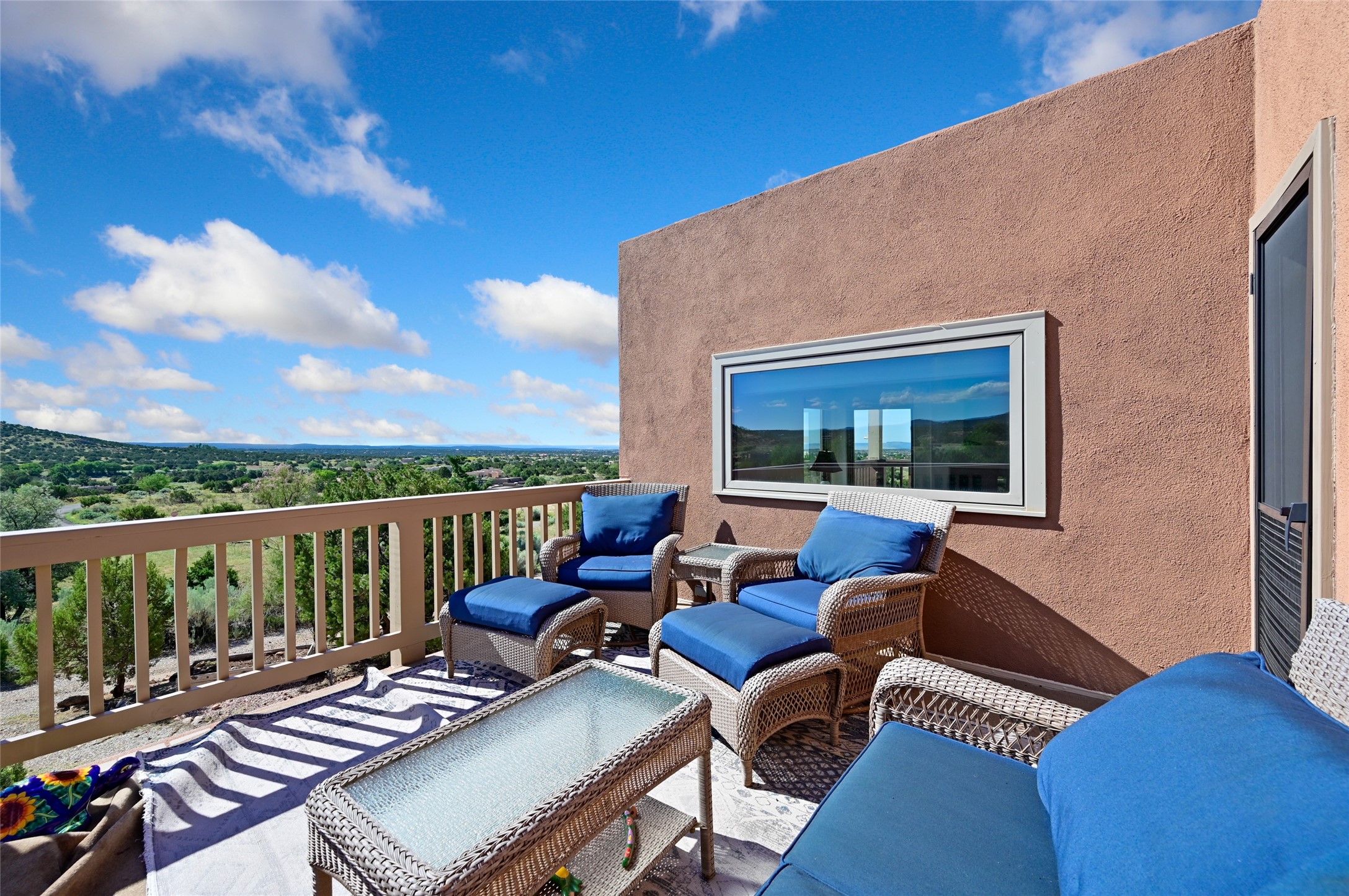 Don't miss this exceptional and unique property!Nestled in the tranquil Dos Griegos community, this exceptional property, "Jewel on the Hill," offers a unique blend of privacy and comfort. Set on 3.34 acres, the home is thoughtfully designed with a separated floor plan that includes two primary suites, two additional bedrooms, and a dedicated office space. One of the primary suites offers the convenience of direct entry from both the exterior and the main living area, providing flexible access and an added layer of privacy.The interior flows out to multiple decks, creating an ideal setting for enjoying the glorious views. A standout feature is the attached atrium studio, providing a perfect space for creative pursuits or relaxation. Additional features include a TPO roof with a transferable warranty and the benefit of no HOA fees. This property offers a truly special living experience in a wonderful location.