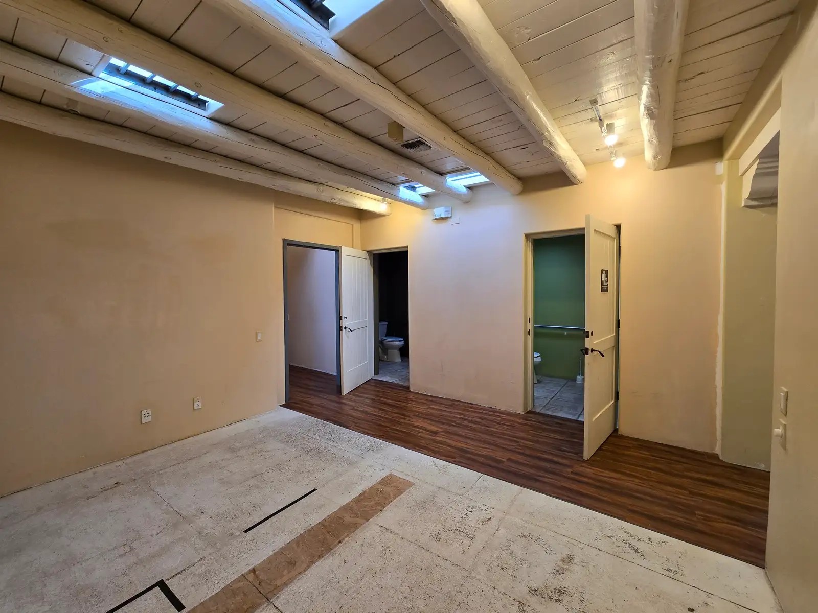 Located at 150 N St Francis Dr #A, this spacious 1,900-square-foot commercial property offers high visibility and high traffic in a prime location near downtown Santa Fe. Zoned C-4, it features a large, open-concept room, bathroom, and ample storage, providing a versatile layout for a range of business types. The property boasts charming Saltillo tile, tile, and laminate flooring throughout, adding character to the space. With a convenient parking lot and easy access to major roads, this property offers the perfect combination of function, style, and accessibility for your business needs.