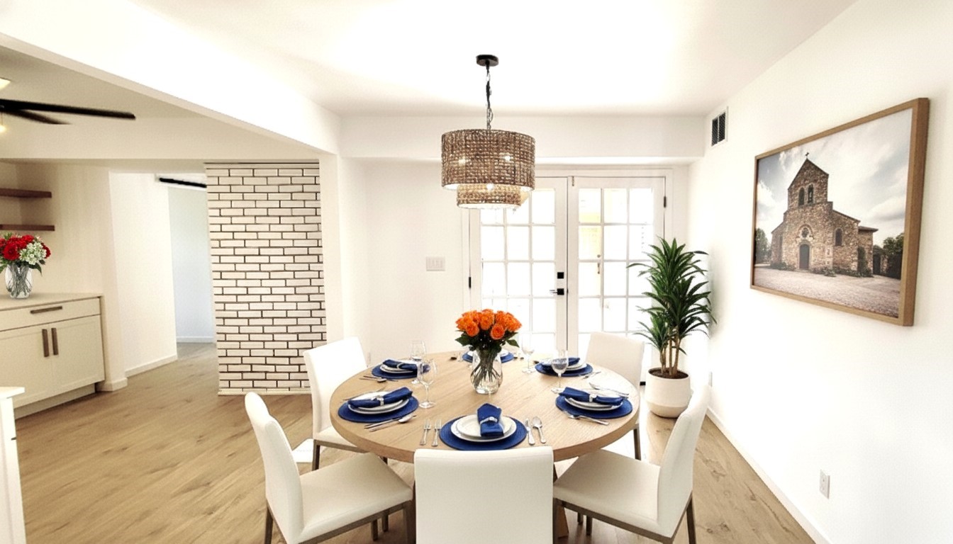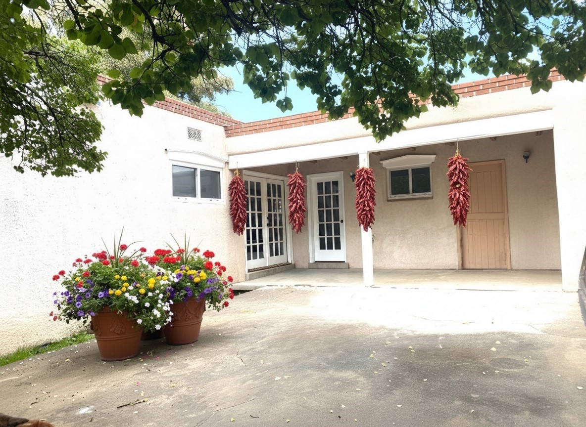 Welcome to this stunningly remodeled Colonial-style home nestled in the heart of Northern New Mexico! Beautifully remodeled with a Separate Studio on Acre begins your journey to your new home! Impress all your guests as you enter the updated modern kitchen with beautiful floating shelves and chef style appliances. Each bedroom features spacious layouts, designer ceiling fans, large picture windows and beautiful hardwood flooring! This property offers the perfect blend of classic charm and contemporary upgrades. Step inside to discover a stunning and beautifully updated interior with attention to detail throughout! Gleaming stainless steel finishes and lavishly designed fixtures compliment the light and natural wood flooring. This light-filled layout is ideal for both relaxation and entertaining. The open-concept kitchen flows seamlessly into the spacious dining room and main living areas, making it the heart of the home. This fabulous property showcases a large backyard offering plenty of space for gardening, gatherings, or even future additions. Whether you're sipping coffee on the porch or hosting a barbecue under the New Mexico sky, this phenomonal home can be your own private oasis.