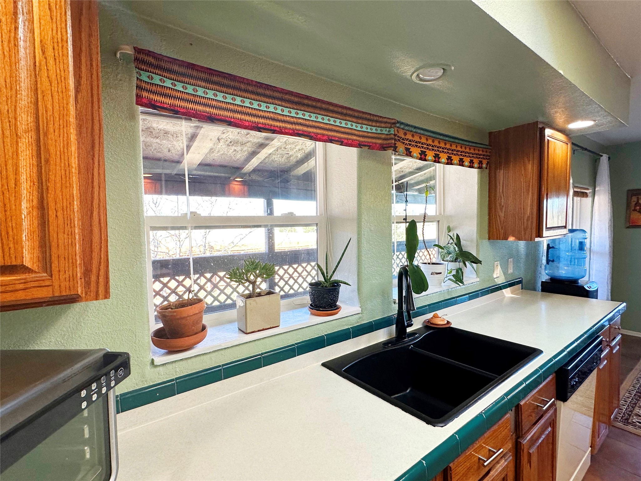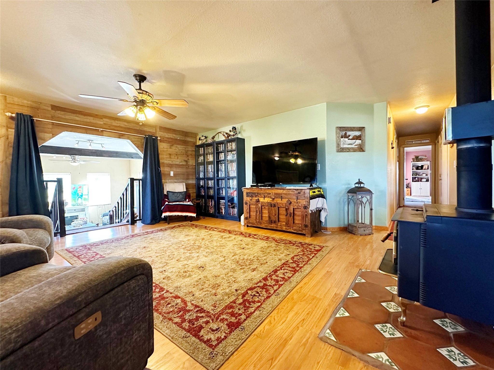 Welcome home to this delightful 2 bedroom, 2 bath modular home on 5.04 acres of stunning New Mexico landscape in San Geronimo. This beautifully level property offers breathtaking panoramic mountain views, rolling meadows, and graceful pine trees - your own natural sanctuary. The thoughtfully designed master suite serves as your personal haven, featuring a comfortable sitting area and access to its own private covered deck where you can unwind after a fulfilling day. Additionally, the home features an expansive wrap-around deck offering commanding views of the iconic Hermit's Peak and spectacular sunsets across the crisp mountain landscape.The spacious kitchen provides generous storage and counter space, ideal for preparing meals or entertaining. The den offers wonderful flexibility with its