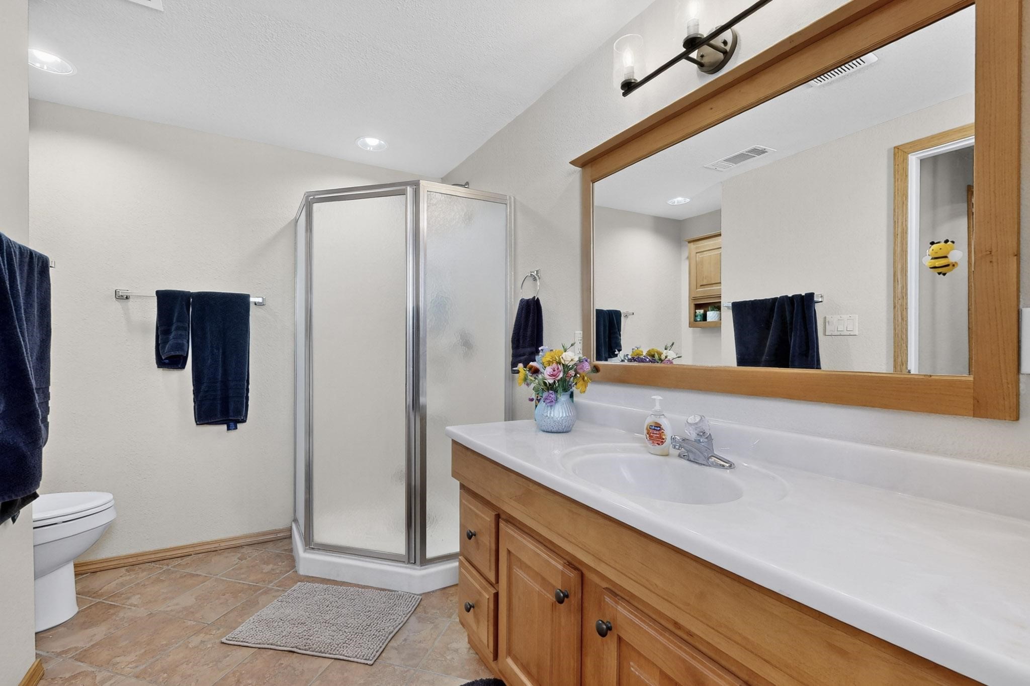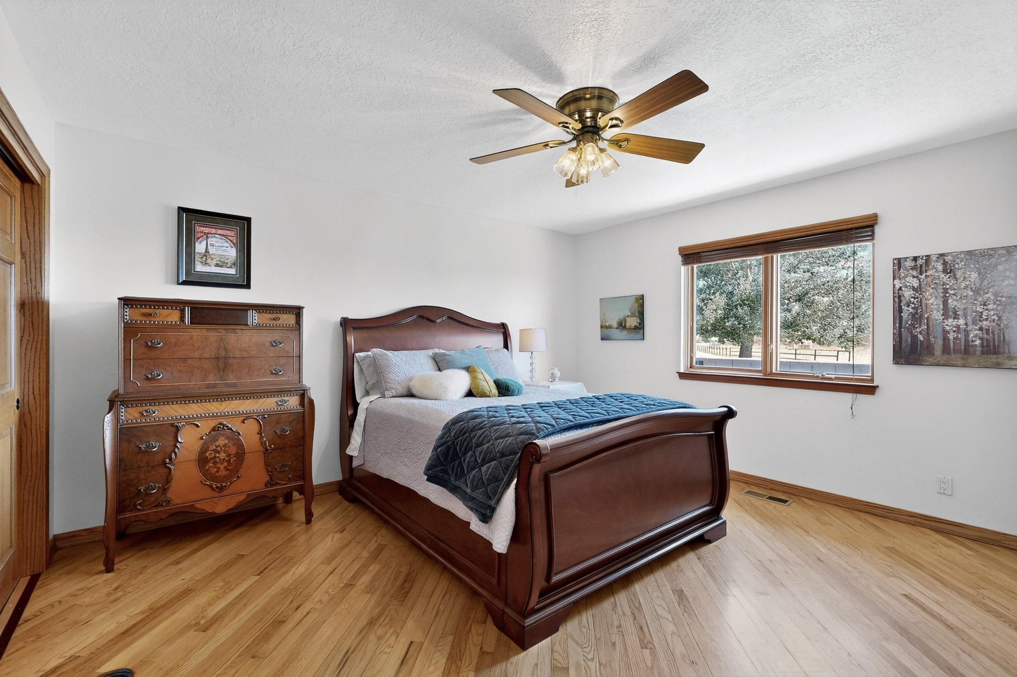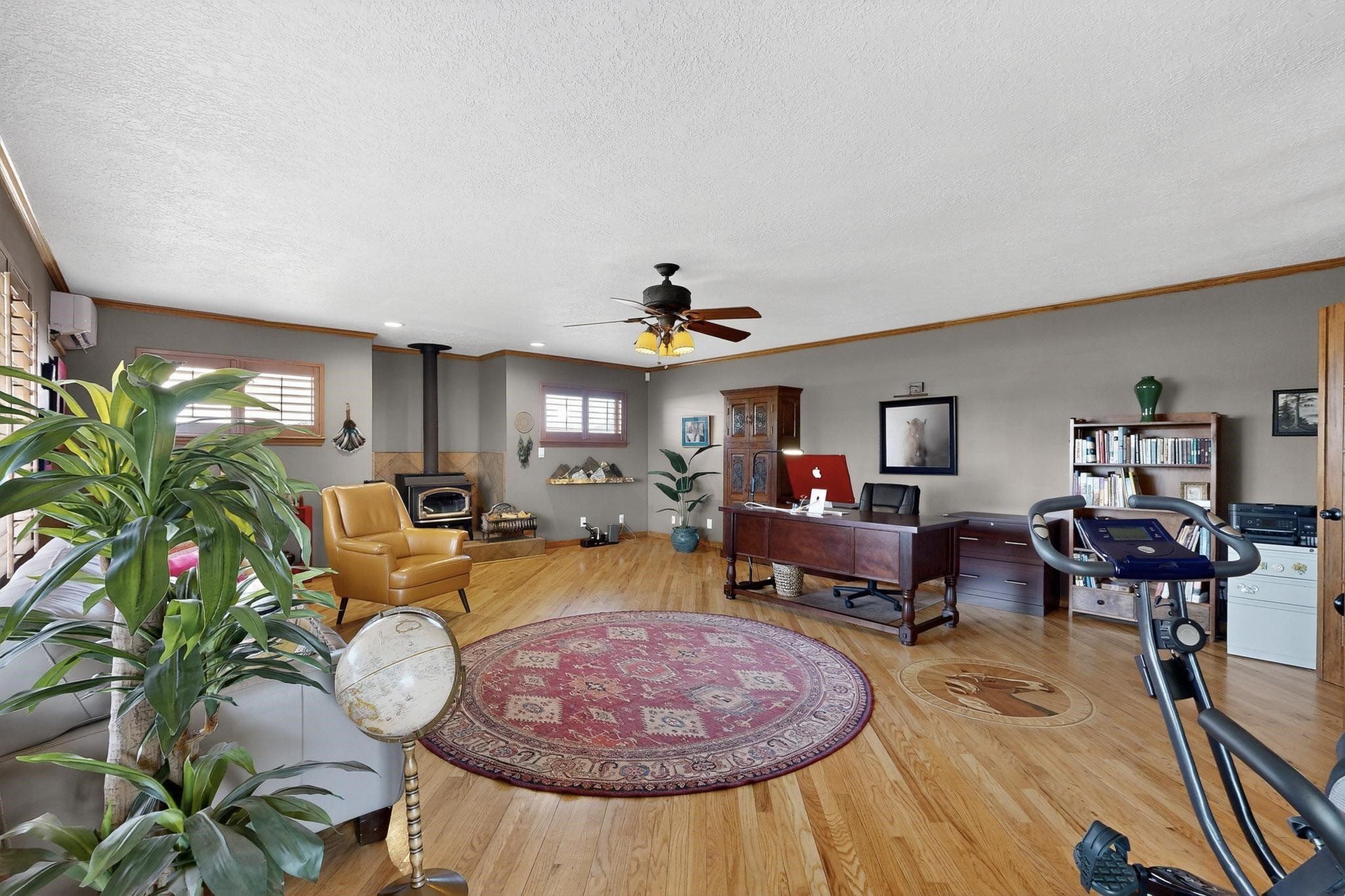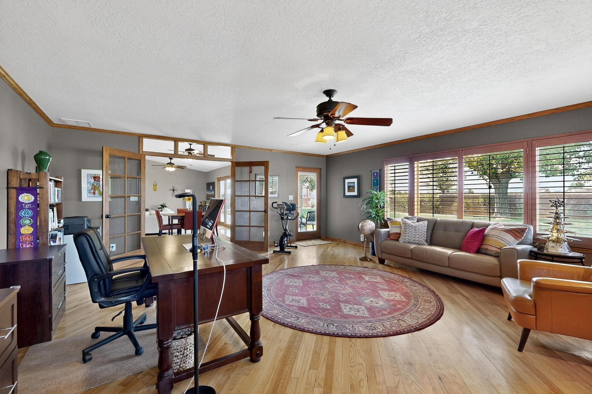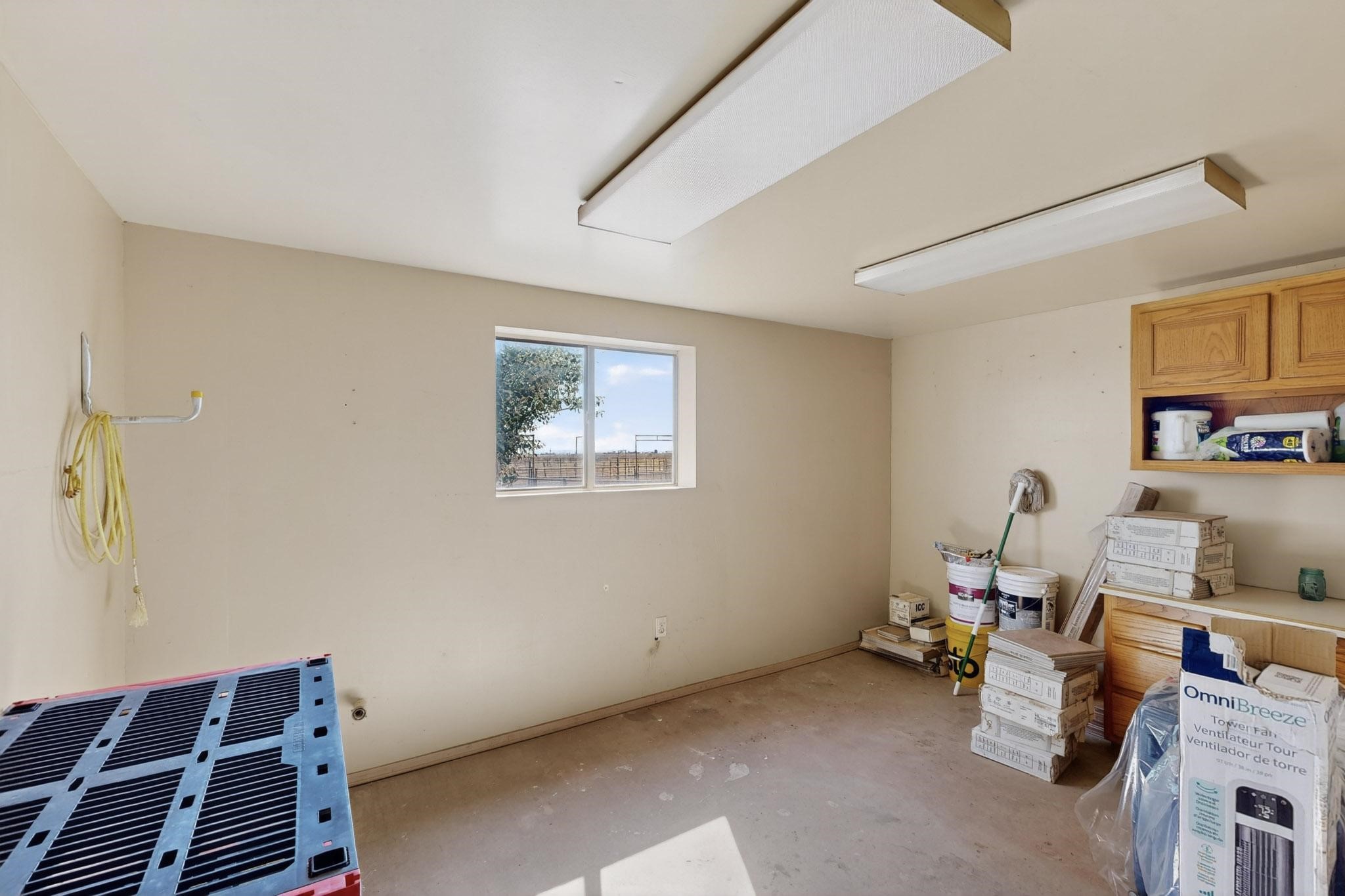 This true equine estate has finally come on the market so don't miss your opportunity to own this amazing property. 38.8 acres fully fenced and cross fenced! 3051 heated sqft of main home and guest suite. This estate home boasts hardwood floors throughout, with custom touches, large spacious open floor plan with great room and kitchen for entertaining, primary bedroom suite with wall to wall closets, double vanities, and exterior access. 3bed 2bath main home, 2 living areas, gourmet stainless steel kitchen, laundry room with storage. There are so many built in storage and closets the possibilities are endless on how you use it. Oversized finished 2 car garage with built in storage. 4 stall barn with finished tack room, and 1 bedroom, 1 bath, kitchenette, walk in closet: guest suite.Not only are you going to love this estate, but your animals will love it too! Full sized arena for your use and three cross fenced pastures all with barn loafing sheds. Water has been run throughout the property to the barns for the convenience of keeping the critters taken care of. The approx. 2300 sqft barn has pull through capability, a finished tack room, 4 walk out stalls, hay storage, rubber floor mats, and a 363 sqft guest living quarters! A large equine estate like this doesn't come up for sale in the East Mountains/Southern Santa Fe County area too often, and none are as nice and custom as this property. If you are needing a place to kick up your boots, let your critters stretch their legs, and for yourself to relax from dawn to dusk, you have found your 38.8 acre slice of paradise with this equine estate.
