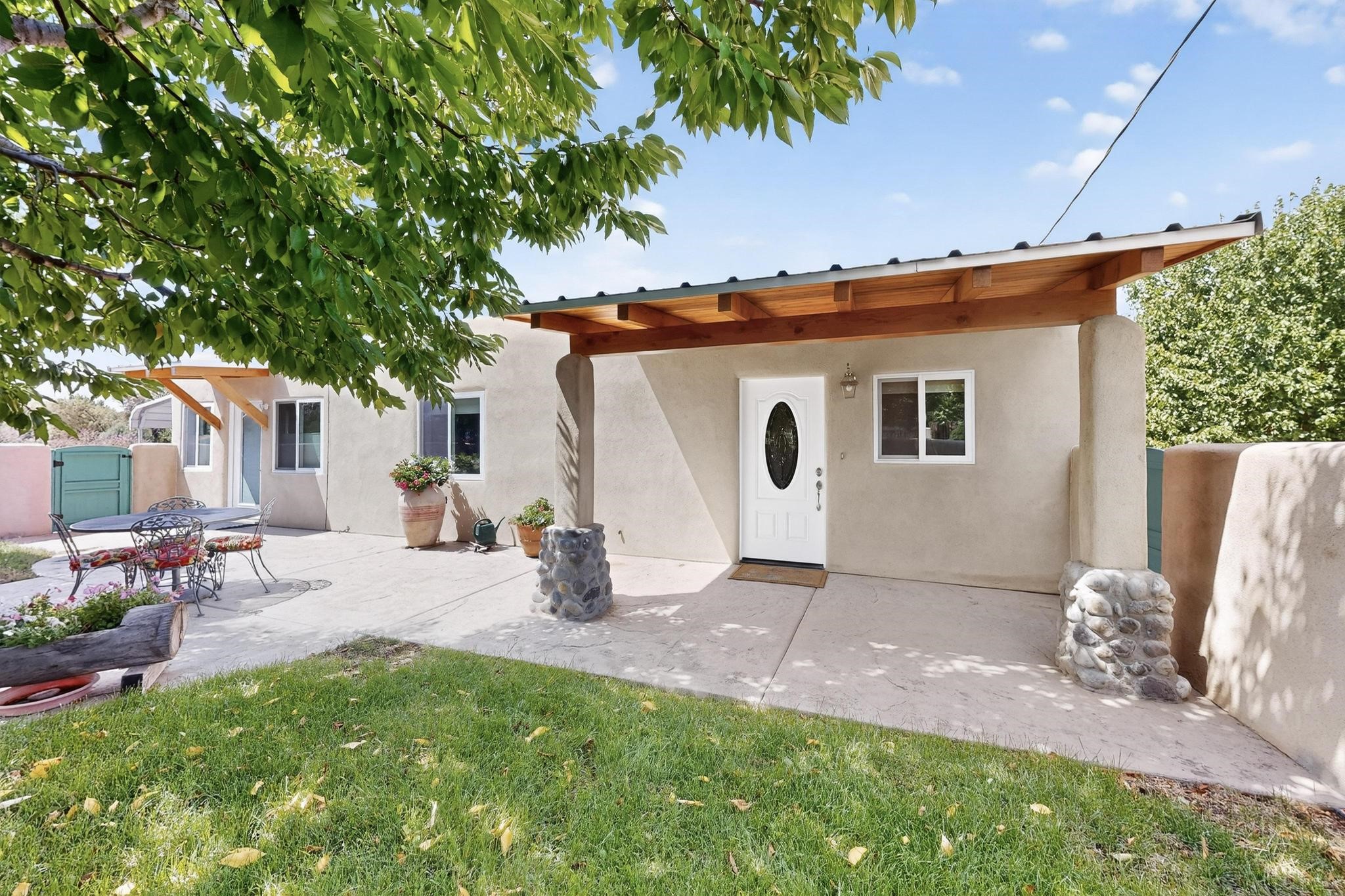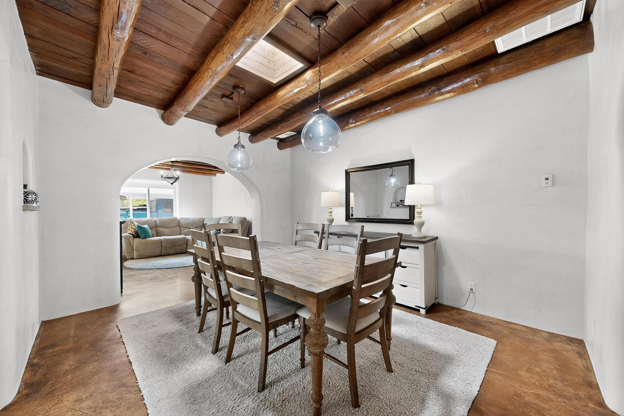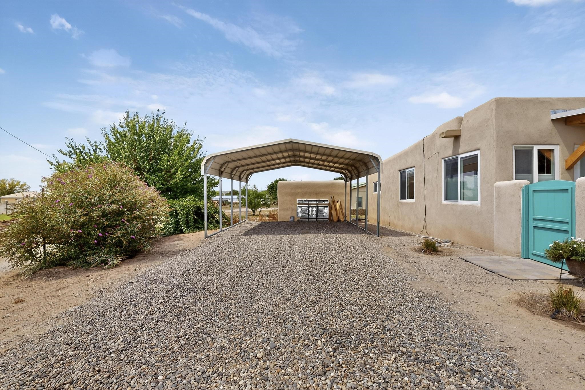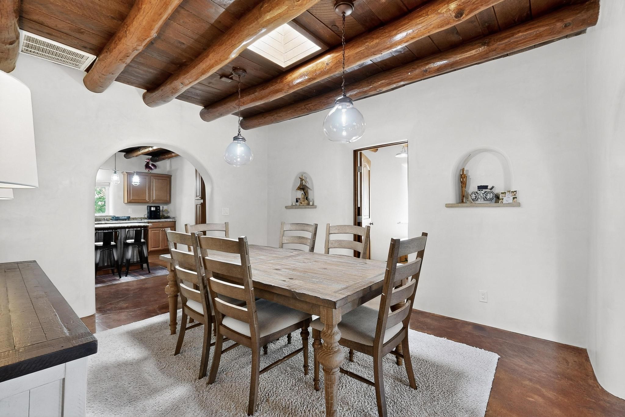 Beautiful home located in Pena Blanca. The home is located on .52 +/- acres. Outdoor areas include a walled courtyard with mature landscaping, fruit trees, and a small vineyard and 2 covered parking spaces. Adobe built home with stunning finishes such as viga ceilings, stained concrete floors, diamond finished walls and archways. The kitchen boasts granite countertops and an eat-in island with a separate large formal dining room. A 10X14 adobe storage building and a 10X12 Morgan Metal Storage is also located on the property. The property has community water plus a private well for irrigation. The private septic system is maintained by the community water and sanitation district. Newly replaced electrical and plumbing/heating/cooling systems. Easy commute via I-25 to Santa Fe and Albuquerque. Convenient access to Cochiti Lake.