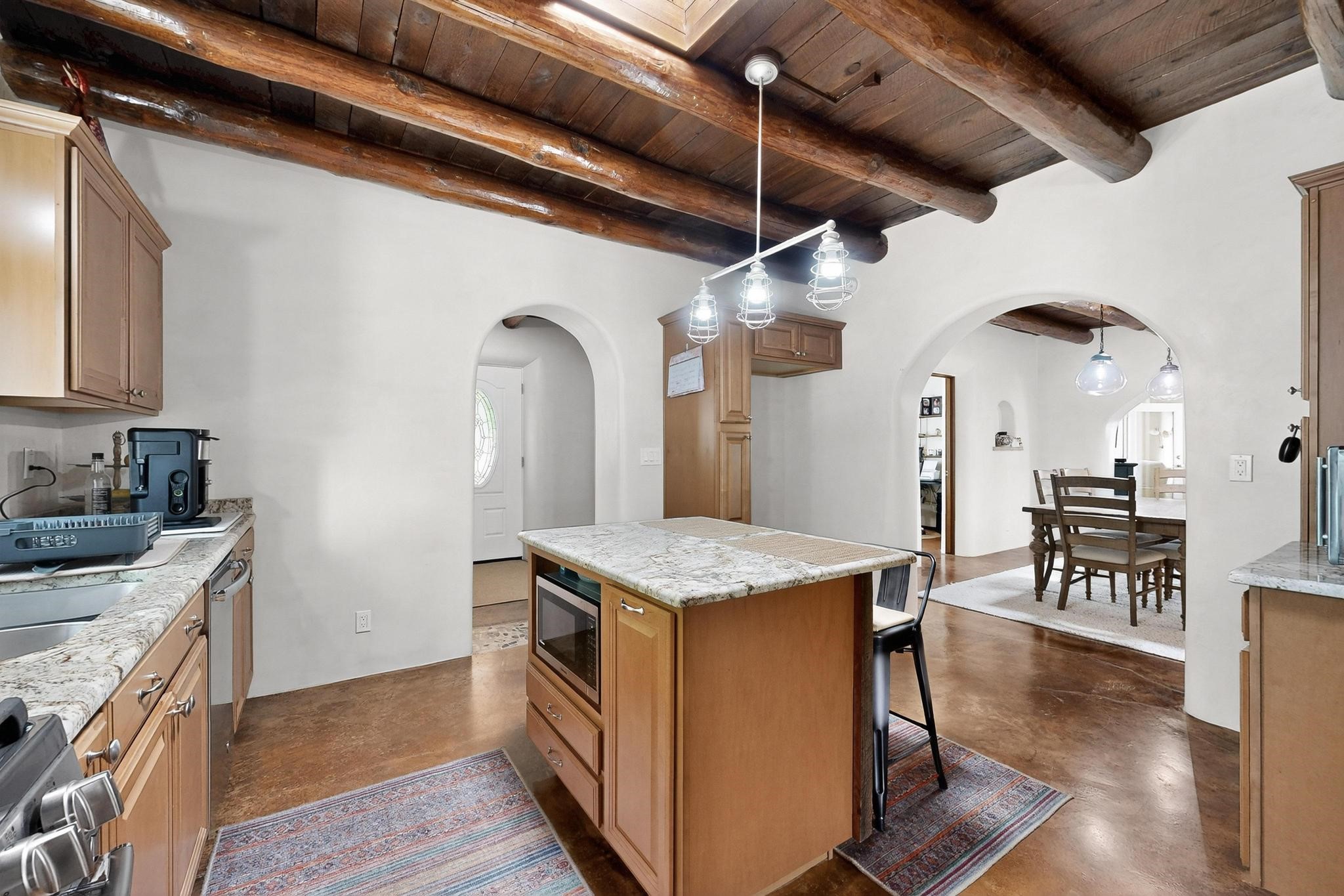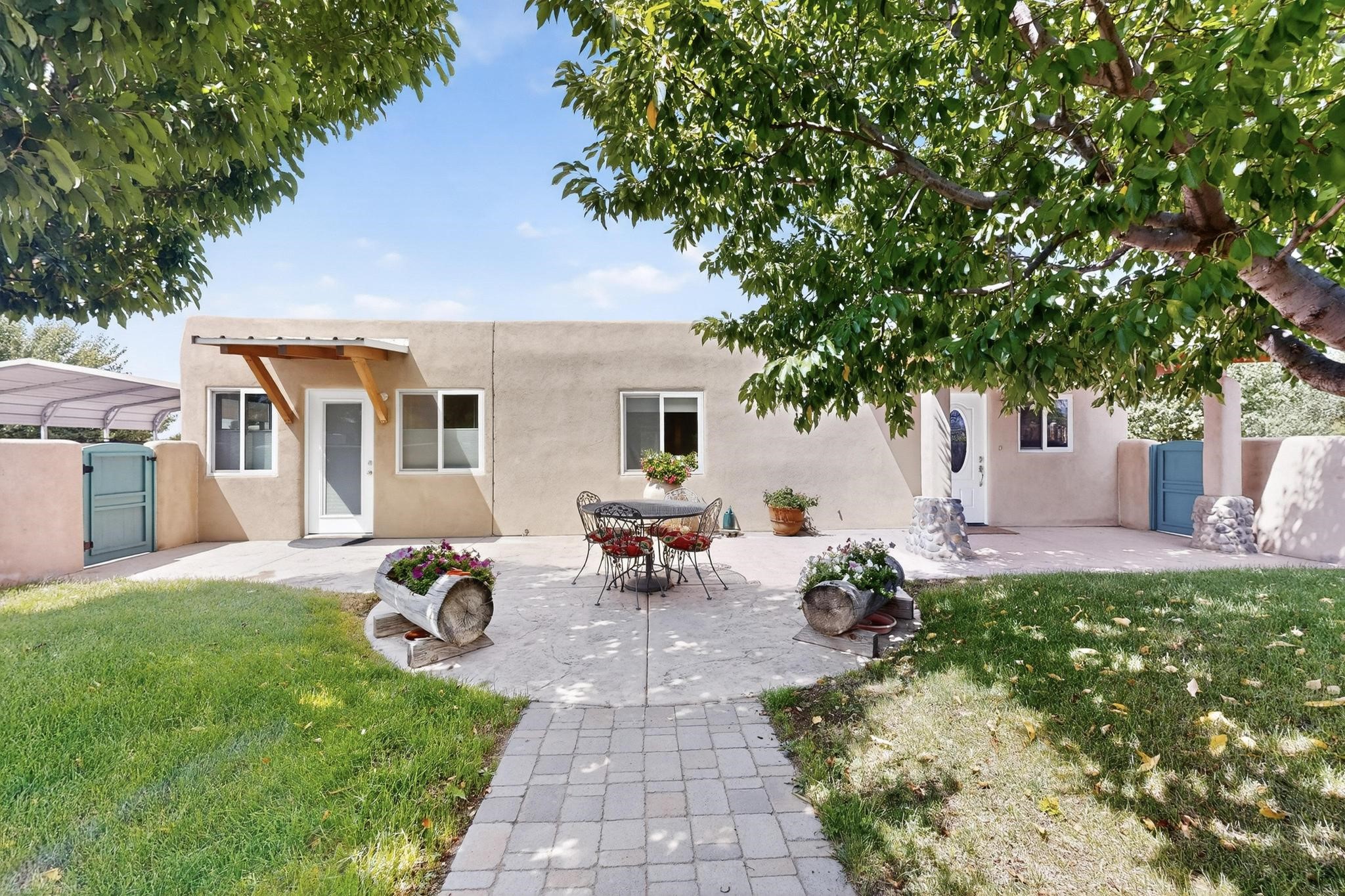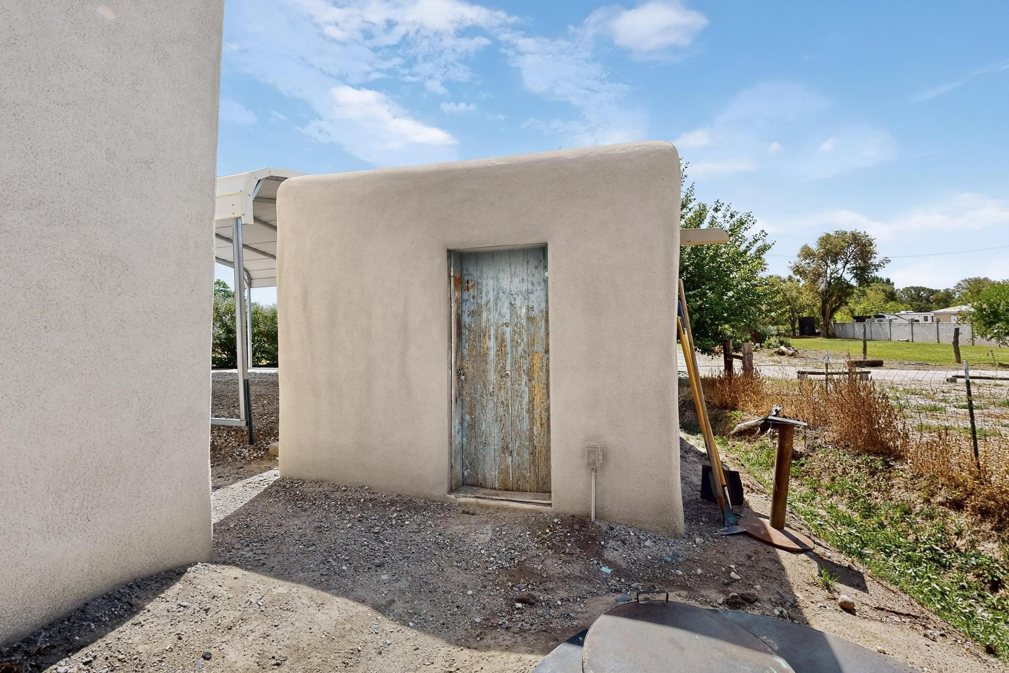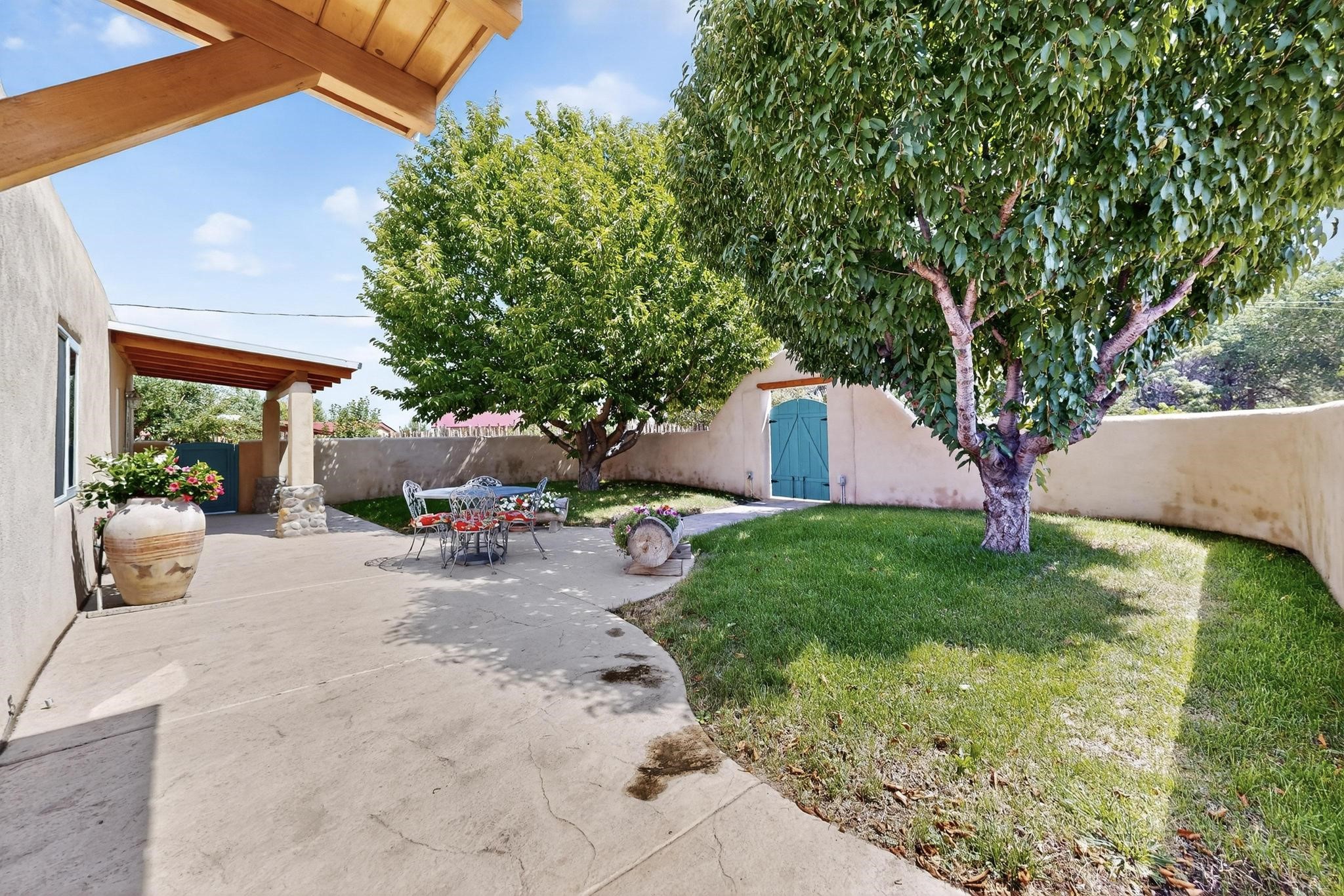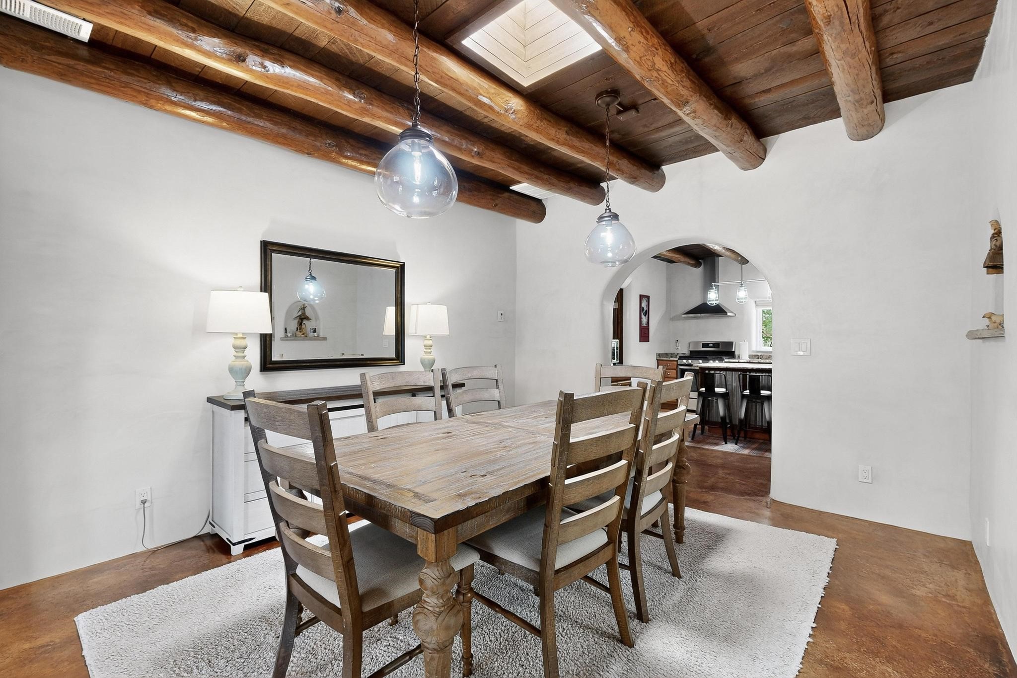 Beautiful home located in Pena Blanca. The home is located on .52 +/- acres. Outdoor areas include a walled courtyard with mature landscaping, fruit trees, and a small vineyard and 2 covered parking spaces. Adobe built home with stunning finishes such as viga ceilings, stained concrete floors, diamond finished walls and archways. The kitchen boasts granite countertops and an eat-in island with a separate large formal dining room. A 10X14 adobe storage building and a 10X12 Morgan Metal Storage is also located on the property. The property has community water plus a private well for irrigation. The private septic system is maintained by the community water and sanitation district. Newly replaced electrical and plumbing/heating/cooling systems. Easy commute via I-25 to Santa Fe and Albuquerque. Convenient access to Cochiti Lake.