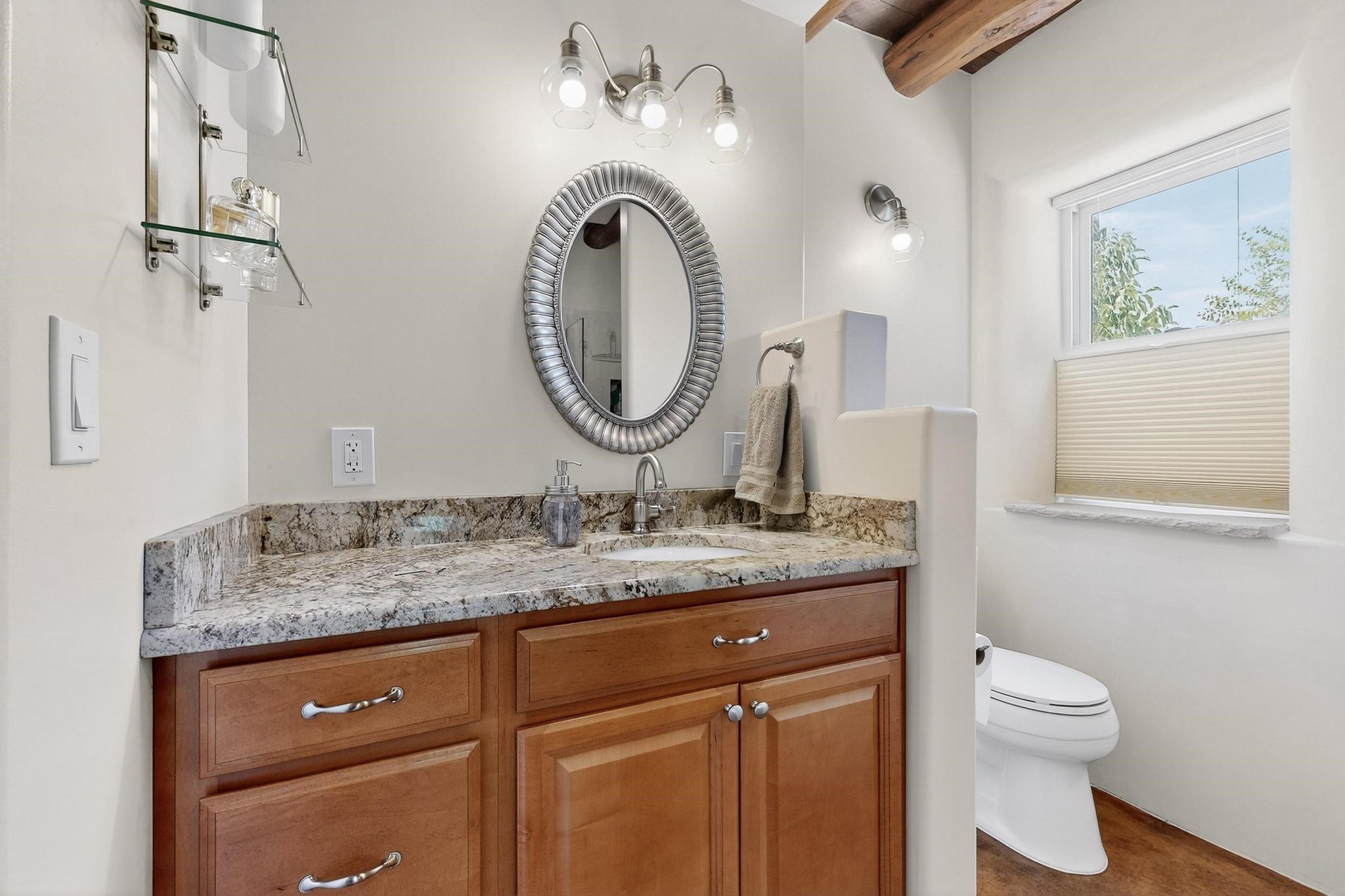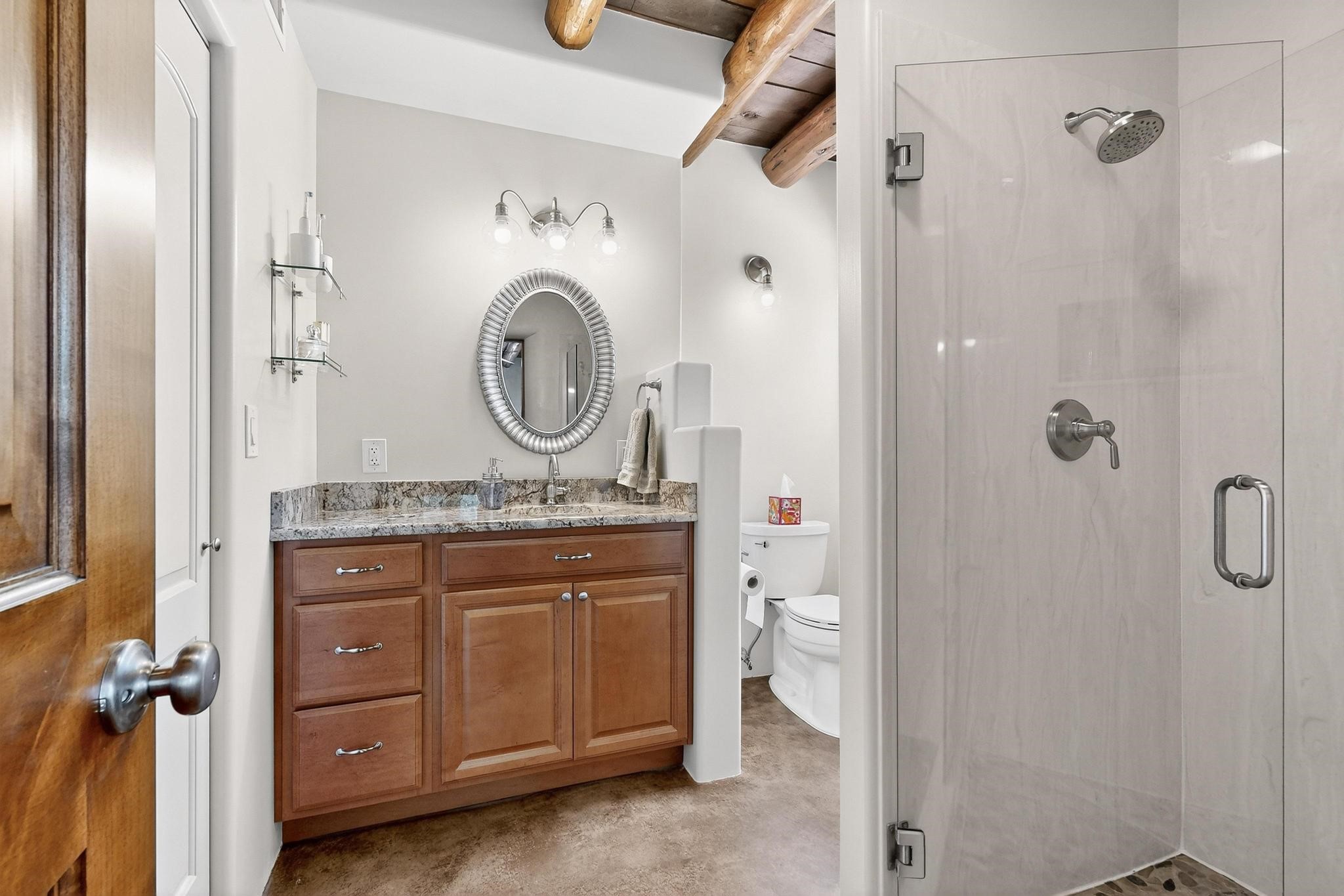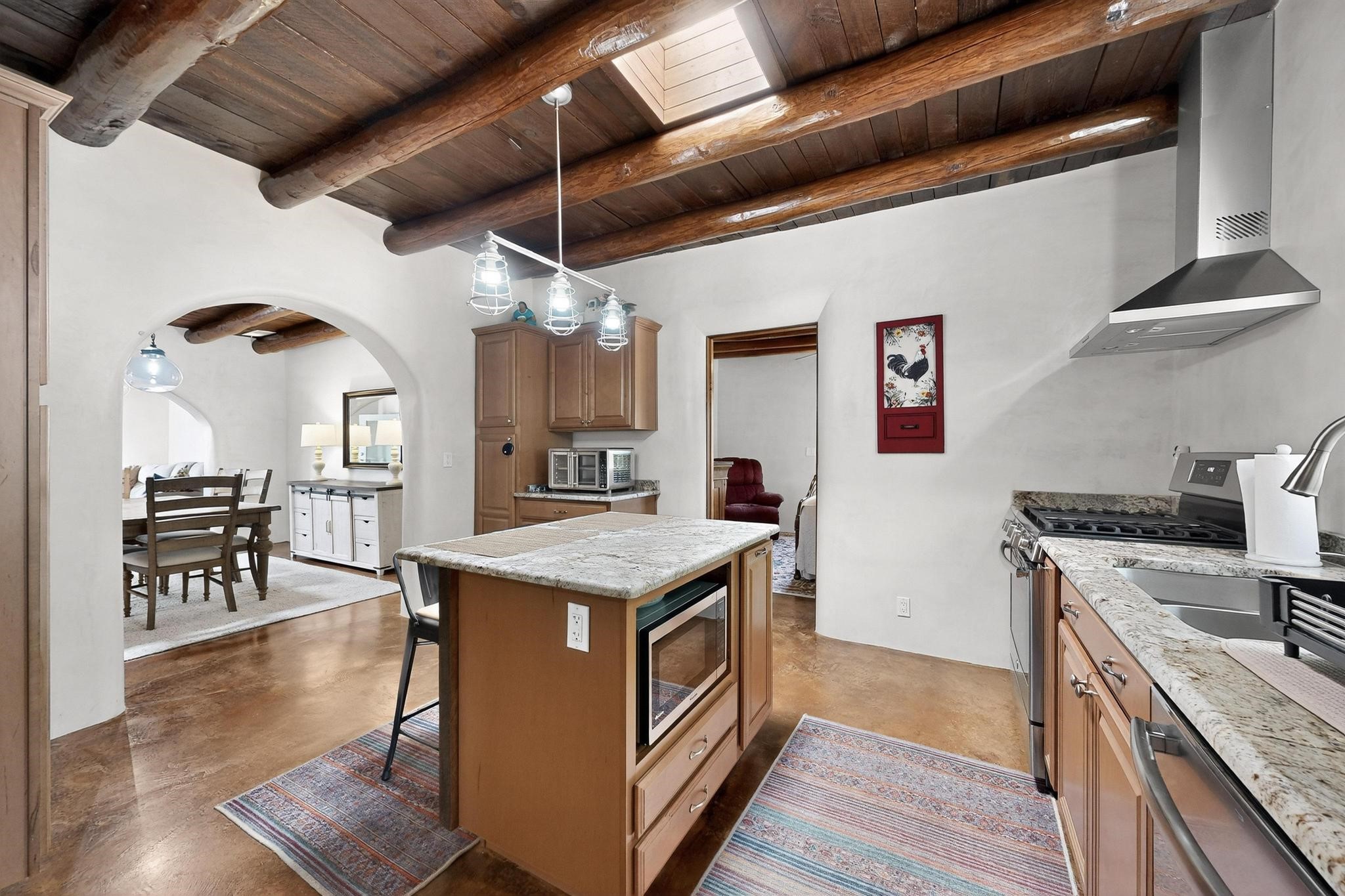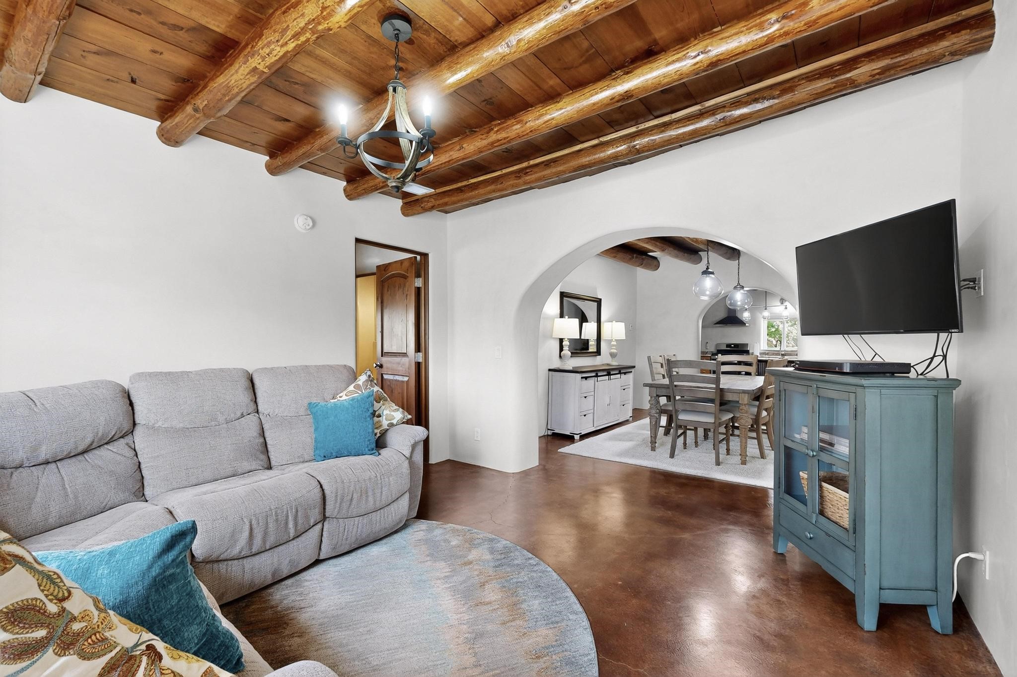 Beautiful home located in Pena Blanca. The home is located on .52 +/- acres. Outdoor areas include a walled courtyard with mature landscaping, fruit trees, and a small vineyard and 2 covered parking spaces. Adobe built home with stunning finishes such as viga ceilings, stained concrete floors, diamond finished walls and archways. The kitchen boasts granite countertops and an eat-in island with a separate large formal dining room. A 10X14 adobe storage building and a 10X12 Morgan Metal Storage is also located on the property. The property has community water plus a private well for irrigation. The private septic system is maintained by the community water and sanitation district. Newly replaced electrical and plumbing/heating/cooling systems. Easy commute via I-25 to Santa Fe and Albuquerque. Convenient access to Cochiti Lake.