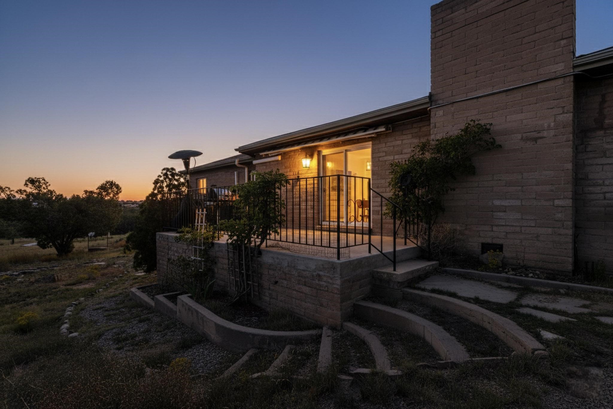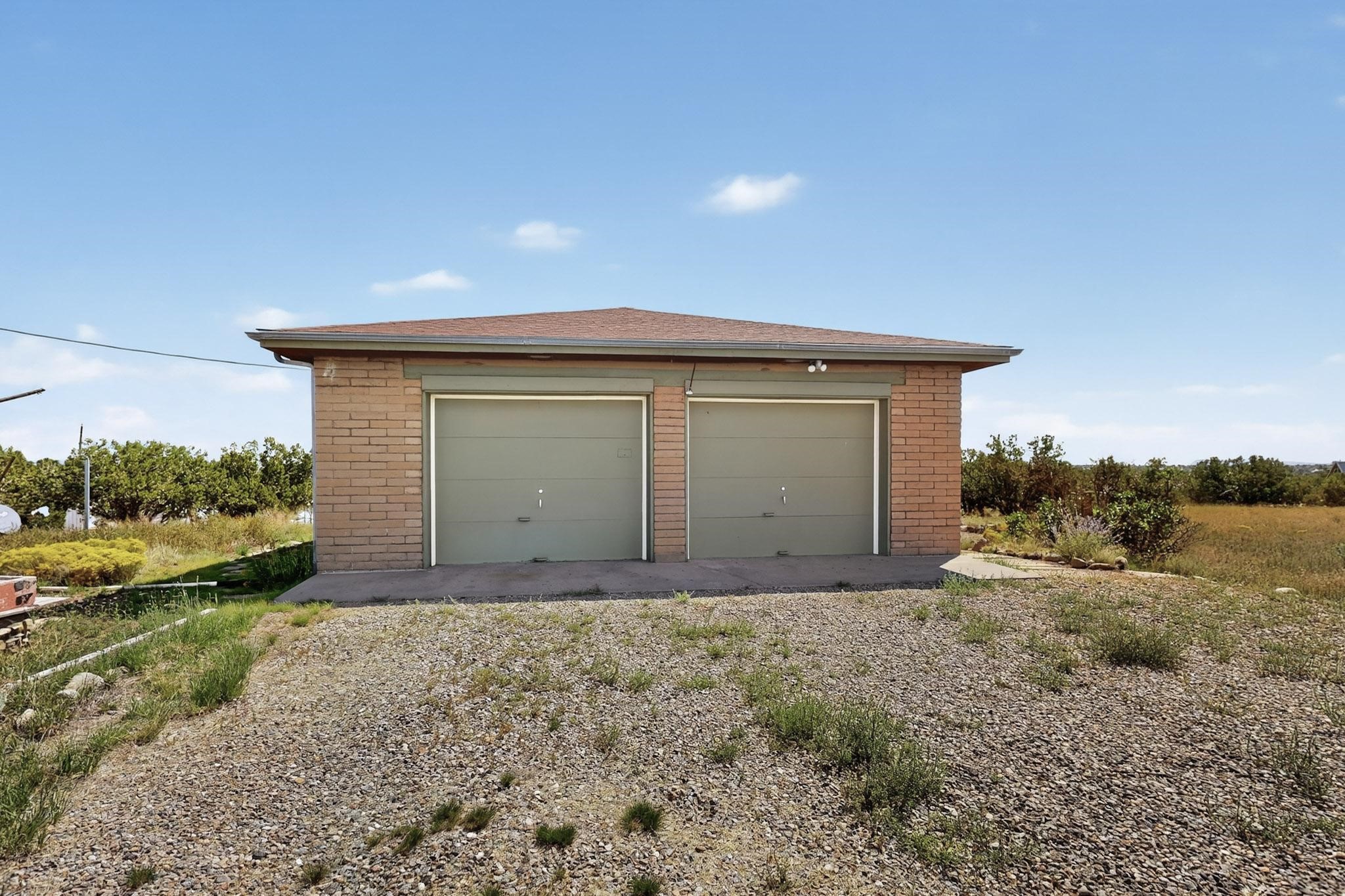 Experience the stunning high desert of Santa Fe in a solid home with a practical floor plan and plenty of elbow room. Enjoying easy access from State Road 14 but set back from the road for privacy and quiet, this property includes a separate shop and garage type outbuildings. 10 acres provides excellent space for expansion. The upper level contains three bedrooms and an attached, oversized two car garage. The lower level can be separated to serve as it's own apartment, with a bedroom, a bathroom a cooking area and a living area and it's own exterior entry. This home will serve superbly for a wide assortment of lifestyles.