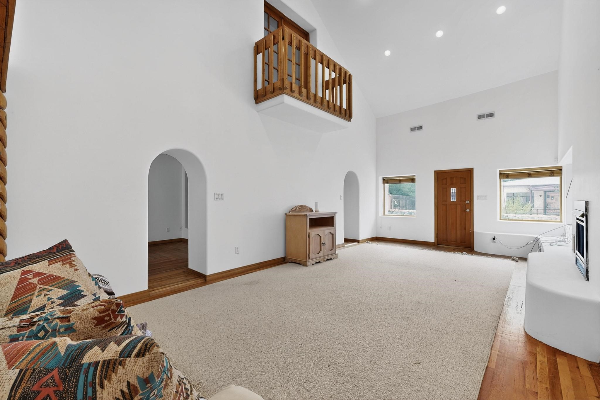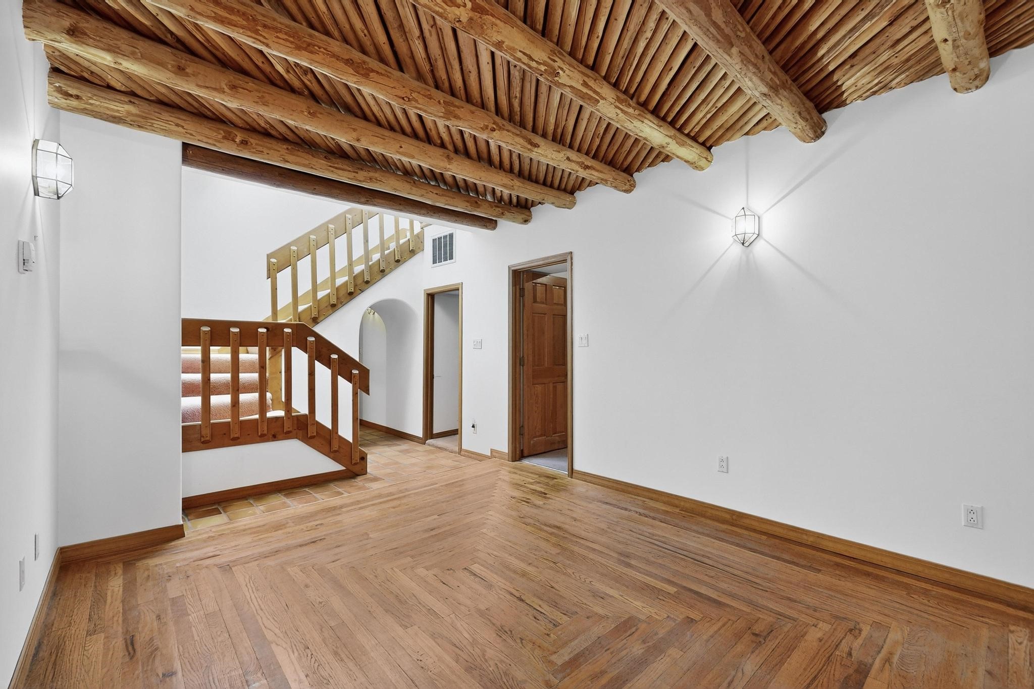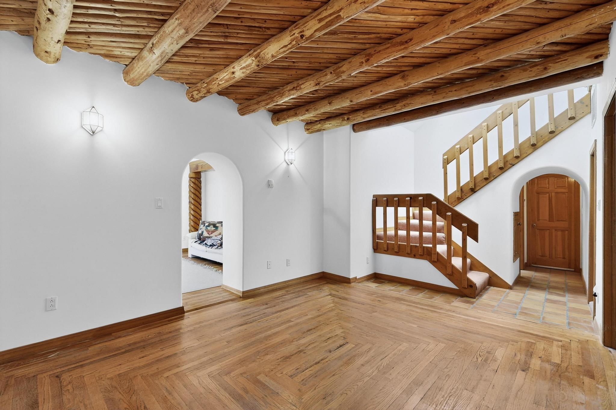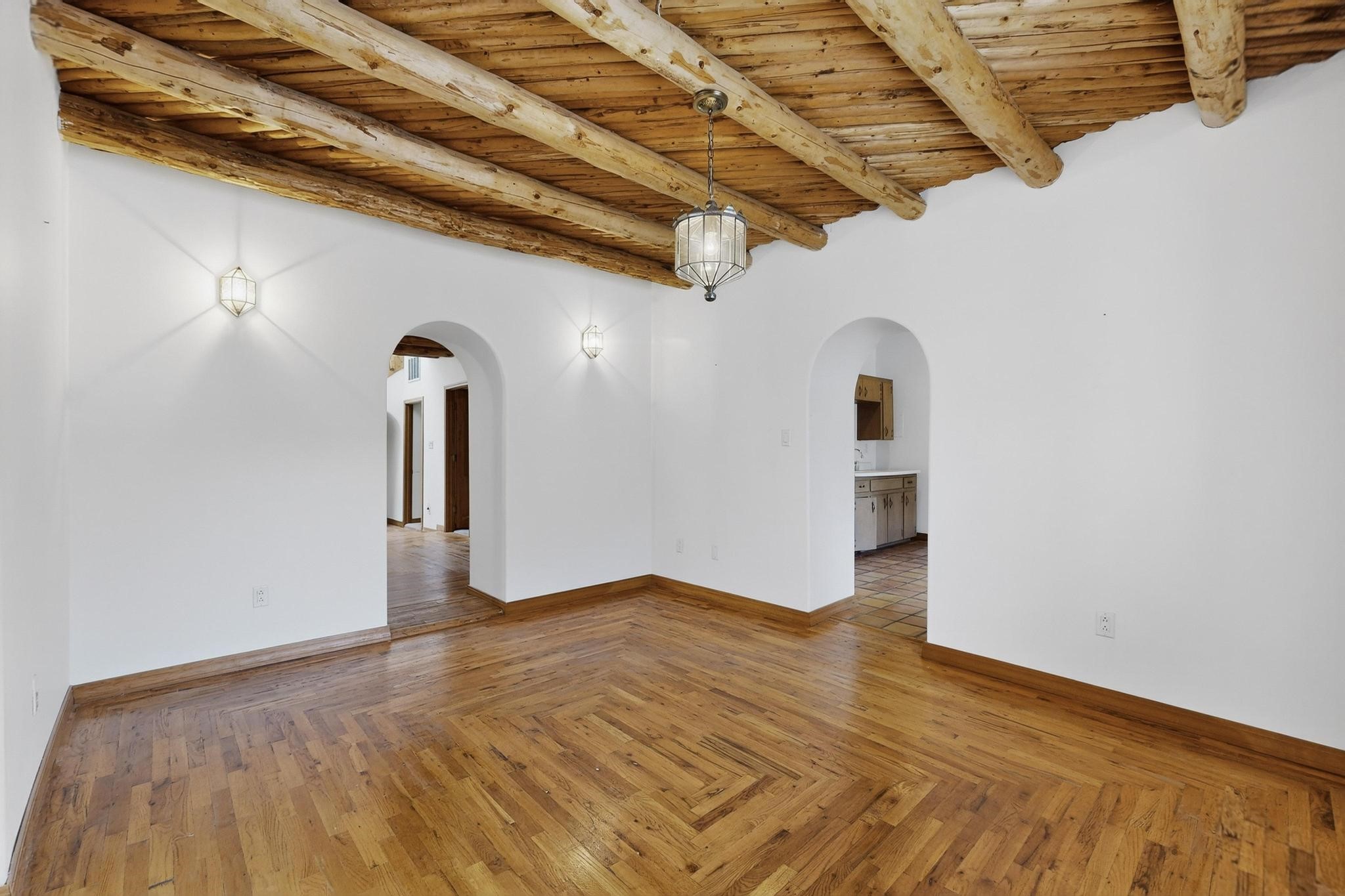 Located in Espanola, off of Riverside Drive, is a moderate sized Spanish style, adobe compound. There is a main home with oak flooring in the common areas, as well as, Saltillo tile. The bancos located throughout the house, provides that old fashioned, traditional sitting space that one could easily soften up, utilizing cushions and throw pillows. The Mexican tiled bathrooms add to the authenticity of the home design. The ceilings, in the common areas, are adorned with the traditional, Northern New Mexico vigas and latillas. A unique focal point, is the carved pillars that border two separate verticals walls and intersect with a horizontal carved beam, bordering the ceiling. The little touches added to the main home, accents Spanish Colonial charm the home represents. There is an attached two car garage (633 sqft) with storage space. There is a smaller dwelling attached to this home by the carport between the two structures, that together, represents the amazing Spanish Colonial architecture brought to the new world by the Spaniards in the late 15 hundreds. The pitched roof and dormers, along with the private courtyards, and the adobe construction, takes a person back in time. The photos tell the rest of the story. Together, multiple families could live in the compound. The compound could also serve as office spaces or home and offices. An incredible place to live or work, surrounded by old fashioned, traditional charm and comfort. Please, be sure to look through the photos and walk through the homes, as you view the 3-dimension videos. An easy 20 to 45 minute drive to Santa Fe, Los Alamos, Taos, and Abiquiu.