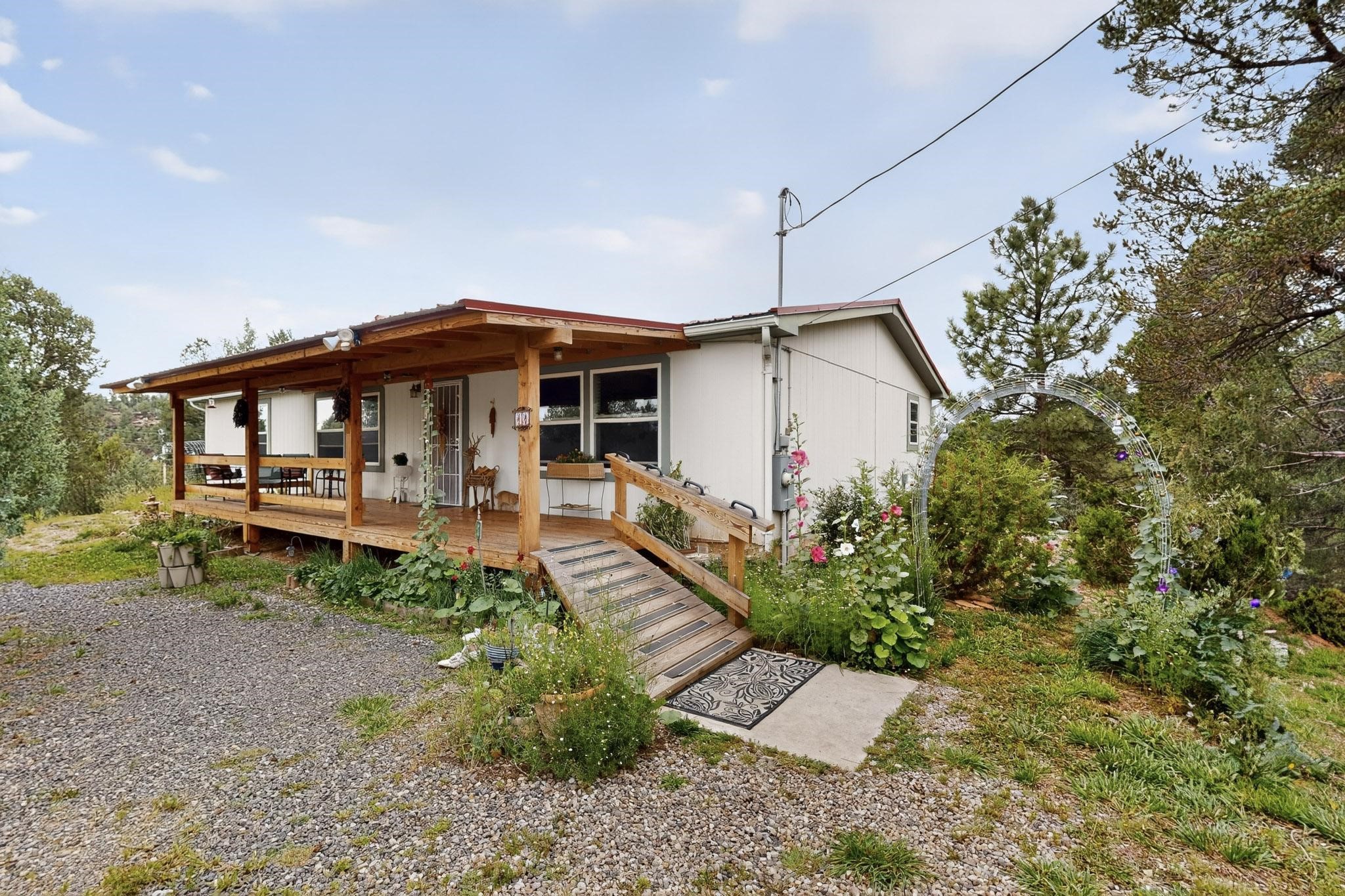 TWO for the PRICE of ONE, 11 and 15 Corte Vargas includes 3 Bedroom, 2 Bath 2007 doublewide on a permanent foundation on 1.026 +/- acres and adjoining vacant lot 5.371 +/- acres with 1/4 ownership in a shared well, several building sites and much potential for additional structures. Located in the Glorieta area off NM Hwy 50, 22 minutes to Santa Fe this listing has much to offer buyers. The home is accessed from a covered porch, has living room with wood burning stove, cook's kitchen, split bedroom floor plan, forced air heating as well as air conditioning, ample closets, washer and dryer. The area around the home is nicely landscaped with perennial flowers, walkways, covered chicken coop, 2 car carport and designated sitting and viewing areas. The adjoining separately deeded lot comes with the potential for water from the shared well (4 hook-ups only). It has several potential building sites, a multitude of healthy Pinon, Ponderosa Pine, oak and Juniper trees, dramatic out croppings, varied terrain, views to the north and almost at the end of the acreage a seasonal creek. The north boundary adjoins lands claimed by the Jemez Pueblo and is a vast open space. Located in Santa Fe County the property is served by Eldorado Community School and Santa Fe High School. For the best of country living please consider 11 & 15 Corte Vargas.