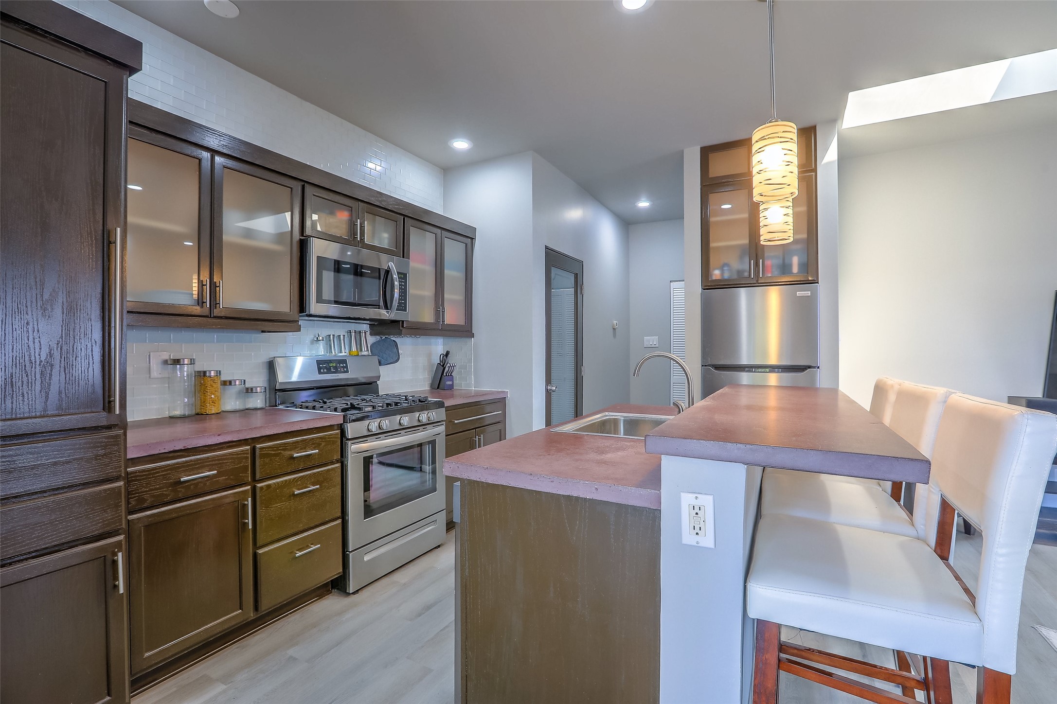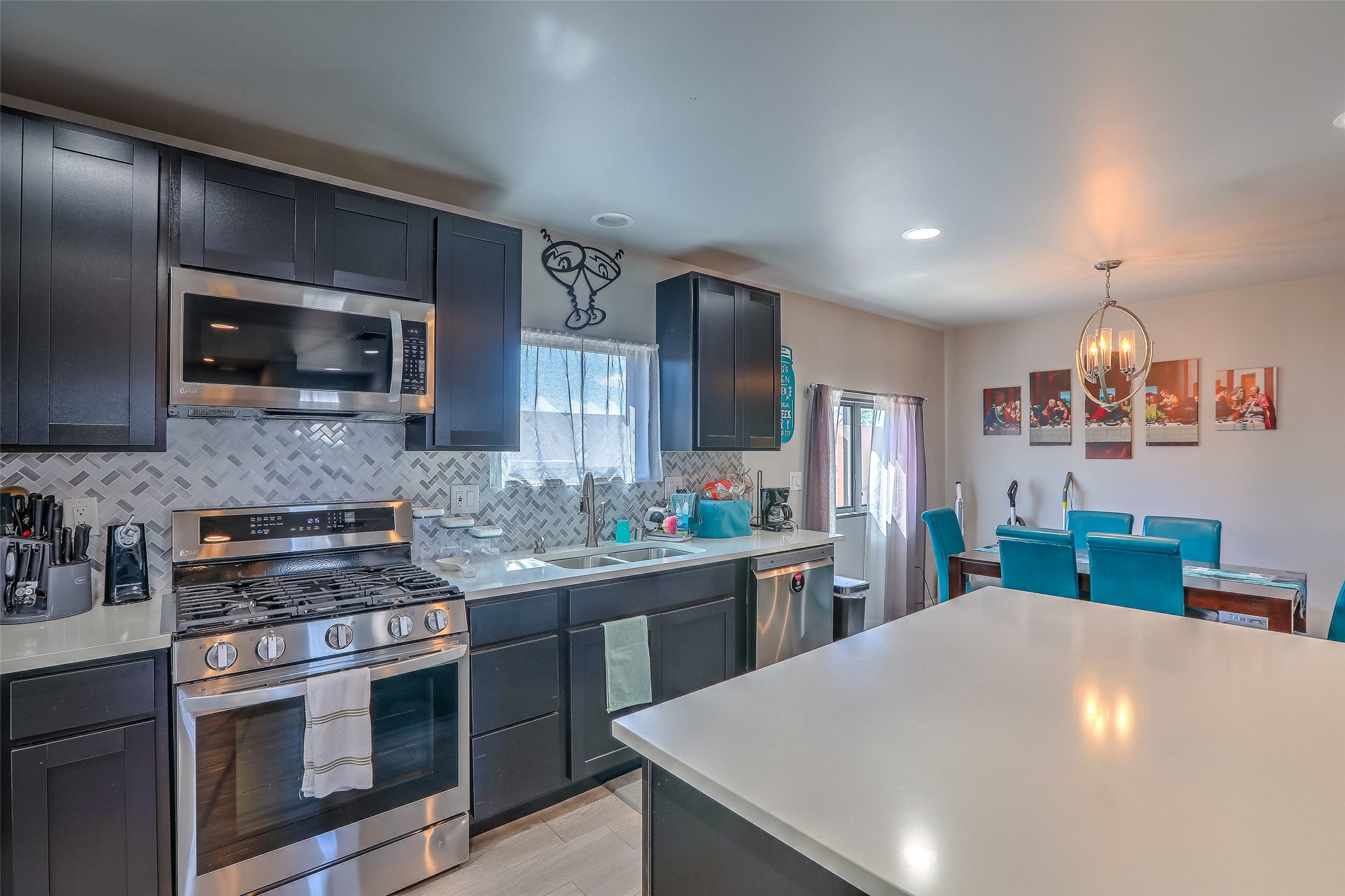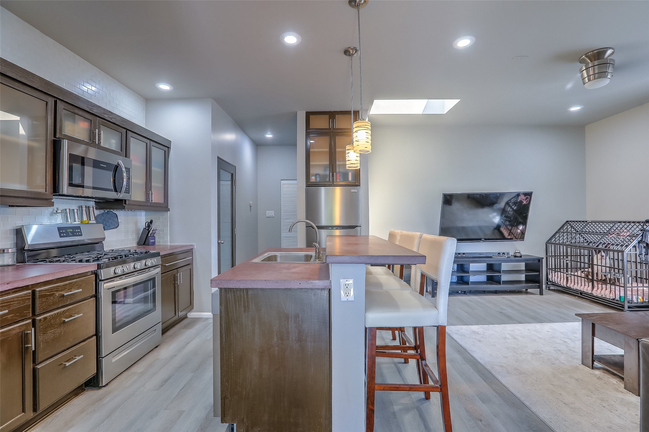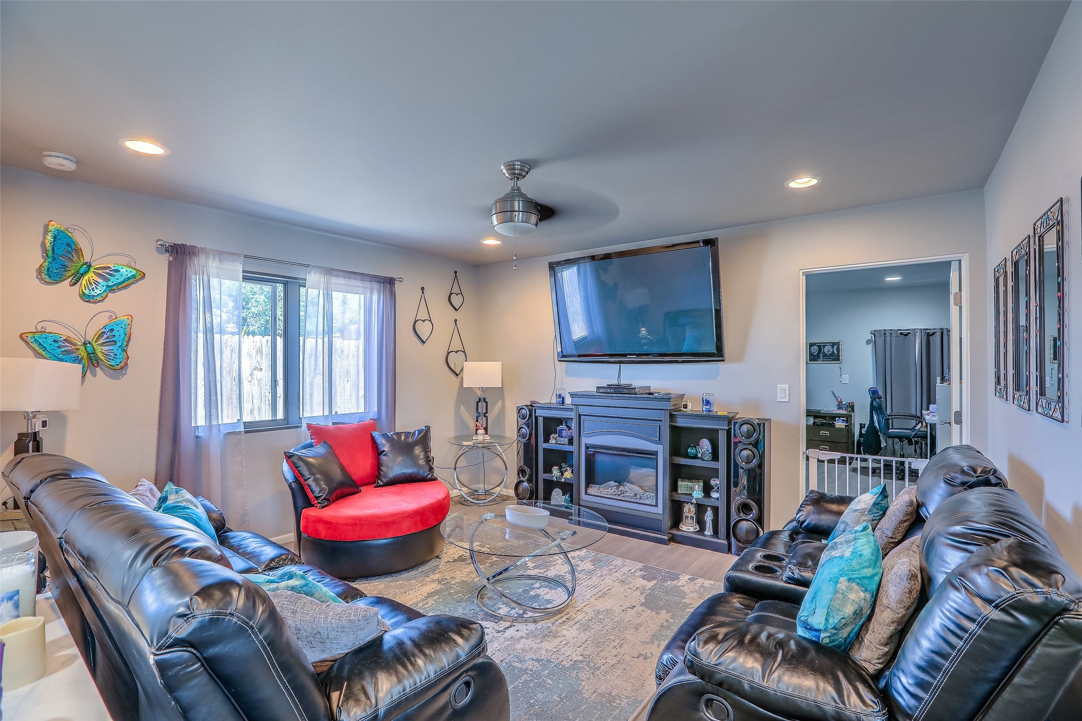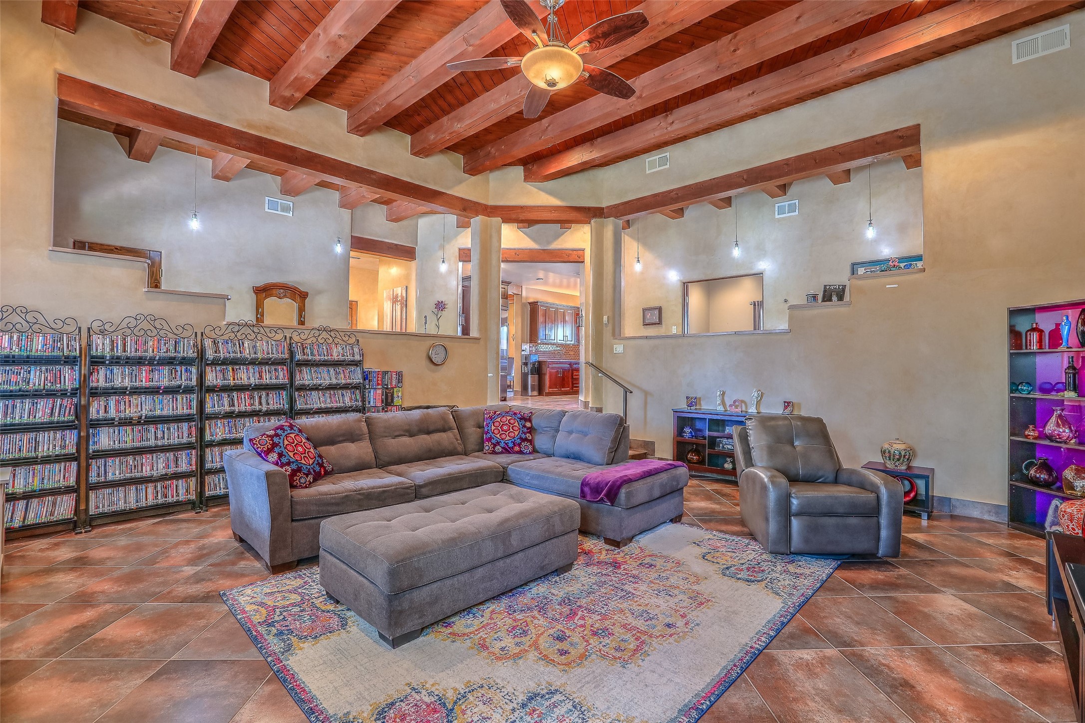 Priced to sell! Don't miss our on this opportunity!!! Absolute Stunner in Santa Fe! Perfect for a Large Family or Investor. Walk into the 2,764 SF 3 Bedroom, 3.5 Bath Primary Home and be greeted with Luxury! A Huge Sunken Family Room creates a Cozy and Intimate Atmosphere for Family Gatherings centered around a Fireplace accented with a Stonewall covering the entire South Wall. Magnificent Vigas and Diamond Finish Walls provide the Perfect Touch! The Kitchen is a True Chefs Delight! The Main Home includes an En Suite, Office, Radiant Floor Heating, Central Vac System, Water Softener System, and a High Efficiency Tankless Water Heater. The Comfy Primary Suite is equipped with its own Fireplace offering the Ultimate Relaxation. Attached to the Main Home is a Fabulous 1,008 SF Efficiency Suite with its own Private Entrance and includes 1 Bedroom, 1 Bath, Office, Full Kitchen, Laundry Room and Living Area. Behind the Full Size Enclosed Basketball Court you will find an additional 1,560 SF Guest Home that was built in 2022. This Modern New Home offers 4 Bedrooms; a Primary Suite, an En Suite, and 2 Guest Rooms and 3 Baths. Features include all Tile Flooring, Tankless Water Heater, TPO Roof, Fenced Yard and its own Private Road. The Two Large (480 SF Each) Utility Sheds/Carports also convey. Don't Miss Out on this One of a Kind Opportunity!!