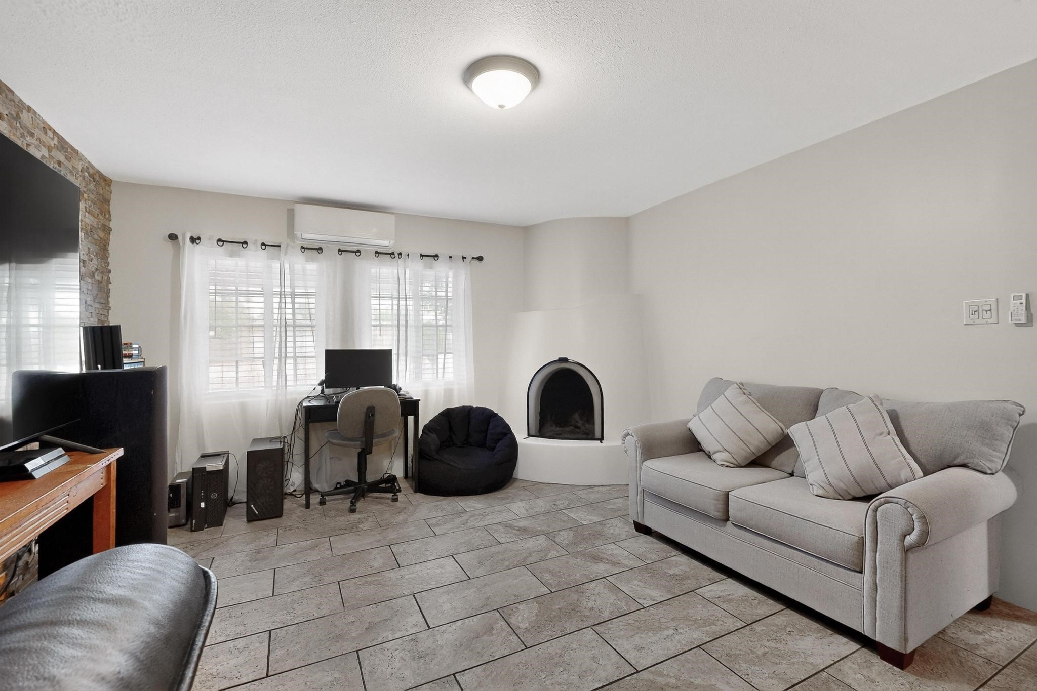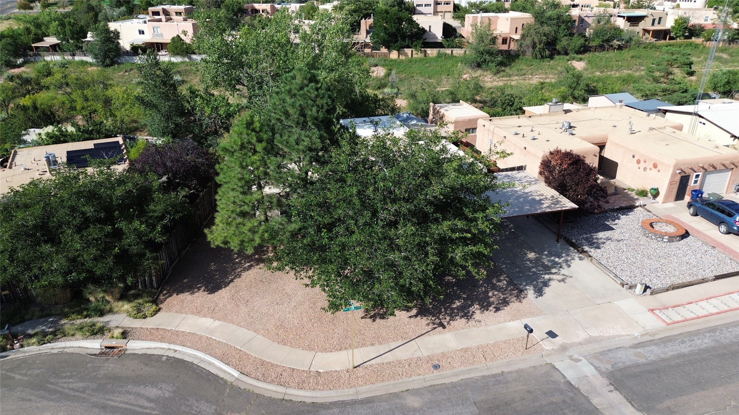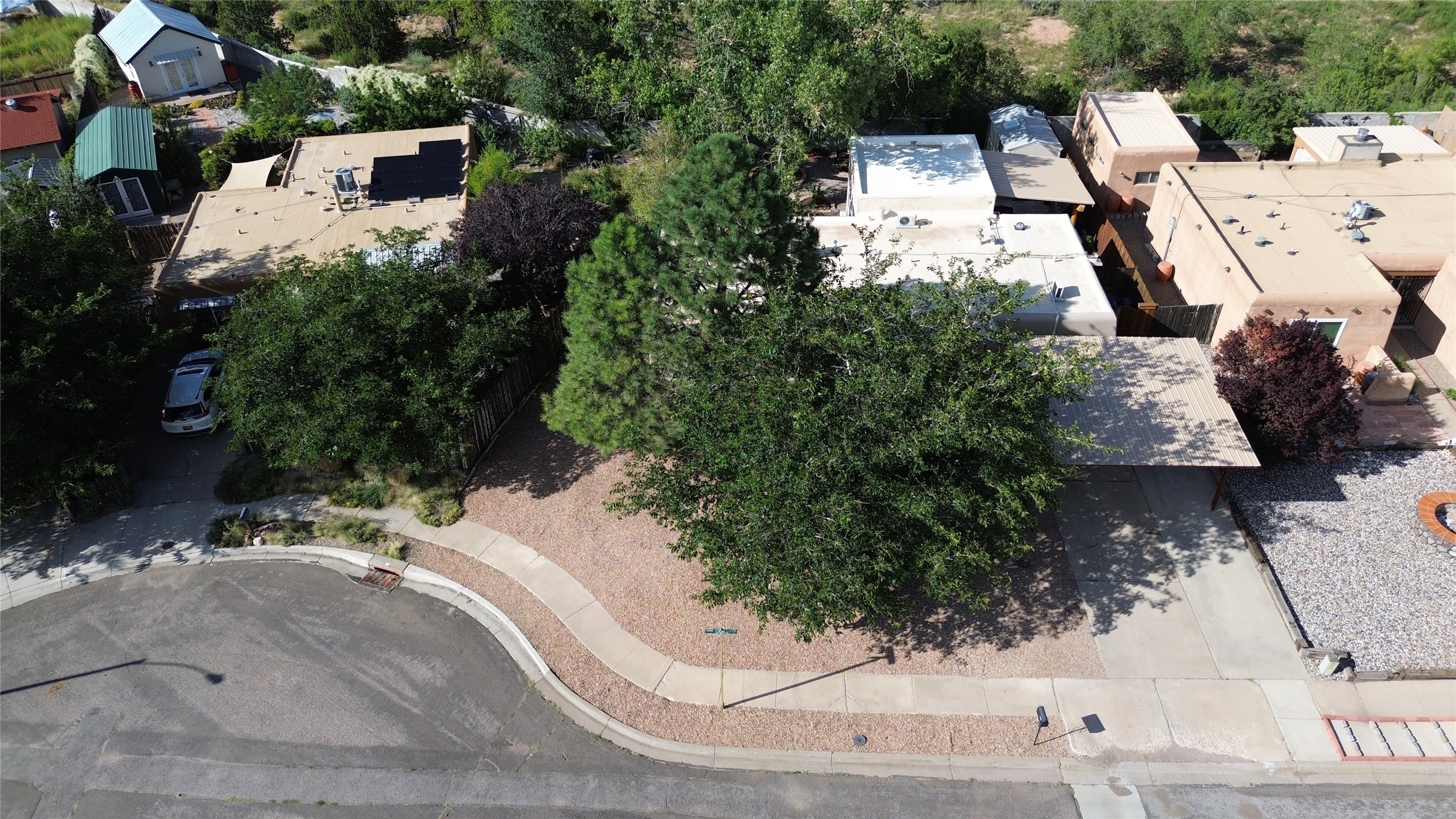 Tucked away in a quiet neighborhood, this home offers a perfect blend of classic Southwestern character and thoughtful modern upgrades. This 3-bedroom home, with a flexible den that can serve as a 4th bedroom or office, is move-in ready and full of possibilities. A recent addition brings warmth and wow-factor with tongue-and-groove ceilings, exposed vigas, a cultured stone accent wall, and a sleek electric fireplace. Dual sliding glass doors open the space to both a lush garden area and a covered patio--ideal for entertaining or enjoying peaceful mornings outdoors.Stay comfortable year-round with a brand-new mini-split system in the living room for efficient heating and cooling. Additional improvements include a newly built carport, providing covered parking and protection from the elements.Inside, you'll find a classic kiva fireplace in the den, and loads of natural light throughout. The front and backyard are beautifully landscaped with mature trees and a charming storage or garden shed that stays with the property.Located minutes from parks, schools, and shopping, this home is a rare blend of charm, comfort, and convenience in the heart of Santa Fe.