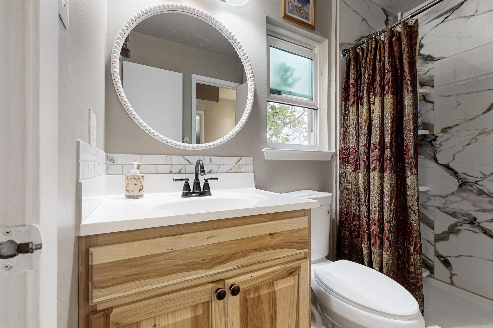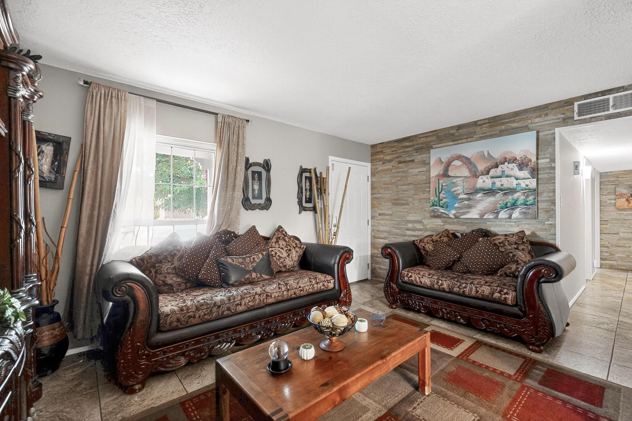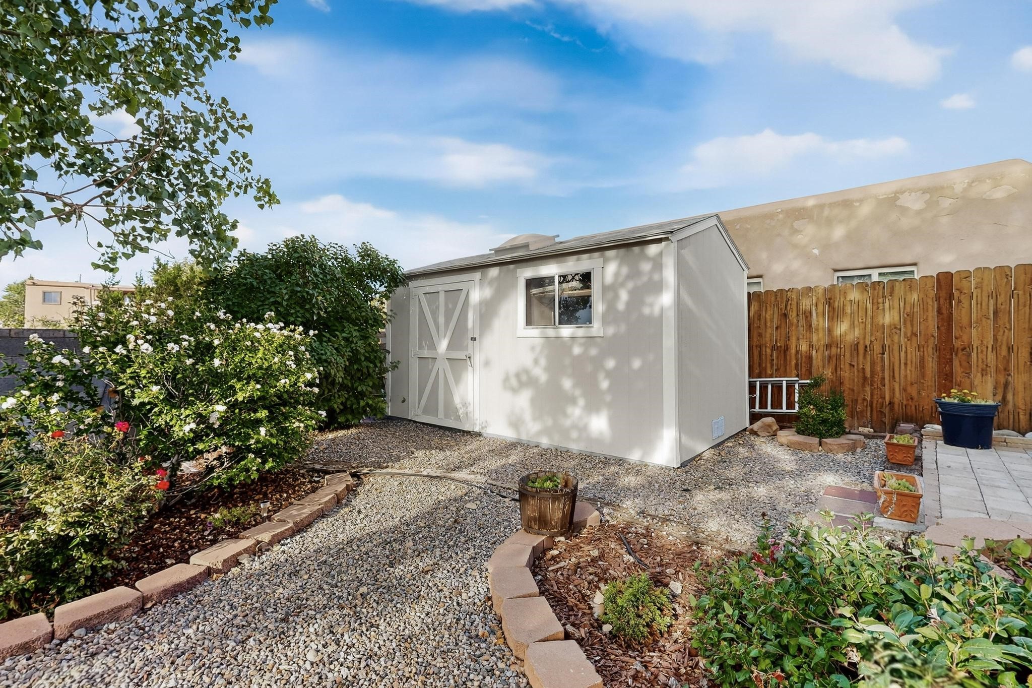 Tucked away in a quiet neighborhood, this home offers a perfect blend of classic Southwestern character and thoughtful modern upgrades. This 3-bedroom home, with a flexible den that can serve as a 4th bedroom or office, is move-in ready and full of possibilities. A recent addition brings warmth and wow-factor with tongue-and-groove ceilings, exposed vigas, a cultured stone accent wall, and a sleek electric fireplace. Dual sliding glass doors open the space to both a lush garden area and a covered patio--ideal for entertaining or enjoying peaceful mornings outdoors.Stay comfortable year-round with a brand-new mini-split system in the living room for efficient heating and cooling. Additional improvements include a newly built carport, providing covered parking and protection from the elements.Inside, you'll find a classic kiva fireplace in the den, and loads of natural light throughout. The front and backyard are beautifully landscaped with mature trees and a charming storage or garden shed that stays with the property.Located minutes from parks, schools, and shopping, this home is a rare blend of charm, comfort, and convenience in the heart of Santa Fe.